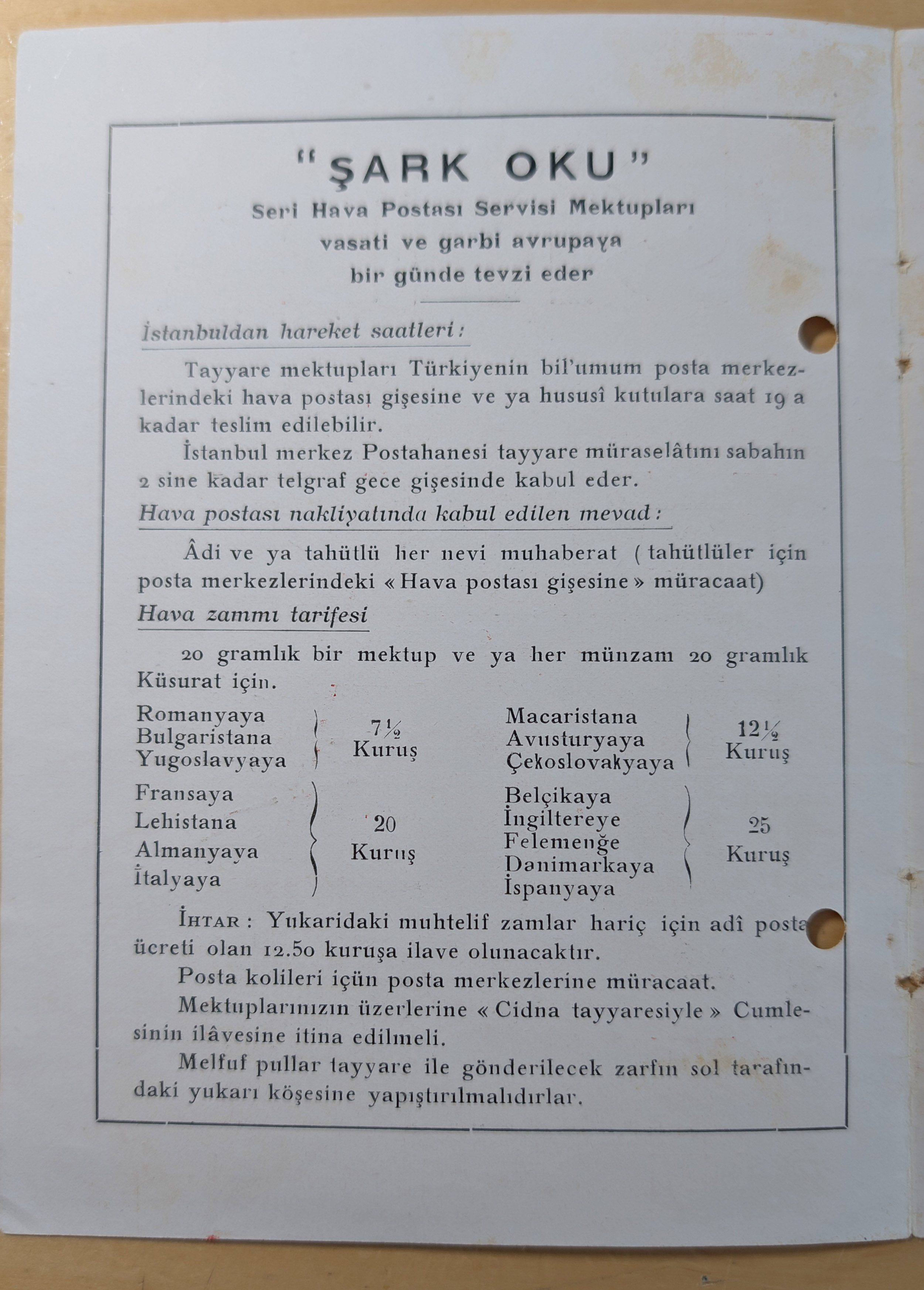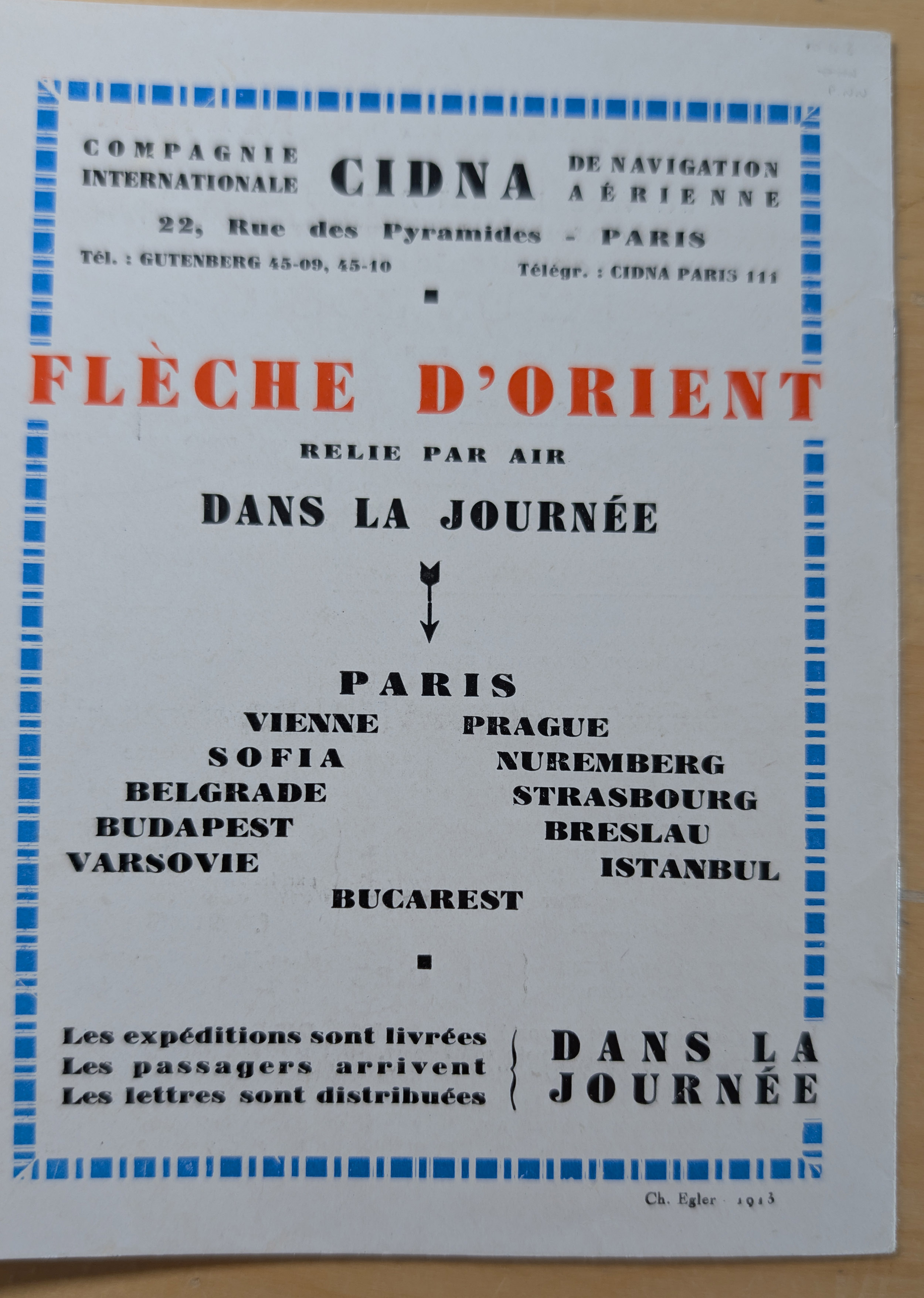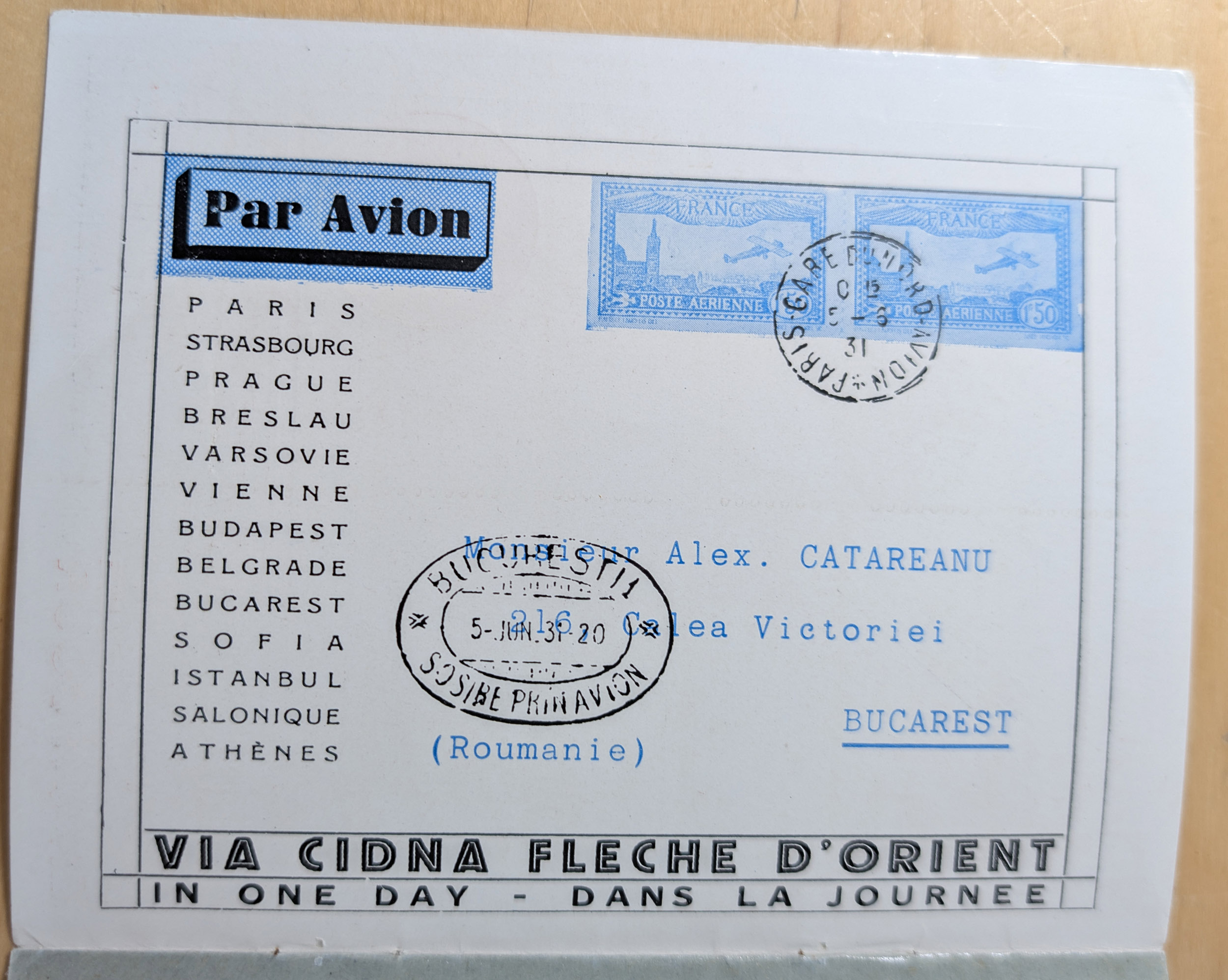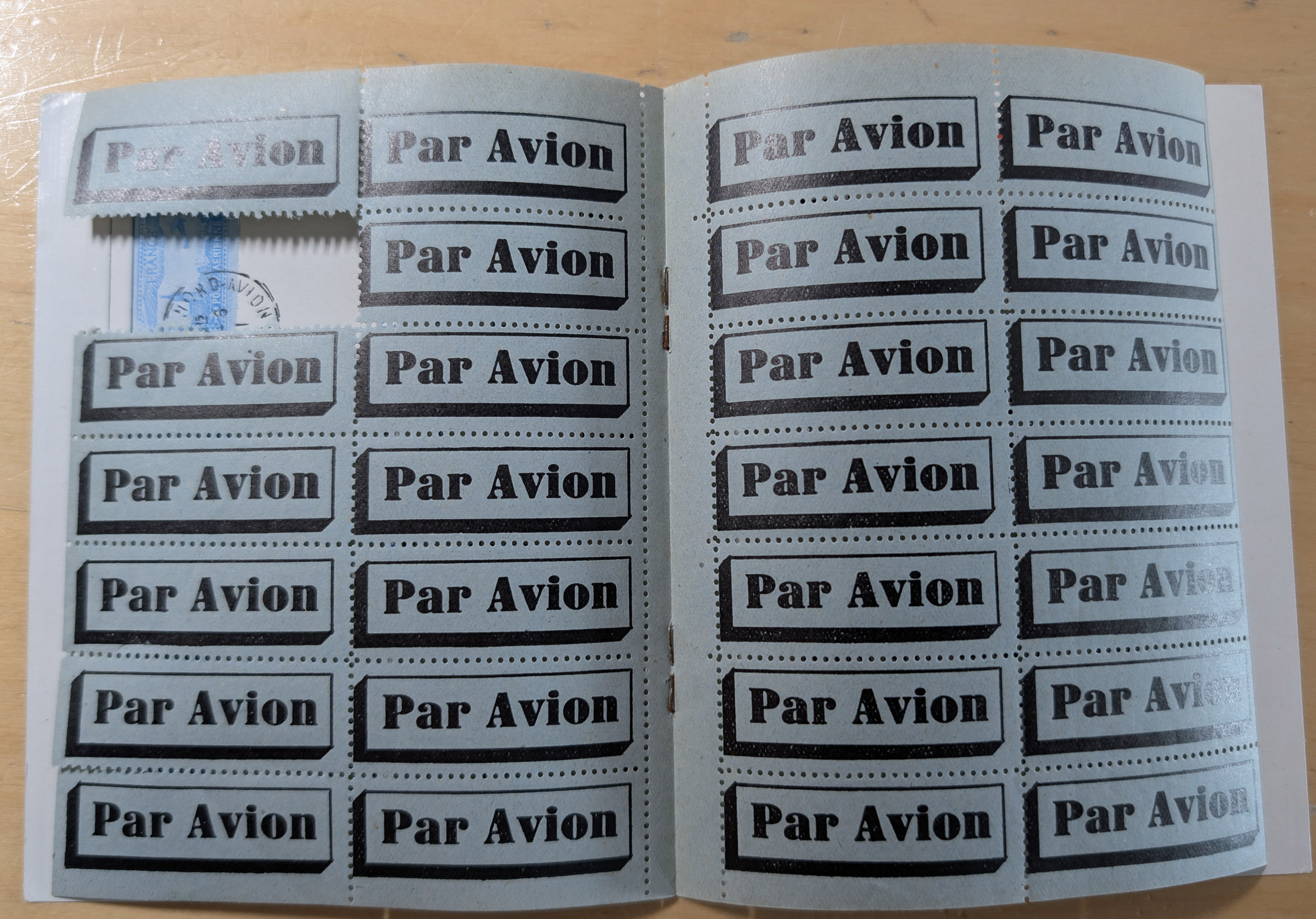 1931/32, CIDNA airmail post labels ‘PAR AVION’, two different booklets, one large size turkish-french bilingual, punched and without labels, with turkey revenues preprinted on reverse, the other small size containing 27 labels (missing 1) in french showing romanian air mail cover of 1931 imprint with tarifs for all countries on the route. The booklets advertise the 1 day flight from Paris, France to Turkey and retour. CIDNA was the name change from 1925 of CFRNA “The French-Romanian Company for Air Transport”. Fine and scarce.