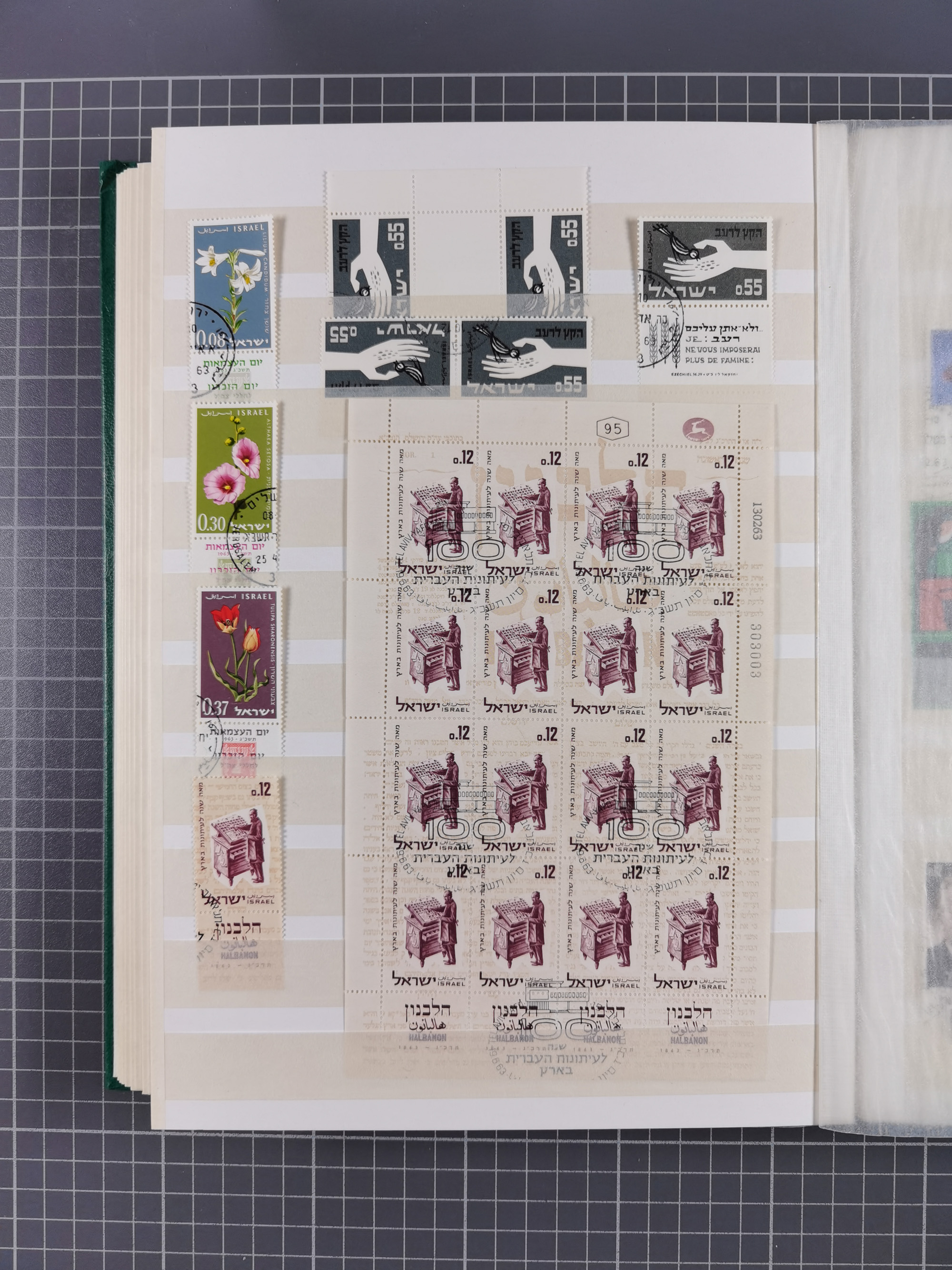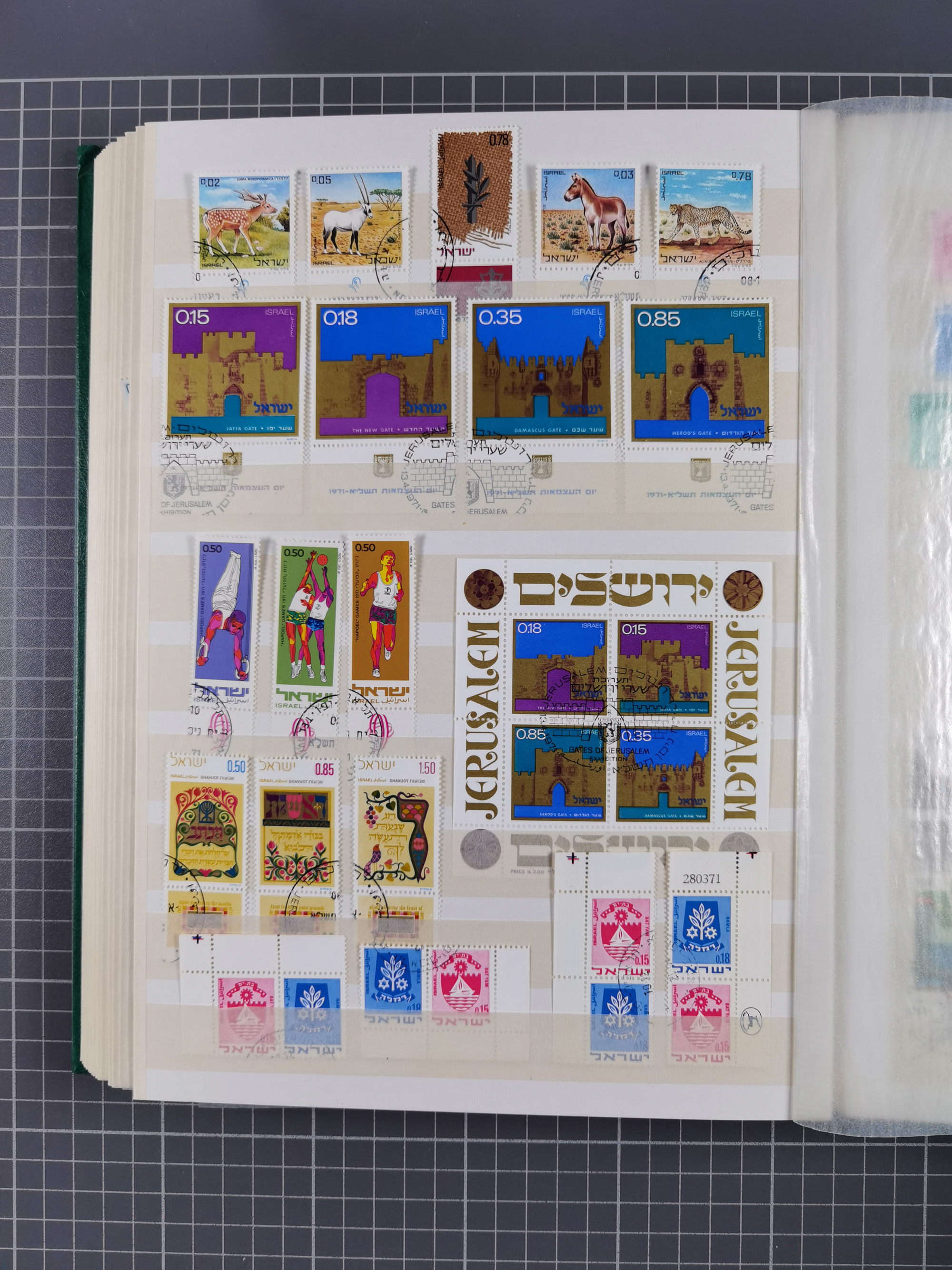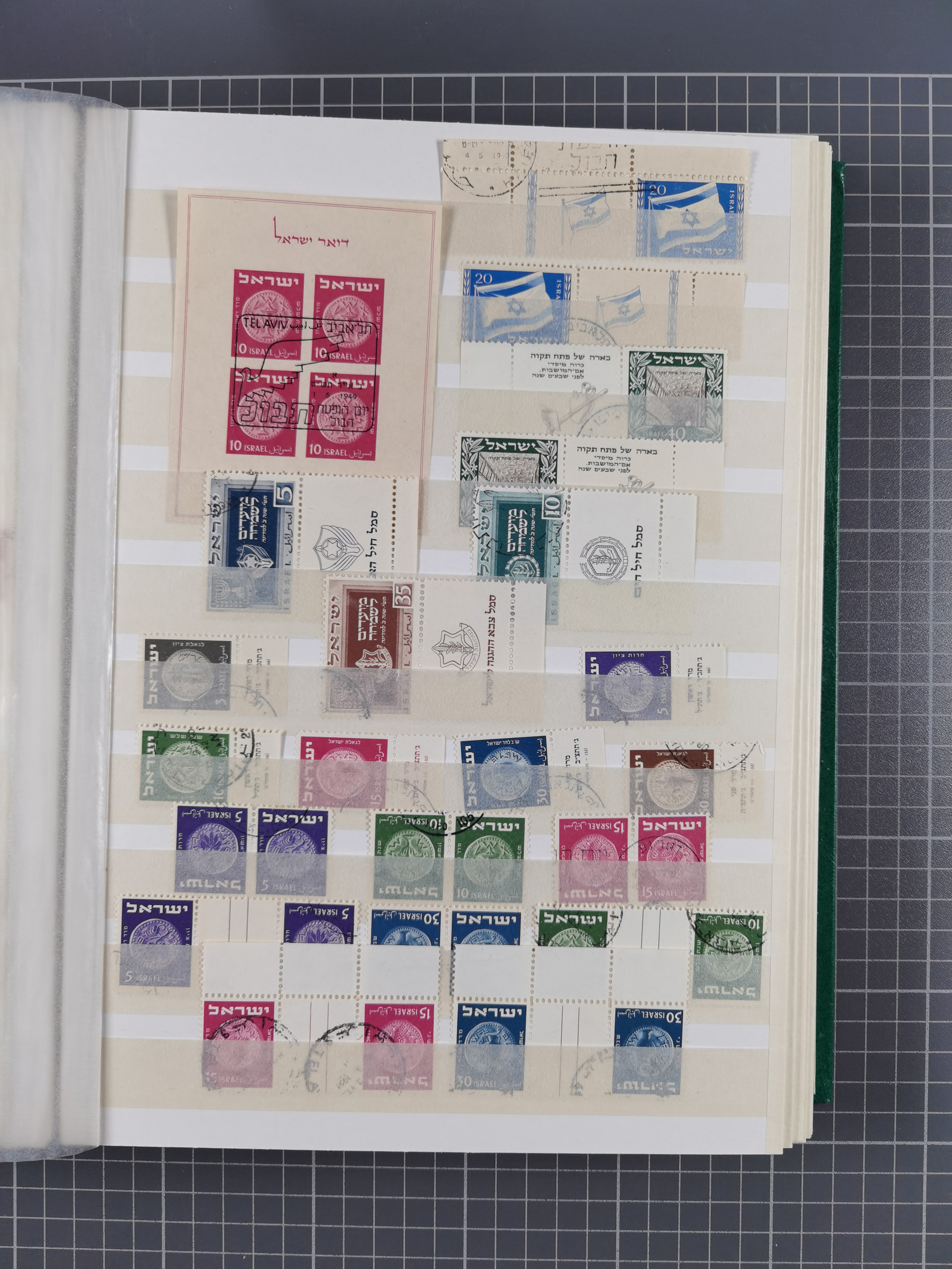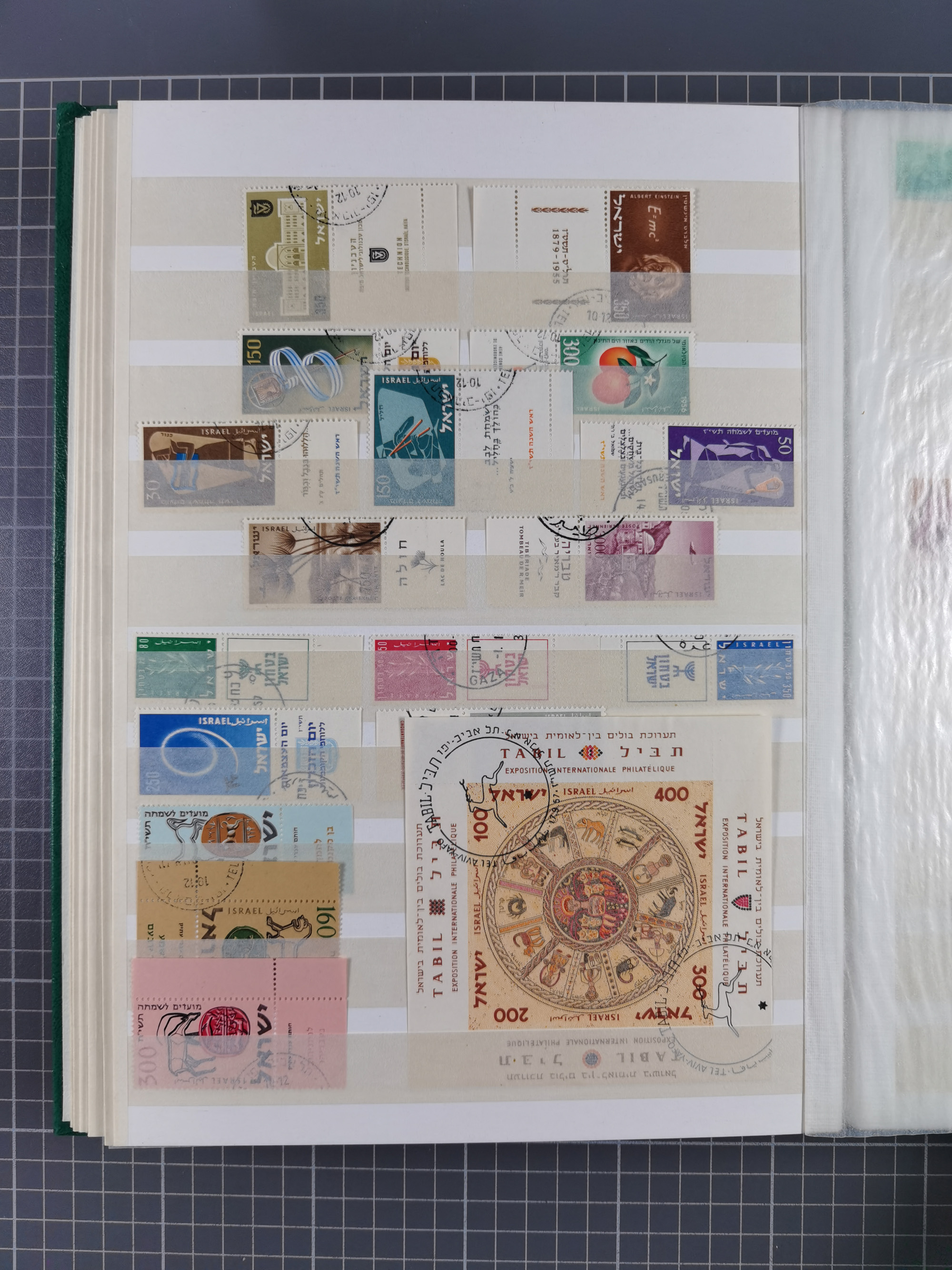 1892/1980, collection in large album starting Turkey cancellations on stamps and piece including Jaffa and Jerusalem in various types and colours. Israel early issues cancelled in gutter pairs and tete-beche gutter pairs, many full tab stamps, postage due and S/S, mostly fine.