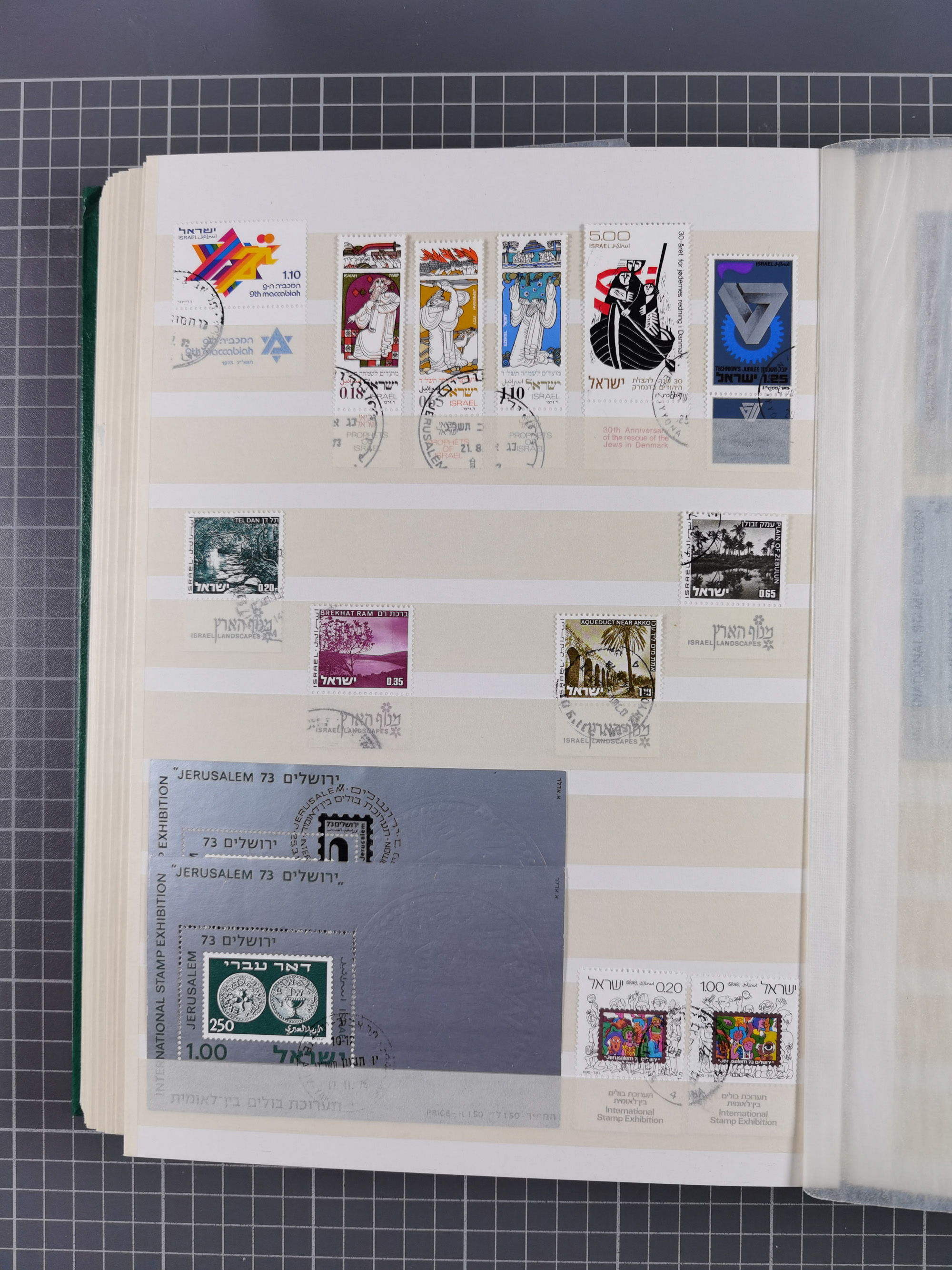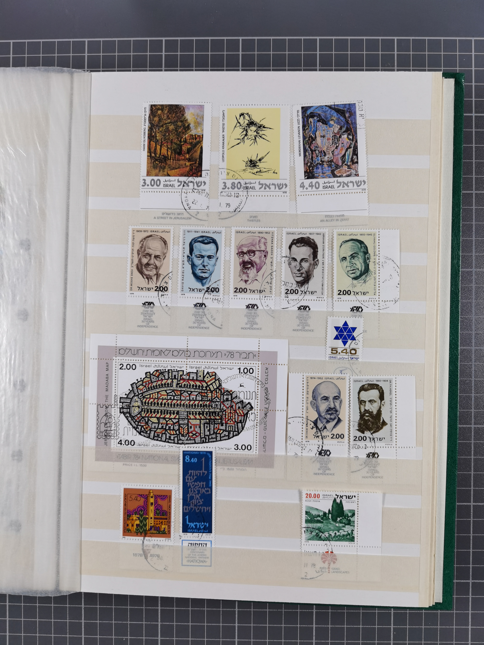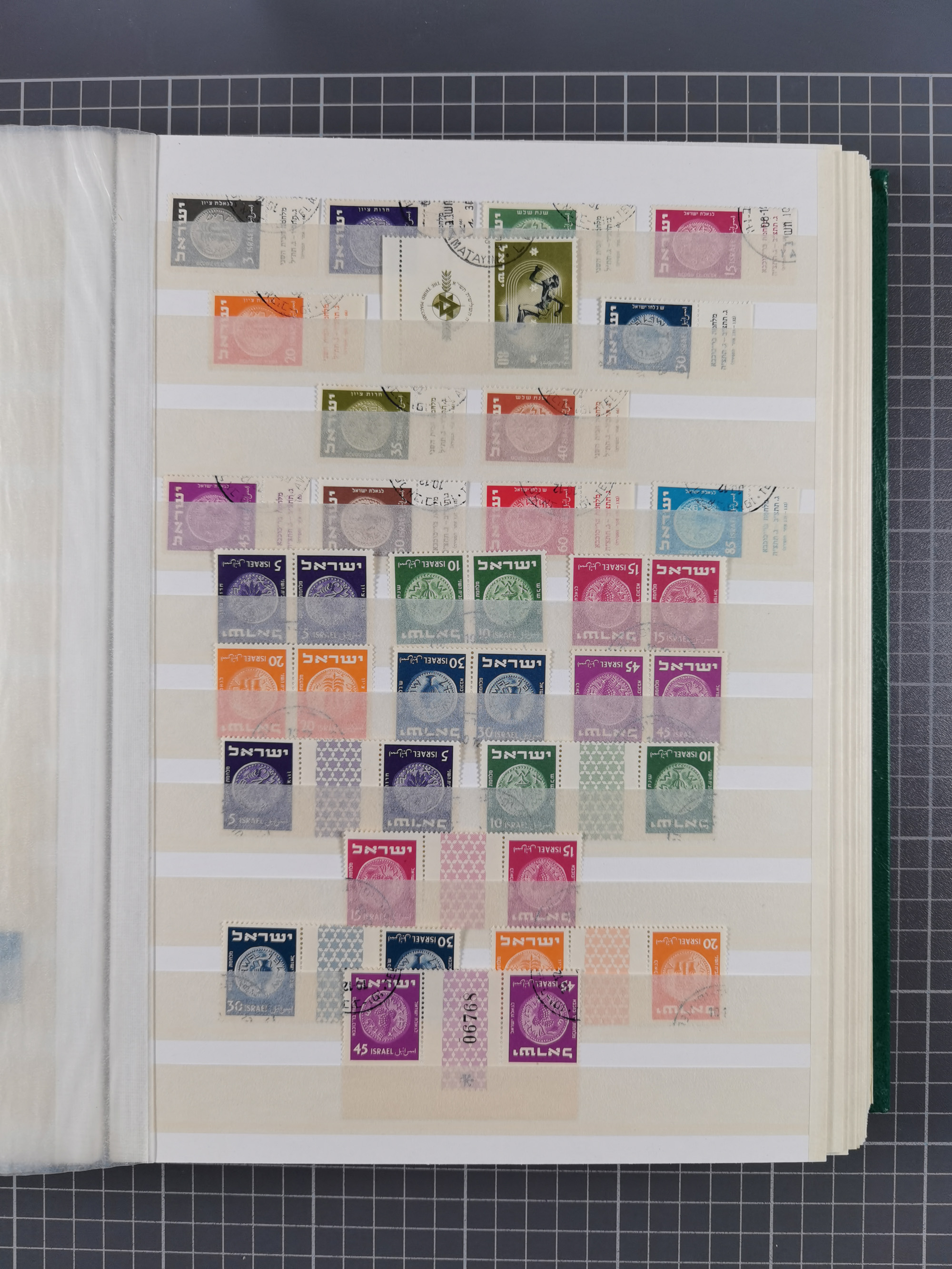 1892/1980, collection in large album starting Turkey cancellations on stamps and piece including Jaffa and Jerusalem in various types and colours. Israel early issues cancelled in gutter pairs and tete-beche gutter pairs, many full tab stamps, postage due and S/S, mostly fine.