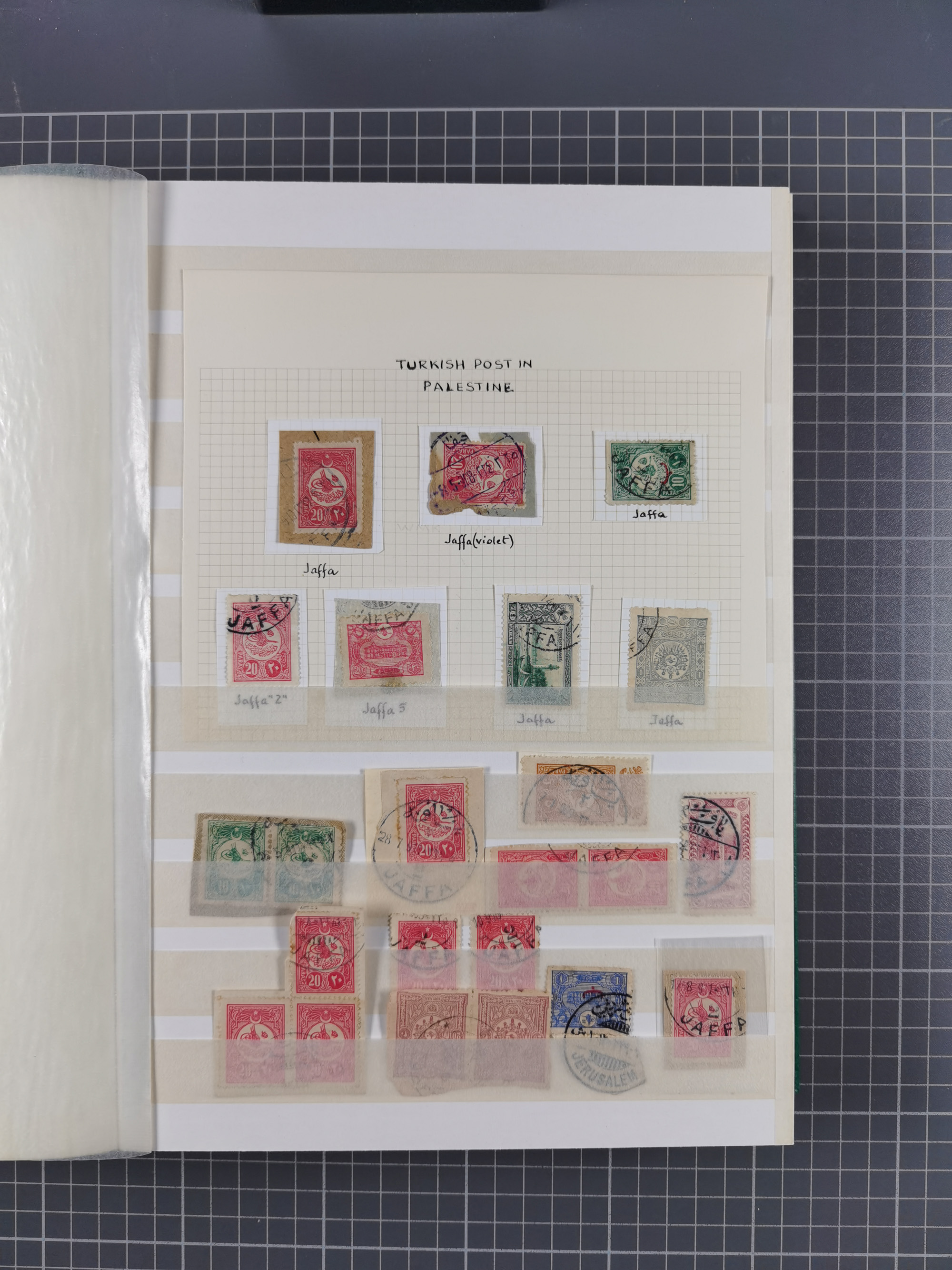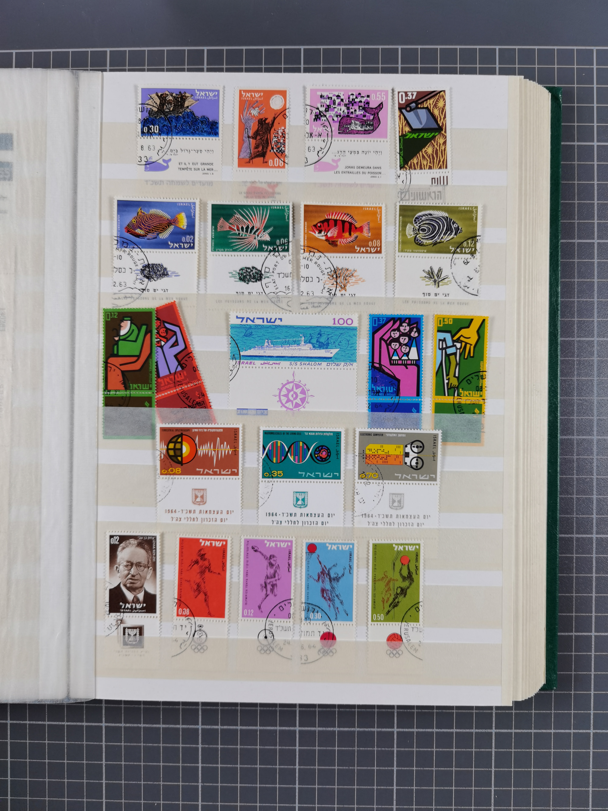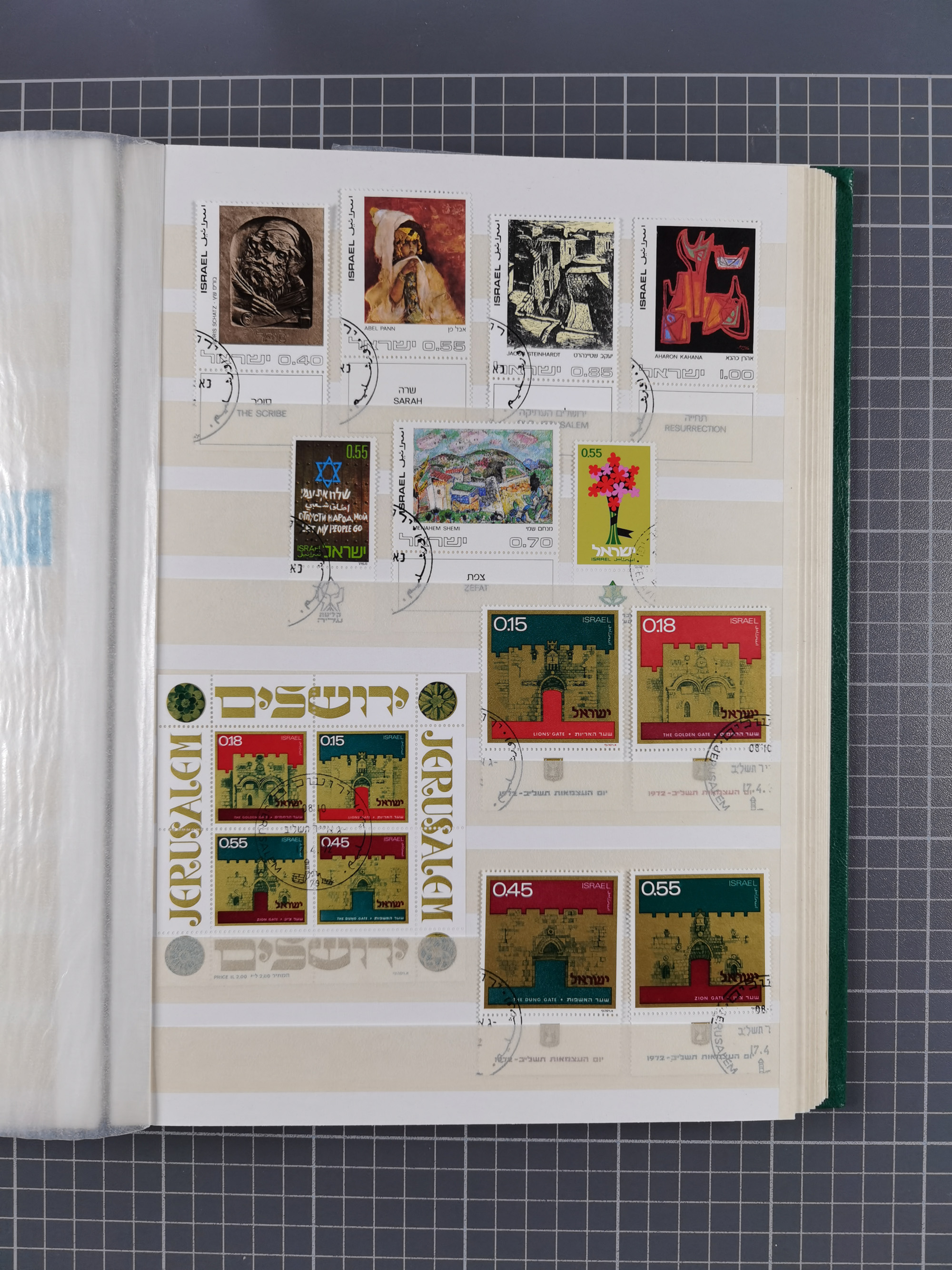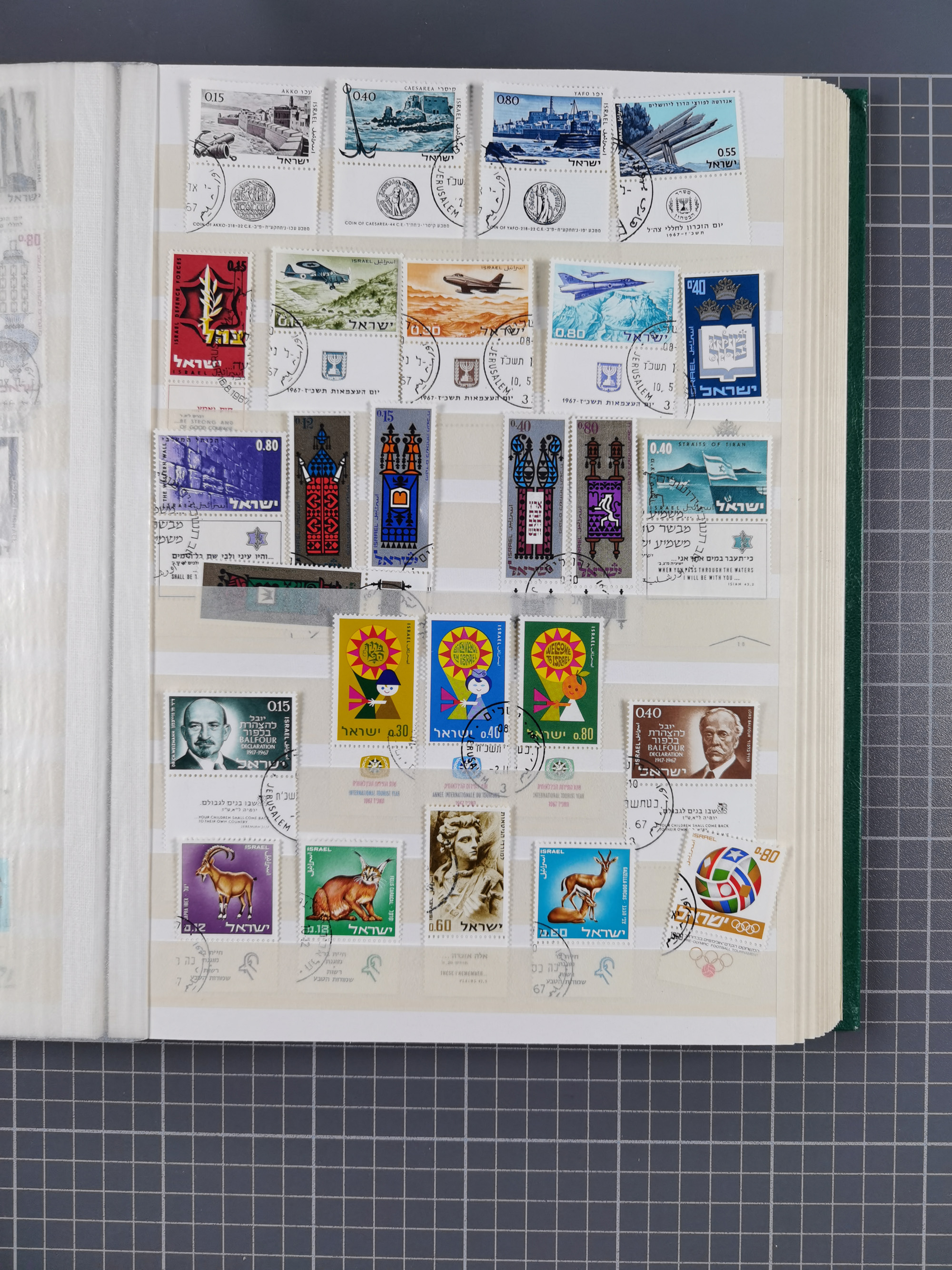 1892/1980, collection in large album starting Turkey cancellations on stamps and piece including Jaffa and Jerusalem in various types and colours. Israel early issues cancelled in gutter pairs and tete-beche gutter pairs, many full tab stamps, postage due and S/S, mostly fine.