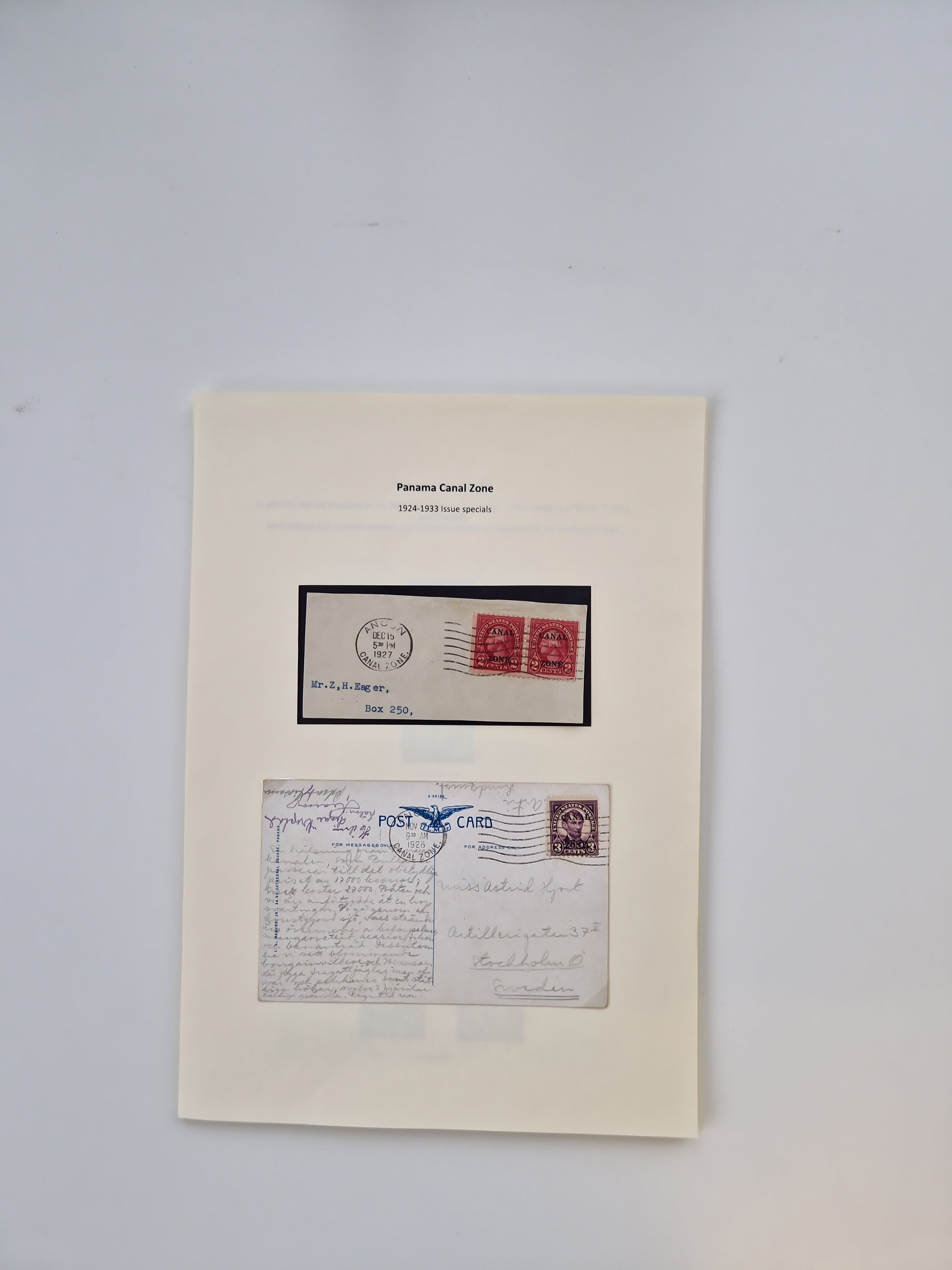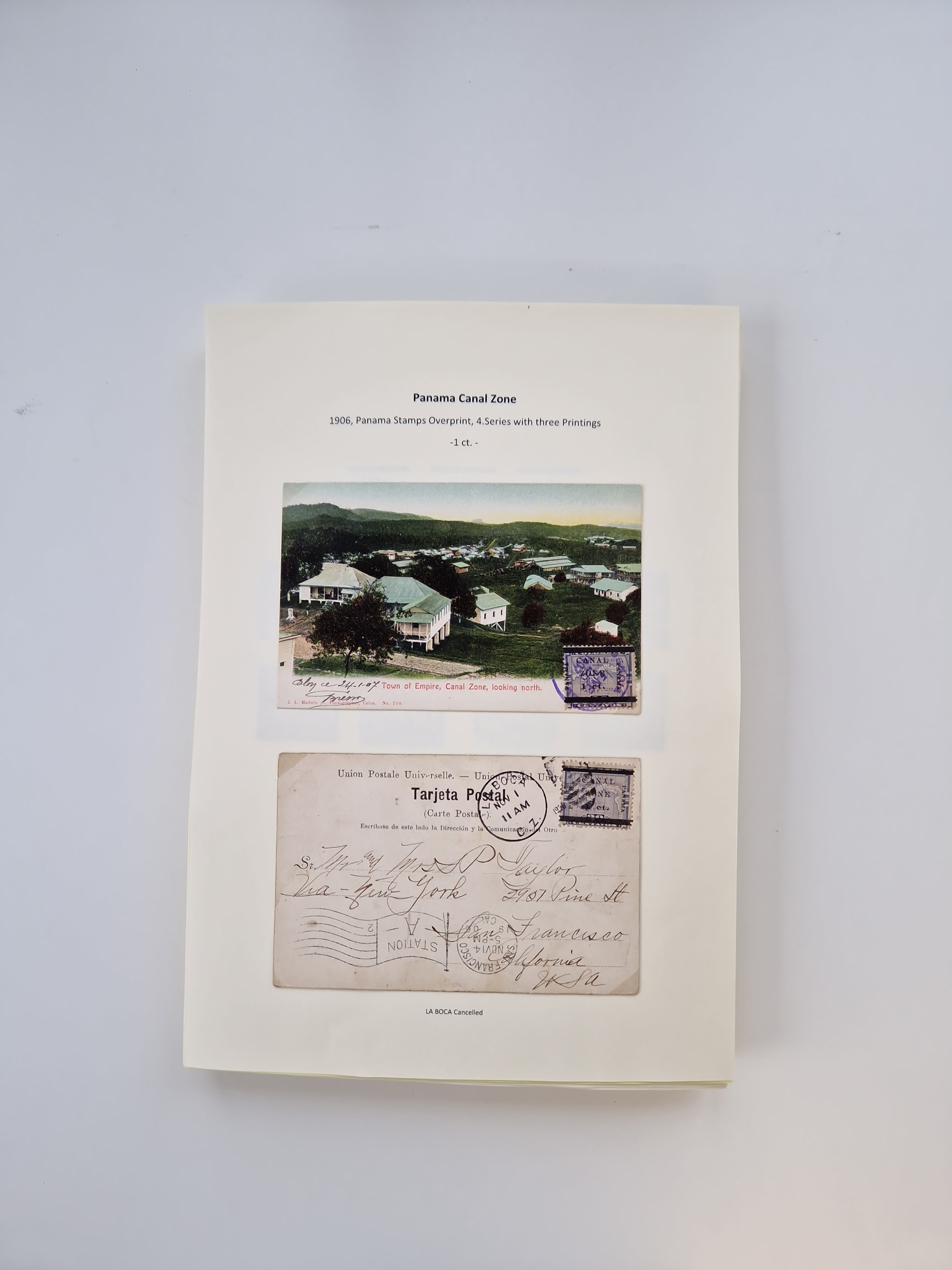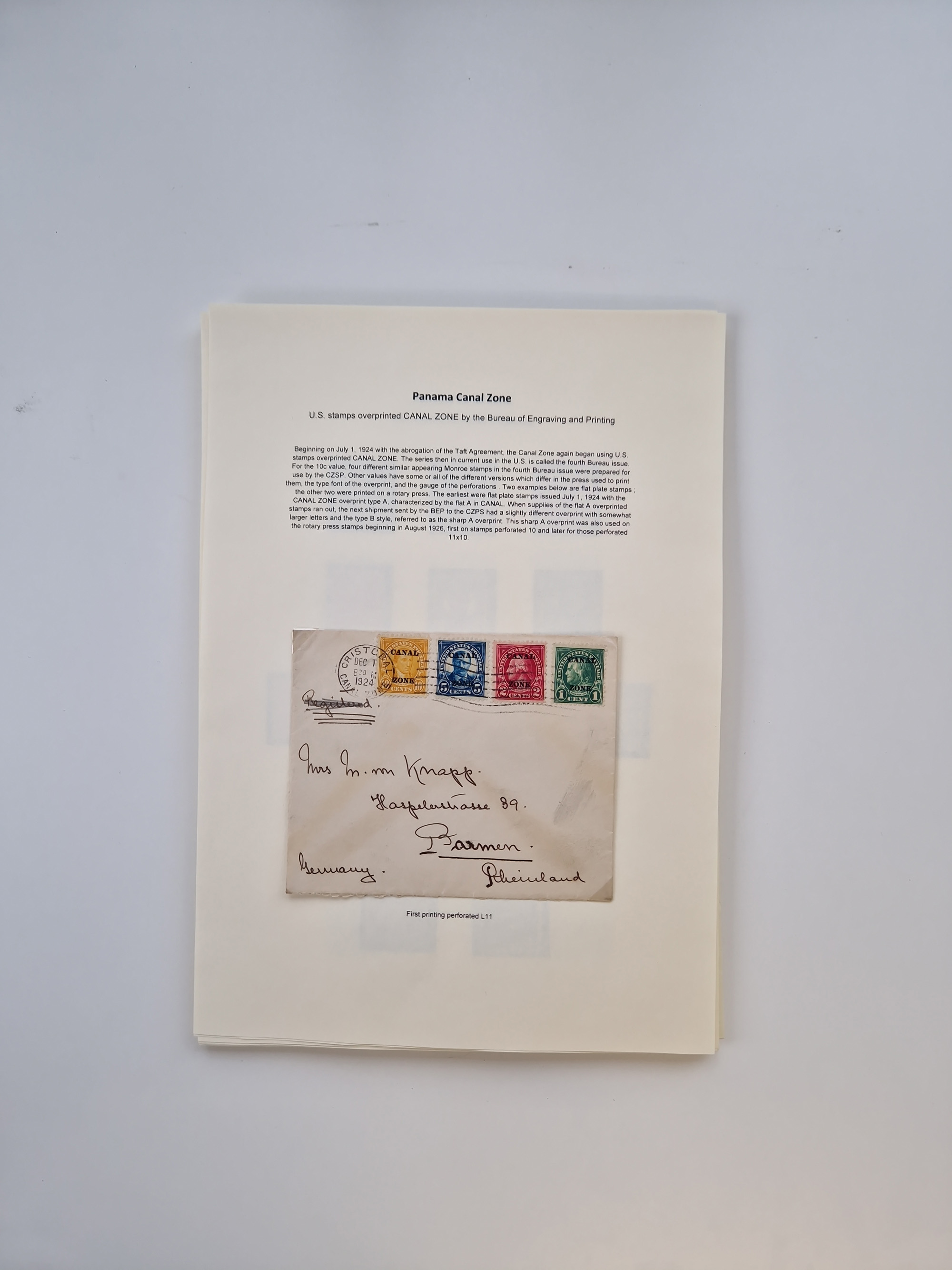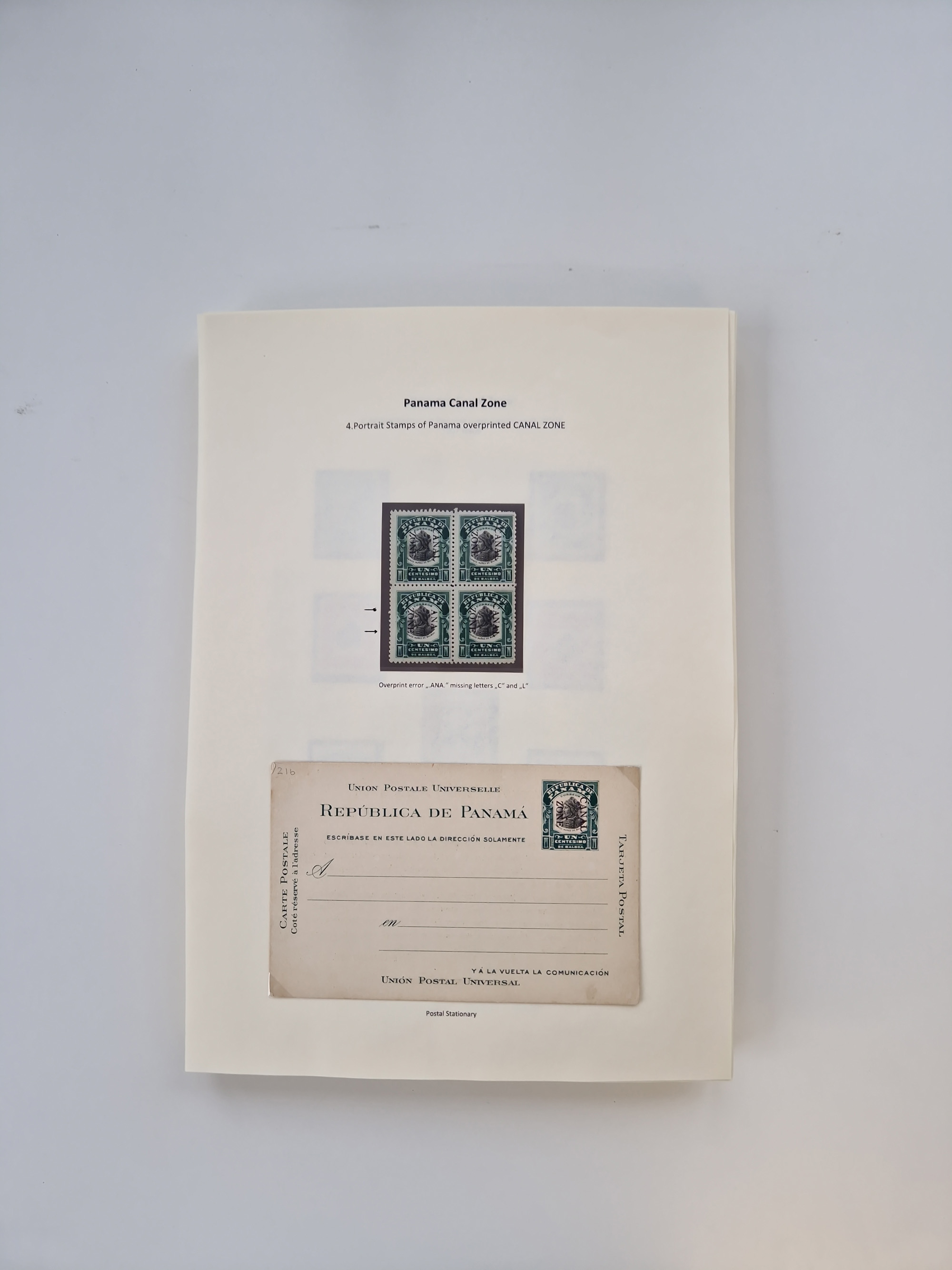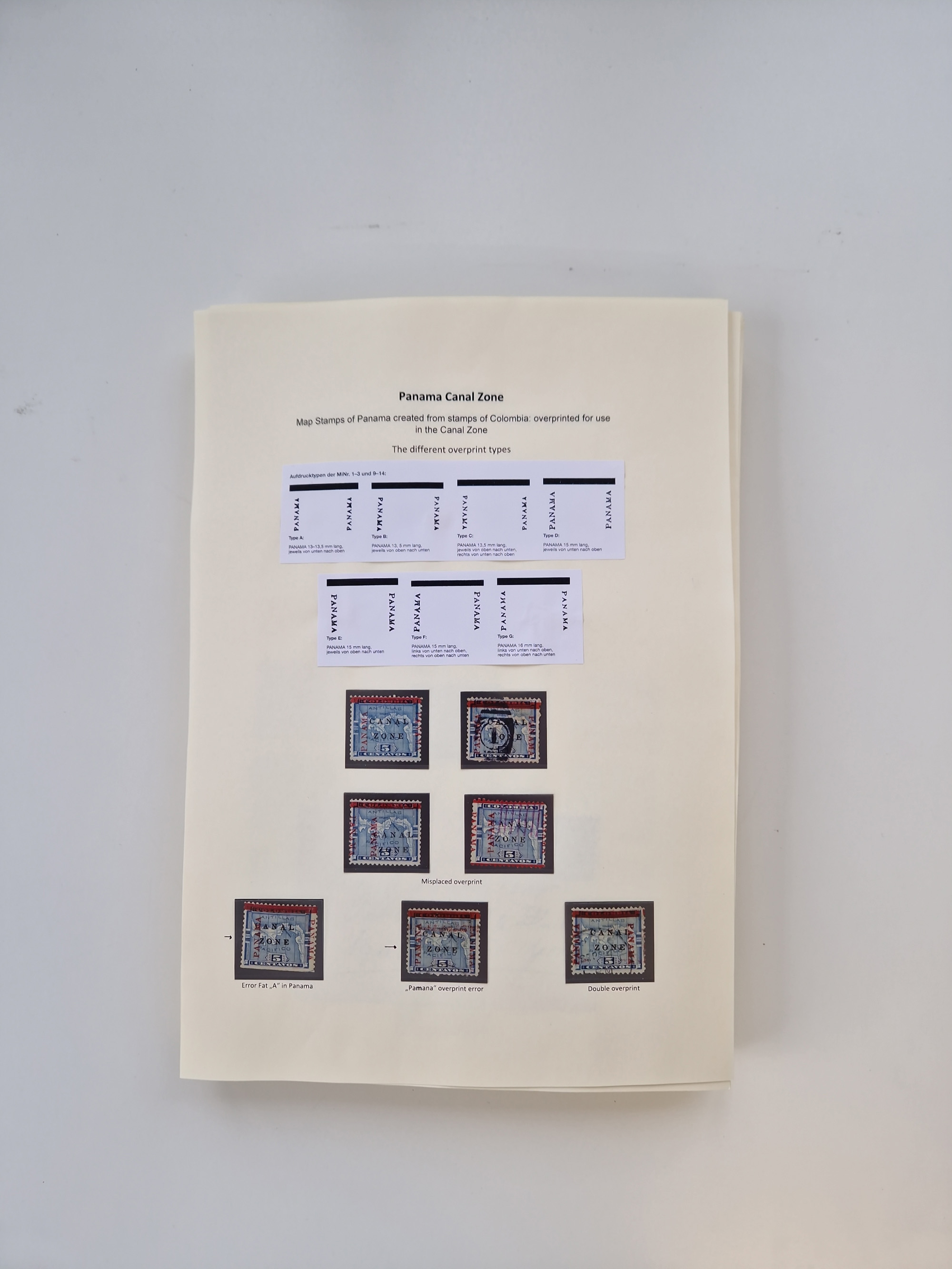 1904/78, very interesting and substantial unused and used collection with covers, starting with MI.-Nr. 1-3 unused and on cover, Mi.-Nr. 2 and 3 each on cover, Mi-.Nr. 4-8 unused and used, Mi.-Nr. 29-37, 54-68 unused, 1912/16 2c. inverted center, Unissued I-VII, many multiples including plate-numbers, overprint types and varities like Mi.-Nr. 59 as “tete-beche” pair with right stamp showing inverted “CANAL”, Specimen, booklet panes, different perforations, many varities throughout, also Officials and Postage Due, cards and covers, postal stationery including Cordoba 2 c. with variety “Vignette & CANAL ZONE” only, and a few items incoming mail, all neatly written up on pages, some certificates and literature, mostly good condition