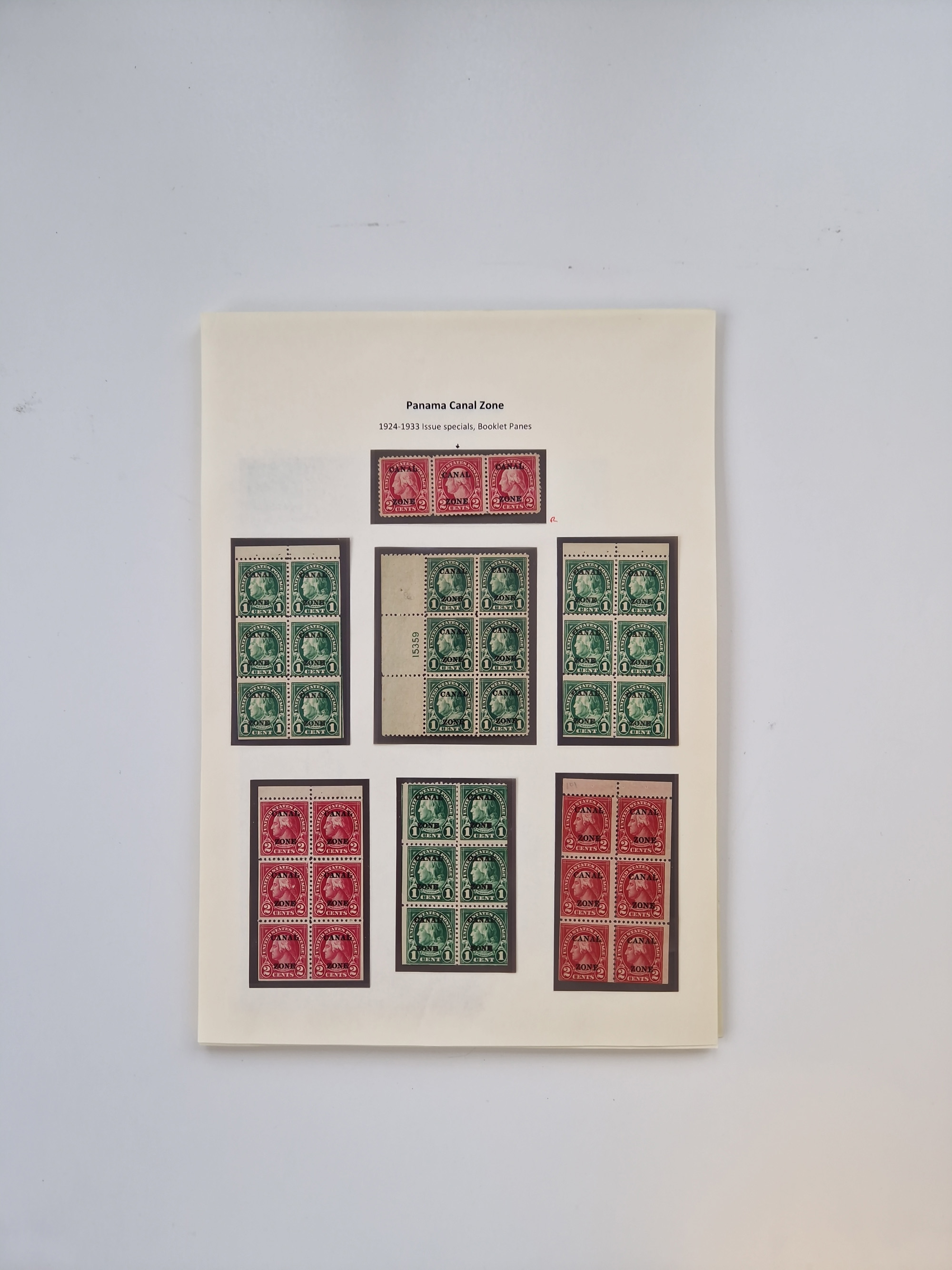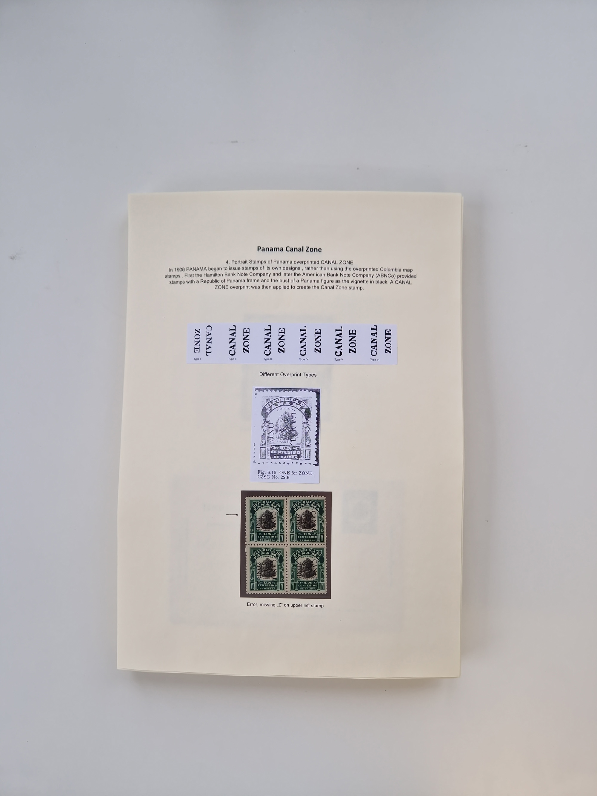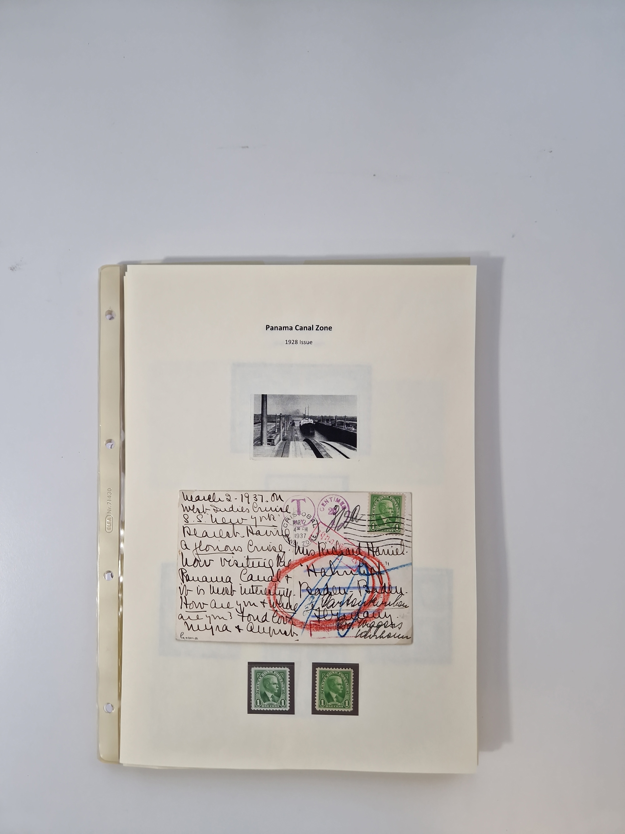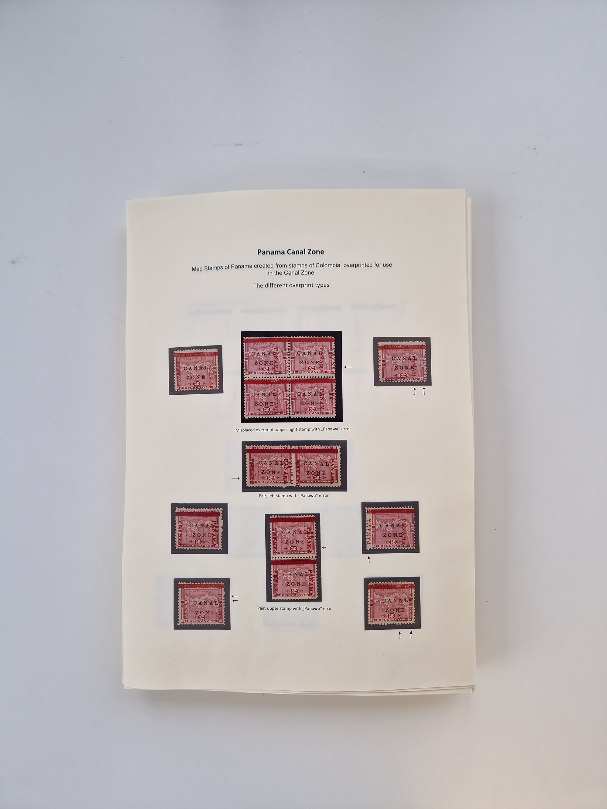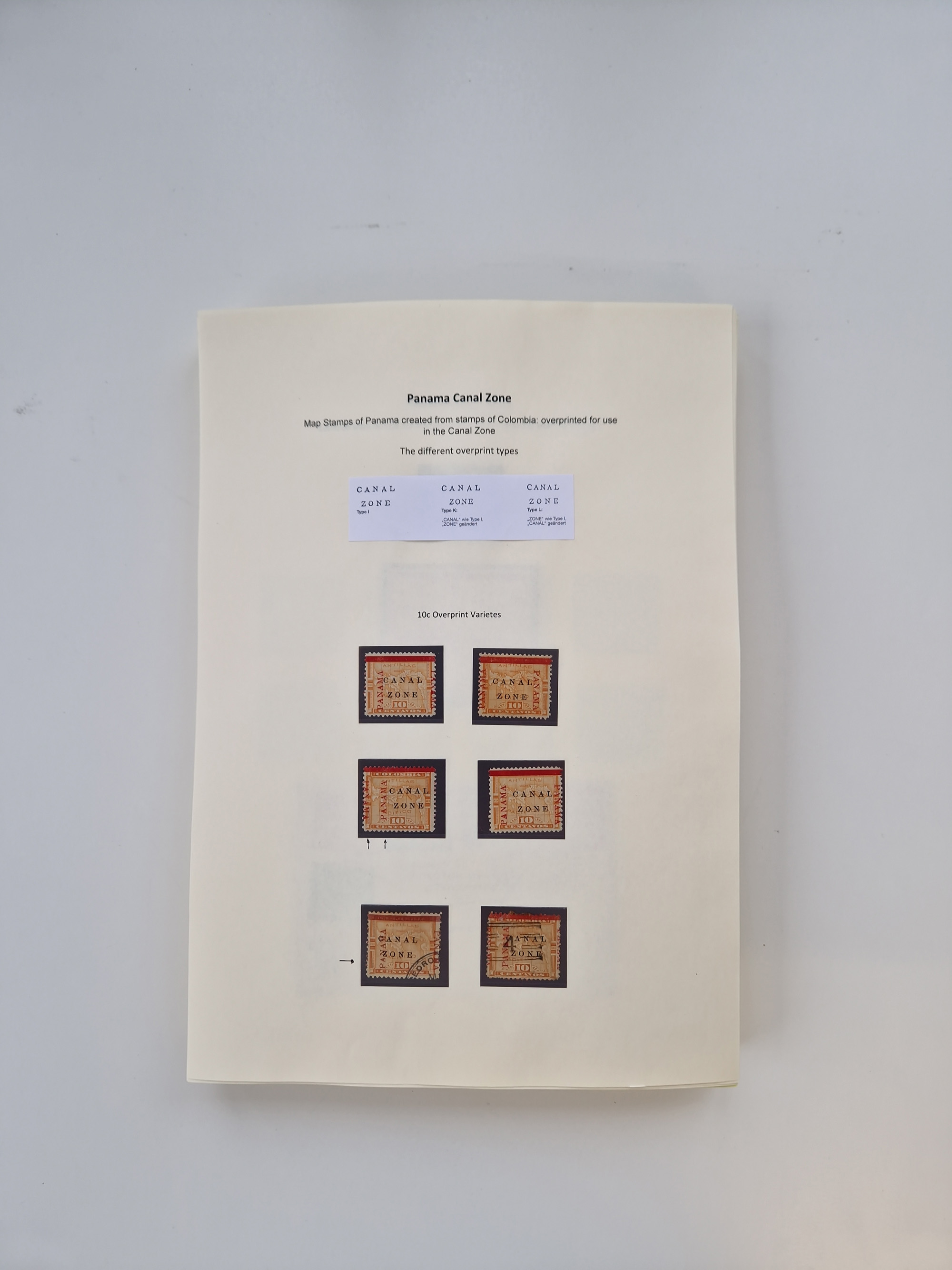 1904/78, very interesting and substantial unused and used collection with covers, starting with MI.-Nr. 1-3 unused and on cover, Mi.-Nr. 2 and 3 each on cover, Mi-.Nr. 4-8 unused and used, Mi.-Nr. 29-37, 54-68 unused, 1912/16 2c. inverted center, Unissued I-VII, many multiples including plate-numbers, overprint types and varities like Mi.-Nr. 59 as “tete-beche” pair with right stamp showing inverted “CANAL”, Specimen, booklet panes, different perforations, many varities throughout, also Officials and Postage Due, cards and covers, postal stationery including Cordoba 2 c. with variety “Vignette & CANAL ZONE” only, and a few items incoming mail, all neatly written up on pages, some certificates and literature, mostly good condition