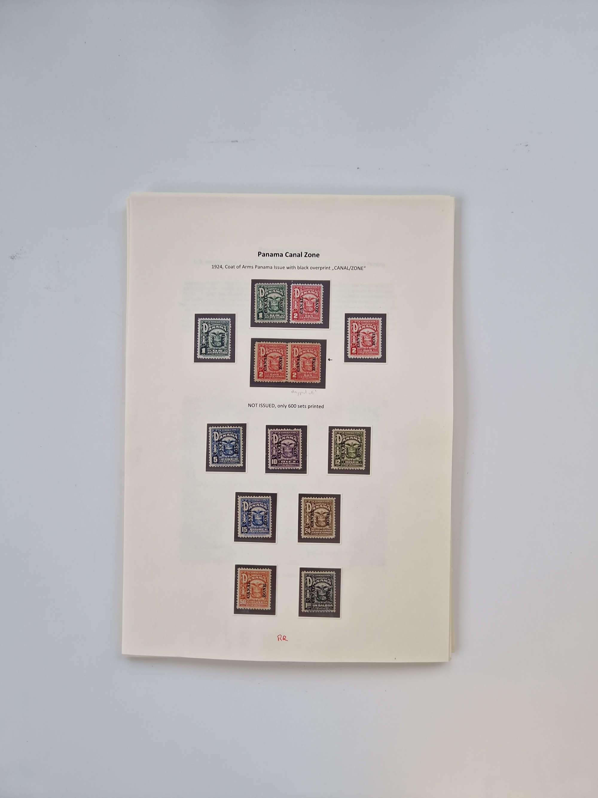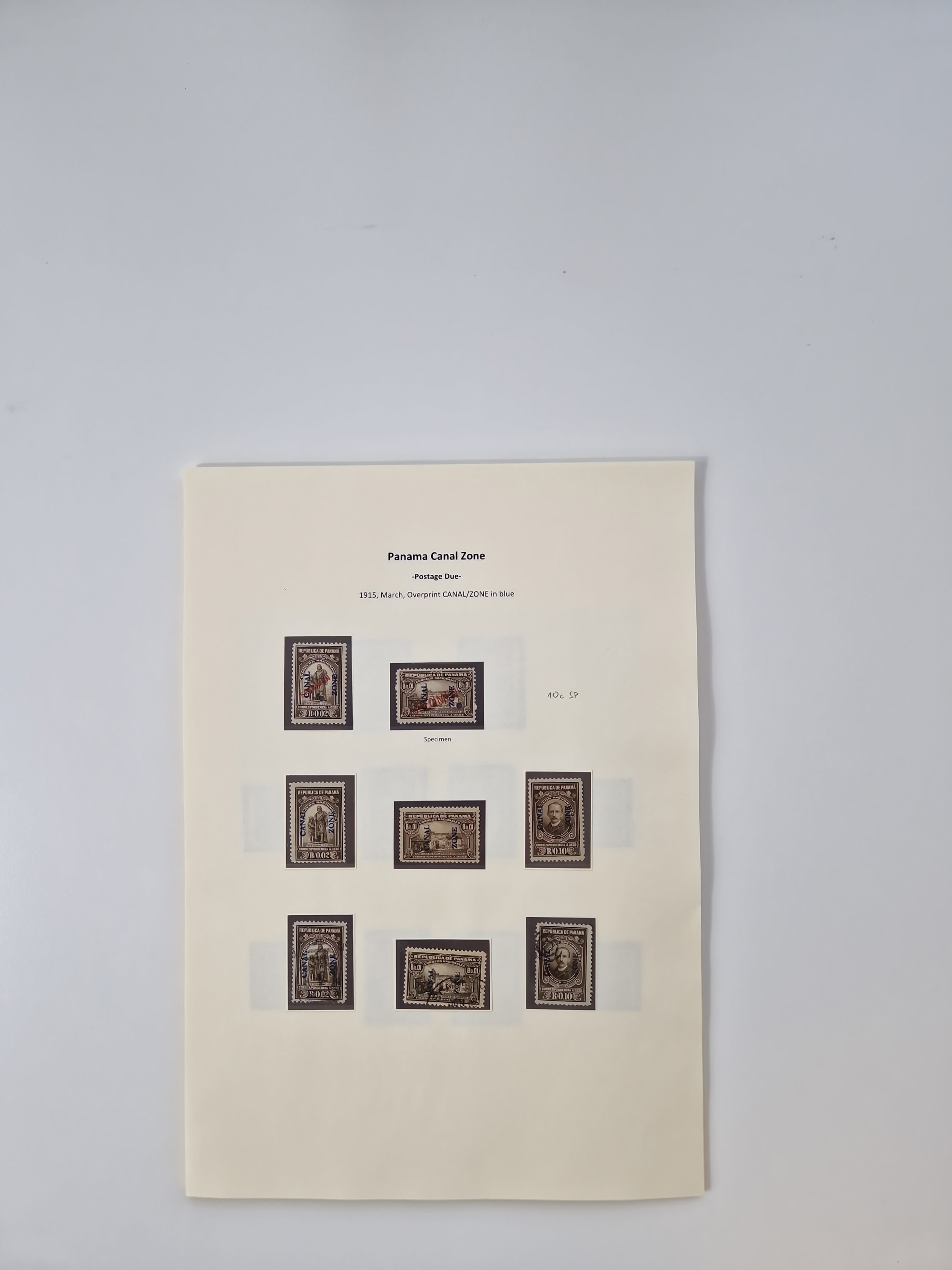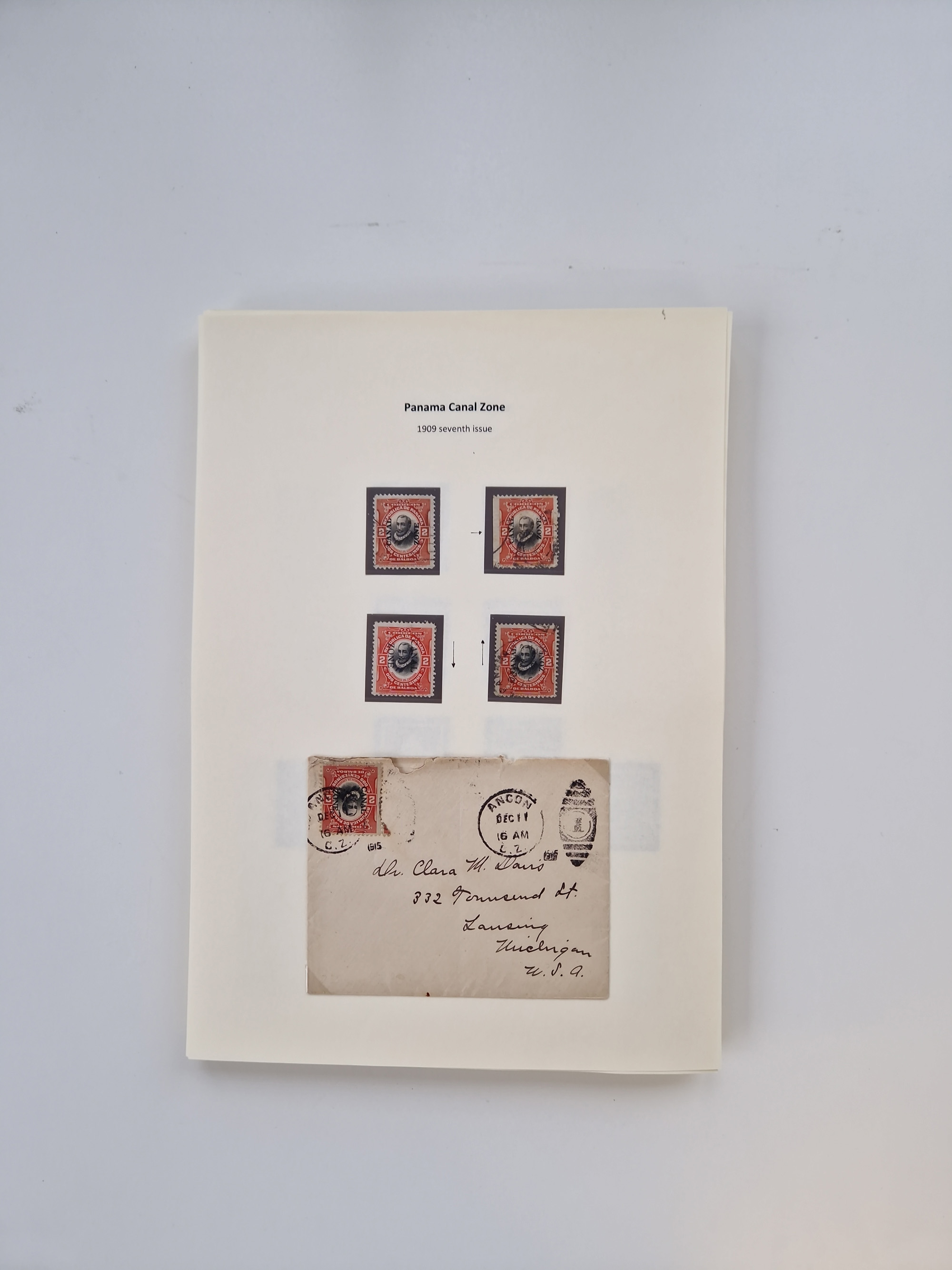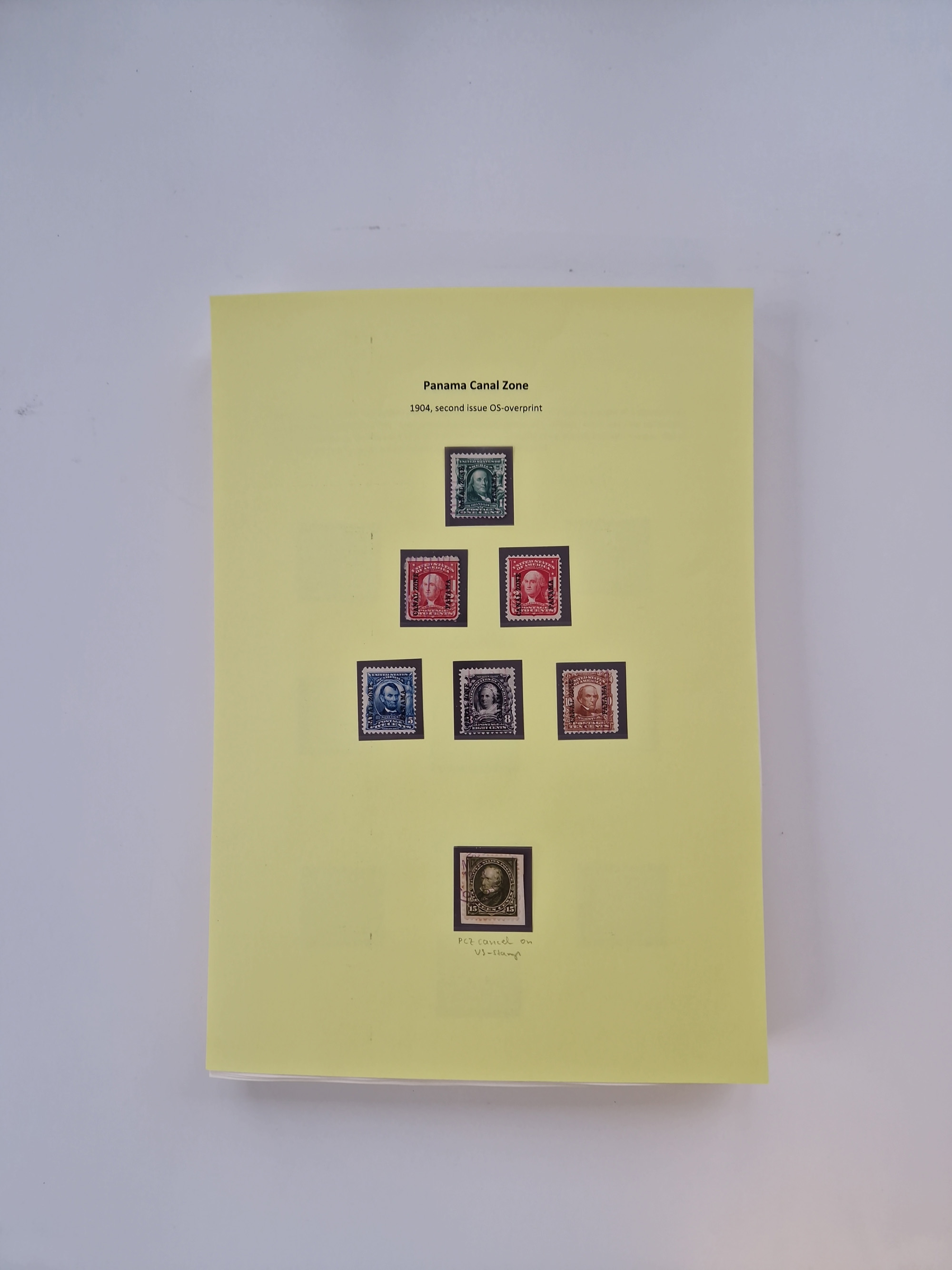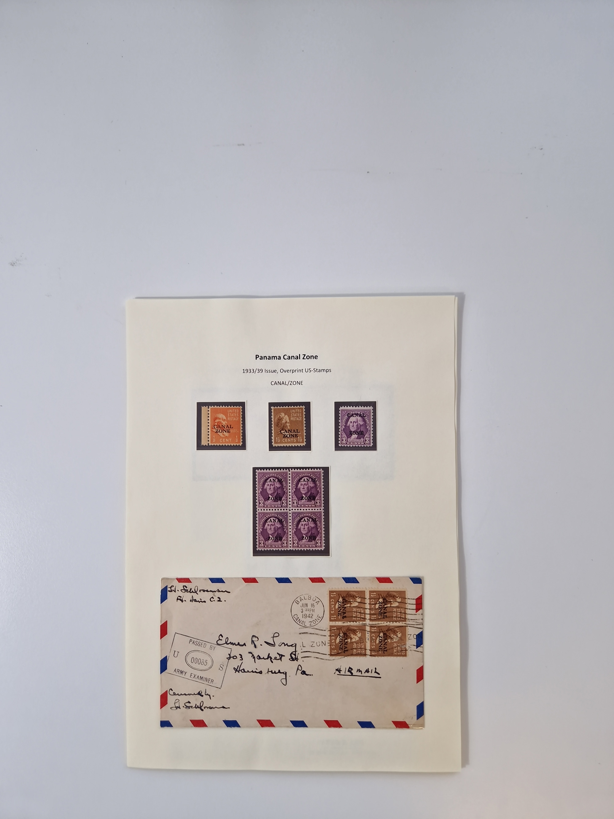 1904/78, very interesting and substantial unused and used collection with covers, starting with MI.-Nr. 1-3 unused and on cover, Mi.-Nr. 2 and 3 each on cover, Mi-.Nr. 4-8 unused and used, Mi.-Nr. 29-37, 54-68 unused, 1912/16 2c. inverted center, Unissued I-VII, many multiples including plate-numbers, overprint types and varities like Mi.-Nr. 59 as “tete-beche” pair with right stamp showing inverted “CANAL”, Specimen, booklet panes, different perforations, many varities throughout, also Officials and Postage Due, cards and covers, postal stationery including Cordoba 2 c. with variety “Vignette & CANAL ZONE” only, and a few items incoming mail, all neatly written up on pages, some certificates and literature, mostly good condition