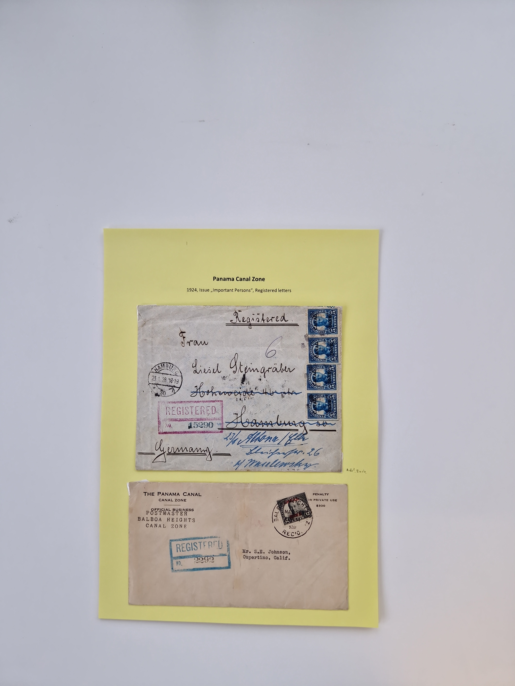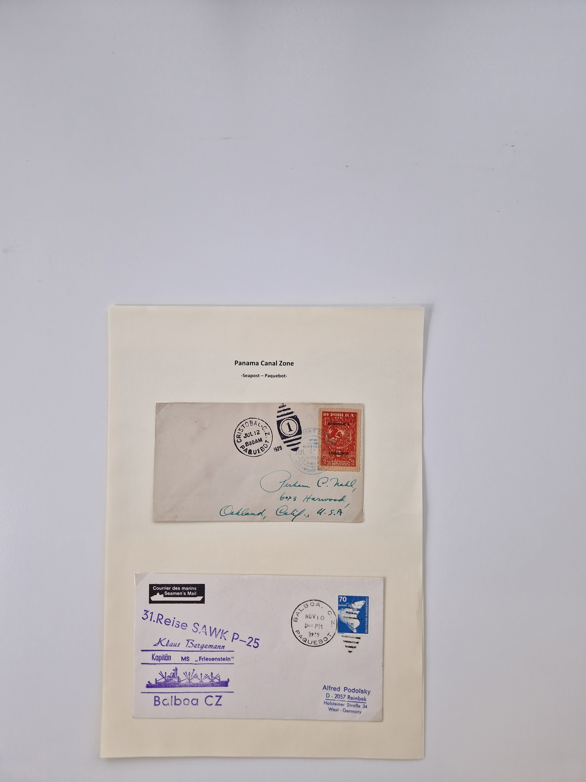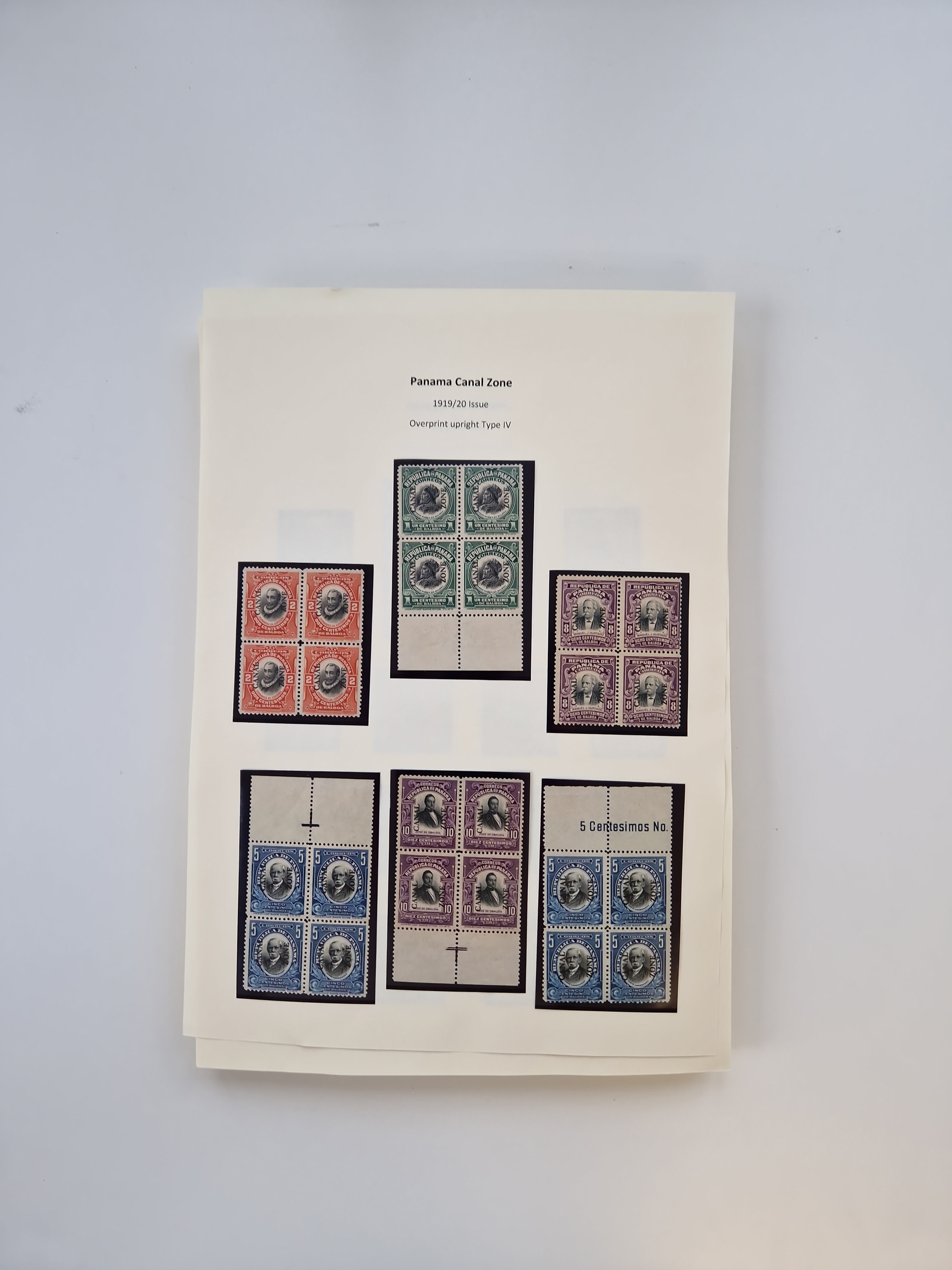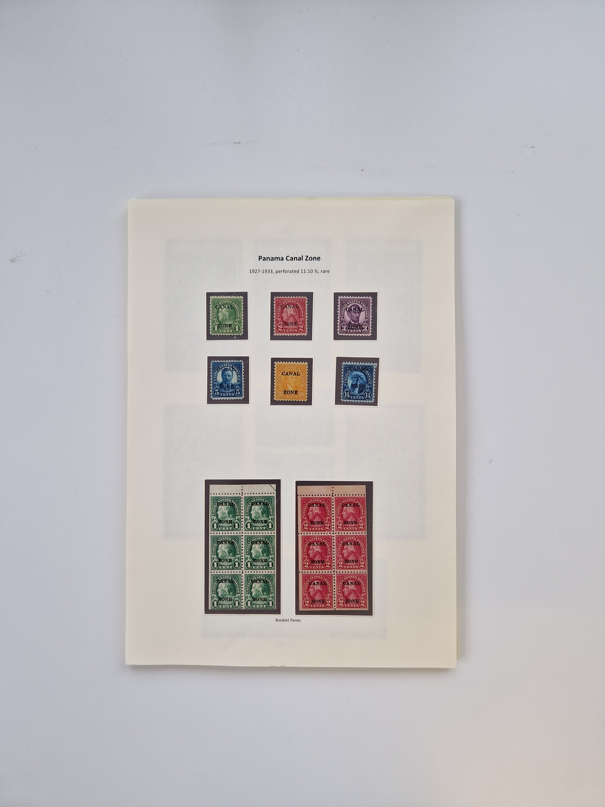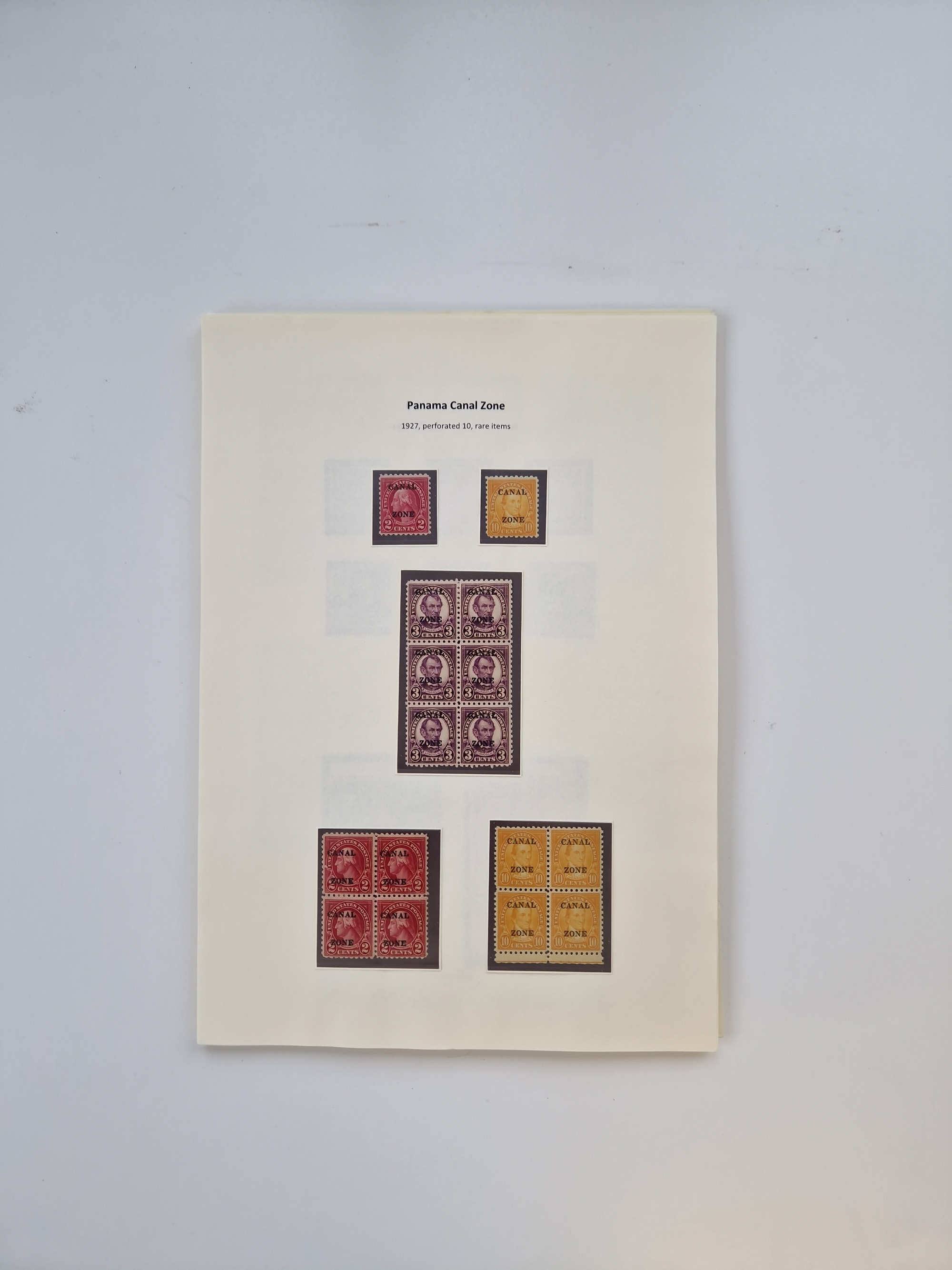 1904/78, very interesting and substantial unused and used collection with covers, starting with MI.-Nr. 1-3 unused and on cover, Mi.-Nr. 2 and 3 each on cover, Mi-.Nr. 4-8 unused and used, Mi.-Nr. 29-37, 54-68 unused, 1912/16 2c. inverted center, Unissued I-VII, many multiples including plate-numbers, overprint types and varities like Mi.-Nr. 59 as “tete-beche” pair with right stamp showing inverted “CANAL”, Specimen, booklet panes, different perforations, many varities throughout, also Officials and Postage Due, cards and covers, postal stationery including Cordoba 2 c. with variety “Vignette & CANAL ZONE” only, and a few items incoming mail, all neatly written up on pages, some certificates and literature, mostly good condition