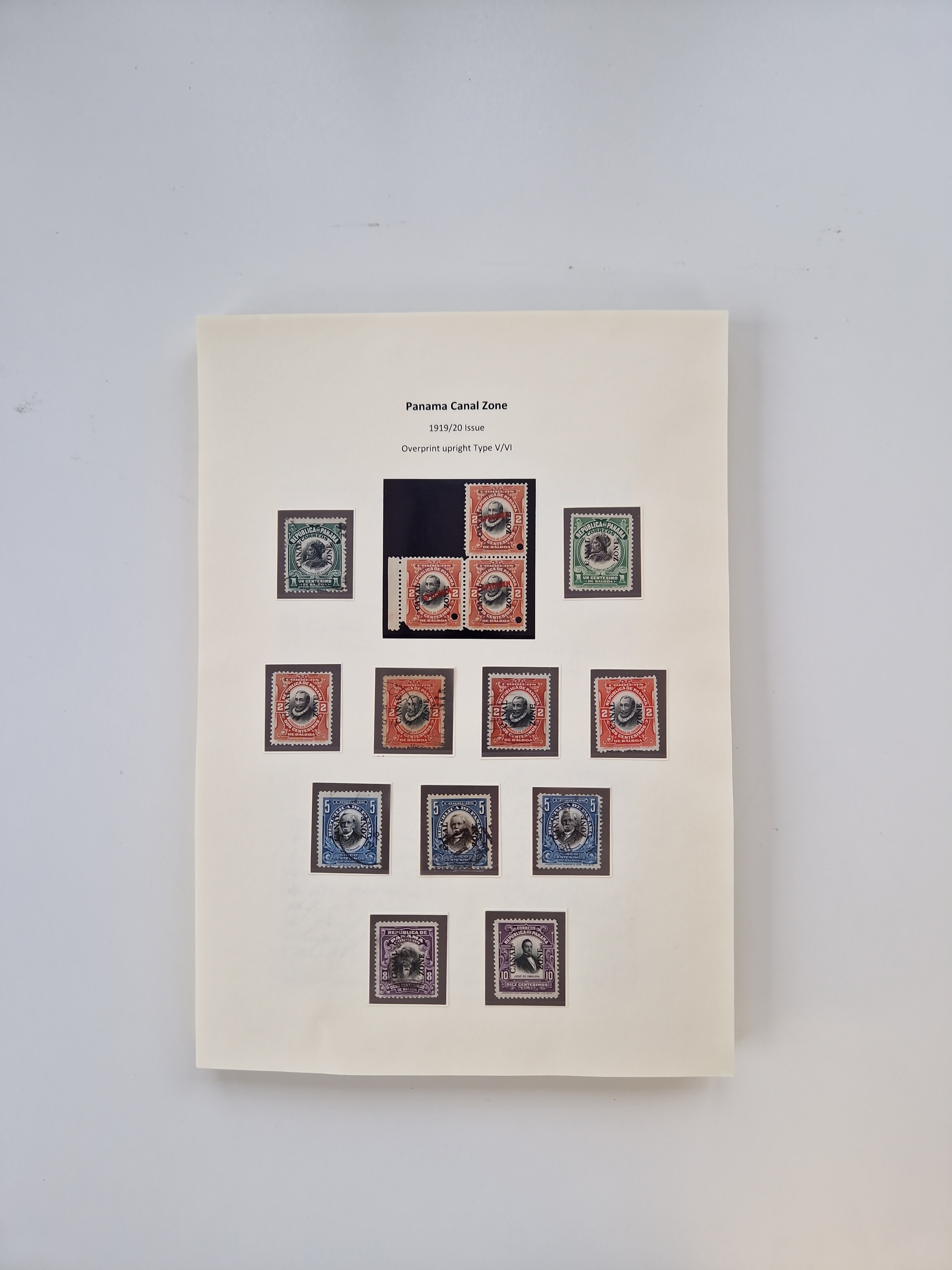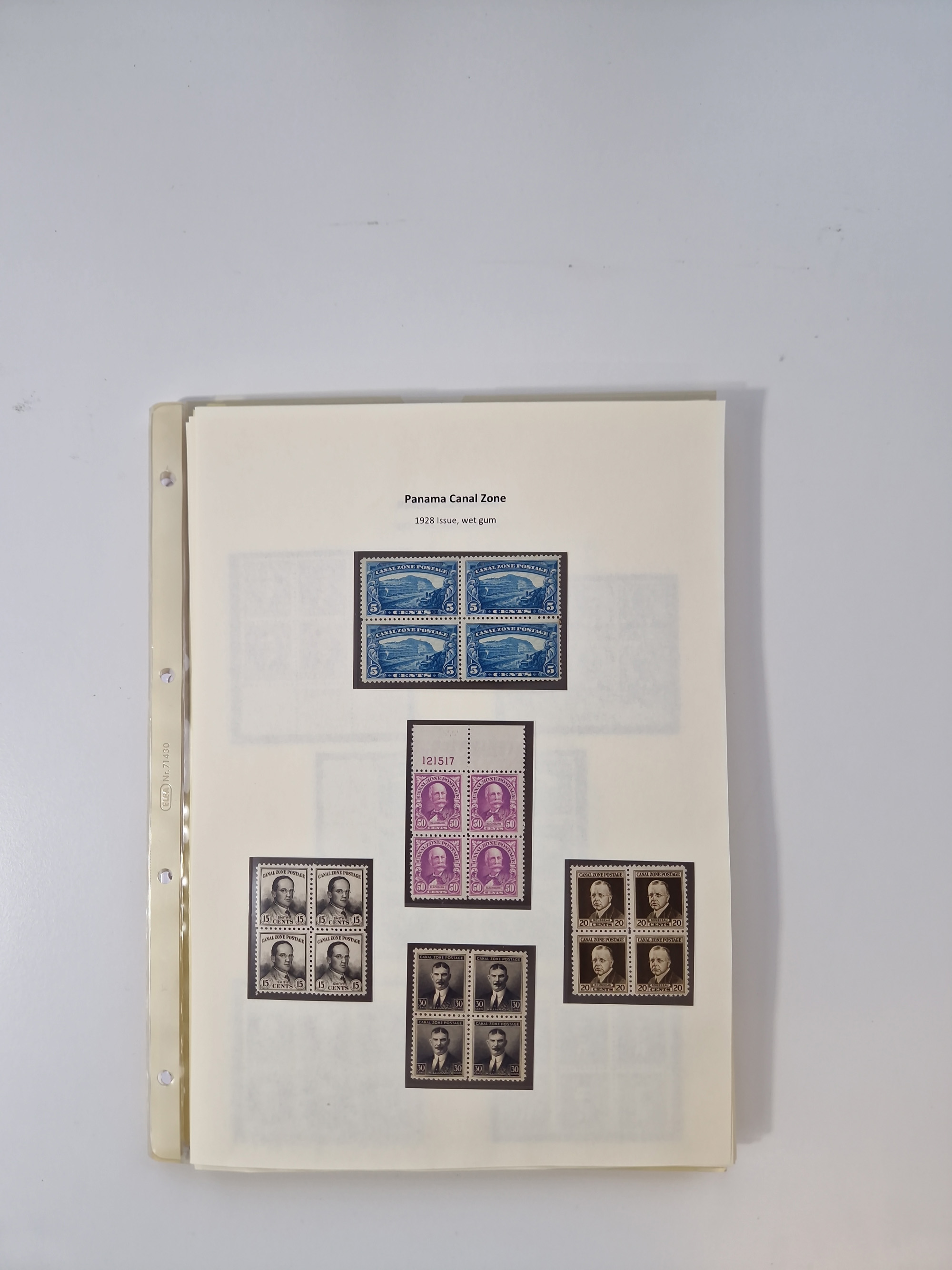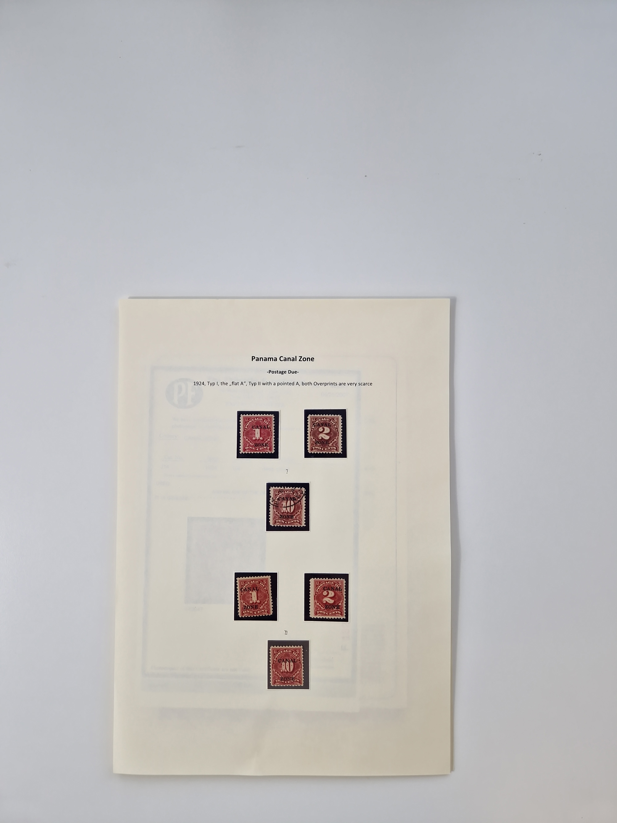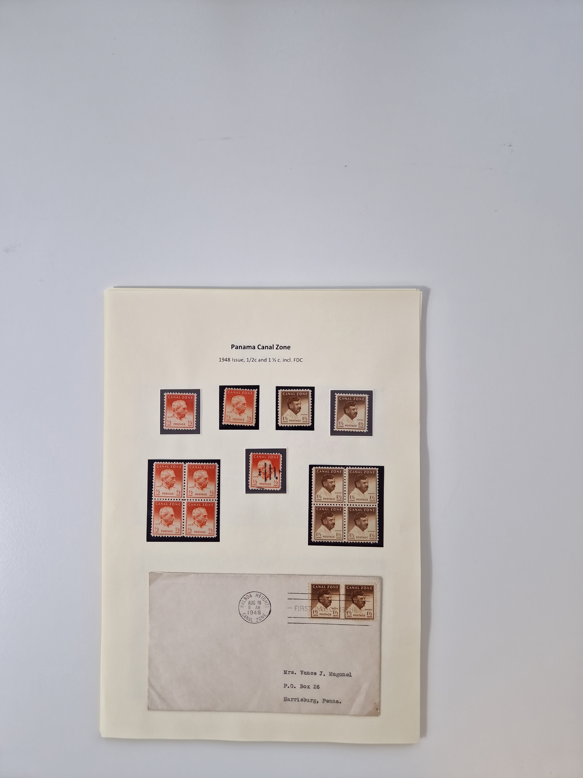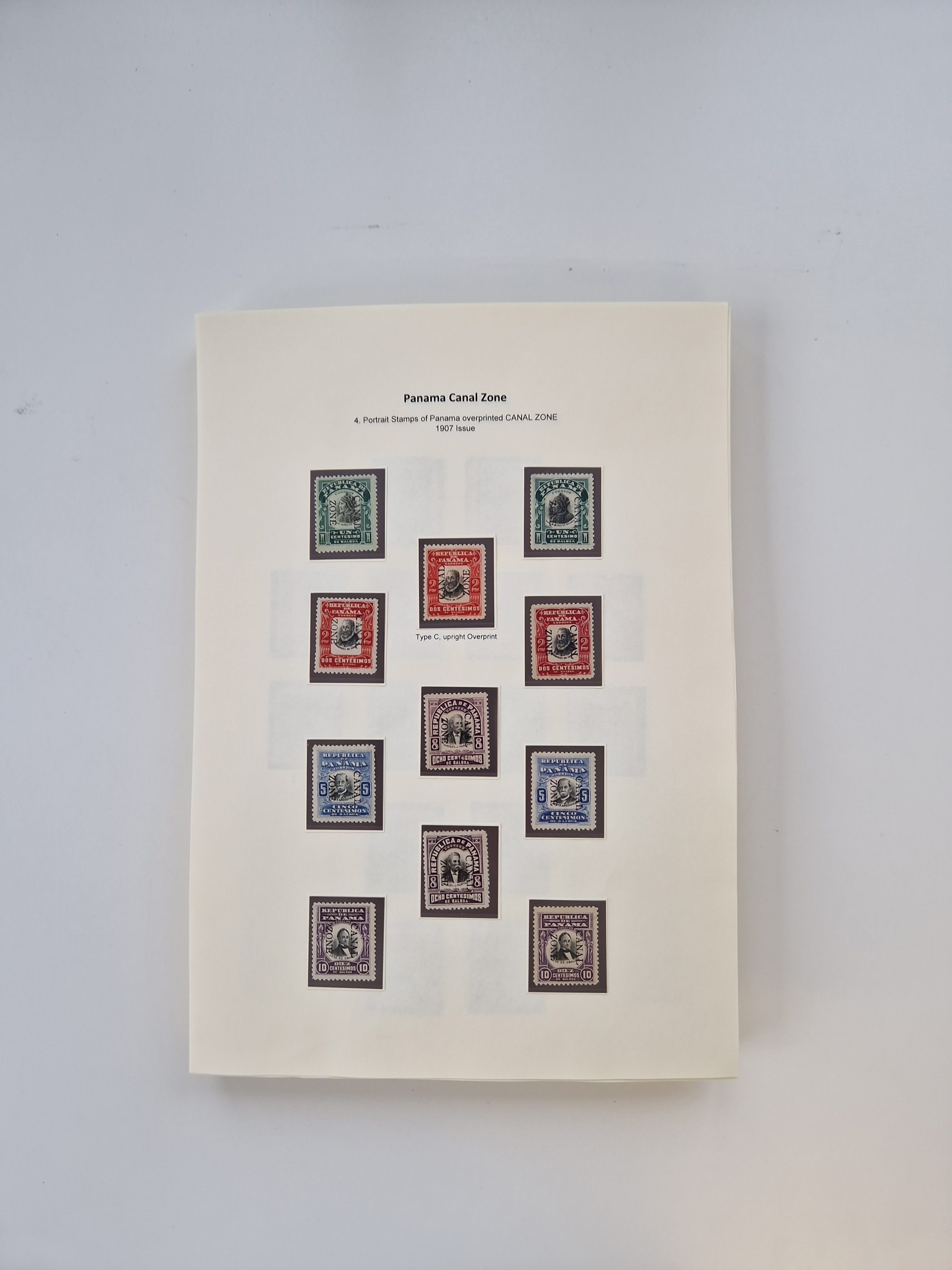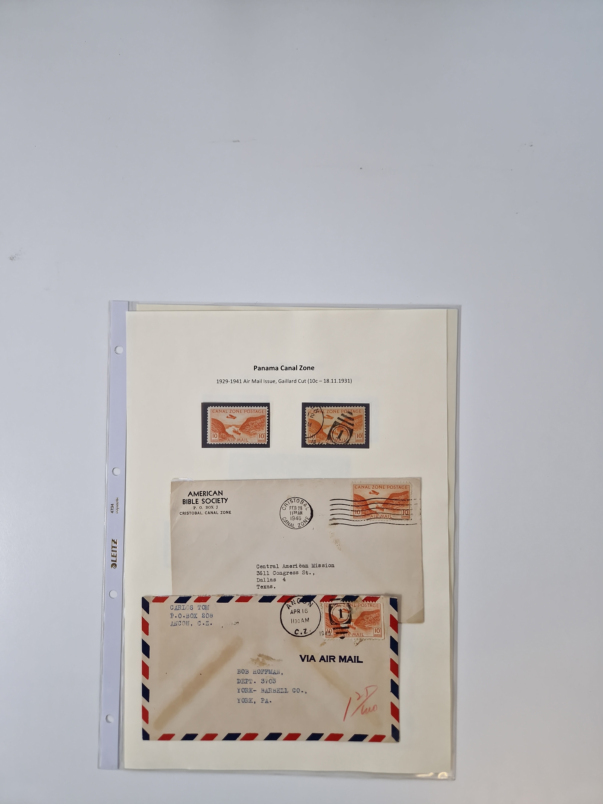 1904/78, very interesting and substantial unused and used collection with covers, starting with MI.-Nr. 1-3 unused and on cover, Mi.-Nr. 2 and 3 each on cover, Mi-.Nr. 4-8 unused and used, Mi.-Nr. 29-37, 54-68 unused, 1912/16 2c. inverted center, Unissued I-VII, many multiples including plate-numbers, overprint types and varities like Mi.-Nr. 59 as “tete-beche” pair with right stamp showing inverted “CANAL”, Specimen, booklet panes, different perforations, many varities throughout, also Officials and Postage Due, cards and covers, postal stationery including Cordoba 2 c. with variety “Vignette & CANAL ZONE” only, and a few items incoming mail, all neatly written up on pages, some certificates and literature, mostly good condition