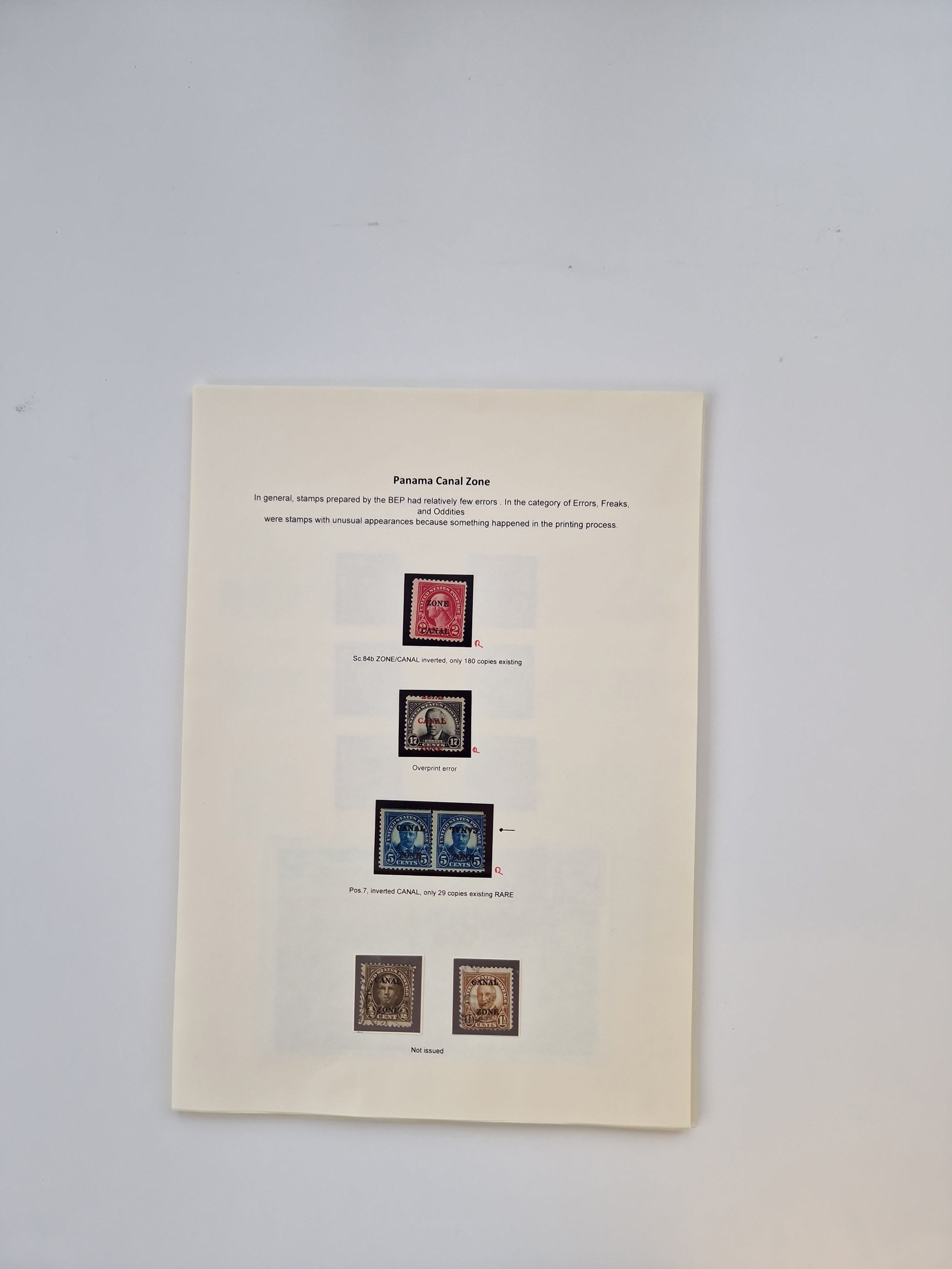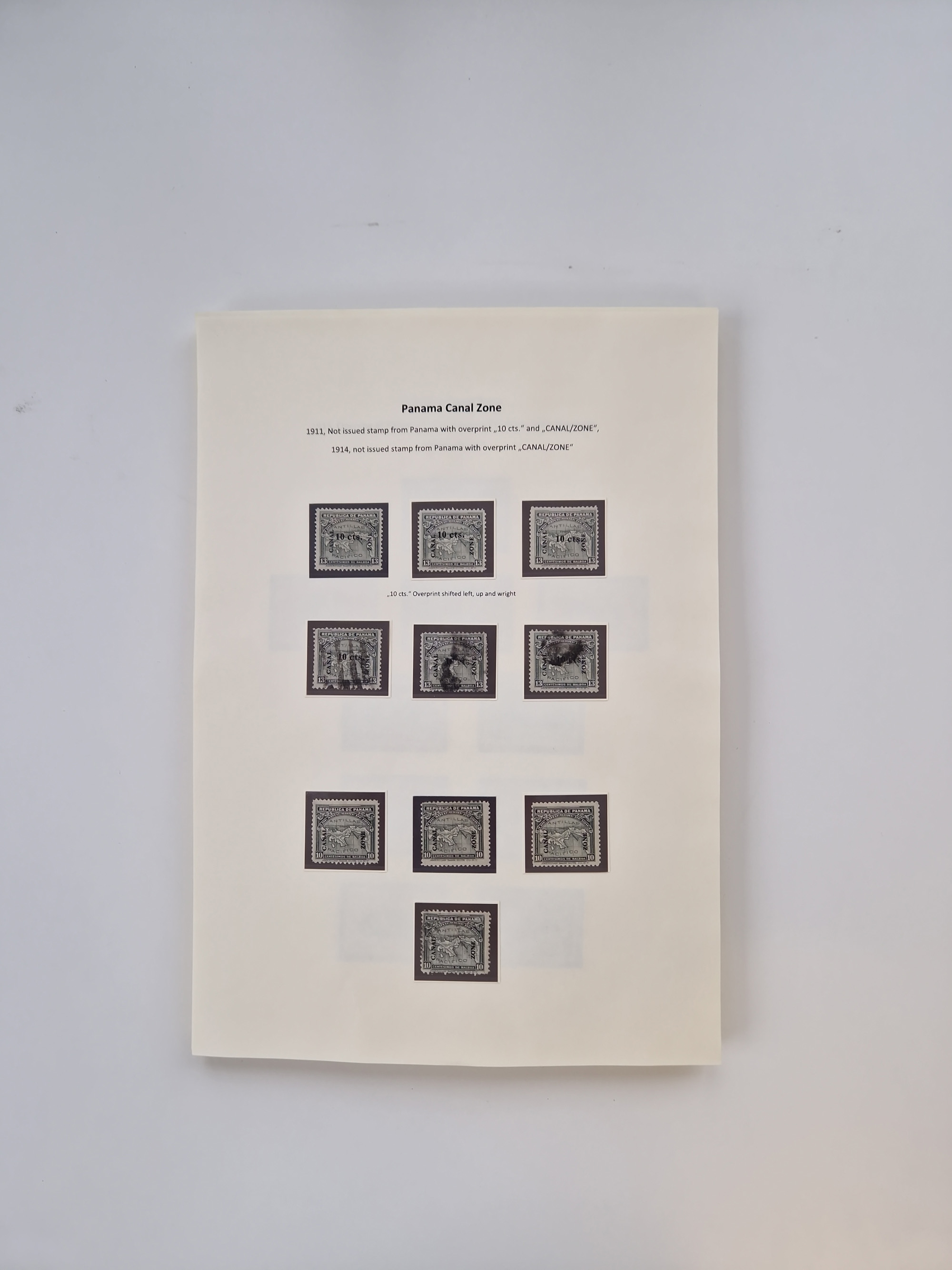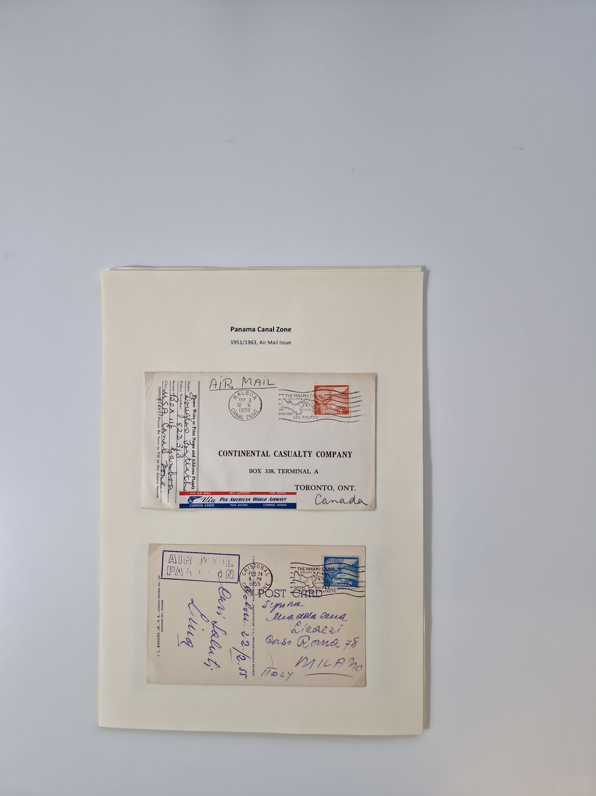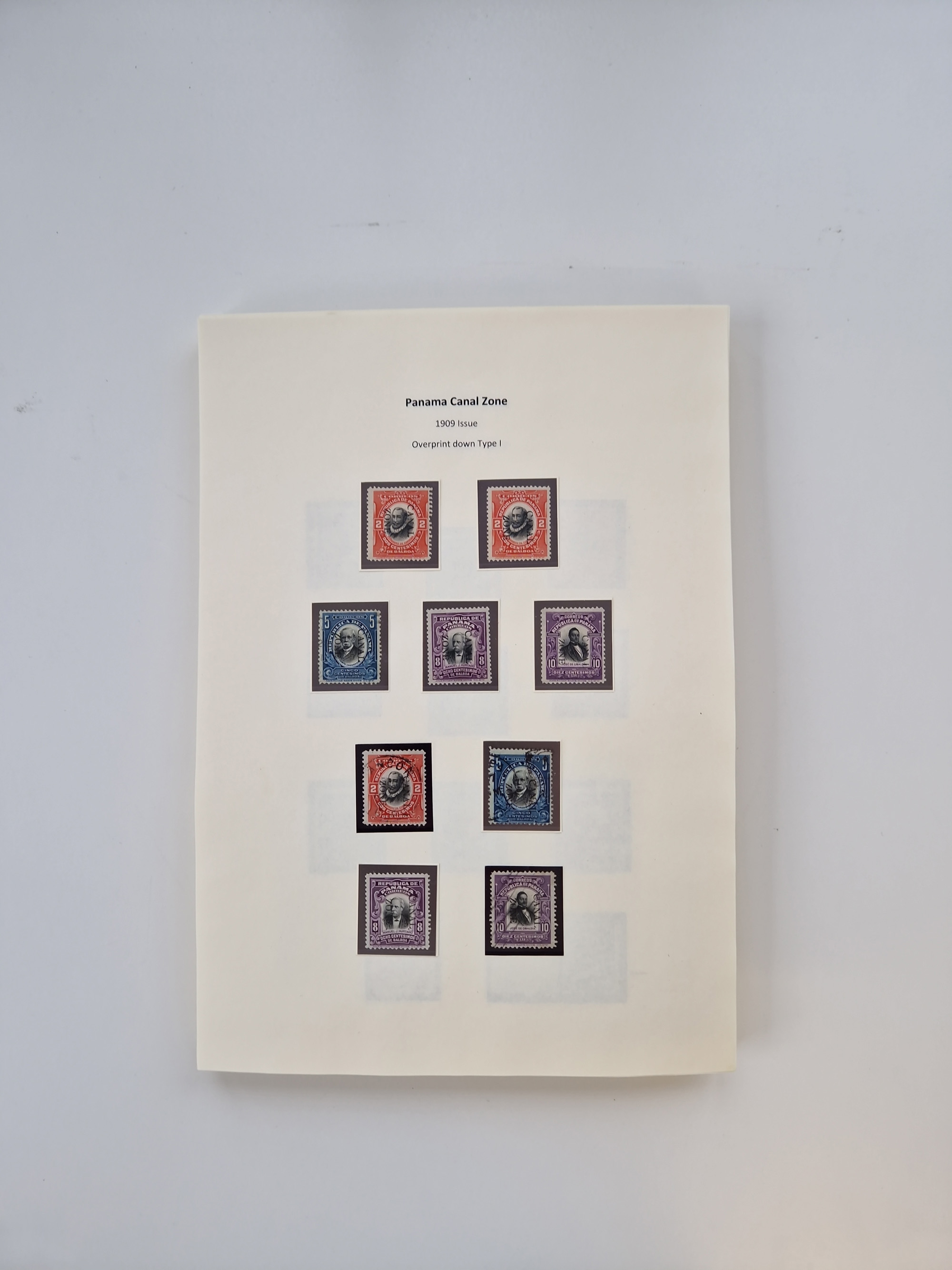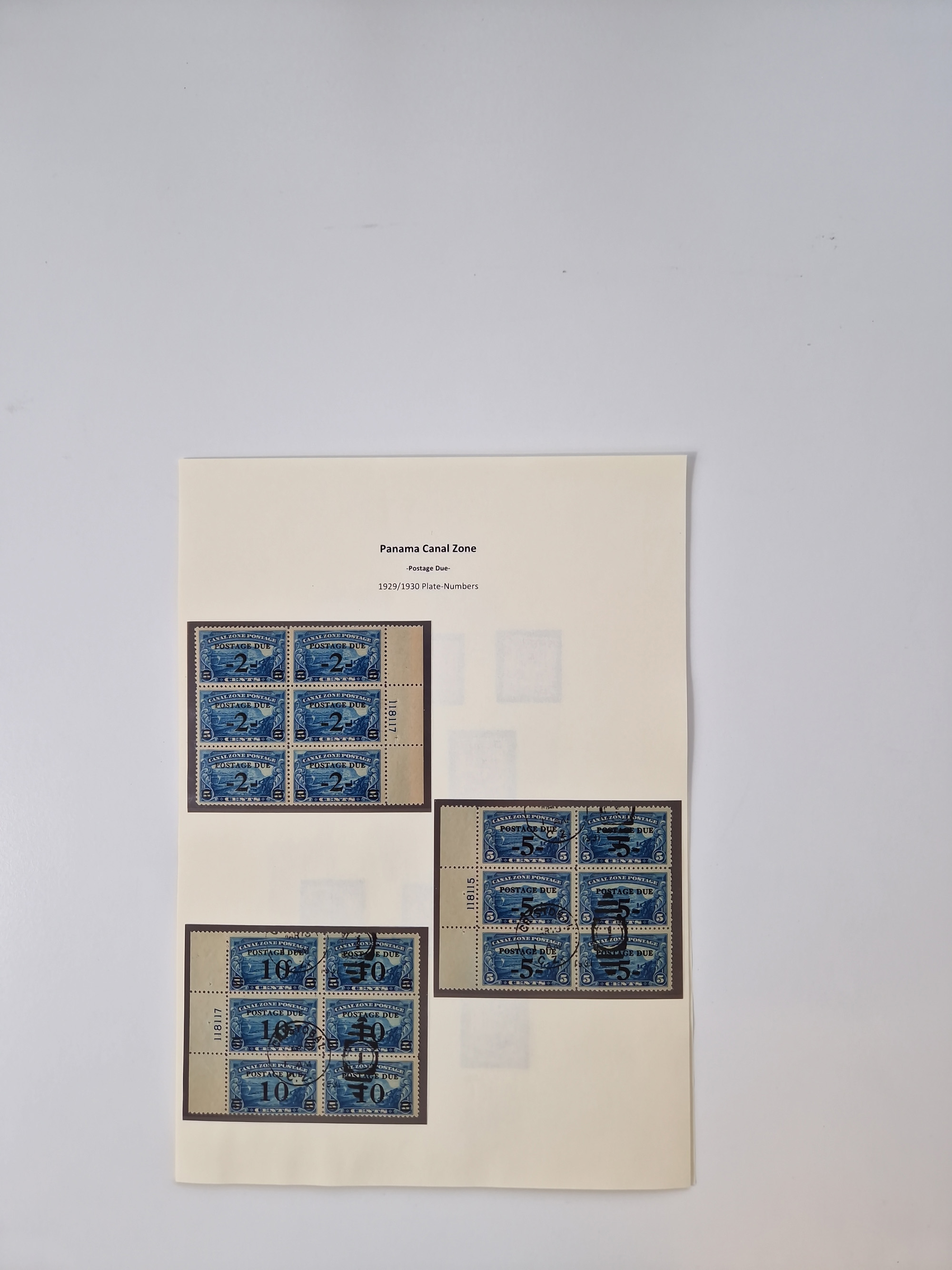 1904/78, very interesting and substantial unused and used collection with covers, starting with MI.-Nr. 1-3 unused and on cover, Mi.-Nr. 2 and 3 each on cover, Mi-.Nr. 4-8 unused and used, Mi.-Nr. 29-37, 54-68 unused, 1912/16 2c. inverted center, Unissued I-VII, many multiples including plate-numbers, overprint types and varities like Mi.-Nr. 59 as “tete-beche” pair with right stamp showing inverted “CANAL”, Specimen, booklet panes, different perforations, many varities throughout, also Officials and Postage Due, cards and covers, postal stationery including Cordoba 2 c. with variety “Vignette & CANAL ZONE” only, and a few items incoming mail, all neatly written up on pages, some certificates and literature, mostly good condition