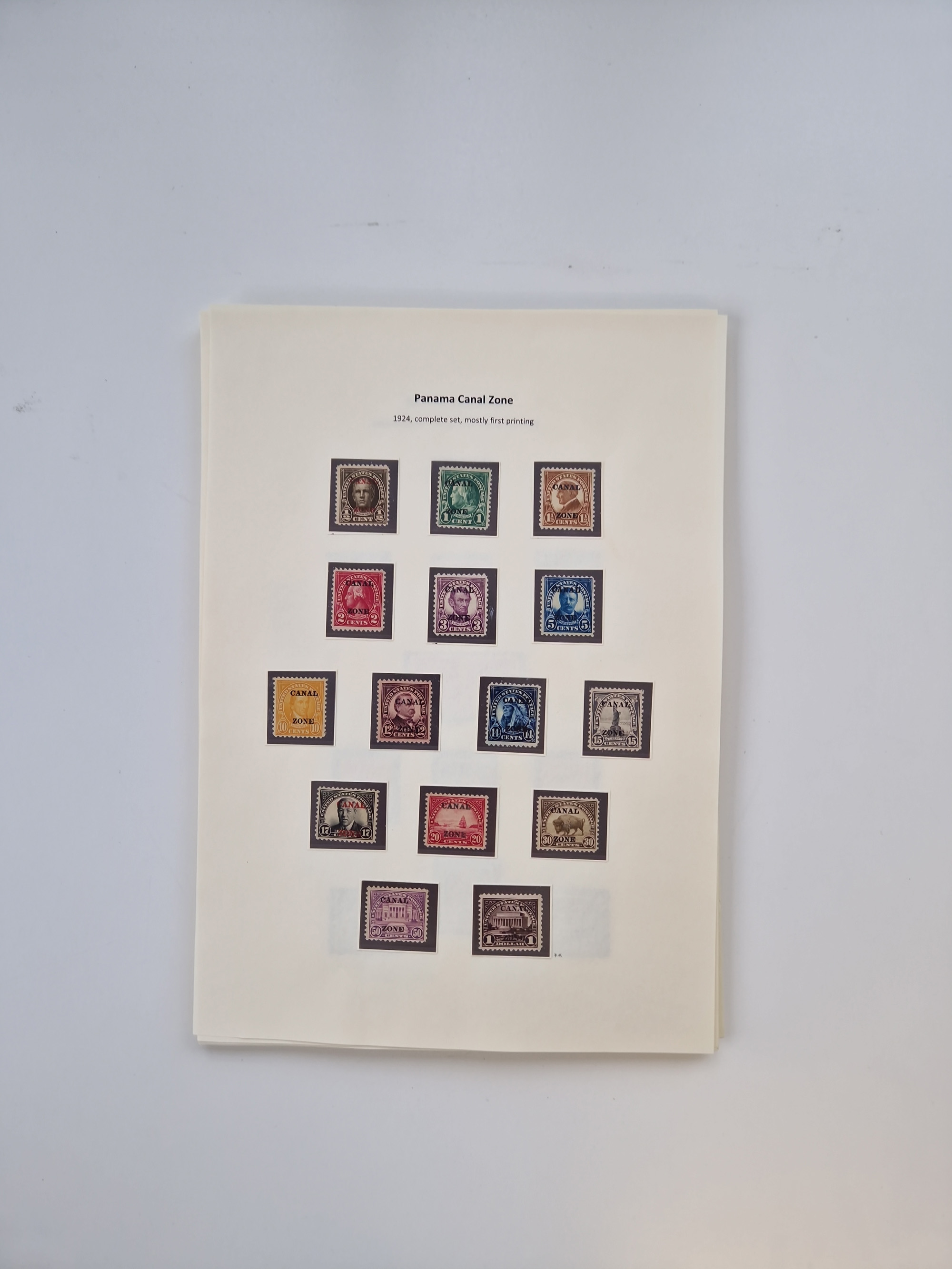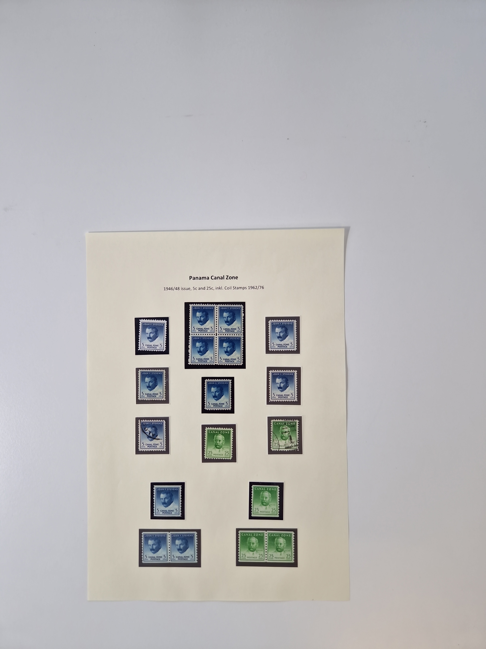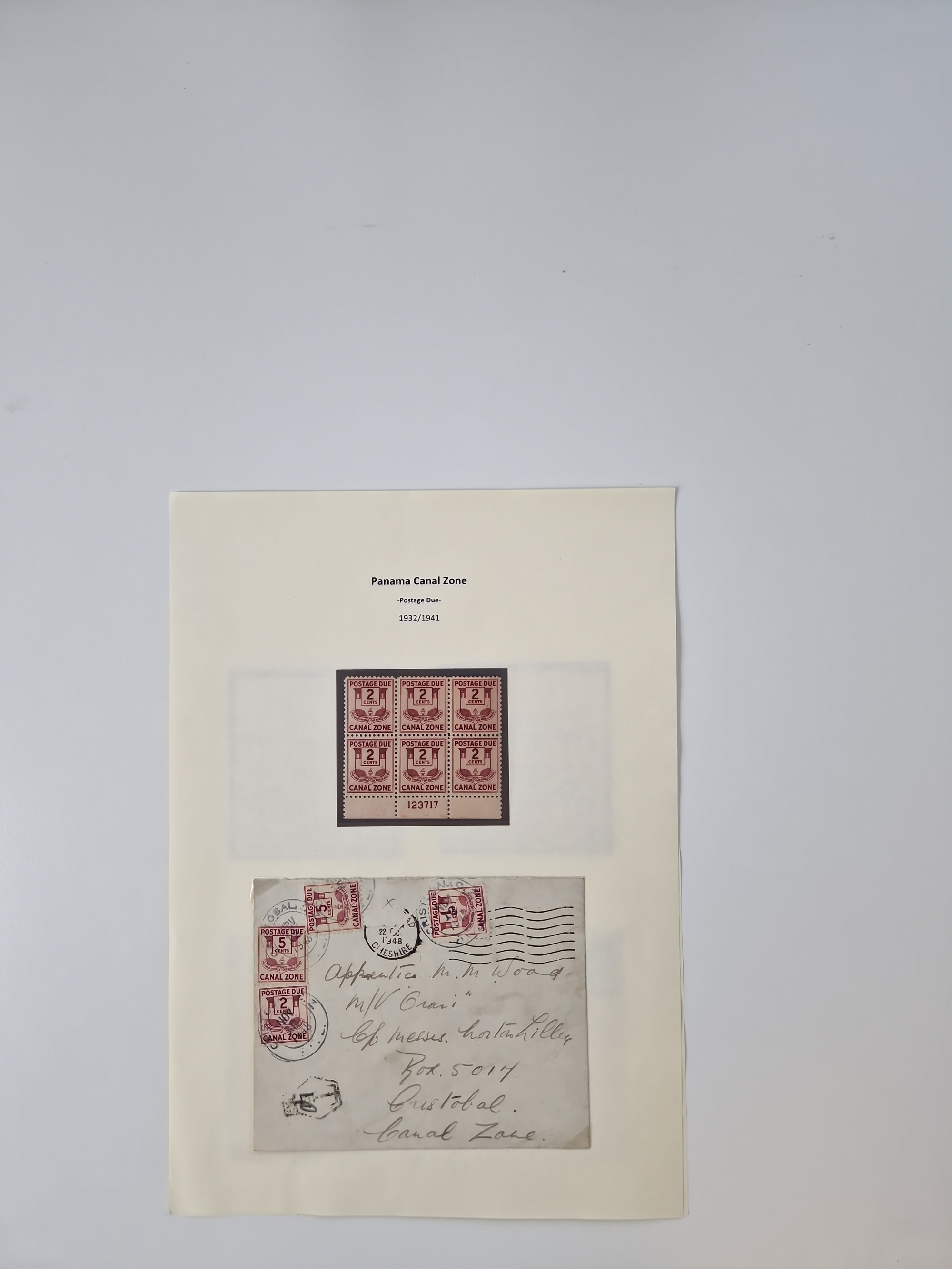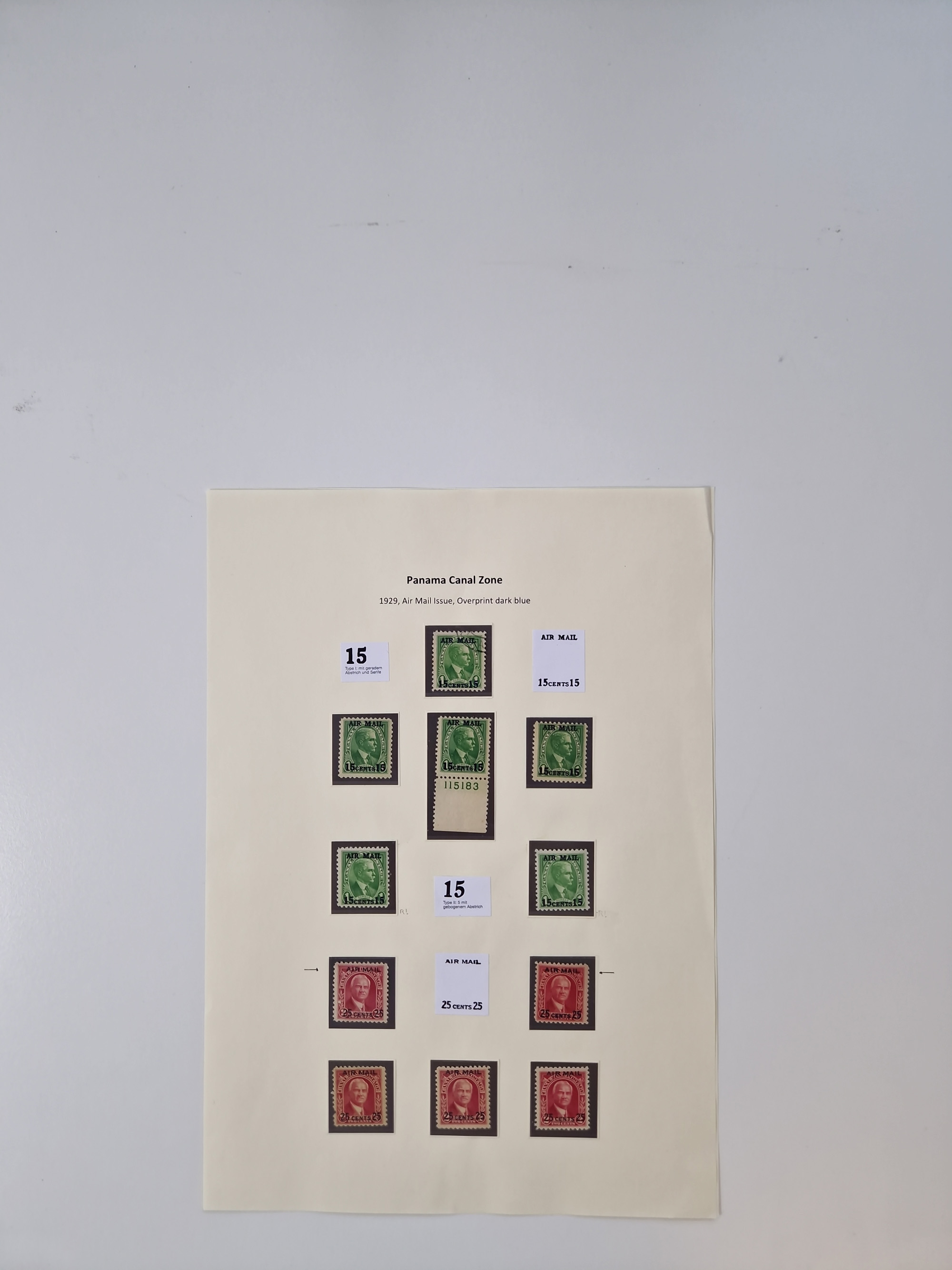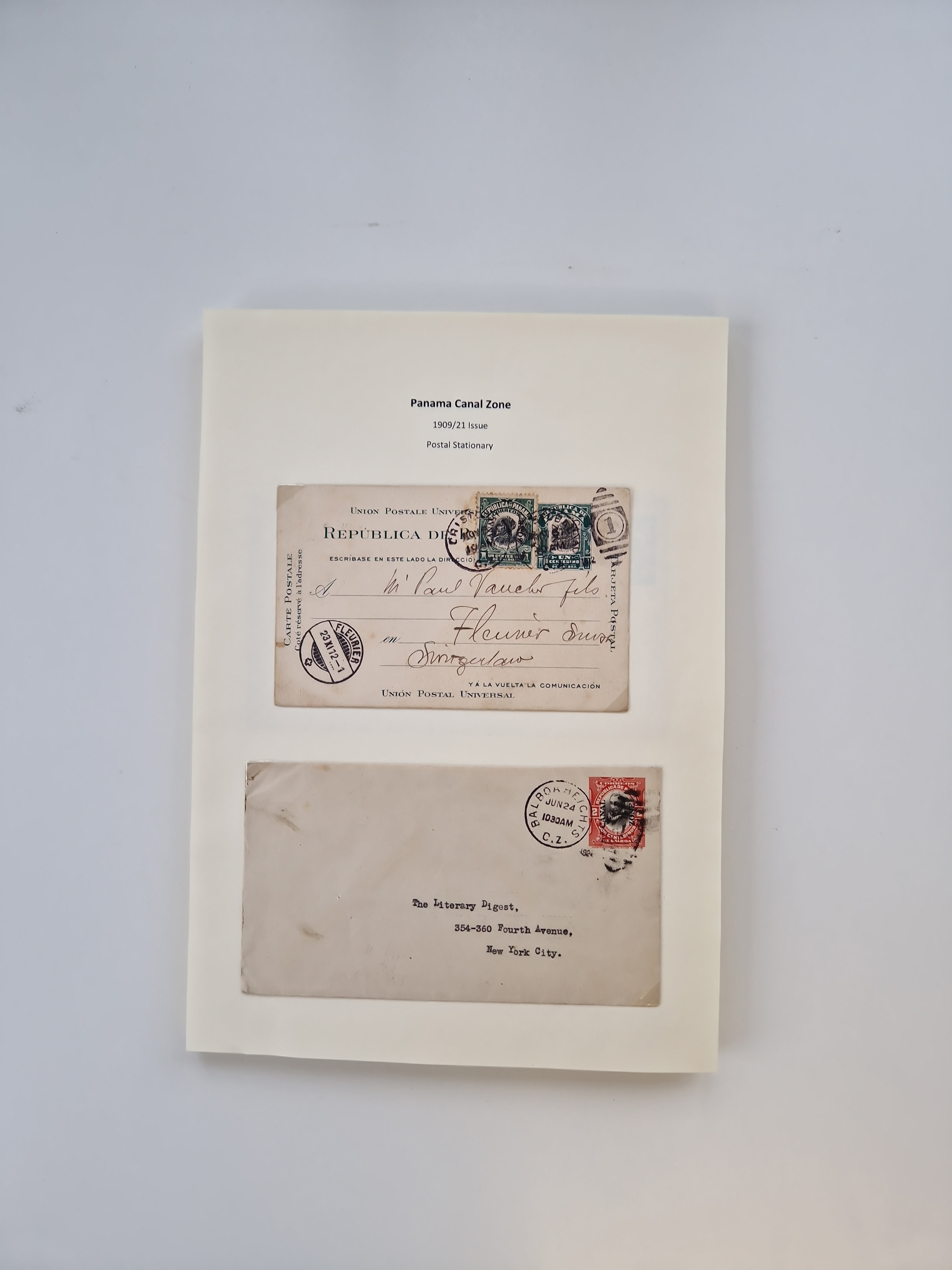 1904/78, very interesting and substantial unused and used collection with covers, starting with MI.-Nr. 1-3 unused and on cover, Mi.-Nr. 2 and 3 each on cover, Mi-.Nr. 4-8 unused and used, Mi.-Nr. 29-37, 54-68 unused, 1912/16 2c. inverted center, Unissued I-VII, many multiples including plate-numbers, overprint types and varities like Mi.-Nr. 59 as “tete-beche” pair with right stamp showing inverted “CANAL”, Specimen, booklet panes, different perforations, many varities throughout, also Officials and Postage Due, cards and covers, postal stationery including Cordoba 2 c. with variety “Vignette & CANAL ZONE” only, and a few items incoming mail, all neatly written up on pages, some certificates and literature, mostly good condition