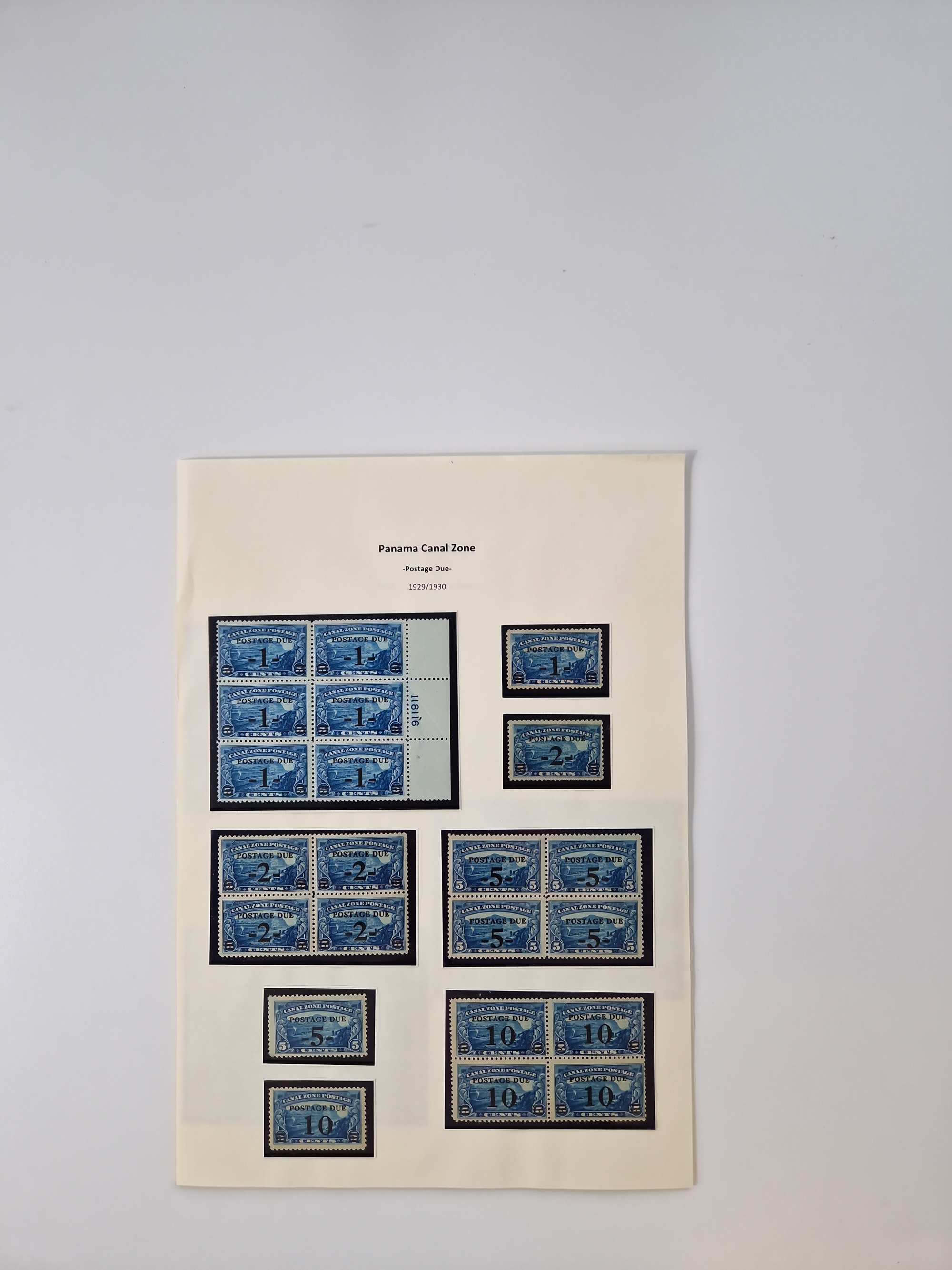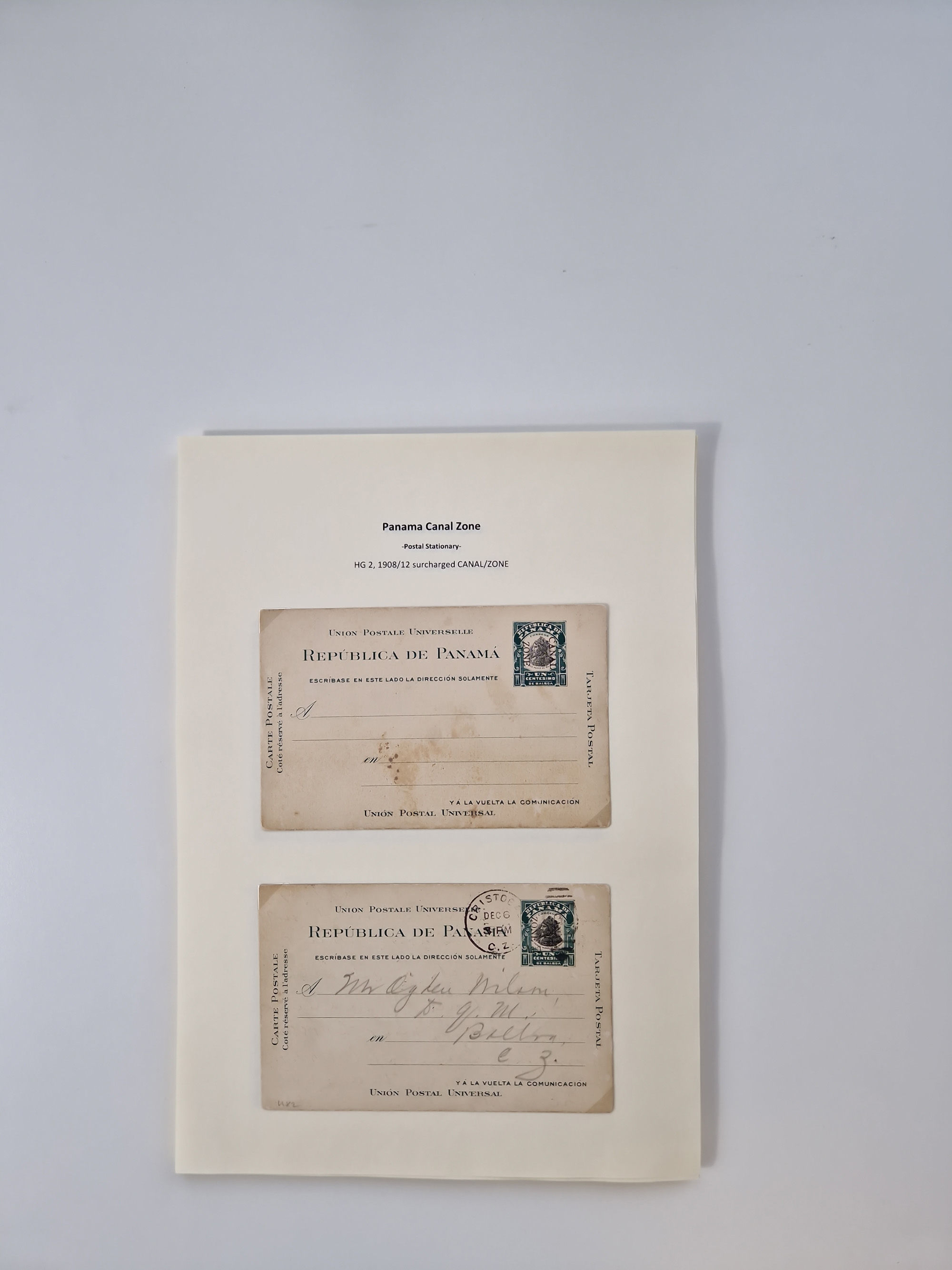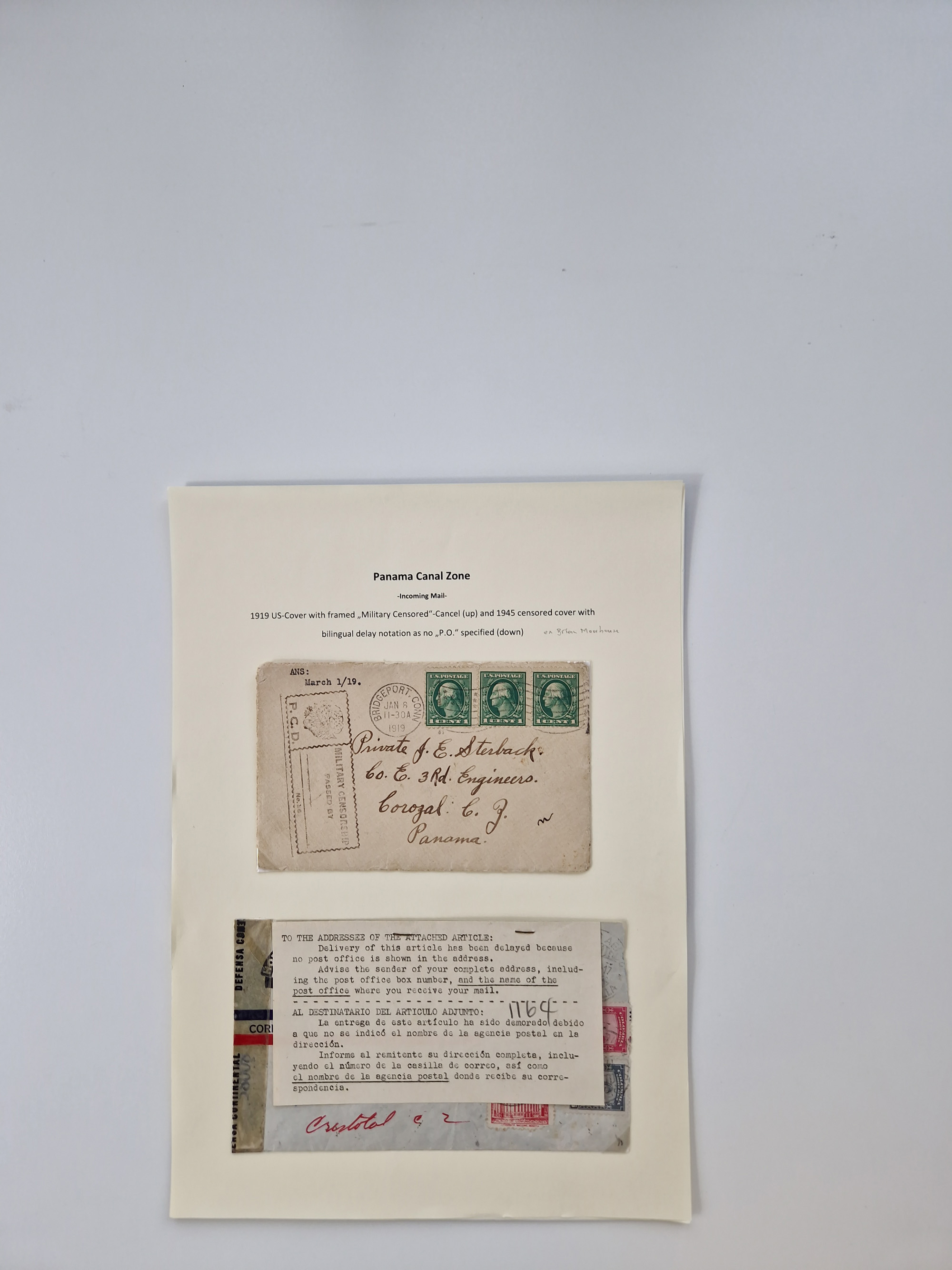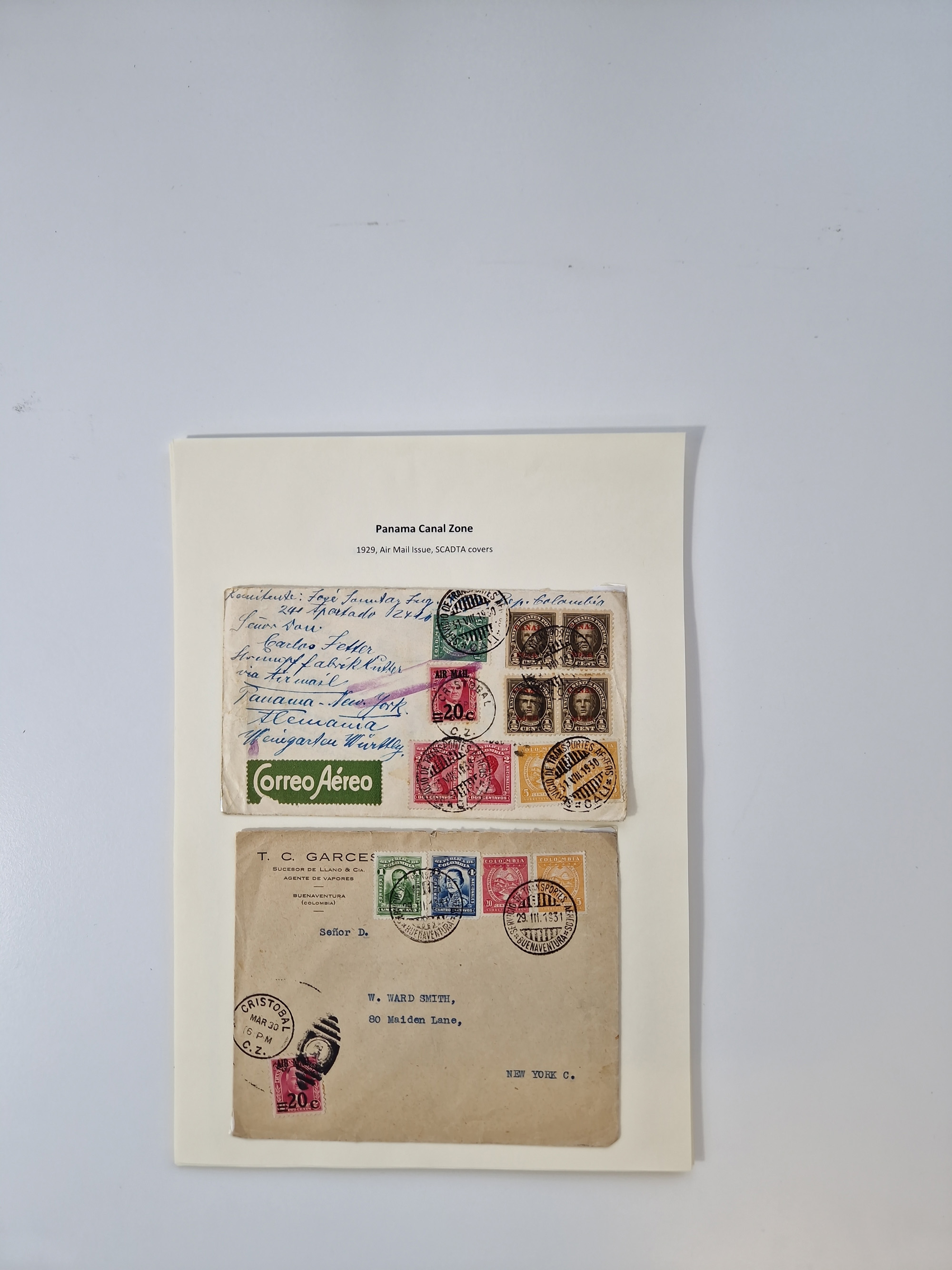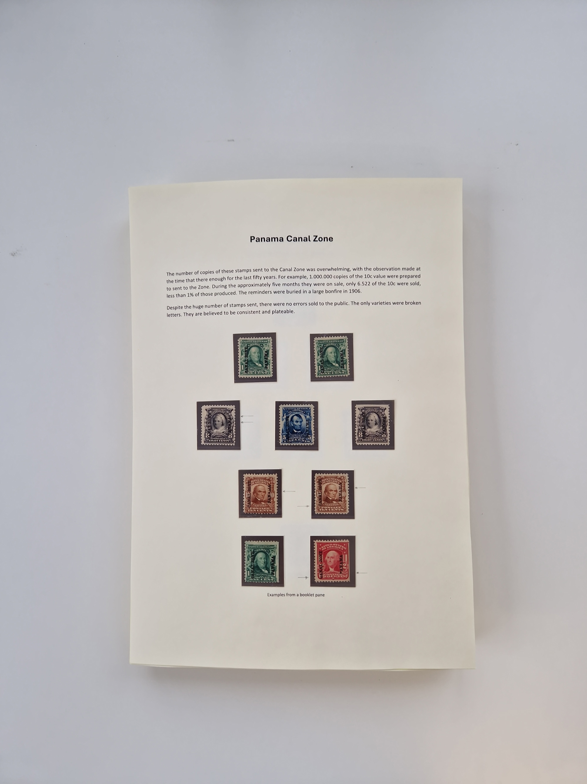 1904/78, very interesting and substantial unused and used collection with covers, starting with MI.-Nr. 1-3 unused and on cover, Mi.-Nr. 2 and 3 each on cover, Mi-.Nr. 4-8 unused and used, Mi.-Nr. 29-37, 54-68 unused, 1912/16 2c. inverted center, Unissued I-VII, many multiples including plate-numbers, overprint types and varities like Mi.-Nr. 59 as “tete-beche” pair with right stamp showing inverted “CANAL”, Specimen, booklet panes, different perforations, many varities throughout, also Officials and Postage Due, cards and covers, postal stationery including Cordoba 2 c. with variety “Vignette & CANAL ZONE” only, and a few items incoming mail, all neatly written up on pages, some certificates and literature, mostly good condition