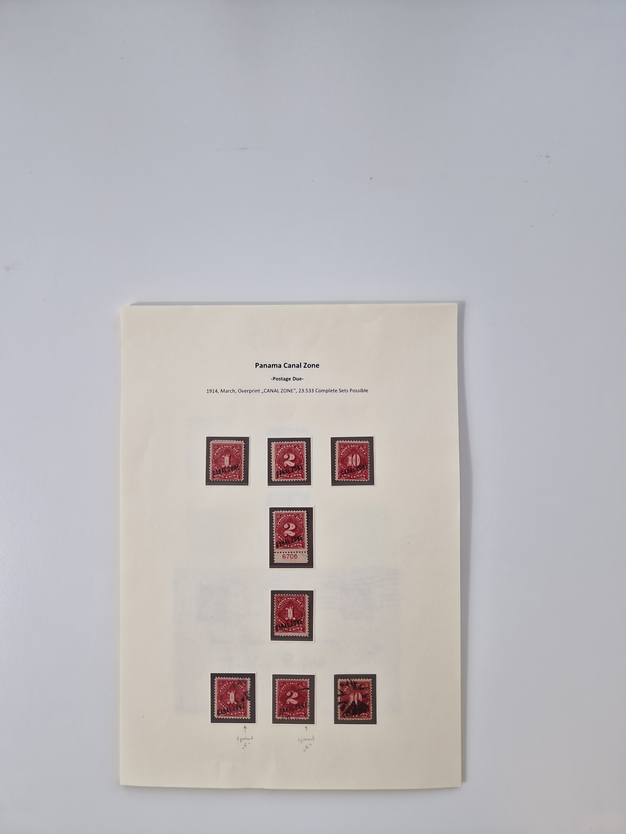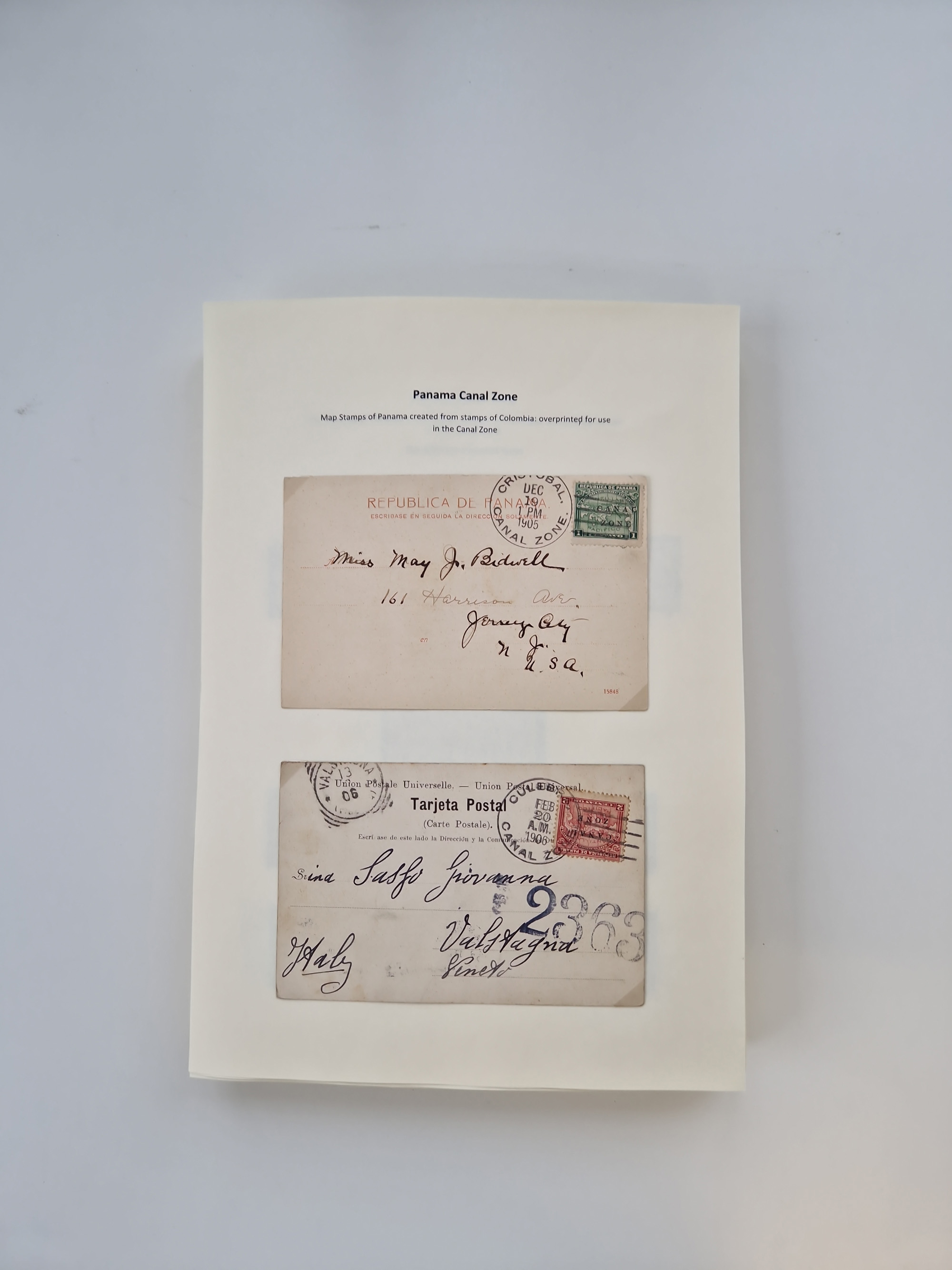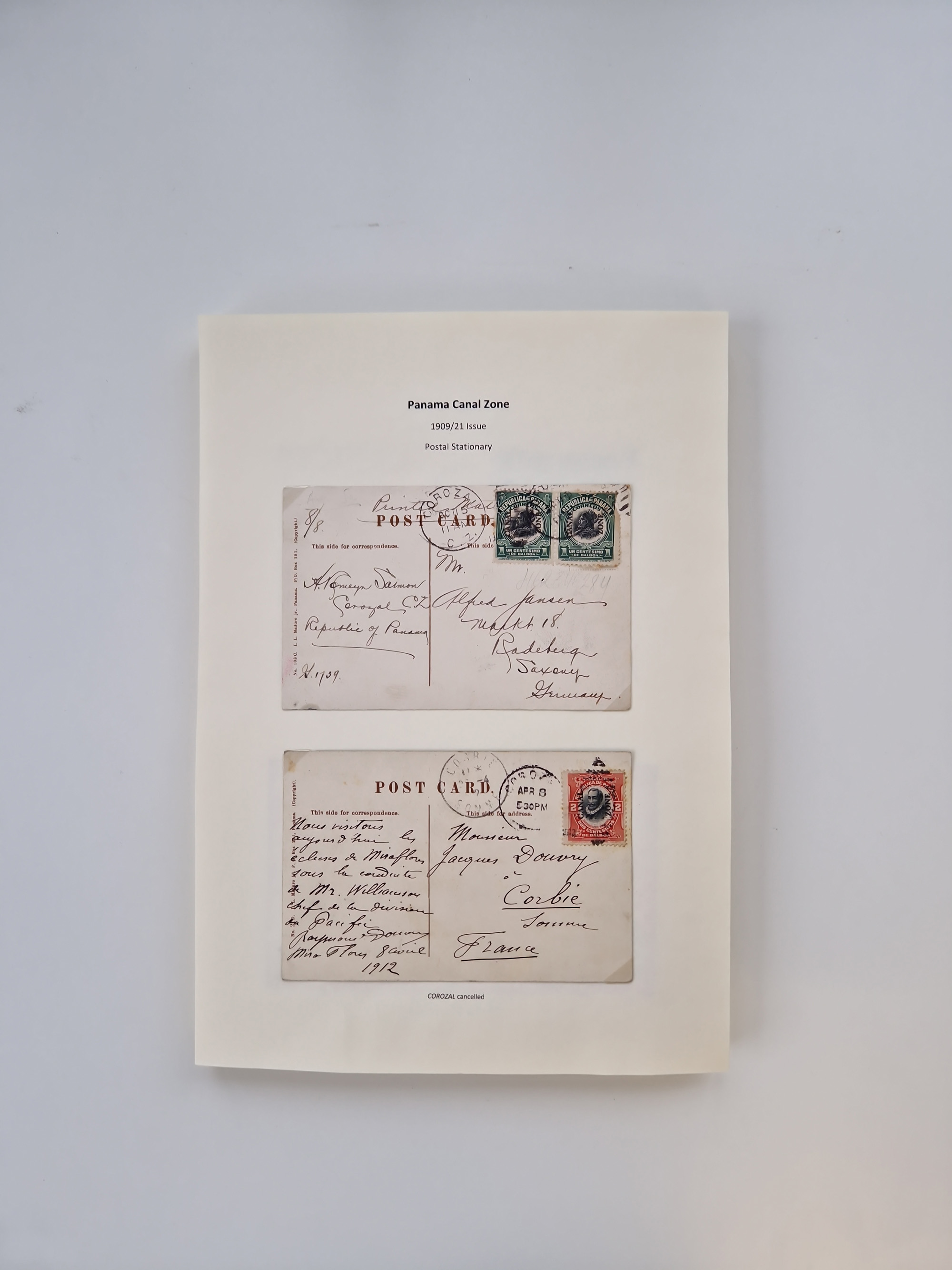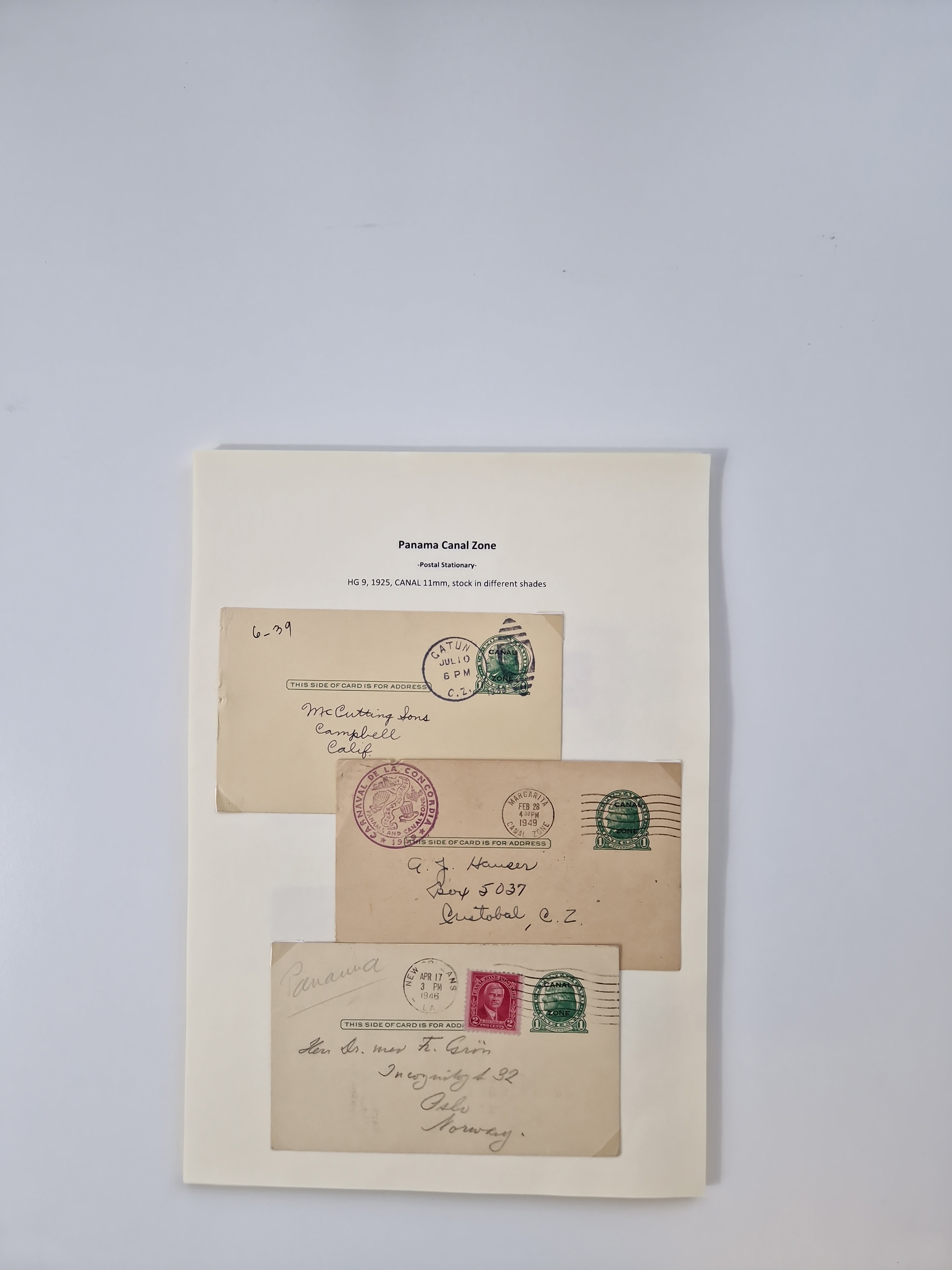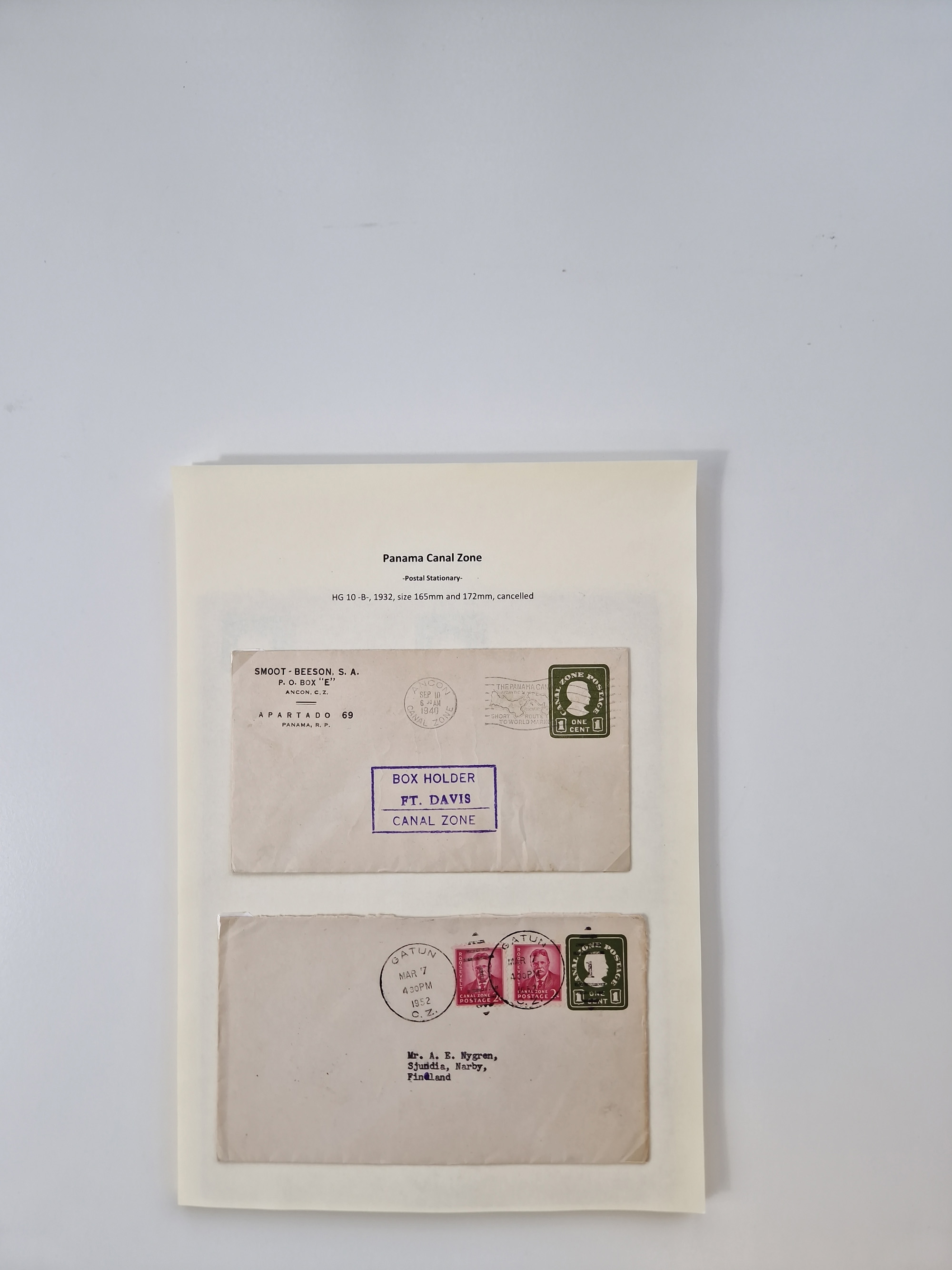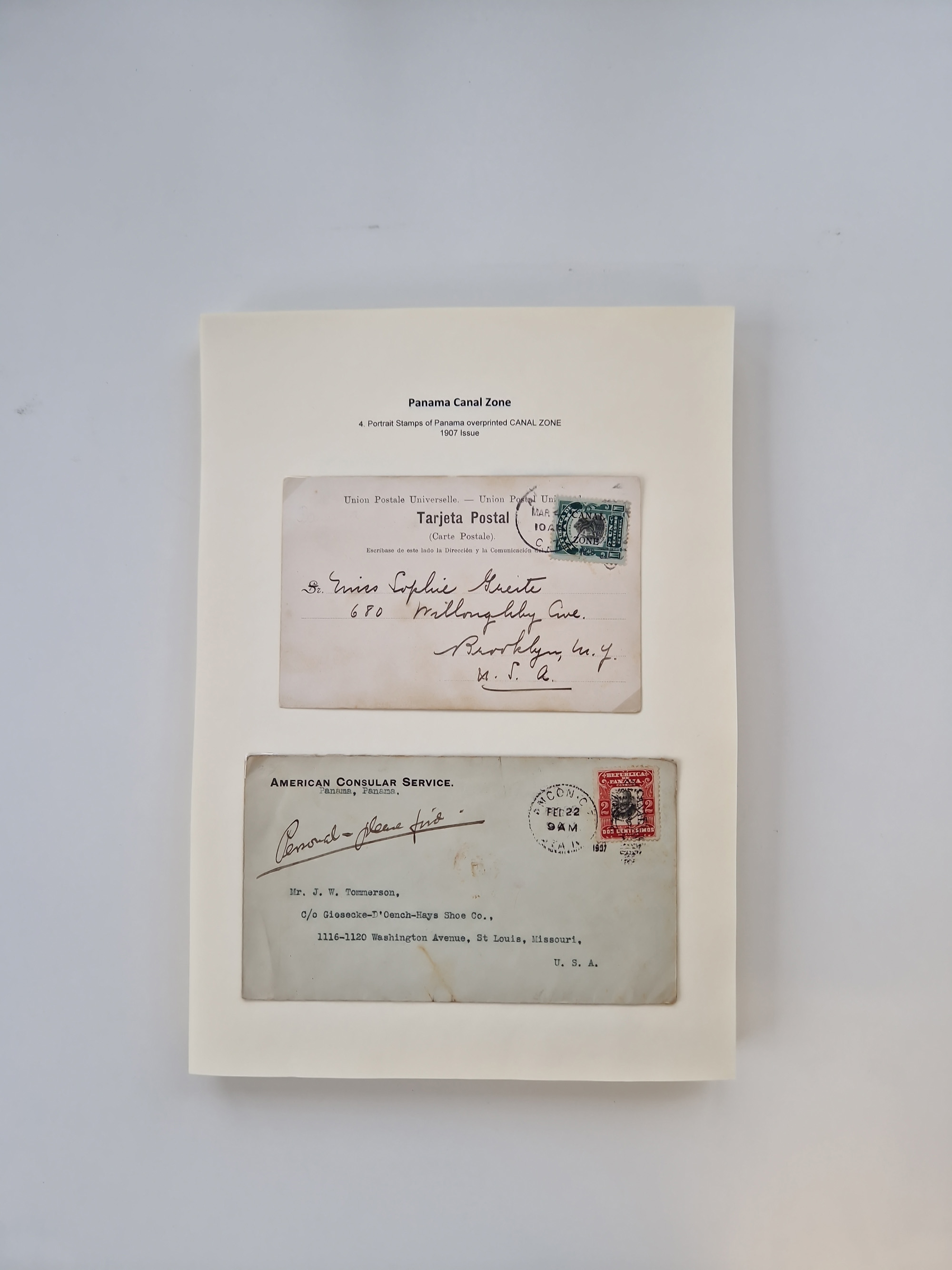 1904/78, very interesting and substantial unused and used collection with covers, starting with MI.-Nr. 1-3 unused and on cover, Mi.-Nr. 2 and 3 each on cover, Mi-.Nr. 4-8 unused and used, Mi.-Nr. 29-37, 54-68 unused, 1912/16 2c. inverted center, Unissued I-VII, many multiples including plate-numbers, overprint types and varities like Mi.-Nr. 59 as “tete-beche” pair with right stamp showing inverted “CANAL”, Specimen, booklet panes, different perforations, many varities throughout, also Officials and Postage Due, cards and covers, postal stationery including Cordoba 2 c. with variety “Vignette & CANAL ZONE” only, and a few items incoming mail, all neatly written up on pages, some certificates and literature, mostly good condition