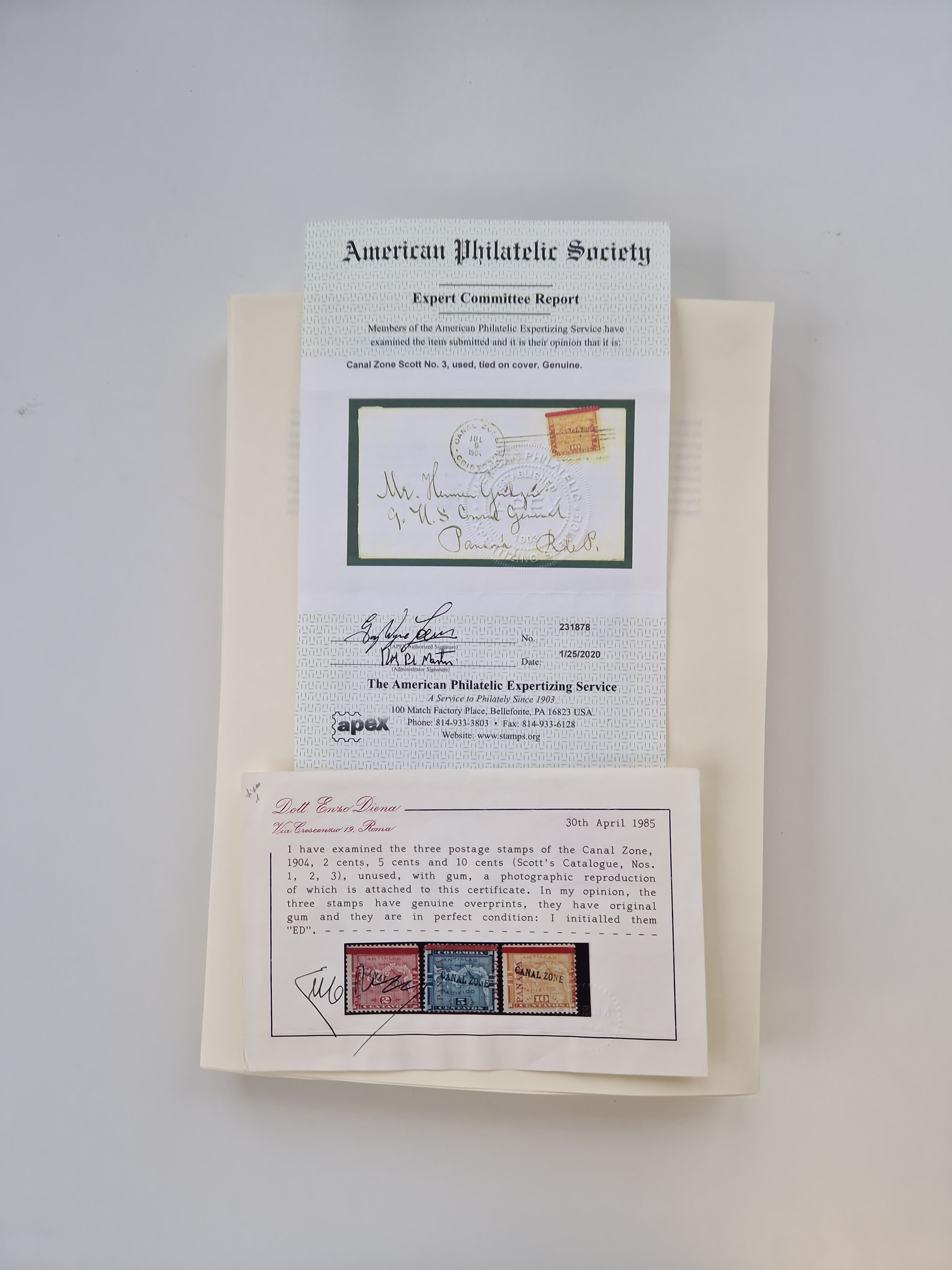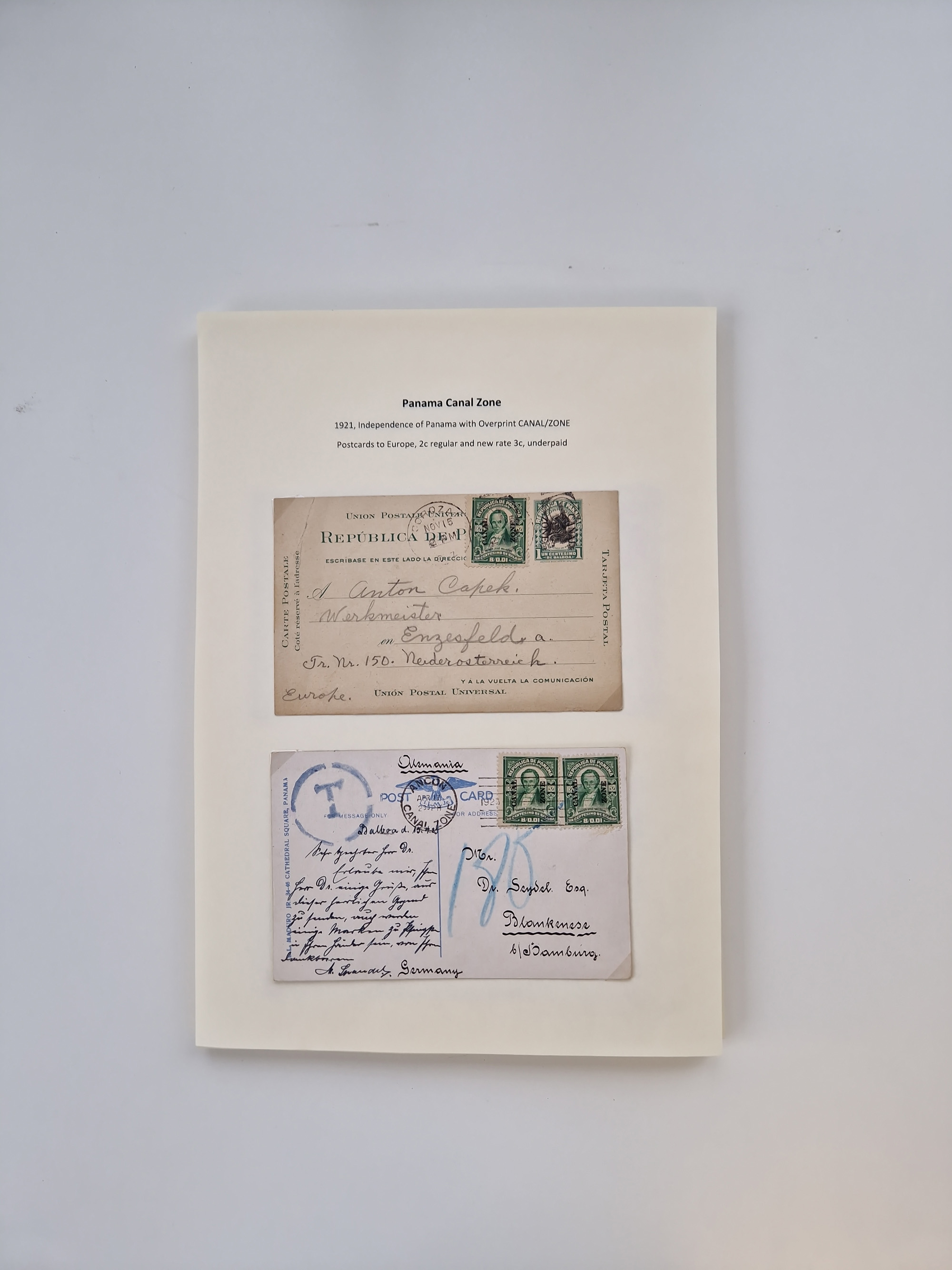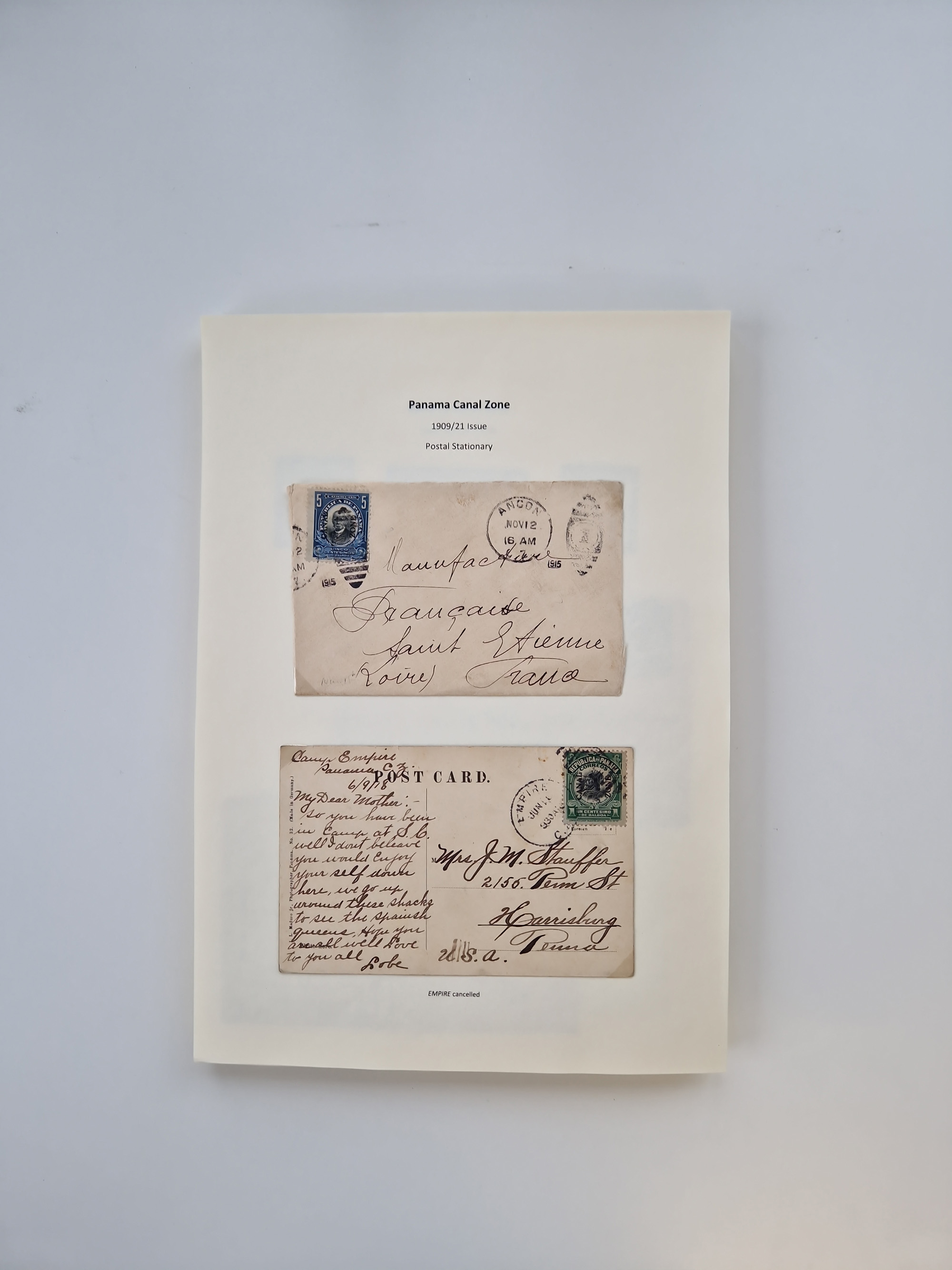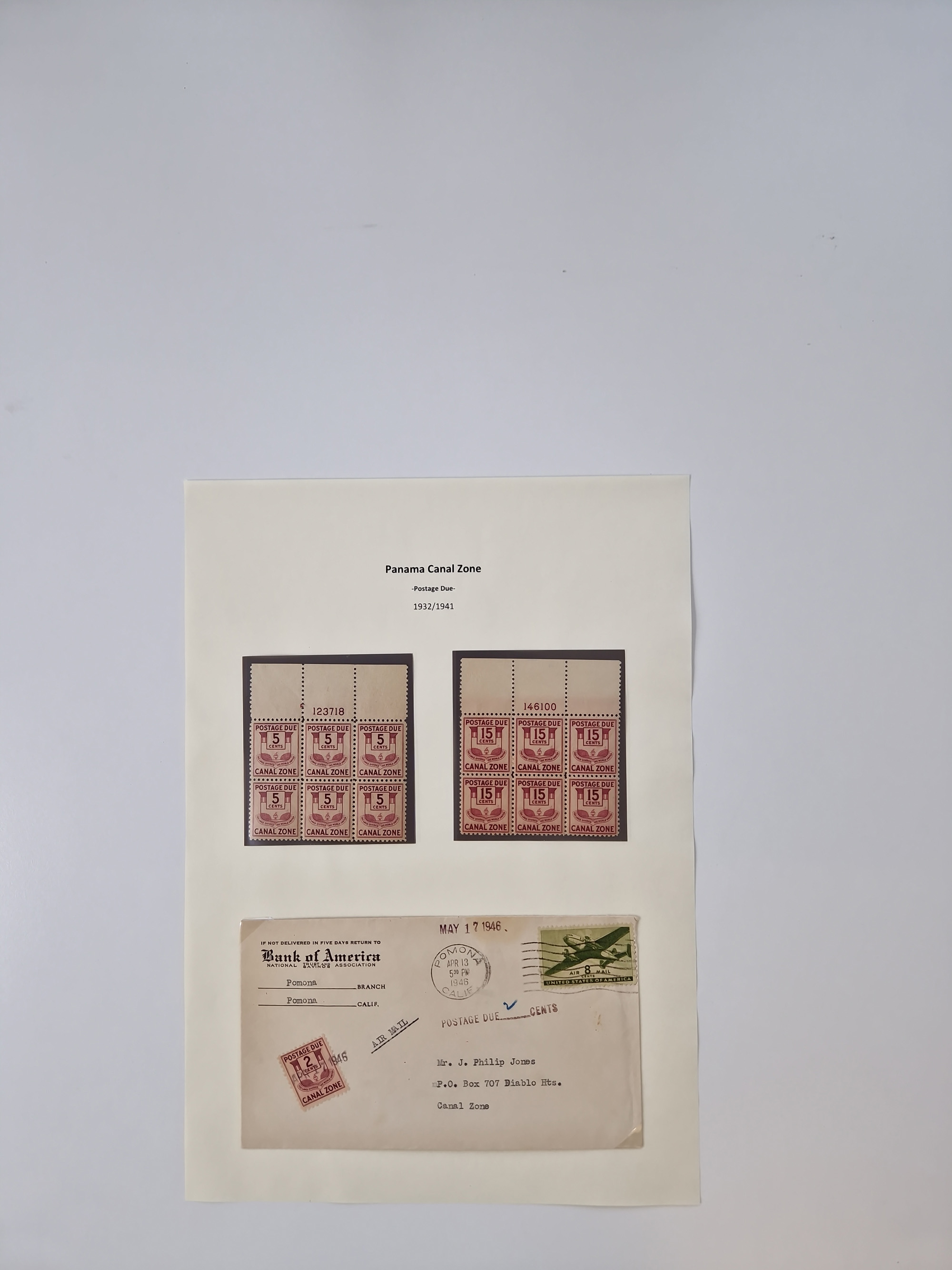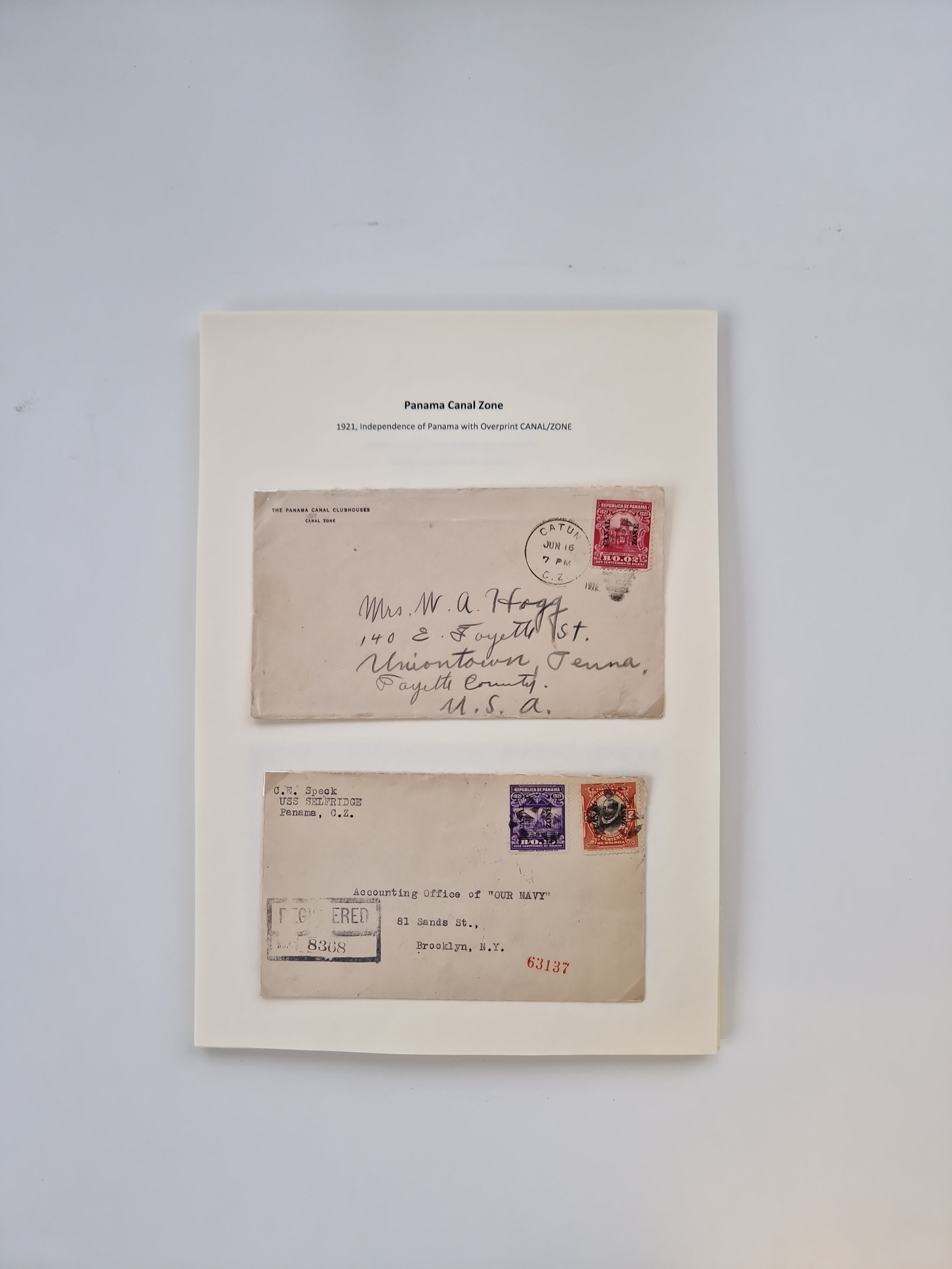 1904/78, very interesting and substantial unused and used collection with covers, starting with MI.-Nr. 1-3 unused and on cover, Mi.-Nr. 2 and 3 each on cover, Mi-.Nr. 4-8 unused and used, Mi.-Nr. 29-37, 54-68 unused, 1912/16 2c. inverted center, Unissued I-VII, many multiples including plate-numbers, overprint types and varities like Mi.-Nr. 59 as “tete-beche” pair with right stamp showing inverted “CANAL”, Specimen, booklet panes, different perforations, many varities throughout, also Officials and Postage Due, cards and covers, postal stationery including Cordoba 2 c. with variety “Vignette & CANAL ZONE” only, and a few items incoming mail, all neatly written up on pages, some certificates and literature, mostly good condition