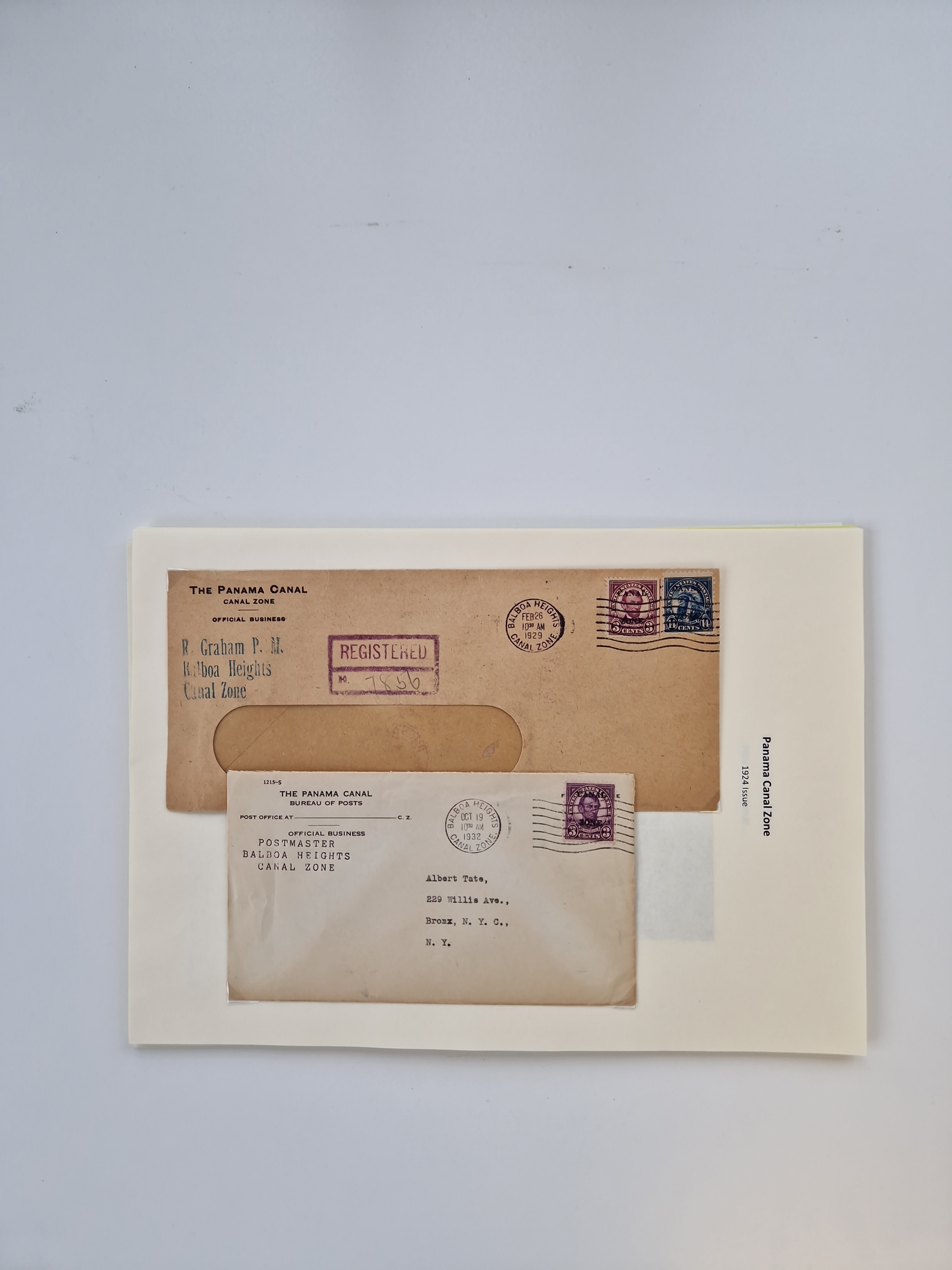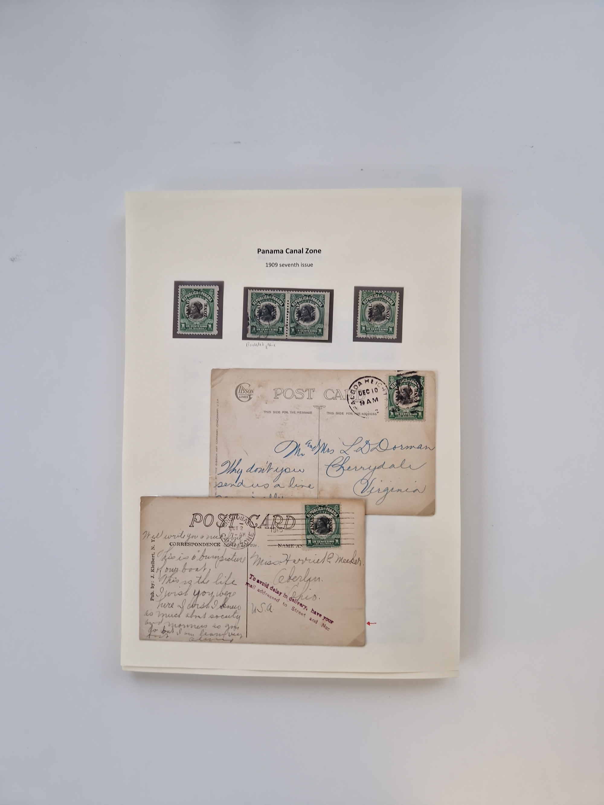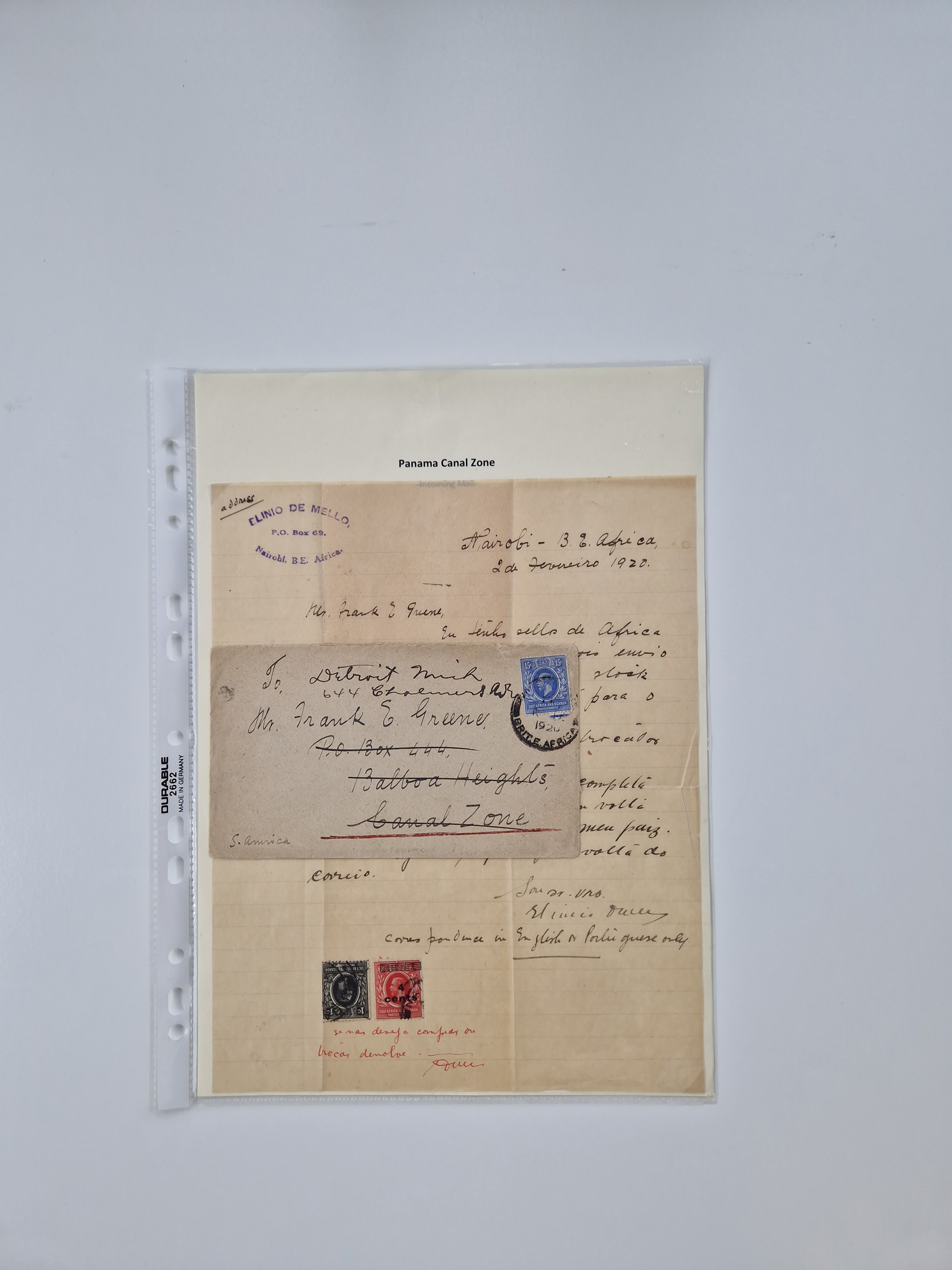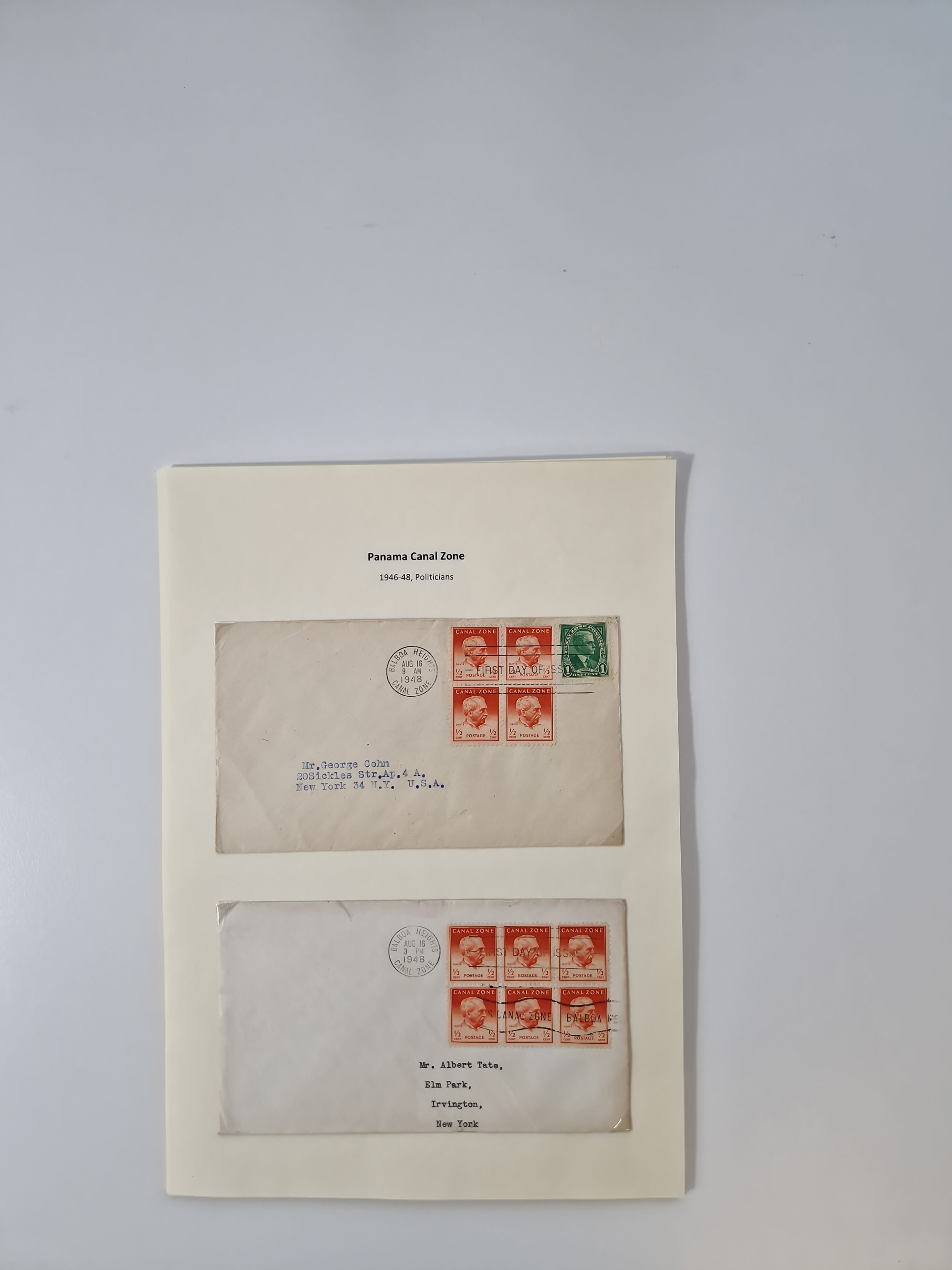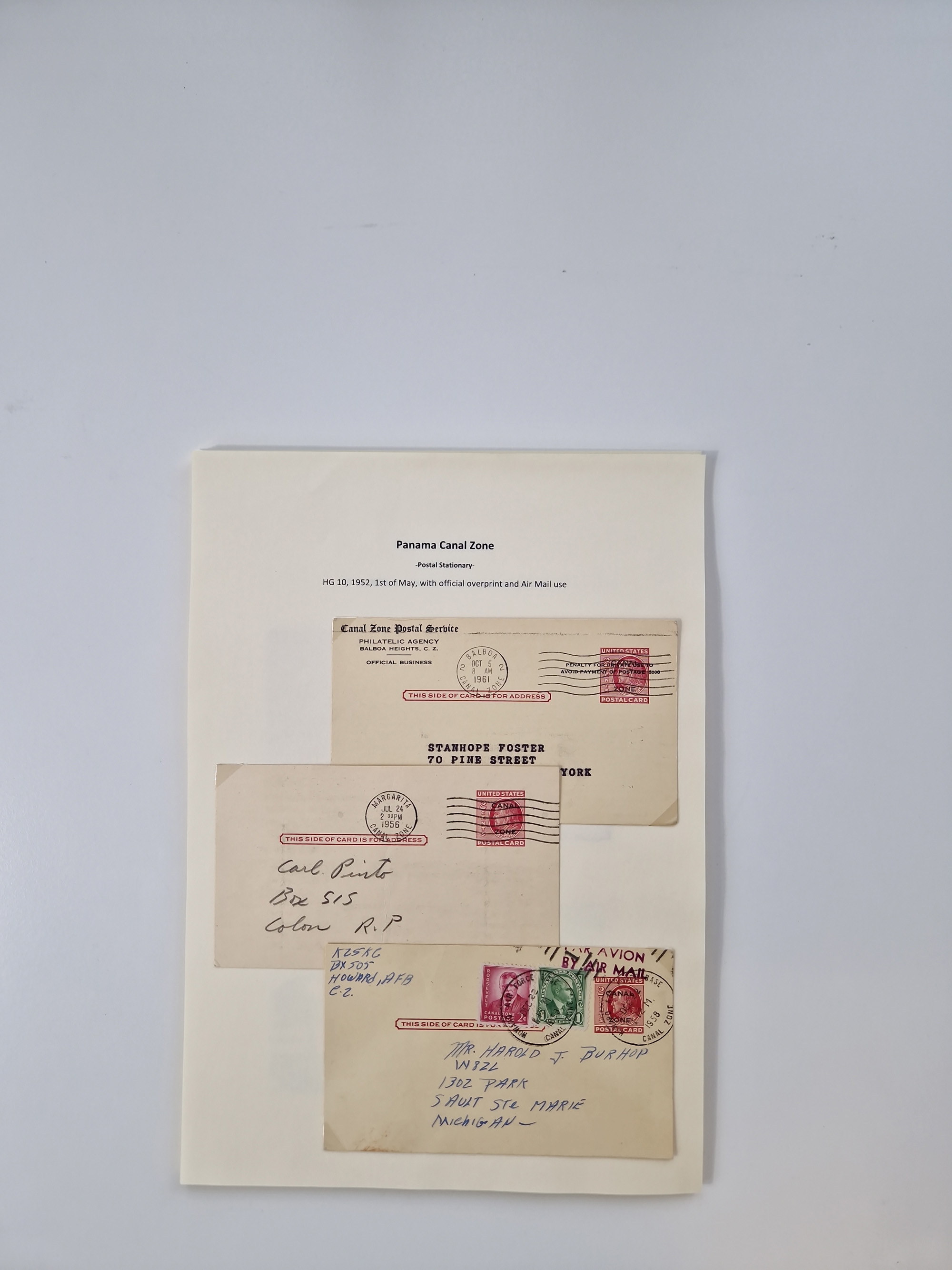 1904/78, very interesting and substantial unused and used collection with covers, starting with MI.-Nr. 1-3 unused and on cover, Mi.-Nr. 2 and 3 each on cover, Mi-.Nr. 4-8 unused and used, Mi.-Nr. 29-37, 54-68 unused, 1912/16 2c. inverted center, Unissued I-VII, many multiples including plate-numbers, overprint types and varities like Mi.-Nr. 59 as “tete-beche” pair with right stamp showing inverted “CANAL”, Specimen, booklet panes, different perforations, many varities throughout, also Officials and Postage Due, cards and covers, postal stationery including Cordoba 2 c. with variety “Vignette & CANAL ZONE” only, and a few items incoming mail, all neatly written up on pages, some certificates and literature, mostly good condition
