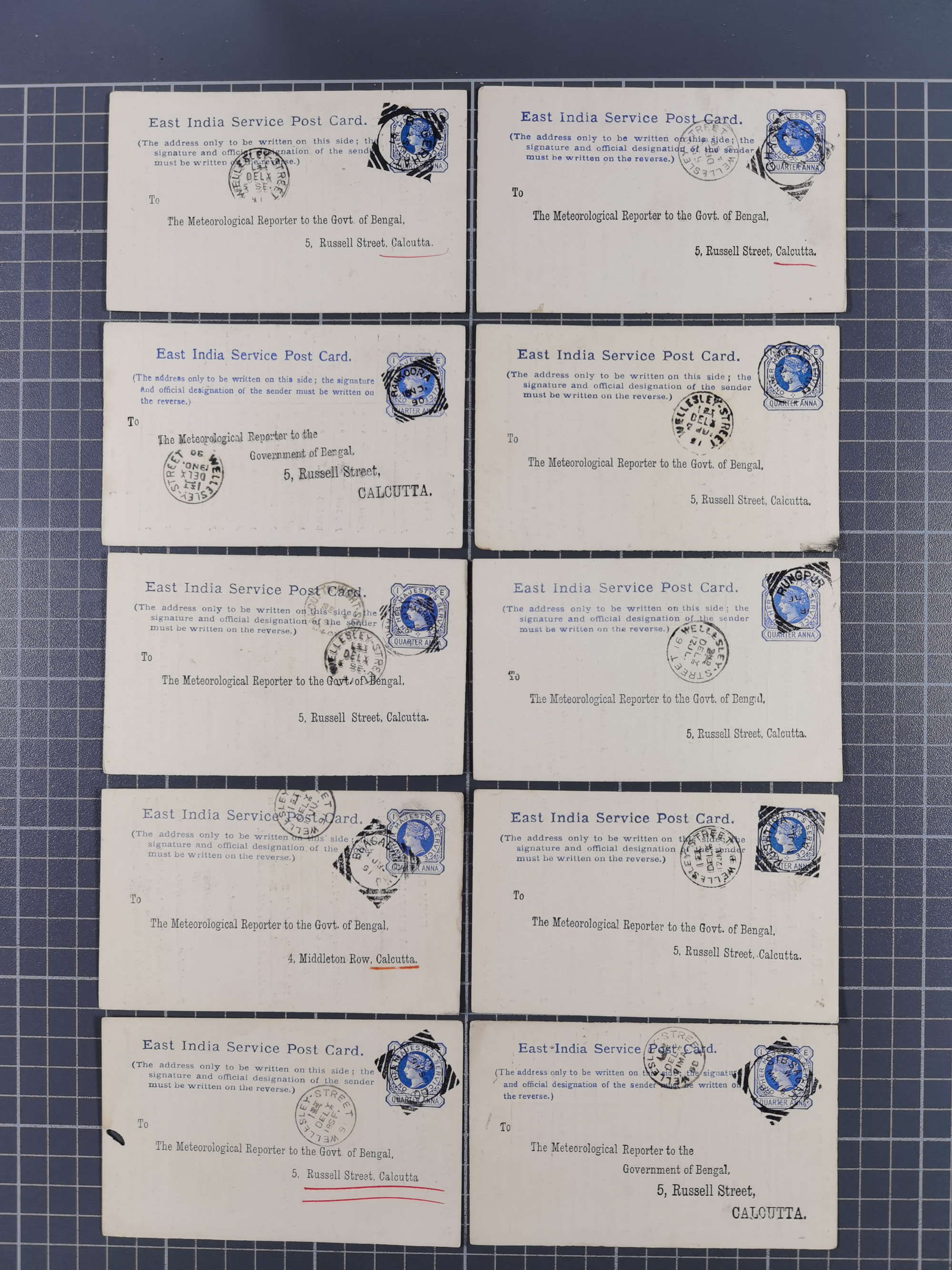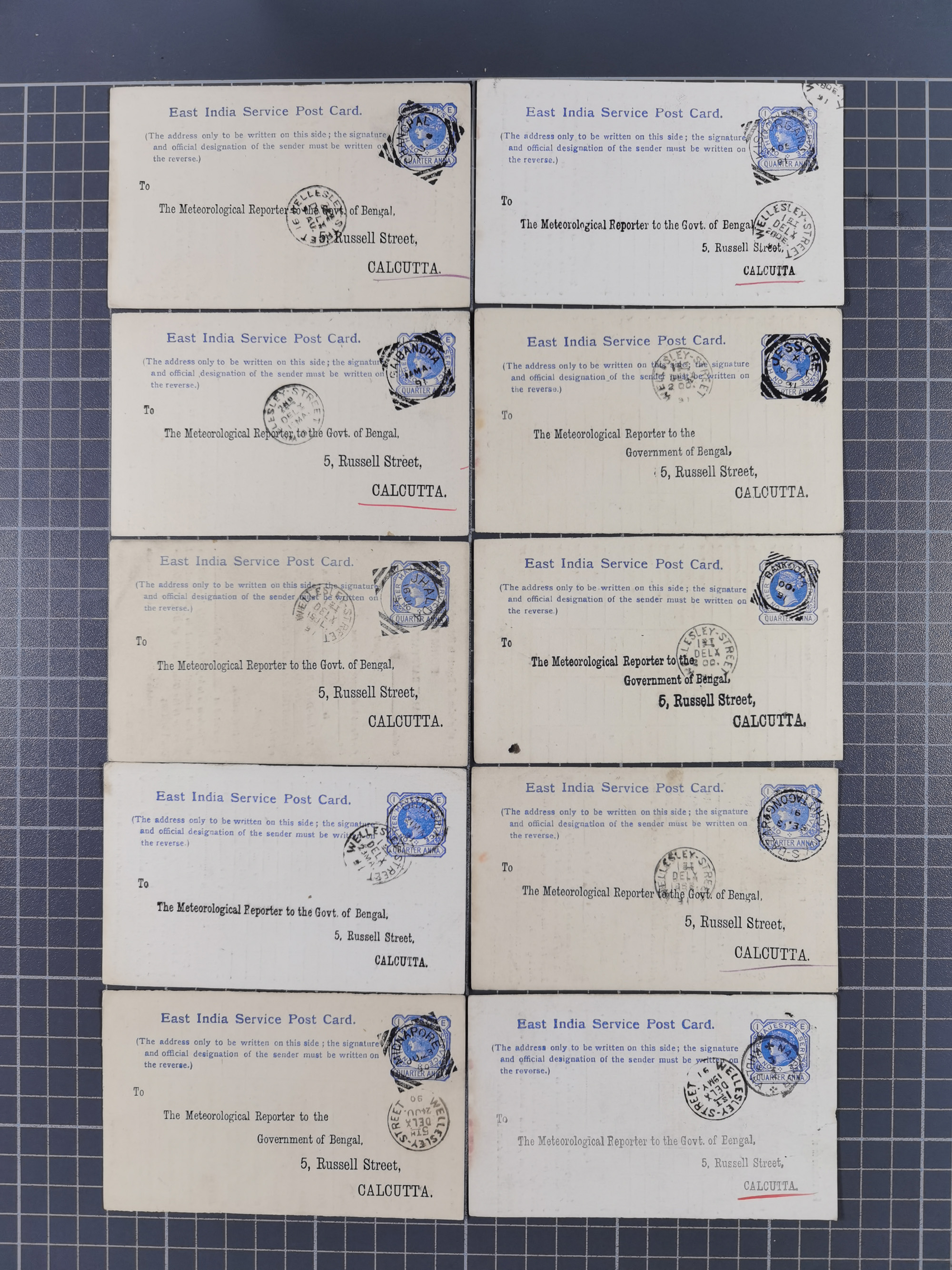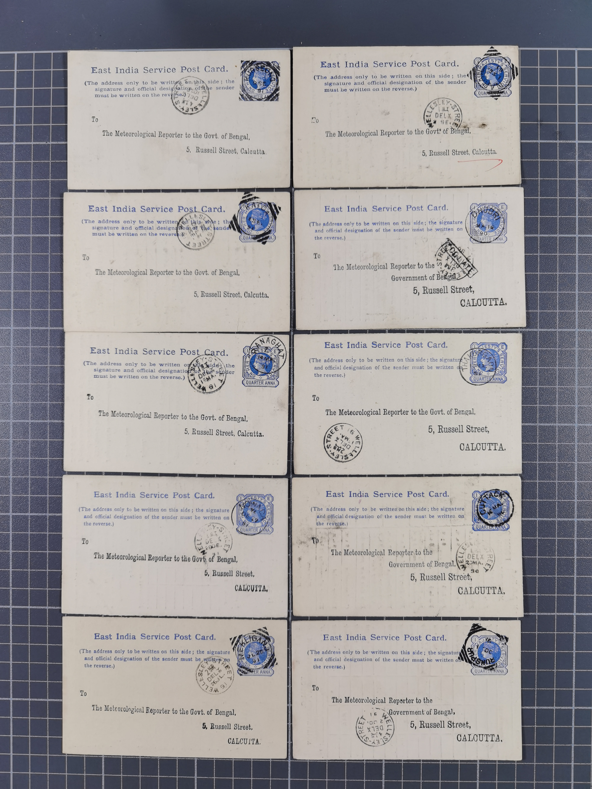 1890/91, 38 postcards ¼ a. with pre-print of the meterological office