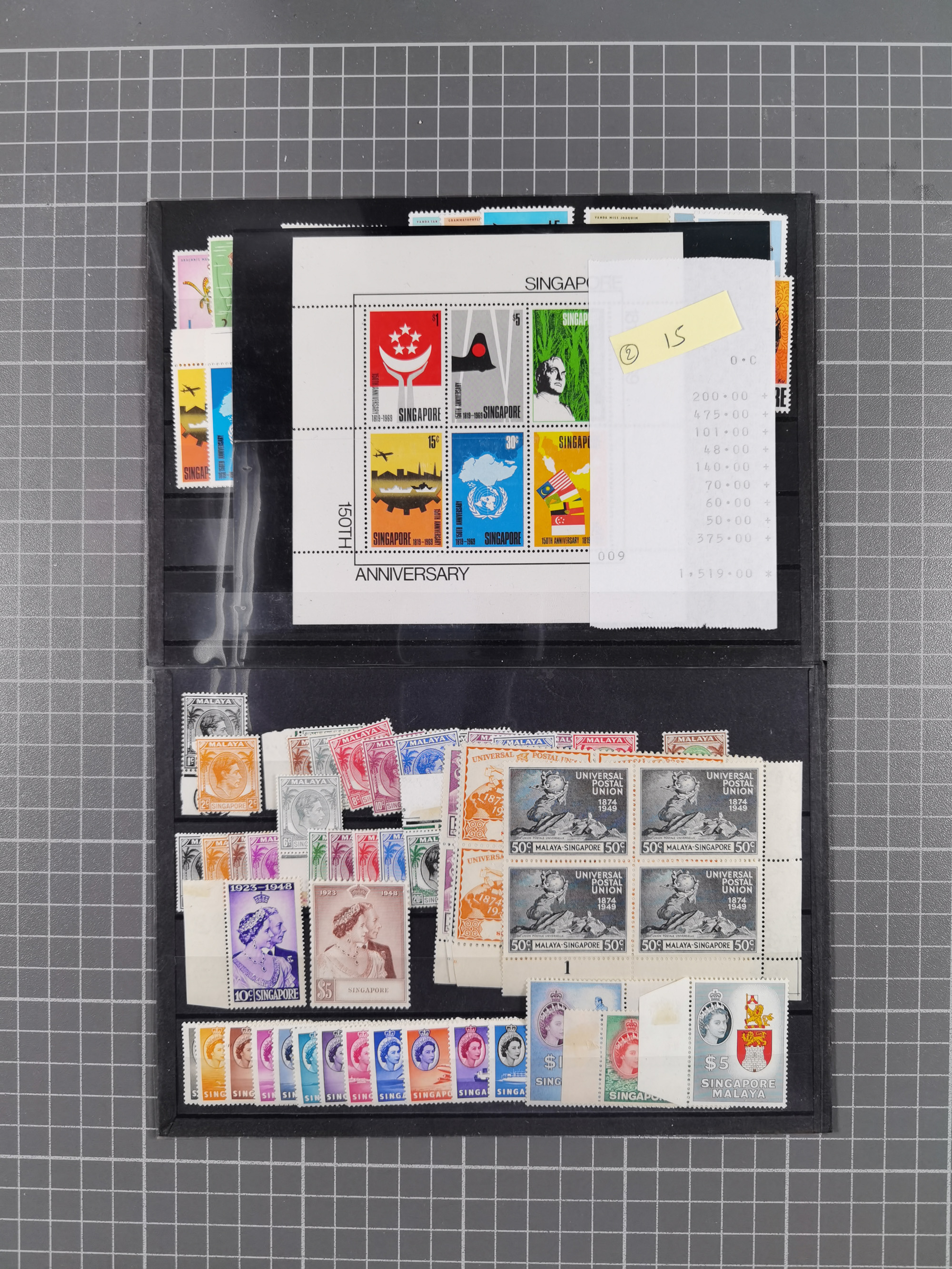 1948/69, mint never hinged group, fairly advanced with 1948 Coconut Tree sets complete SG-.Nr. 1-30, also some blocks of four, overall in very good condition, neatly housed in two stockcards (ex SG-Nr. 1-126)