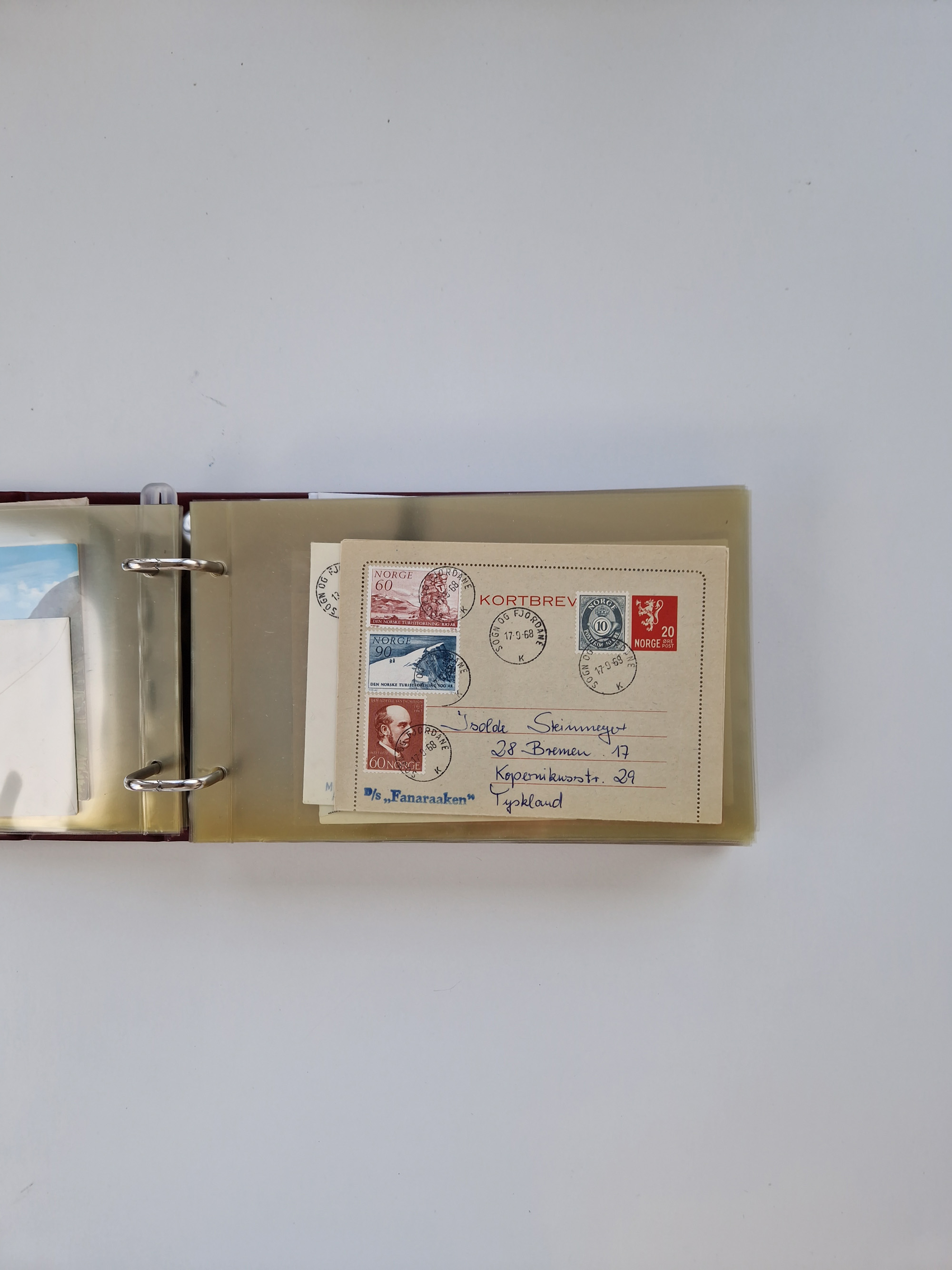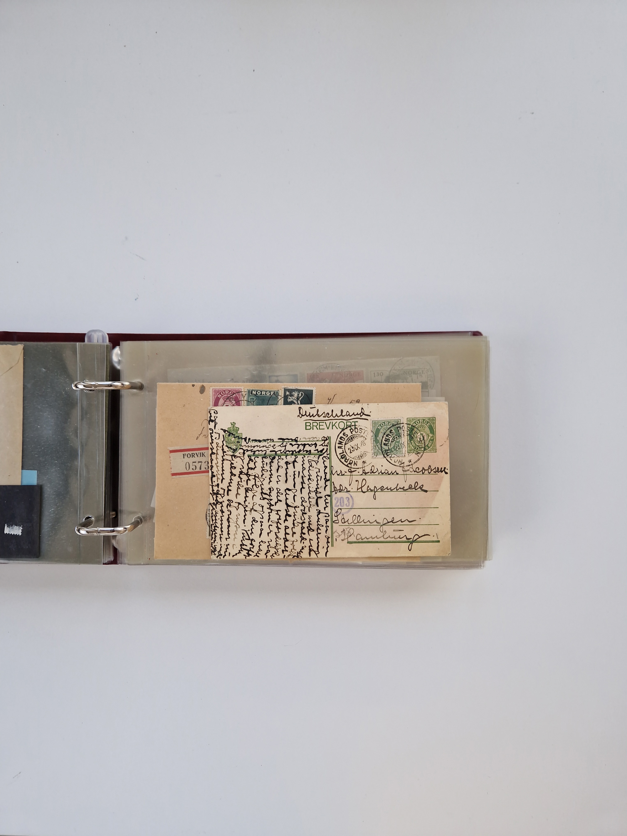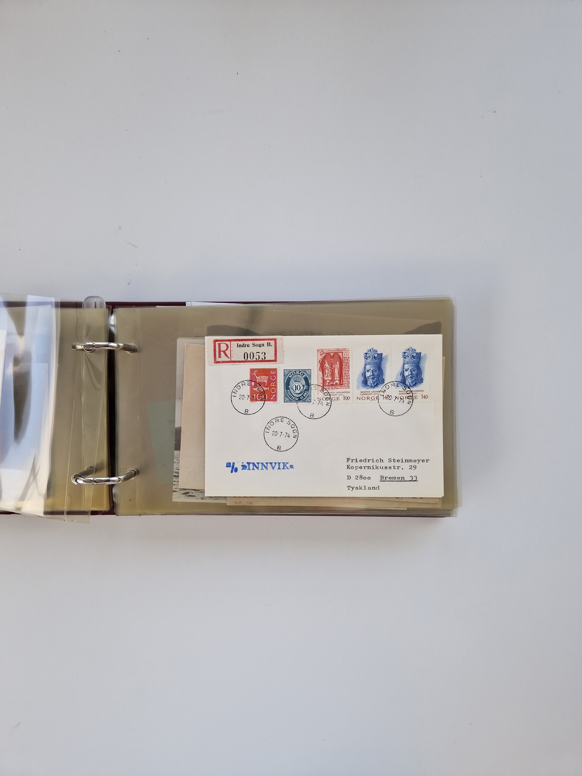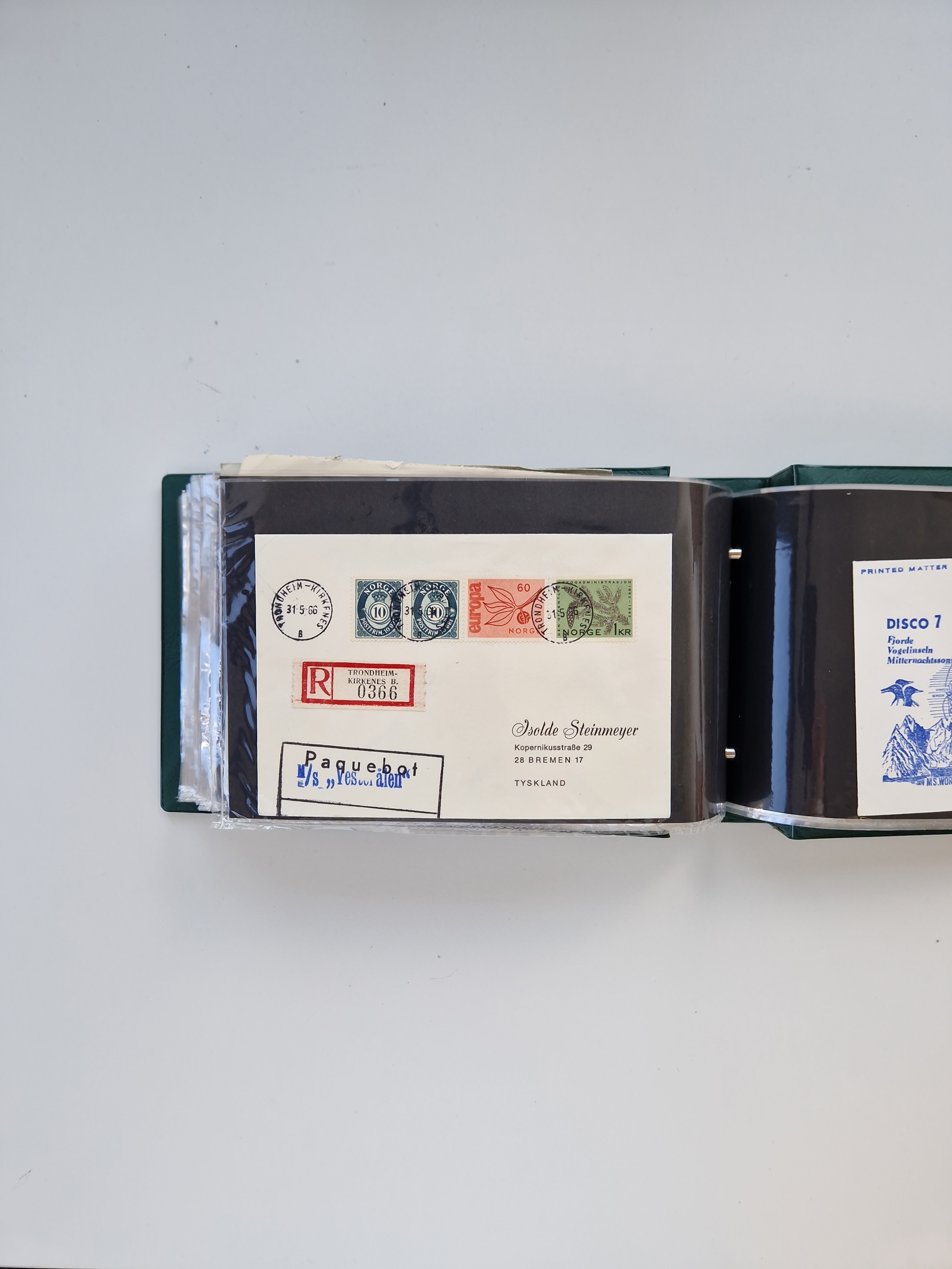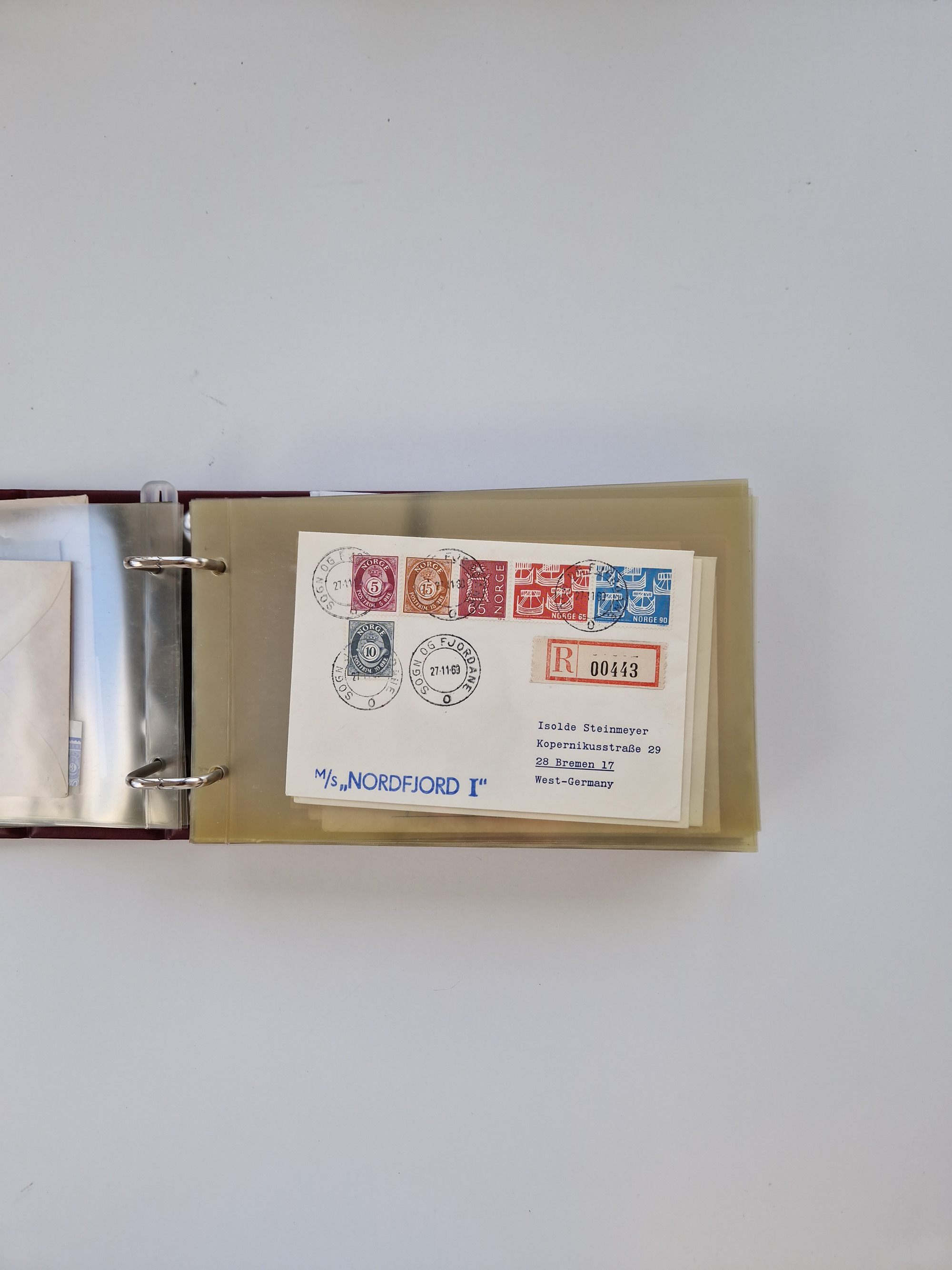 Norwegen: 1855/1980 (ca.), Sammlung mit ca. 240 Briefen, Karten und GSK mit viel Post vor 1945 mit besseren Stempeln, R-Briefen und weiteren Besonderheiten. Dabei u.a. Faltbrief 1855 mit u.a. blauem EKr. “SVINESUND”, kpl. Faltbrief 1874 mit 5x 1 P. und Leitvermerk “via Hull and Christiania”, Brief 1906 mit Stempel "SONDRE HELGELANDS Brief aus Island 1933 mit L1 “Paquebot” und Stempel aus Bergen sowie drei frankierte Belege 1929-33 mit Rahmenstempel “Schiffsbrief/Paquebot über HAMBURG1 (2x mit L1 ”LEDA" . Dazu noch einige moderne Belege, ex Steinmeyer