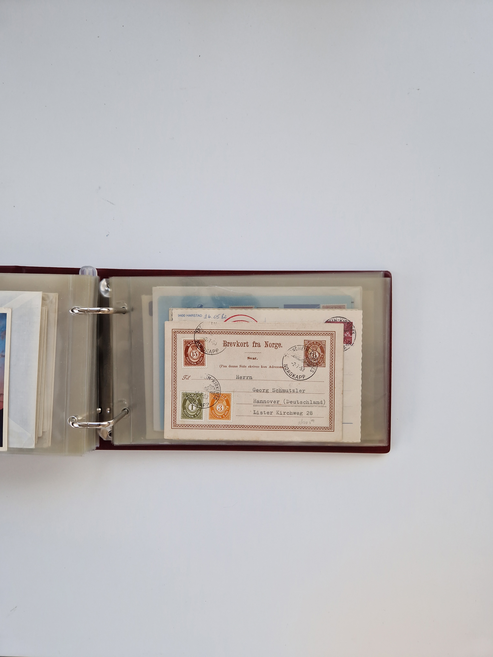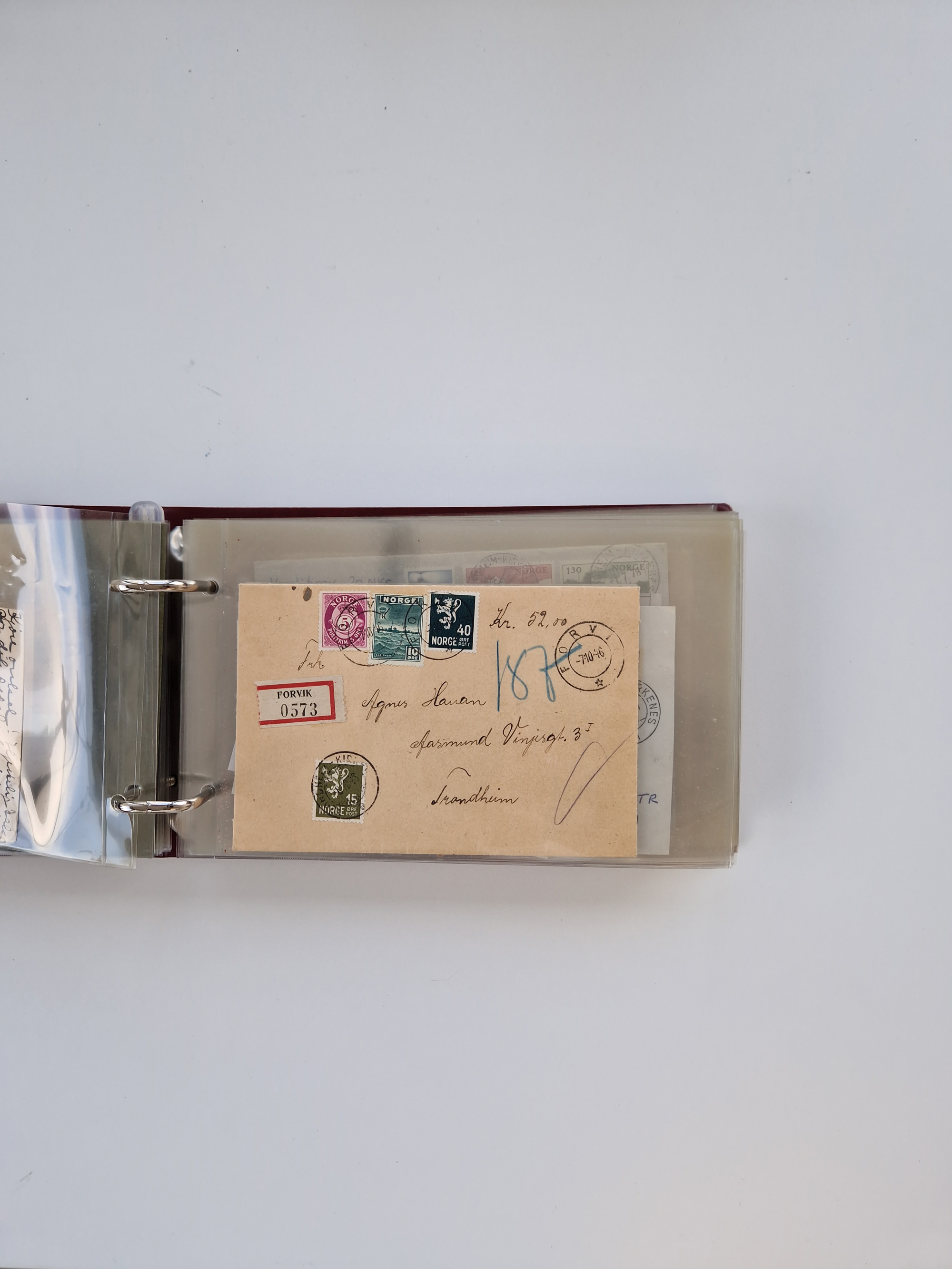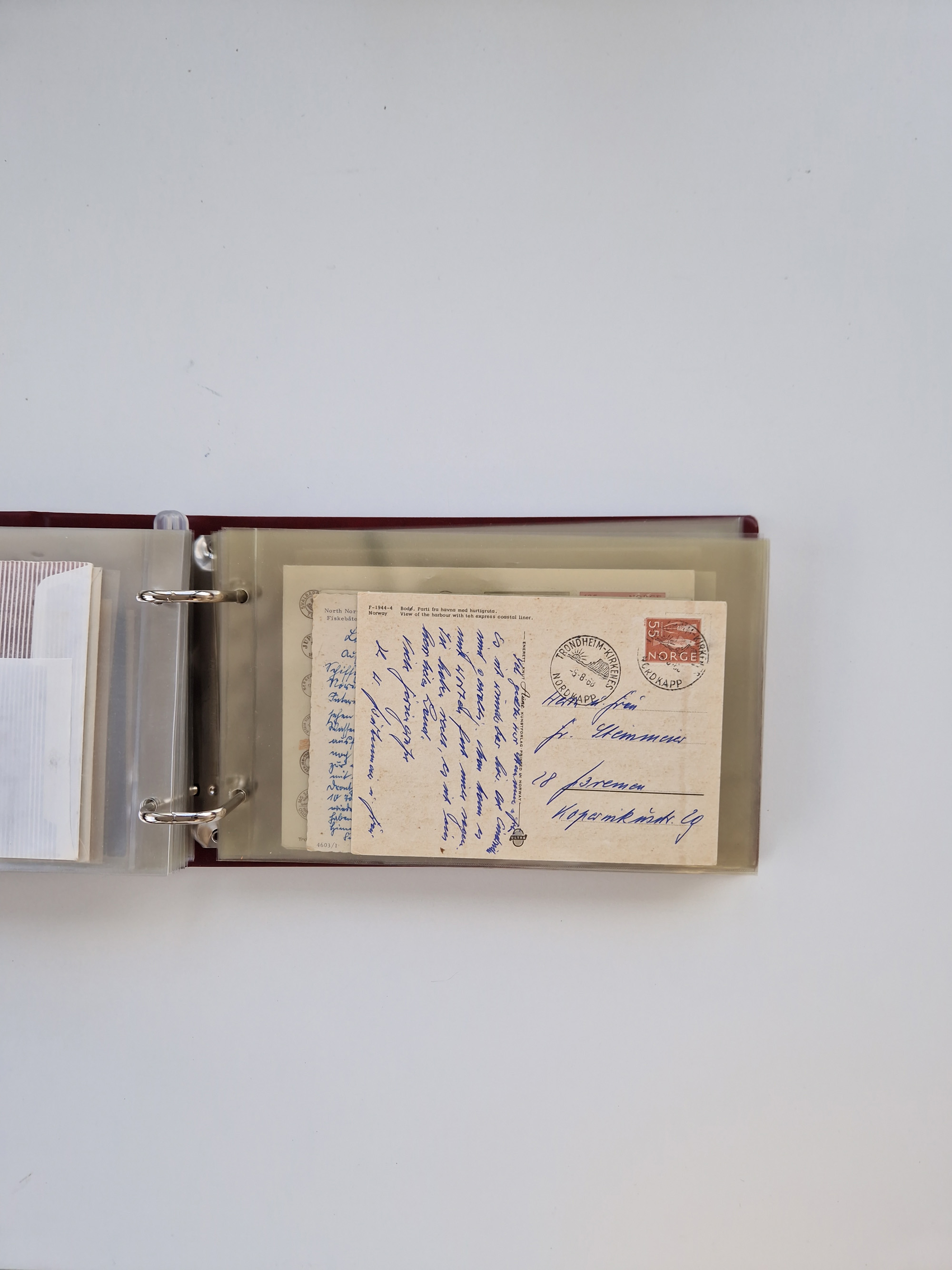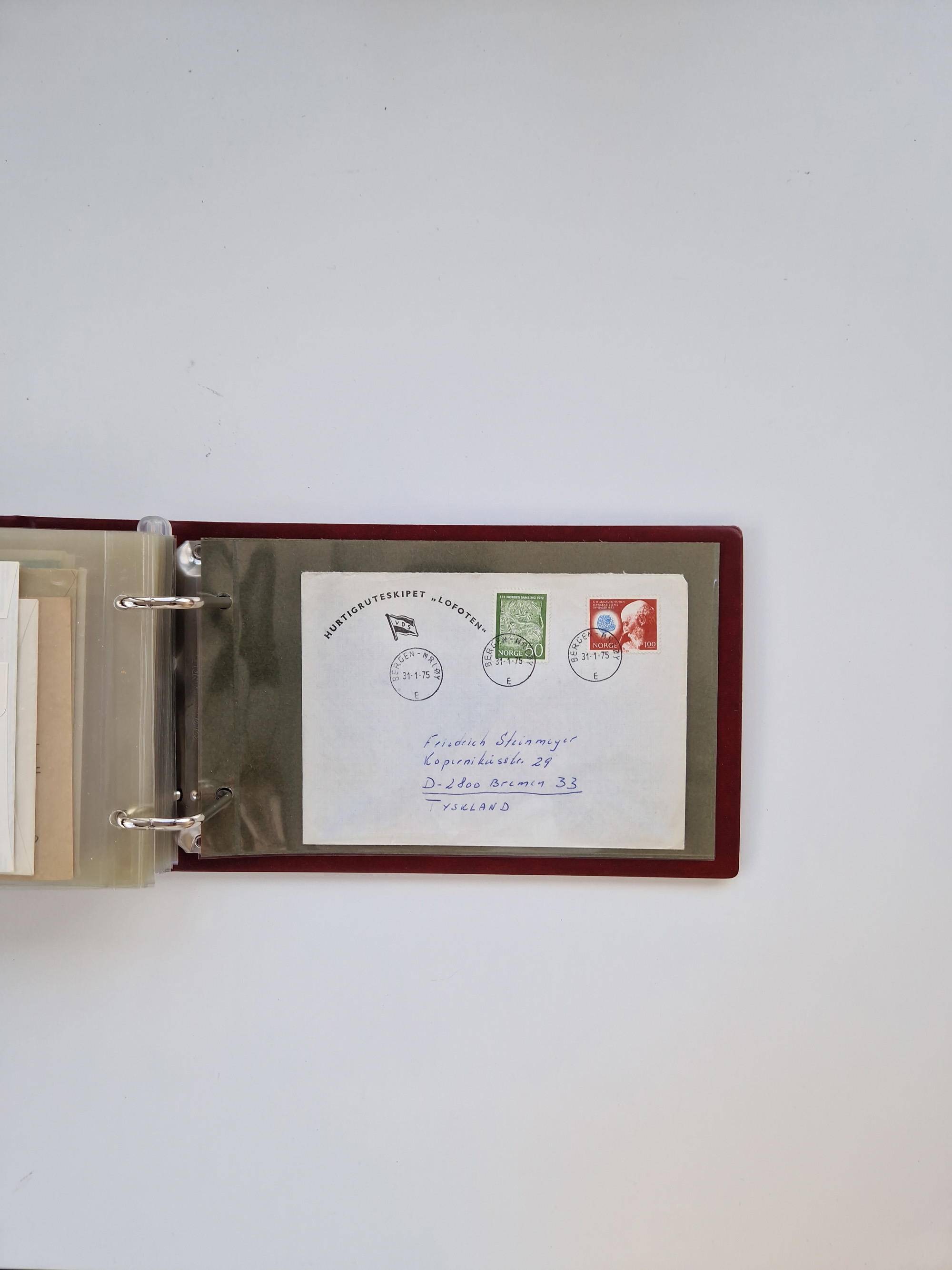 Norwegen: 1855/1980 (ca.), Sammlung mit ca. 240 Briefen, Karten und GSK mit viel Post vor 1945 mit besseren Stempeln, R-Briefen und weiteren Besonderheiten. Dabei u.a. Faltbrief 1855 mit u.a. blauem EKr. “SVINESUND”, kpl. Faltbrief 1874 mit 5x 1 P. und Leitvermerk “via Hull and Christiania”, Brief 1906 mit Stempel "SONDRE HELGELANDS Brief aus Island 1933 mit L1 “Paquebot” und Stempel aus Bergen sowie drei frankierte Belege 1929-33 mit Rahmenstempel “Schiffsbrief/Paquebot über HAMBURG1 (2x mit L1 ”LEDA" . Dazu noch einige moderne Belege, ex Steinmeyer
