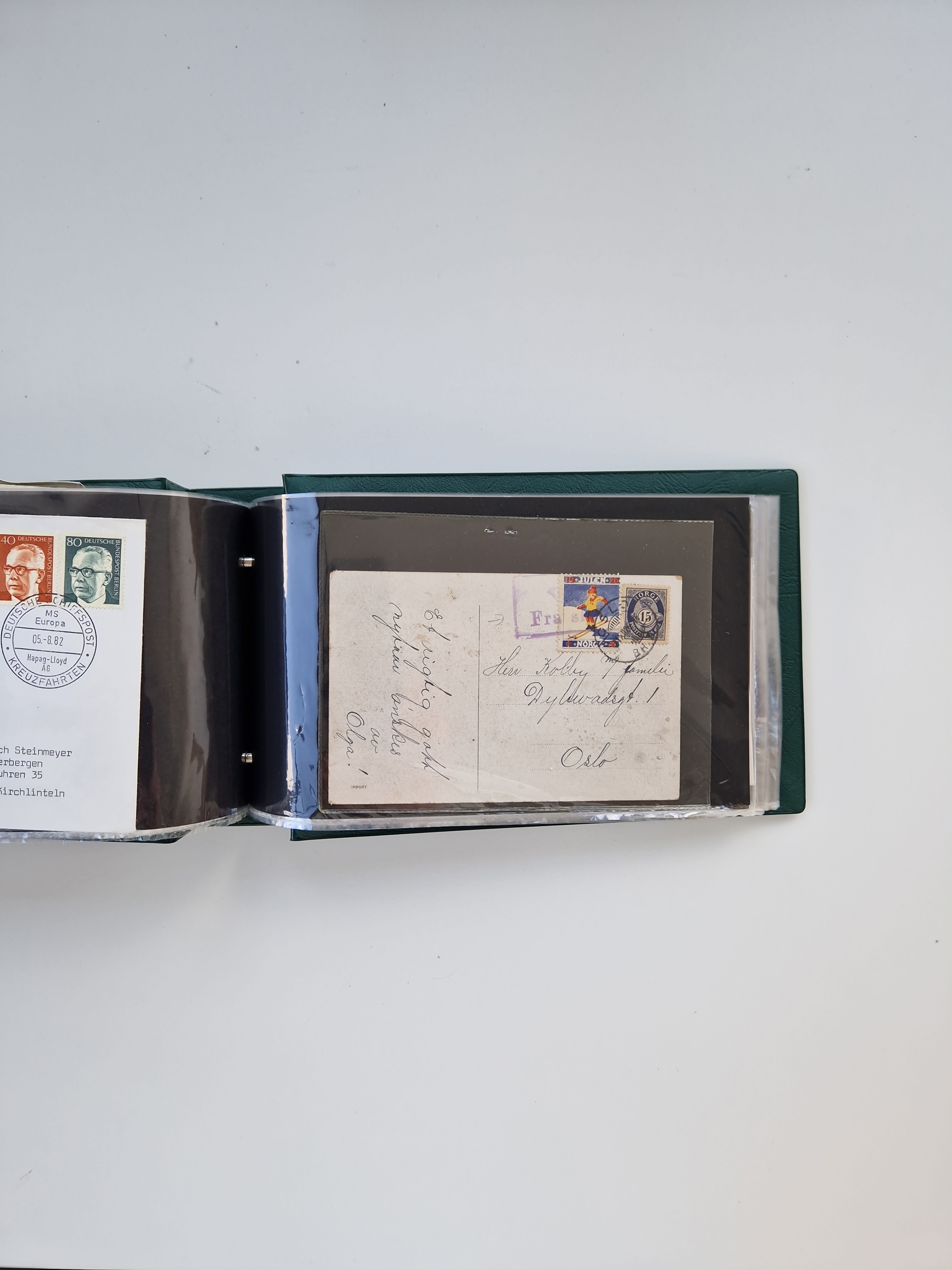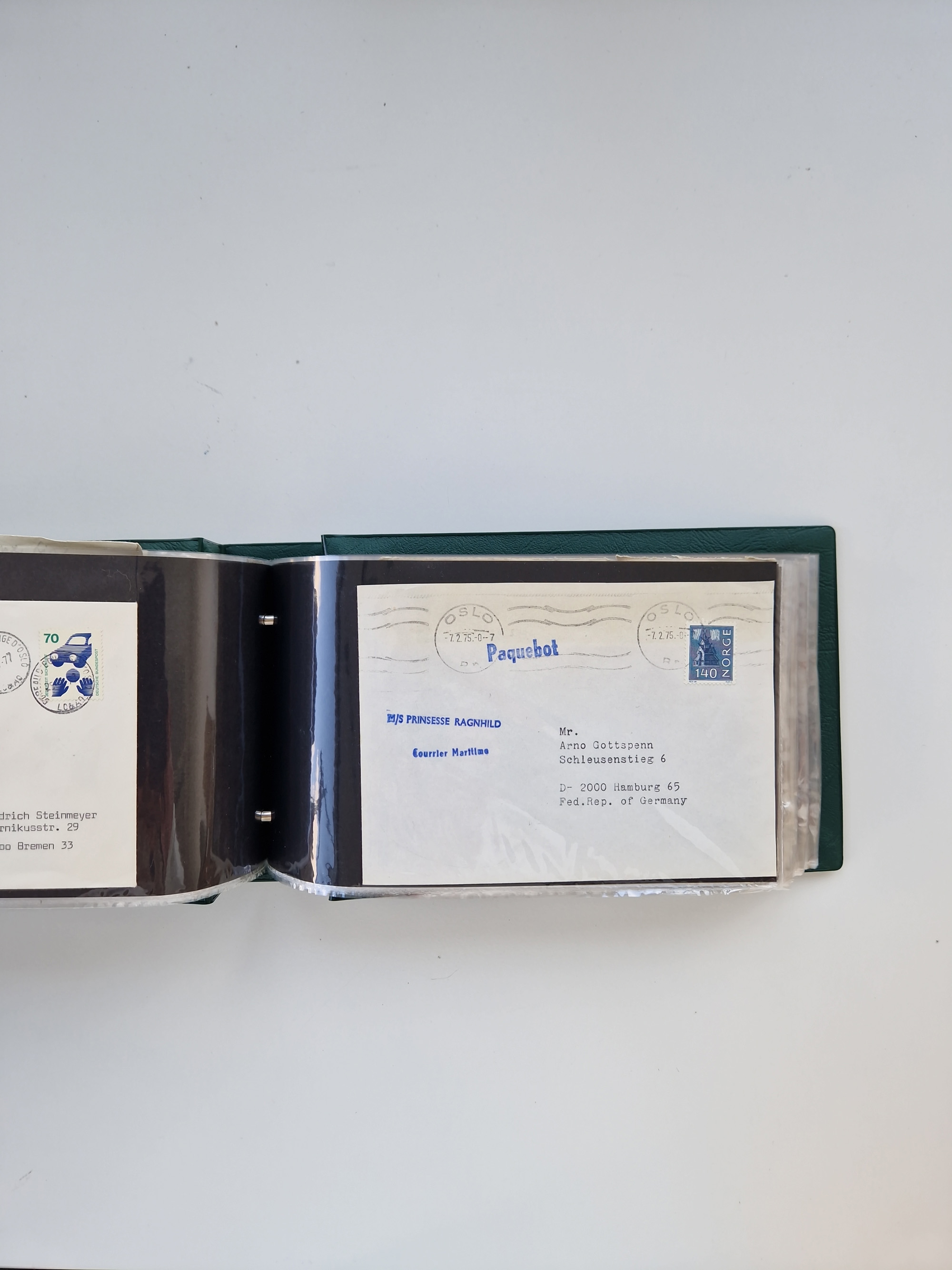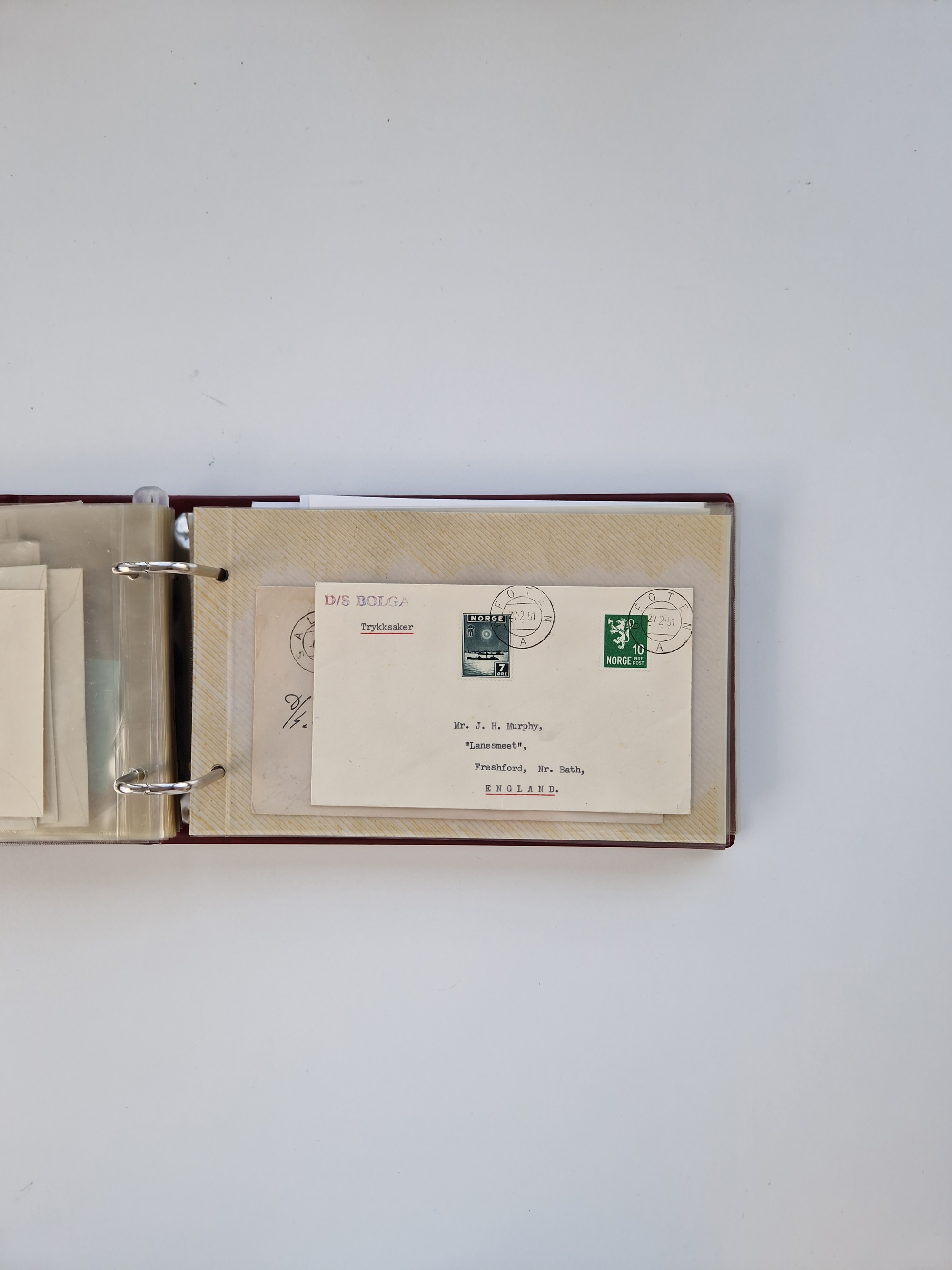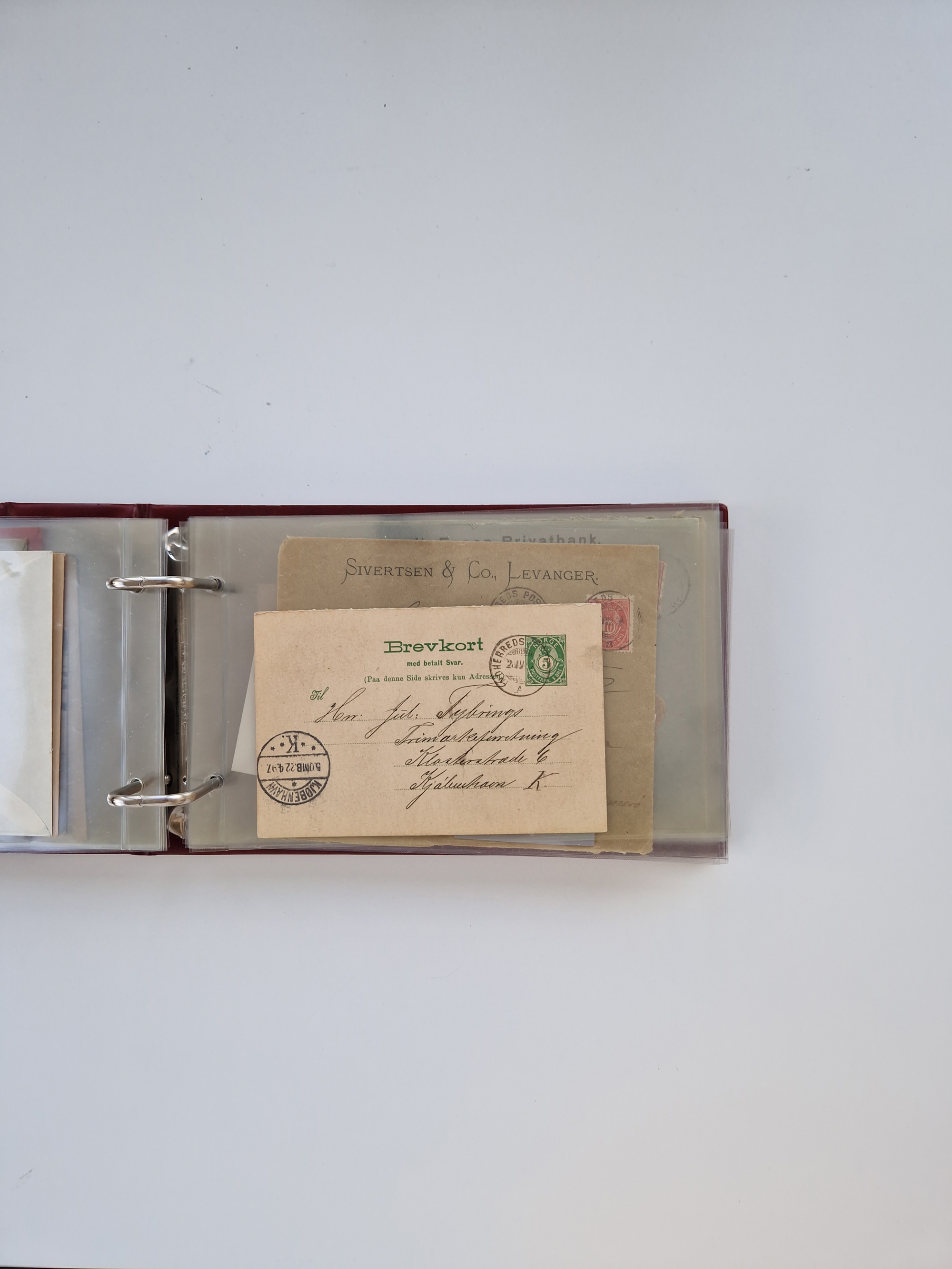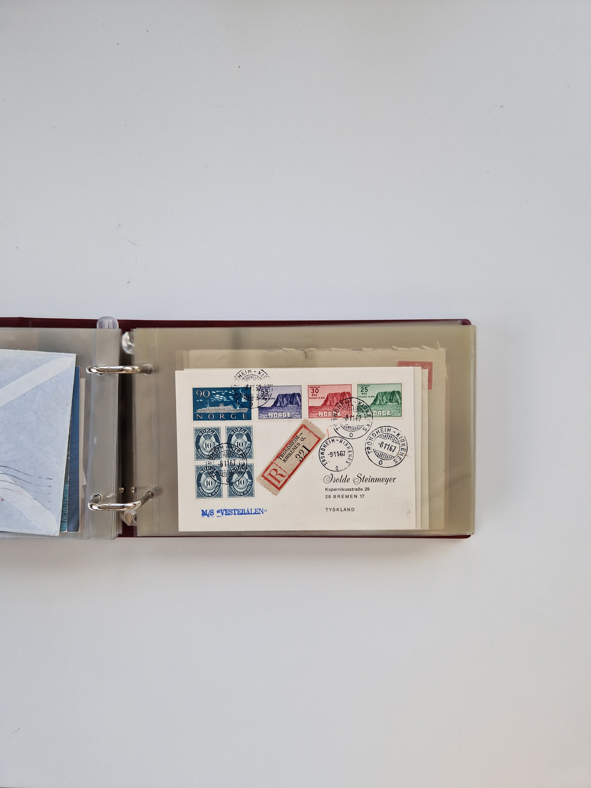 Norwegen: 1855/1980 (ca.), Sammlung mit ca. 240 Briefen, Karten und GSK mit viel Post vor 1945 mit besseren Stempeln, R-Briefen und weiteren Besonderheiten. Dabei u.a. Faltbrief 1855 mit u.a. blauem EKr. “SVINESUND”, kpl. Faltbrief 1874 mit 5x 1 P. und Leitvermerk “via Hull and Christiania”, Brief 1906 mit Stempel "SONDRE HELGELANDS Brief aus Island 1933 mit L1 “Paquebot” und Stempel aus Bergen sowie drei frankierte Belege 1929-33 mit Rahmenstempel “Schiffsbrief/Paquebot über HAMBURG1 (2x mit L1 ”LEDA" . Dazu noch einige moderne Belege, ex Steinmeyer