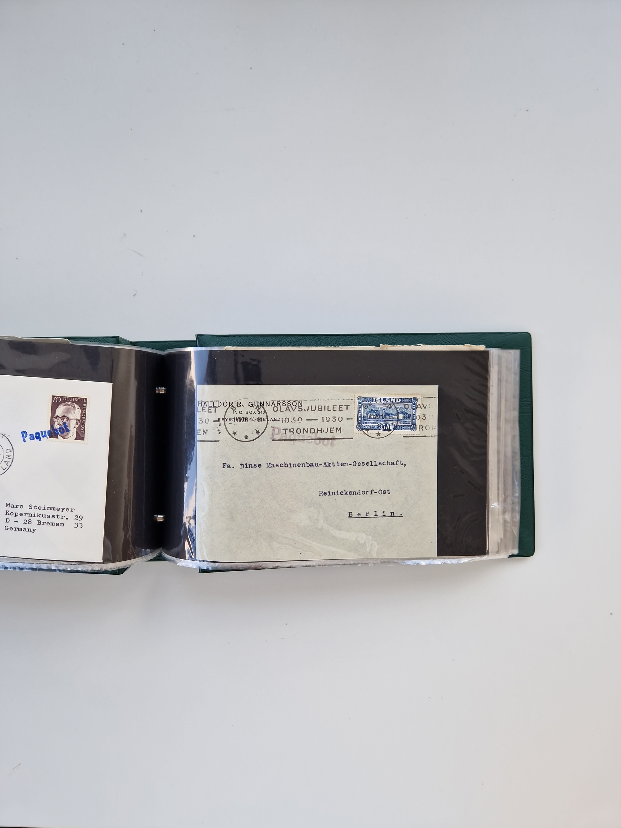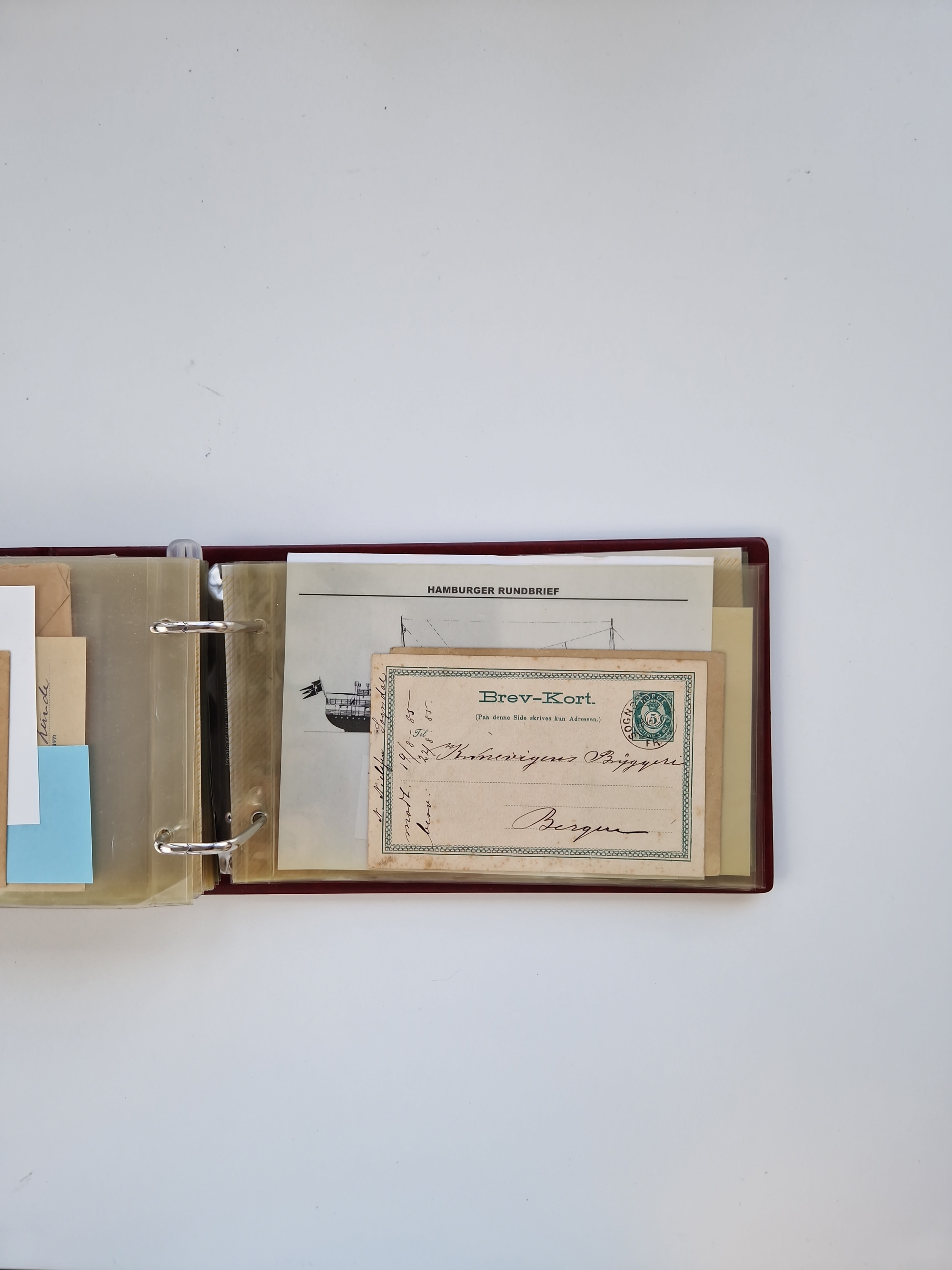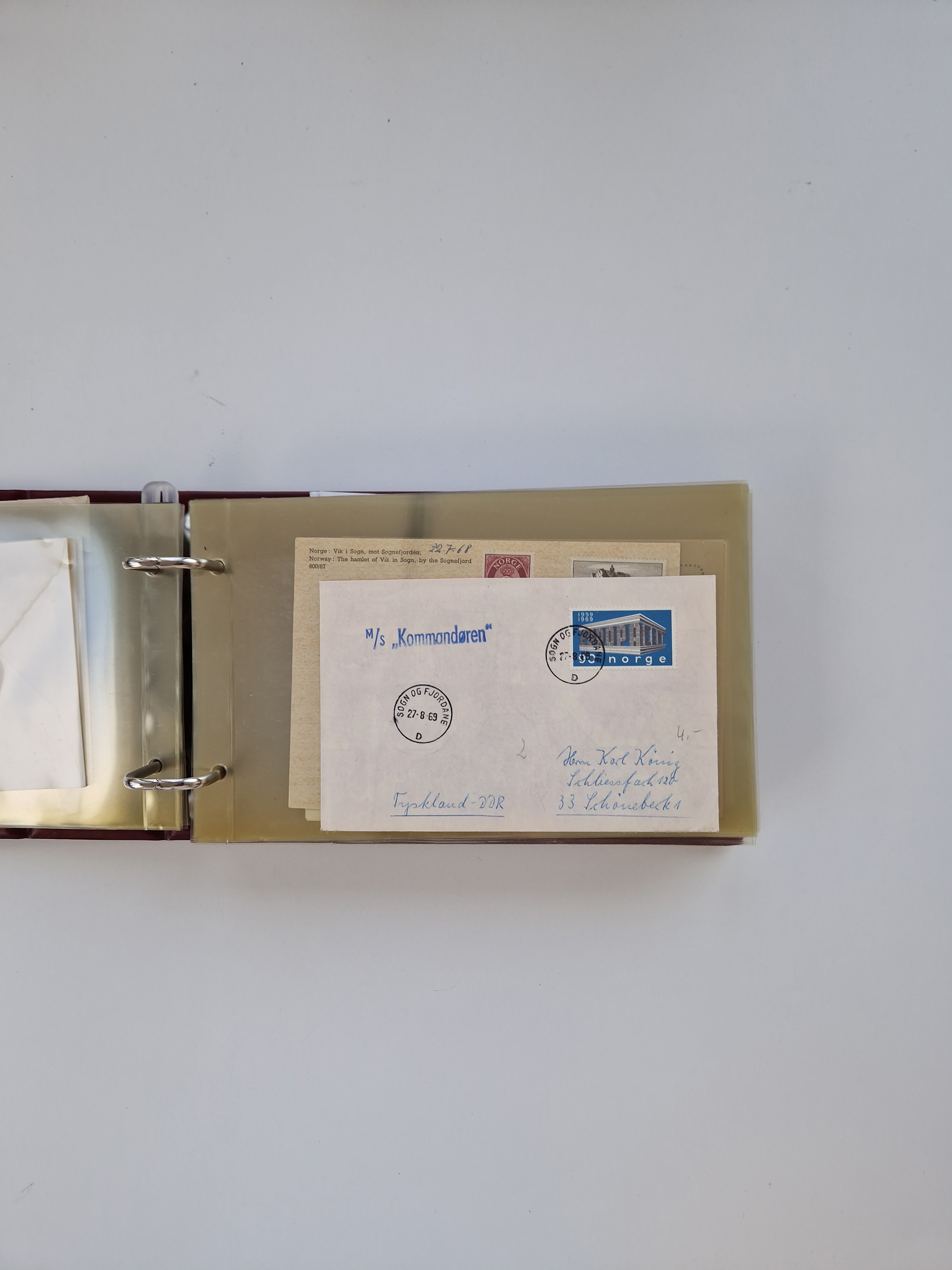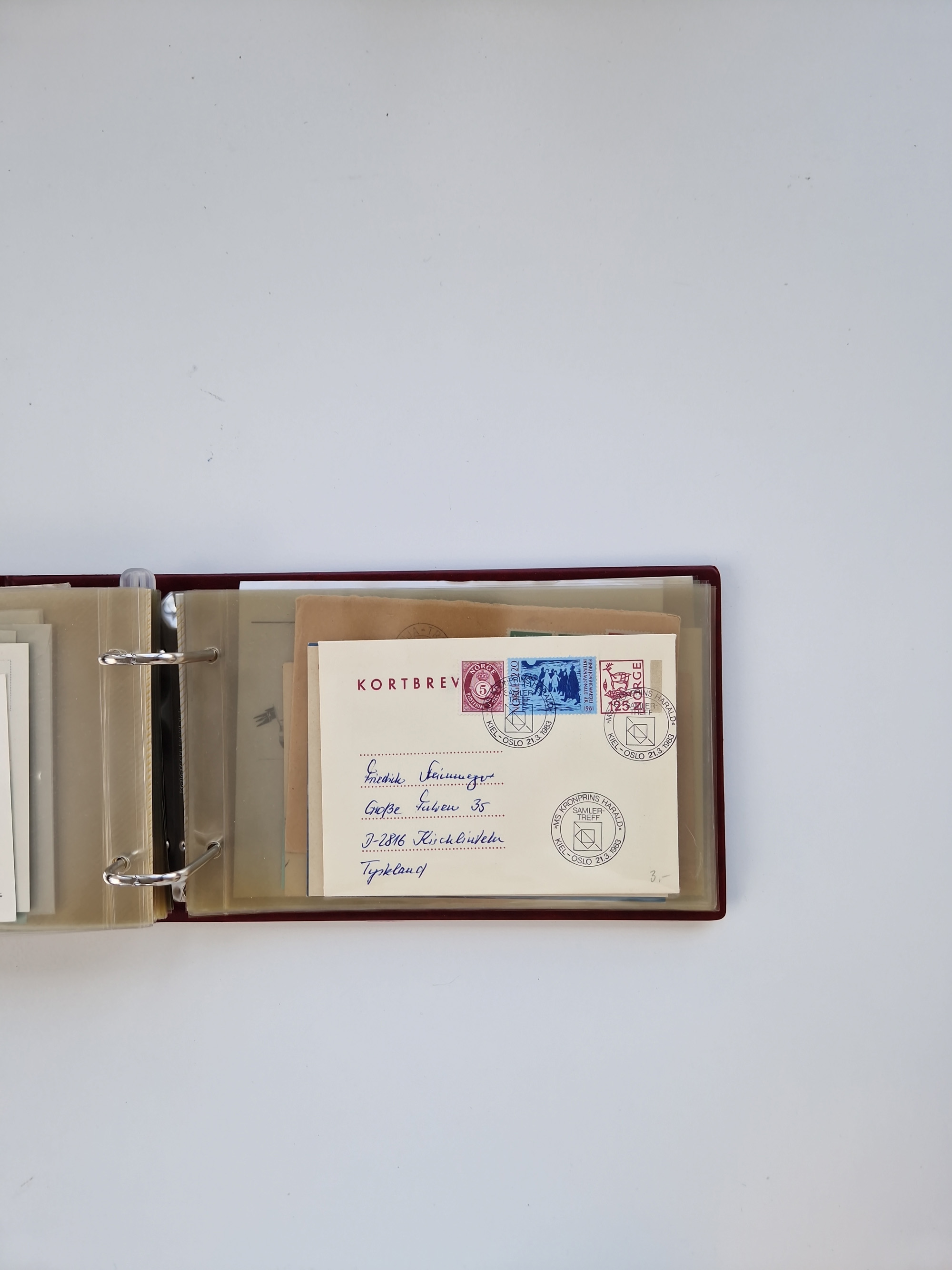 Norwegen: 1855/1980 (ca.), Sammlung mit ca. 240 Briefen, Karten und GSK mit viel Post vor 1945 mit besseren Stempeln, R-Briefen und weiteren Besonderheiten. Dabei u.a. Faltbrief 1855 mit u.a. blauem EKr. “SVINESUND”, kpl. Faltbrief 1874 mit 5x 1 P. und Leitvermerk “via Hull and Christiania”, Brief 1906 mit Stempel "SONDRE HELGELANDS Brief aus Island 1933 mit L1 “Paquebot” und Stempel aus Bergen sowie drei frankierte Belege 1929-33 mit Rahmenstempel “Schiffsbrief/Paquebot über HAMBURG1 (2x mit L1 ”LEDA" . Dazu noch einige moderne Belege, ex Steinmeyer