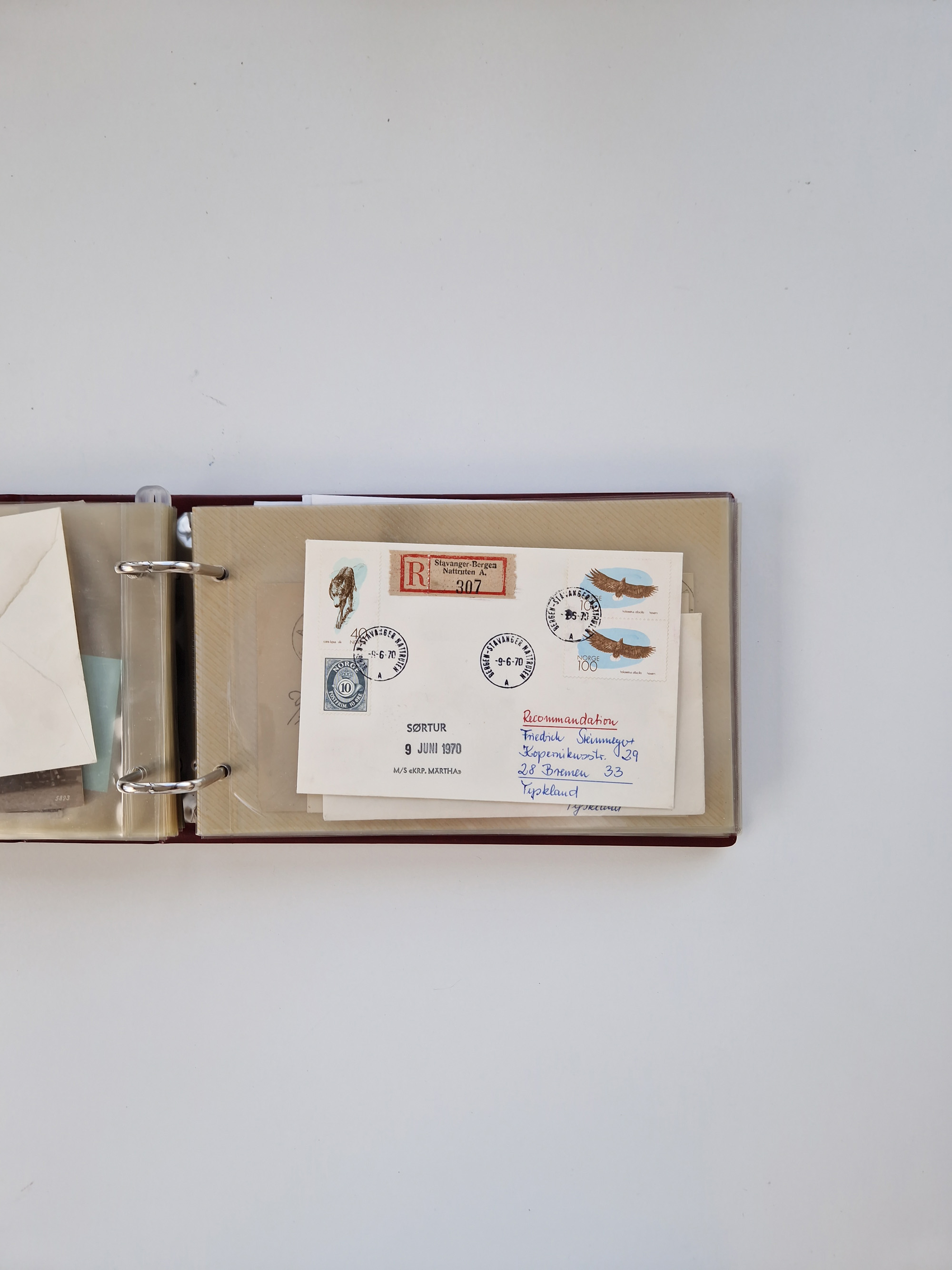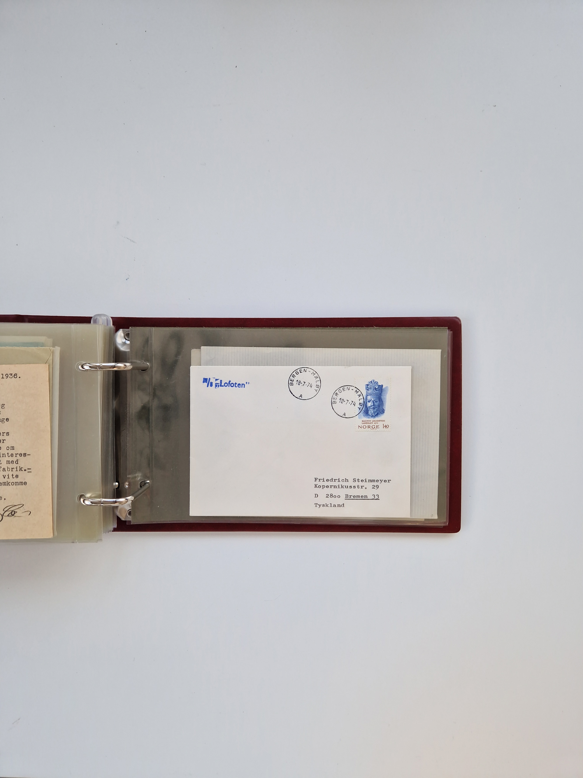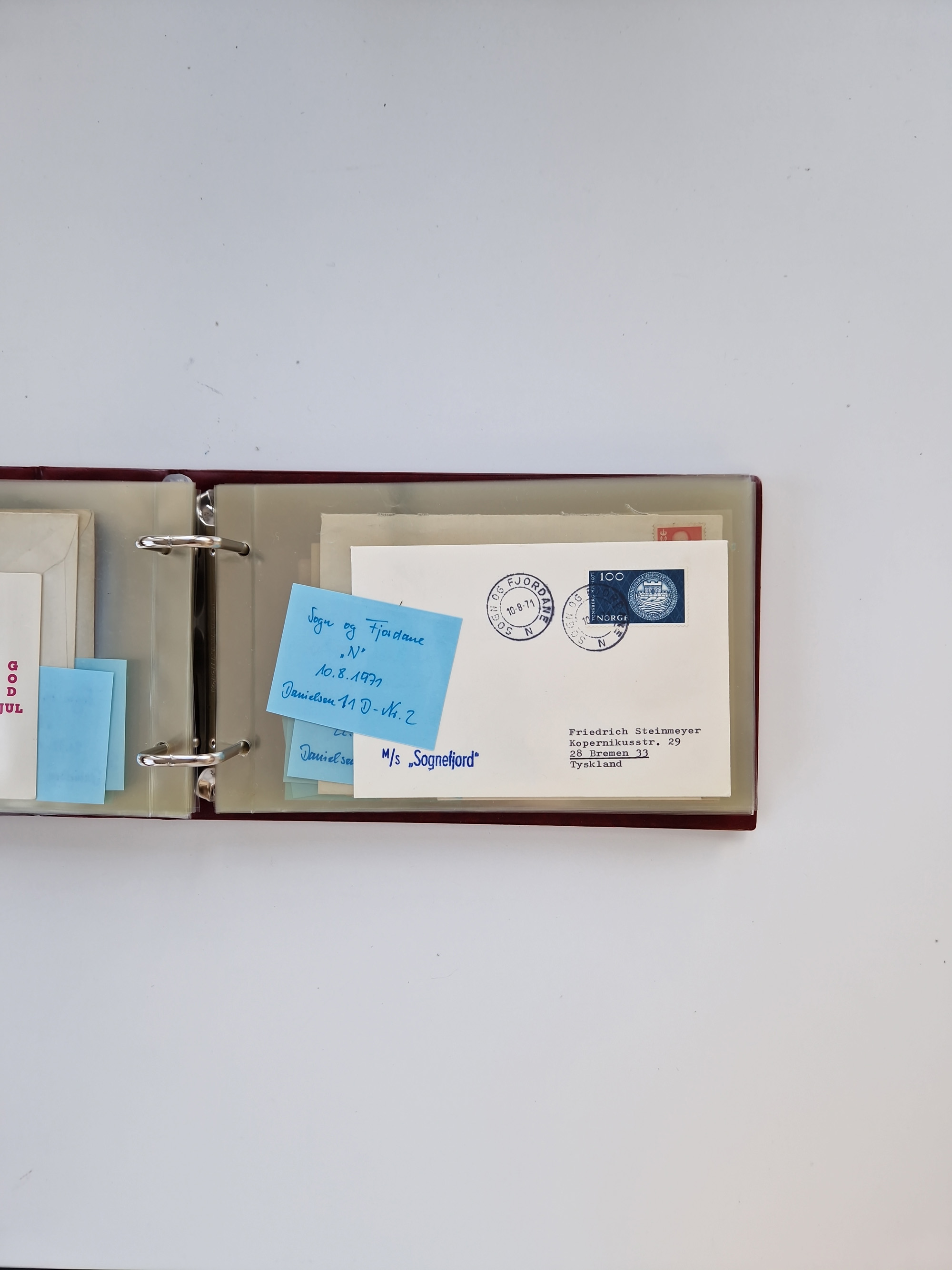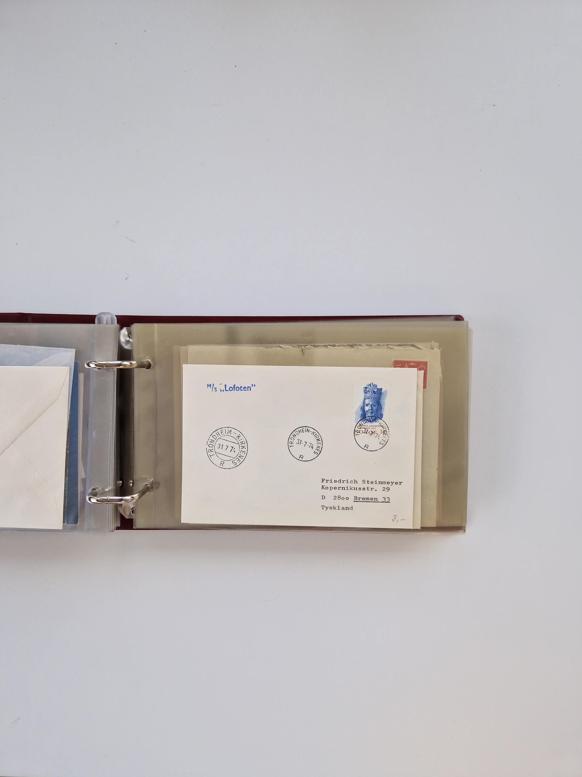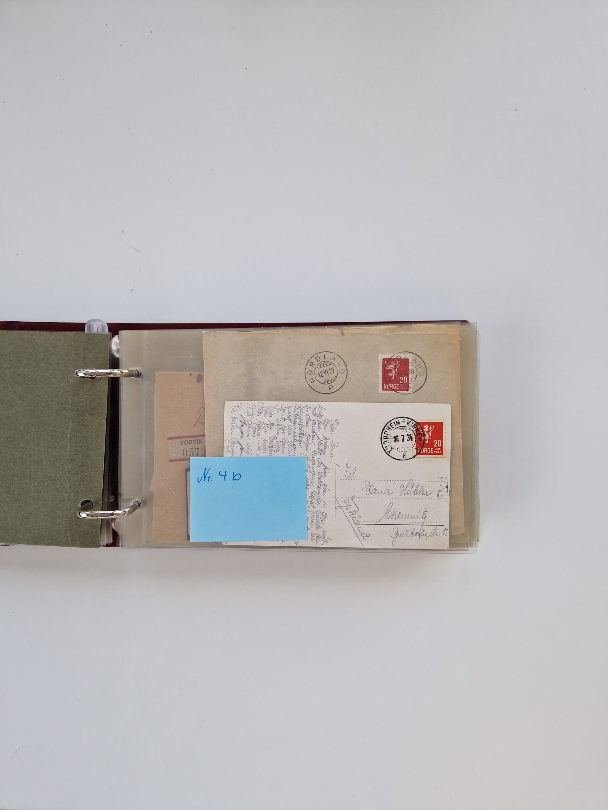Norwegen: 1855/1980 (ca.), Sammlung mit ca. 240 Briefen, Karten und GSK mit viel Post vor 1945 mit besseren Stempeln, R-Briefen und weiteren Besonderheiten. Dabei u.a. Faltbrief 1855 mit u.a. blauem EKr. “SVINESUND”, kpl. Faltbrief 1874 mit 5x 1 P. und Leitvermerk “via Hull and Christiania”, Brief 1906 mit Stempel "SONDRE HELGELANDS Brief aus Island 1933 mit L1 “Paquebot” und Stempel aus Bergen sowie drei frankierte Belege 1929-33 mit Rahmenstempel “Schiffsbrief/Paquebot über HAMBURG1 (2x mit L1 ”LEDA" . Dazu noch einige moderne Belege, ex Steinmeyer
