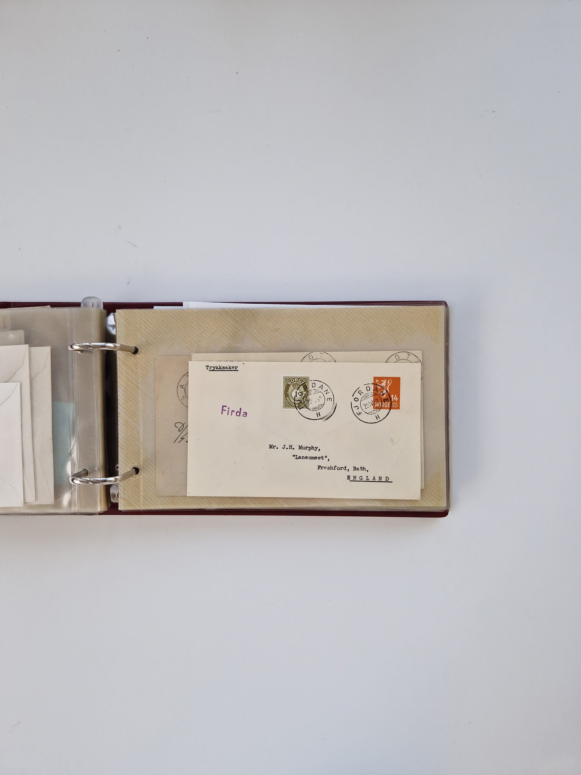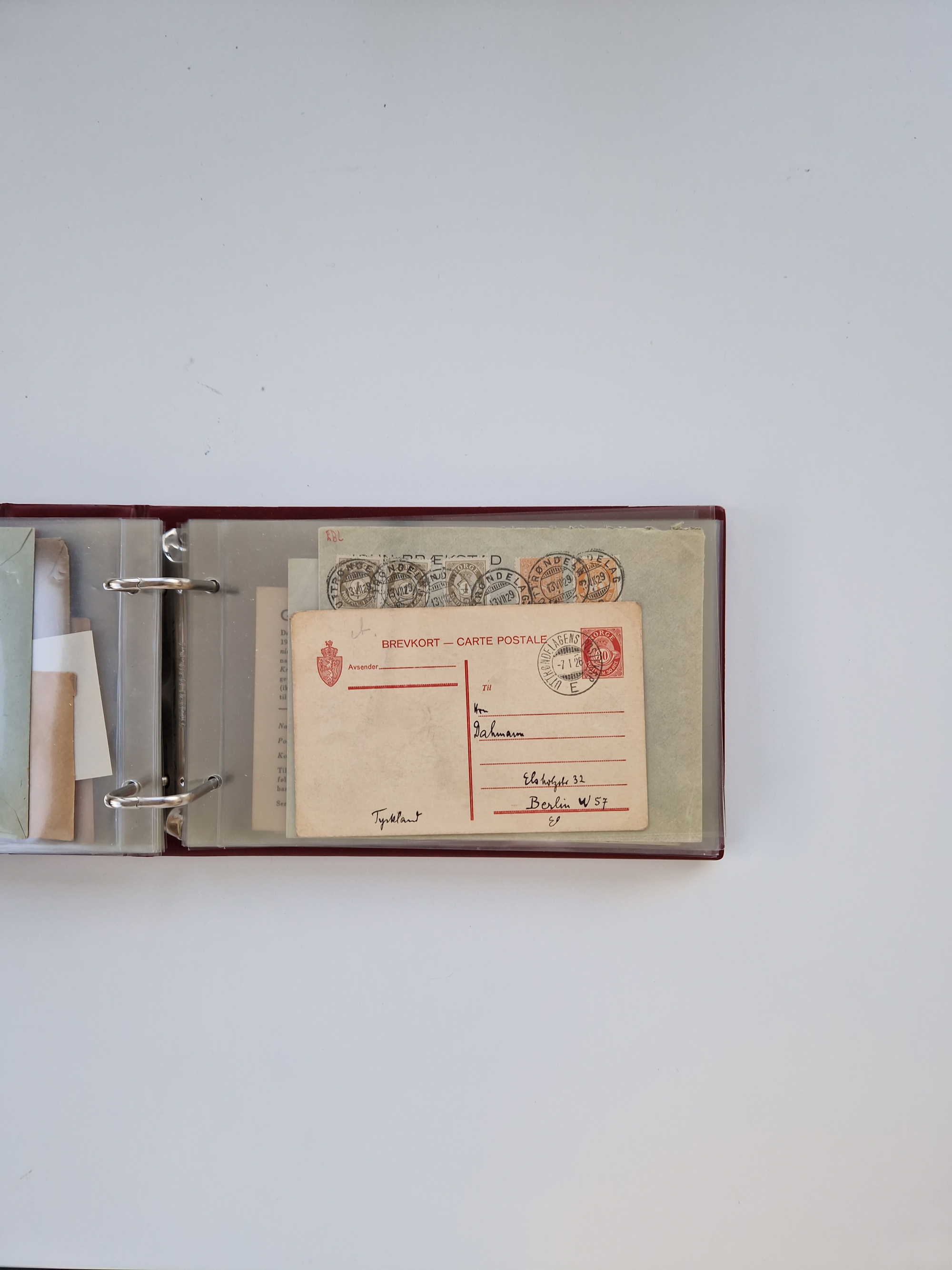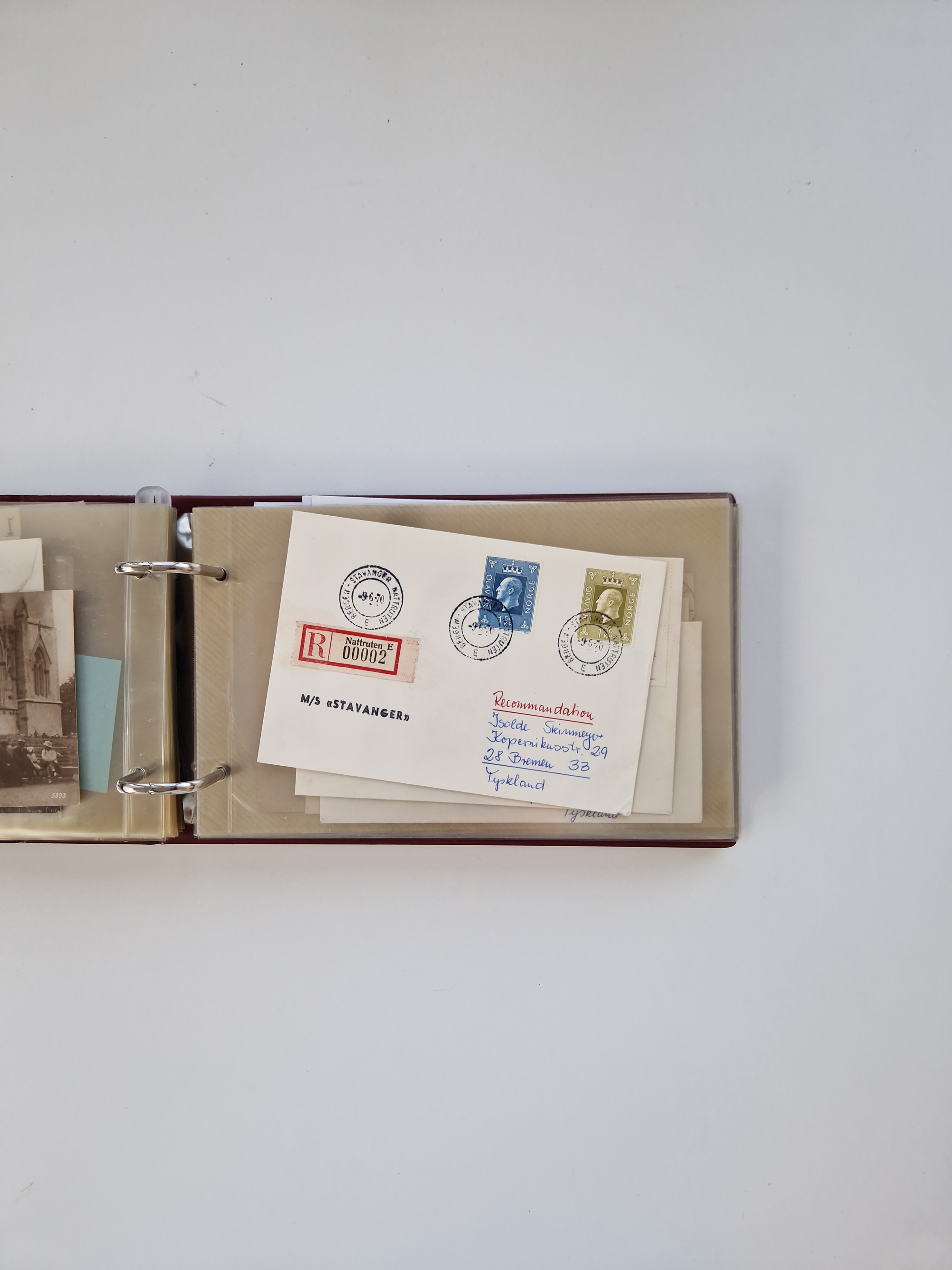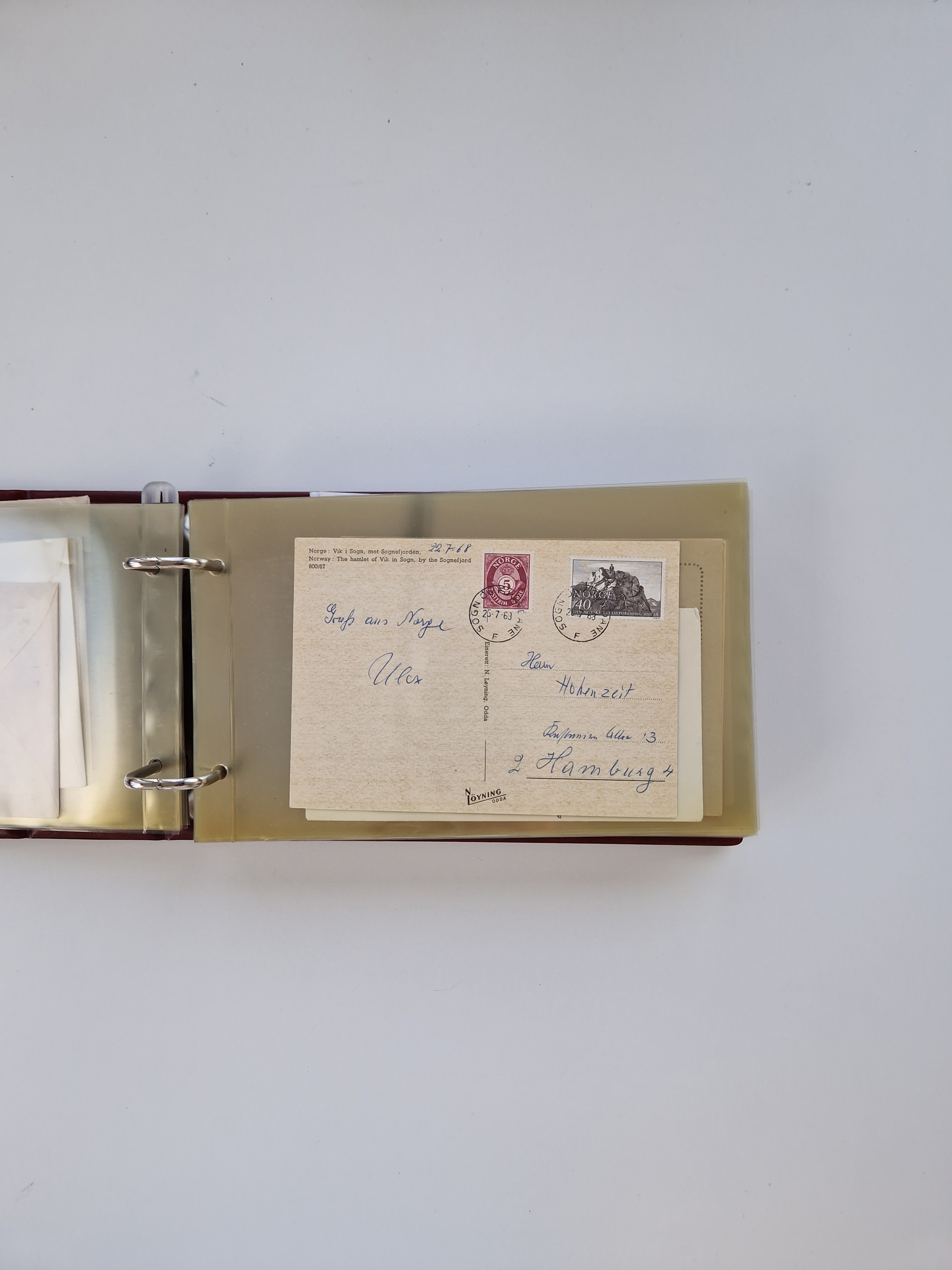 Norwegen: 1855/1980 (ca.), Sammlung mit ca. 240 Briefen, Karten und GSK mit viel Post vor 1945 mit besseren Stempeln, R-Briefen und weiteren Besonderheiten. Dabei u.a. Faltbrief 1855 mit u.a. blauem EKr. “SVINESUND”, kpl. Faltbrief 1874 mit 5x 1 P. und Leitvermerk “via Hull and Christiania”, Brief 1906 mit Stempel "SONDRE HELGELANDS Brief aus Island 1933 mit L1 “Paquebot” und Stempel aus Bergen sowie drei frankierte Belege 1929-33 mit Rahmenstempel “Schiffsbrief/Paquebot über HAMBURG1 (2x mit L1 ”LEDA" . Dazu noch einige moderne Belege, ex Steinmeyer