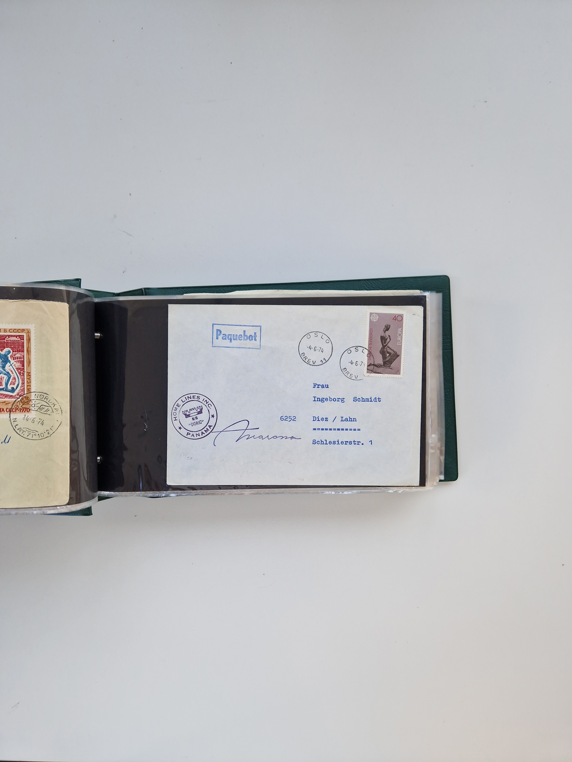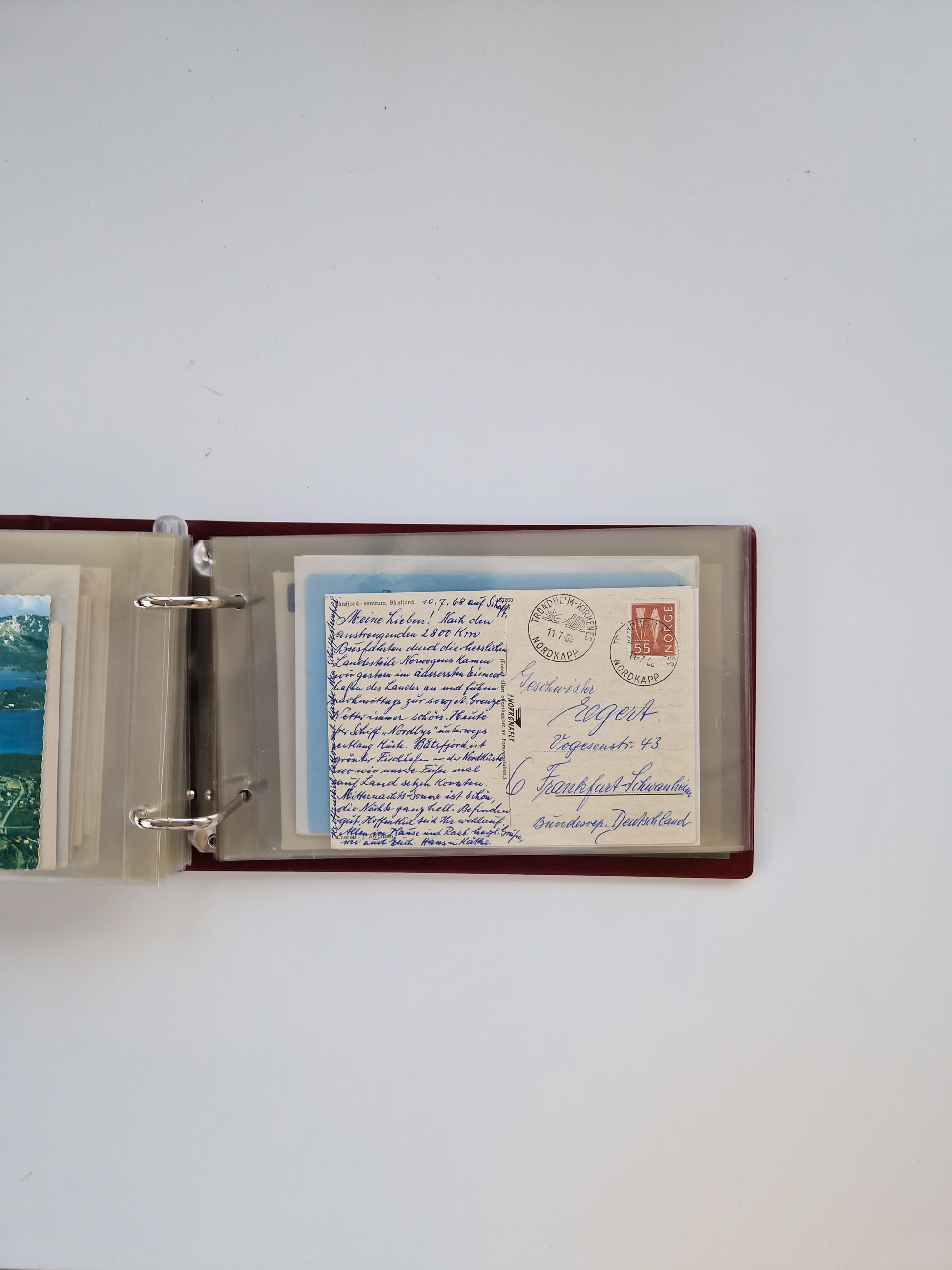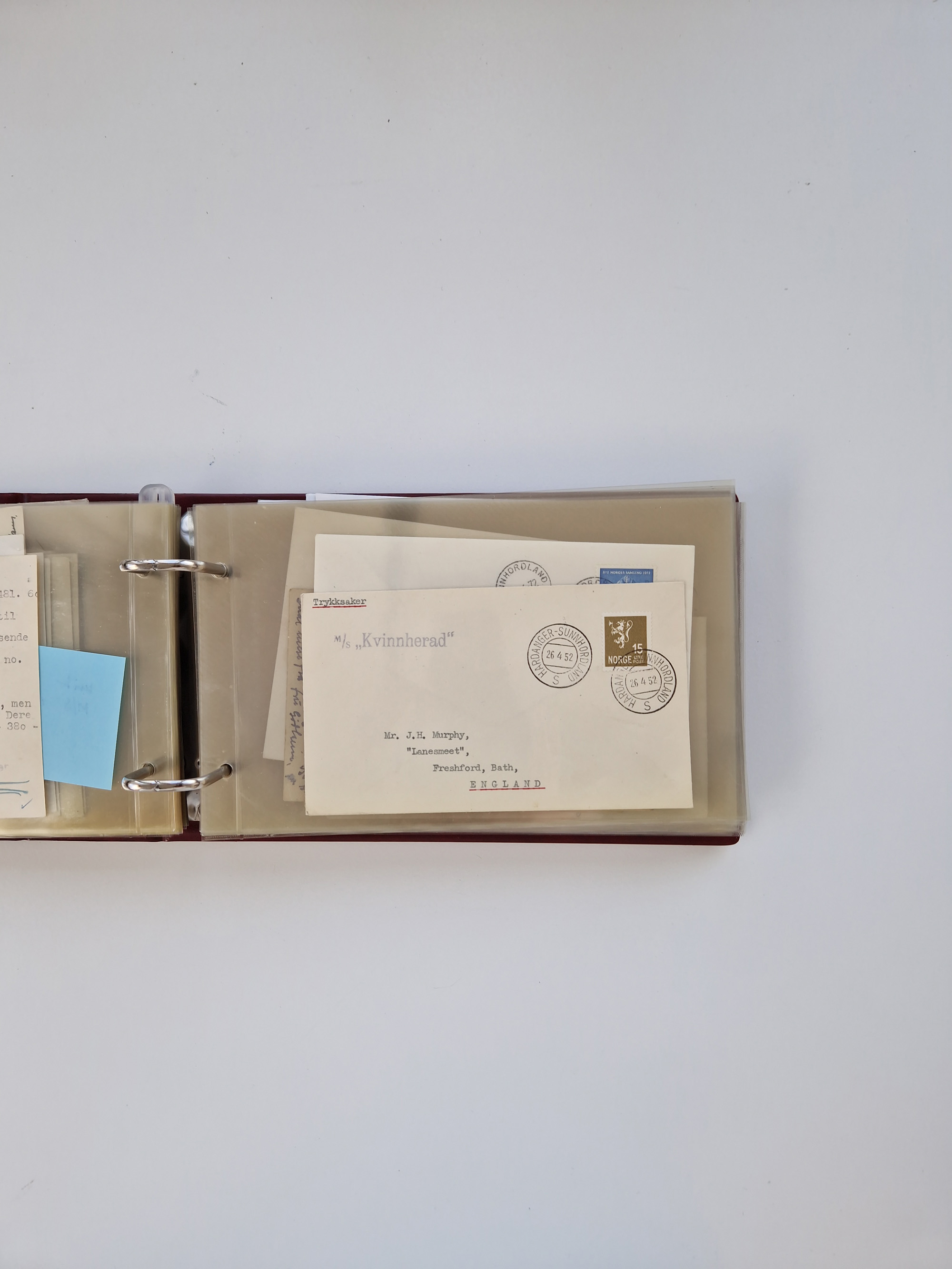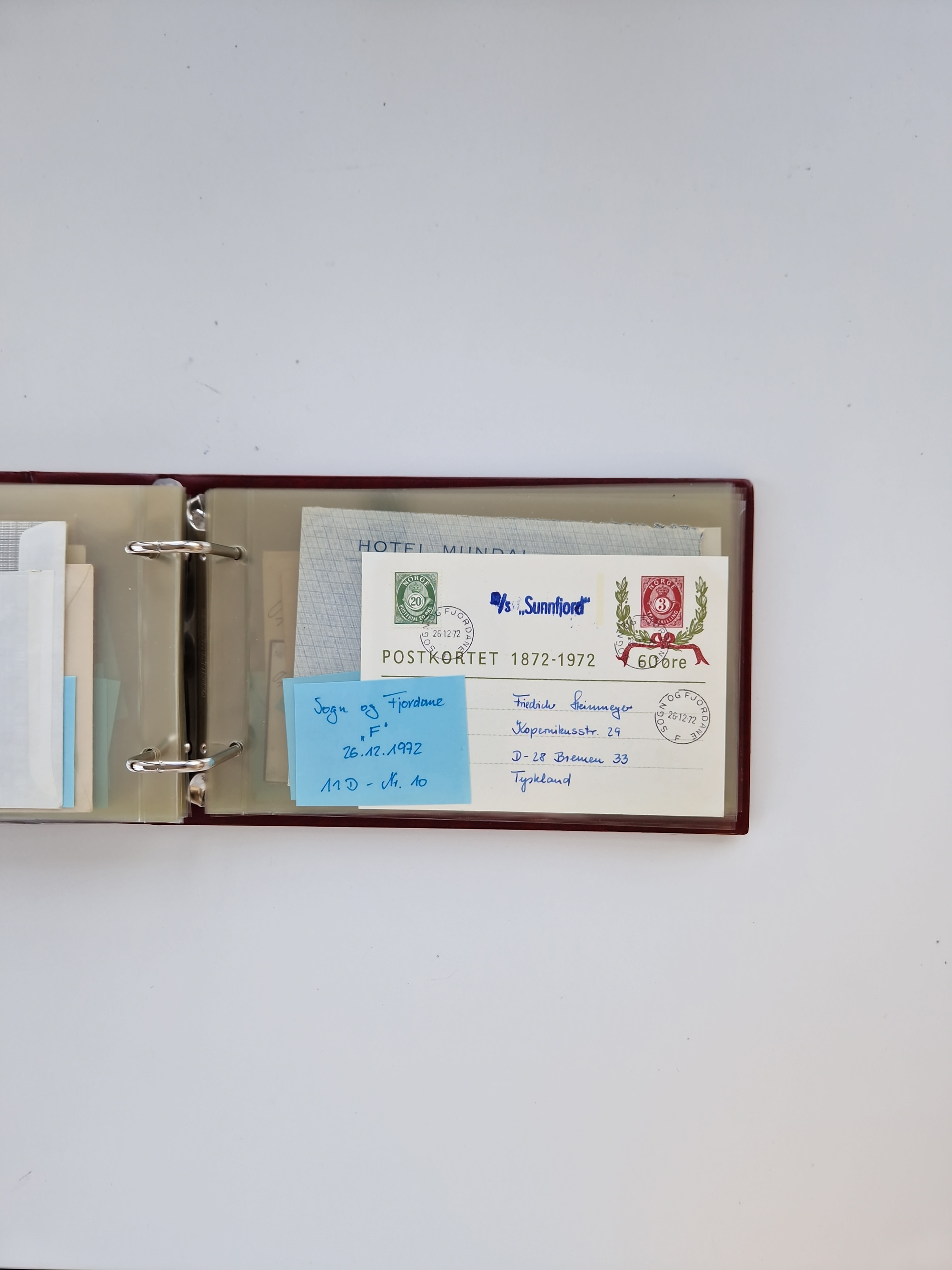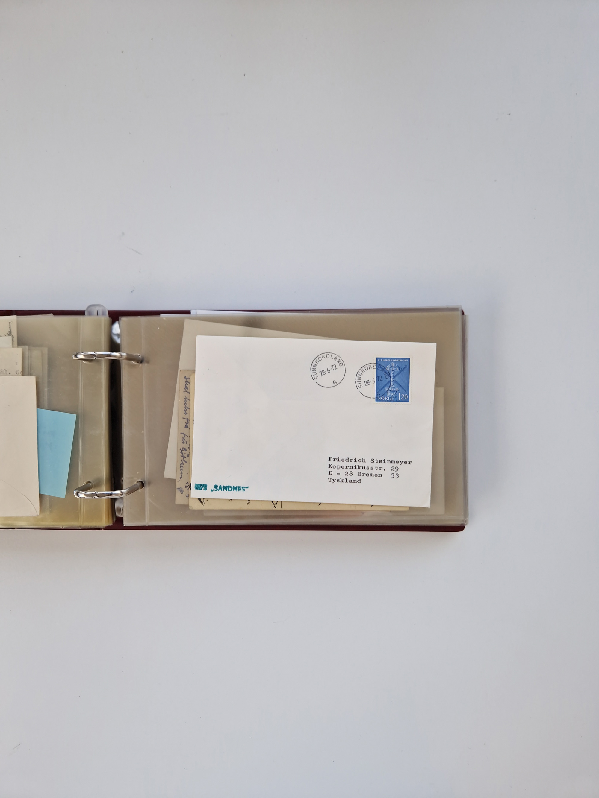 Norwegen: 1855/1980 (ca.), Sammlung mit ca. 240 Briefen, Karten und GSK mit viel Post vor 1945 mit besseren Stempeln, R-Briefen und weiteren Besonderheiten. Dabei u.a. Faltbrief 1855 mit u.a. blauem EKr. “SVINESUND”, kpl. Faltbrief 1874 mit 5x 1 P. und Leitvermerk “via Hull and Christiania”, Brief 1906 mit Stempel "SONDRE HELGELANDS Brief aus Island 1933 mit L1 “Paquebot” und Stempel aus Bergen sowie drei frankierte Belege 1929-33 mit Rahmenstempel “Schiffsbrief/Paquebot über HAMBURG1 (2x mit L1 ”LEDA" . Dazu noch einige moderne Belege, ex Steinmeyer