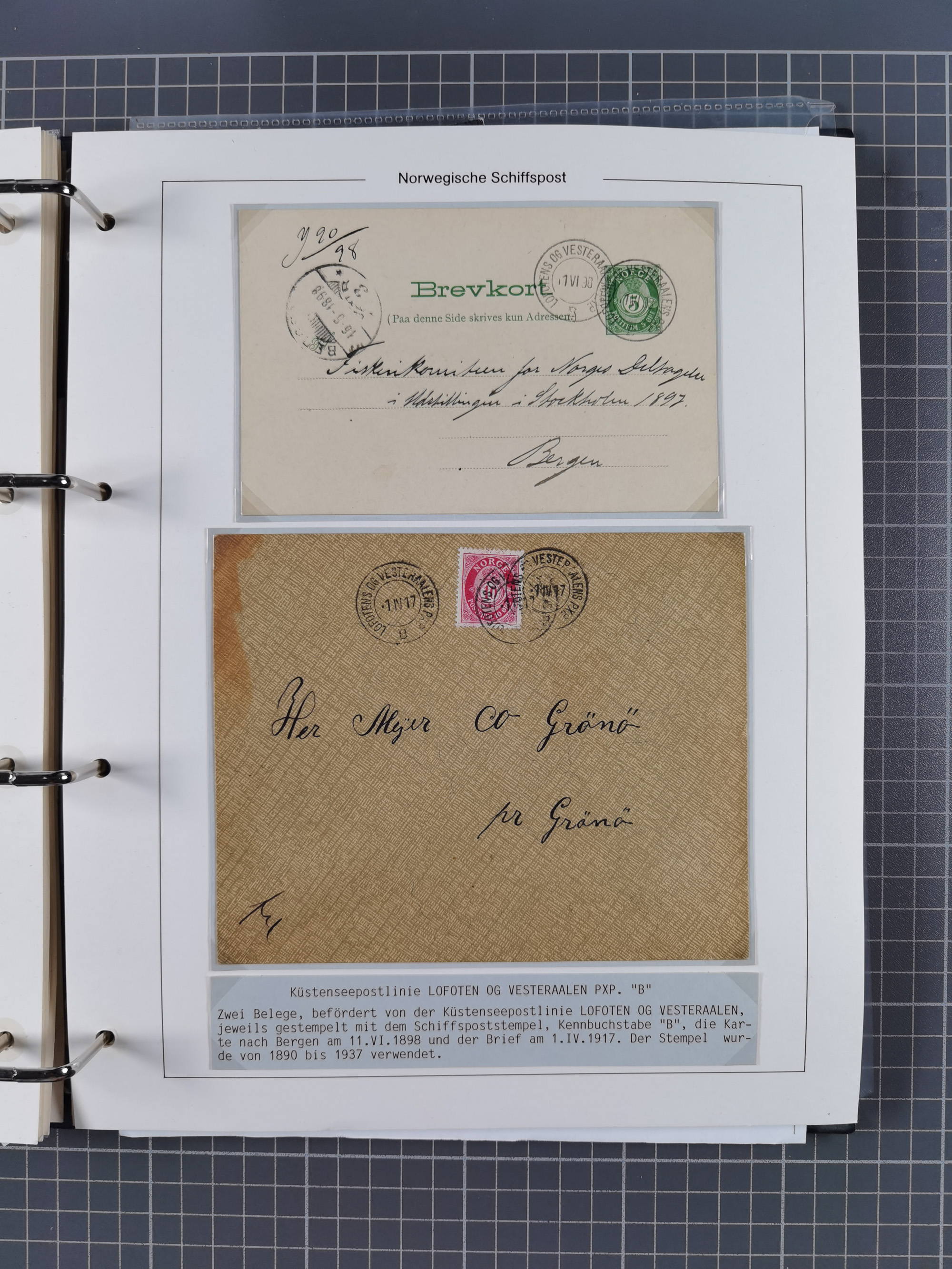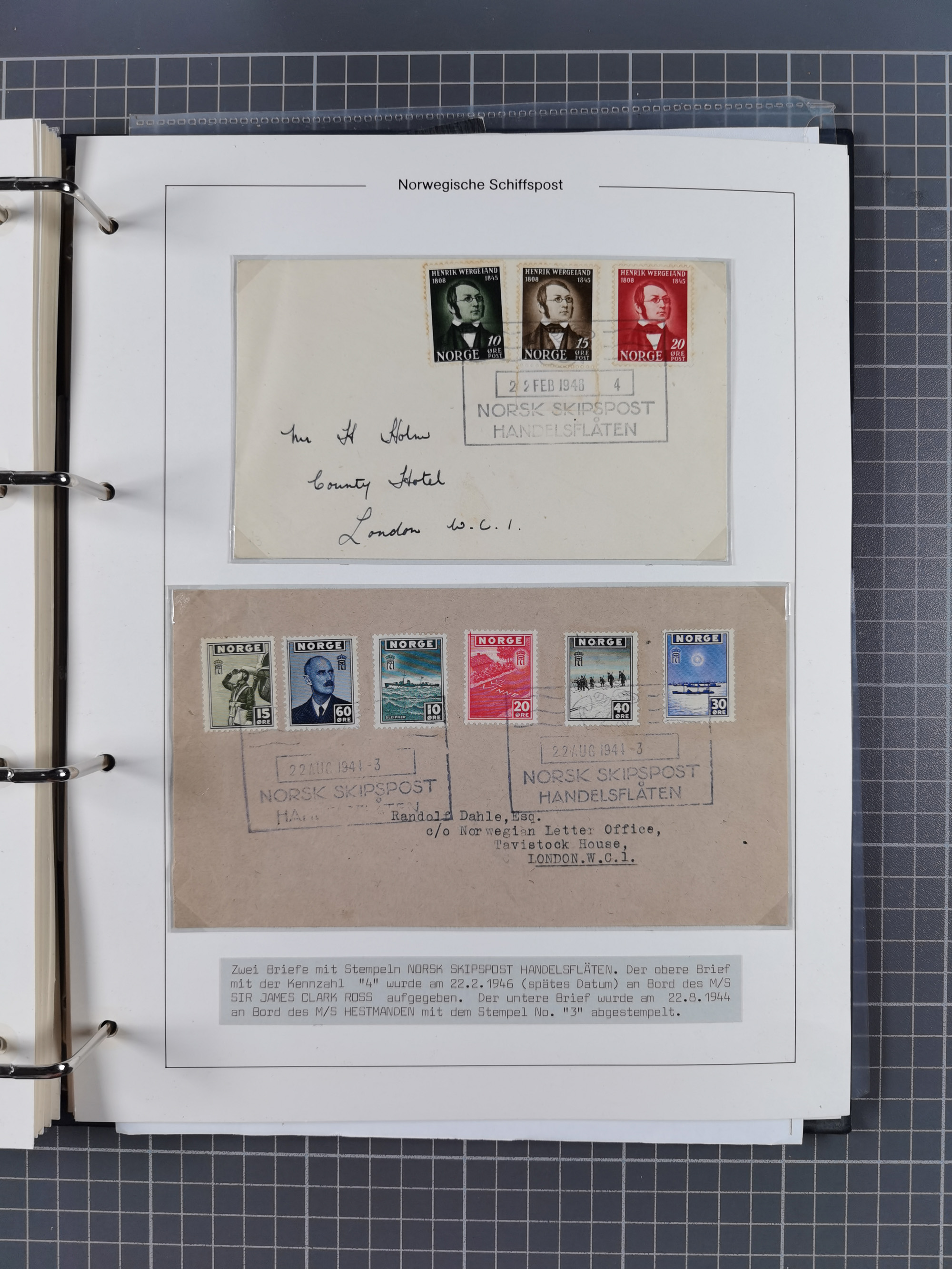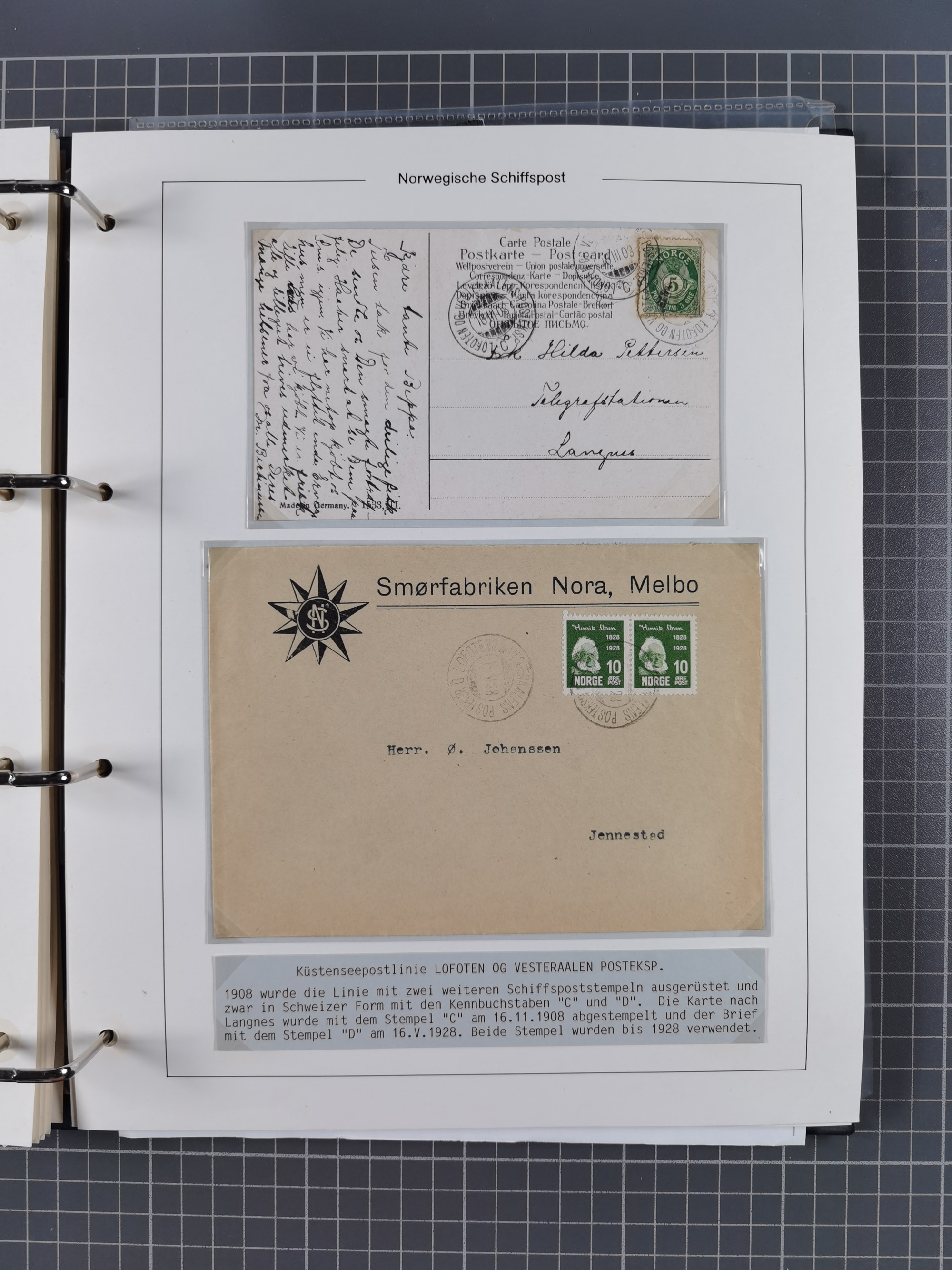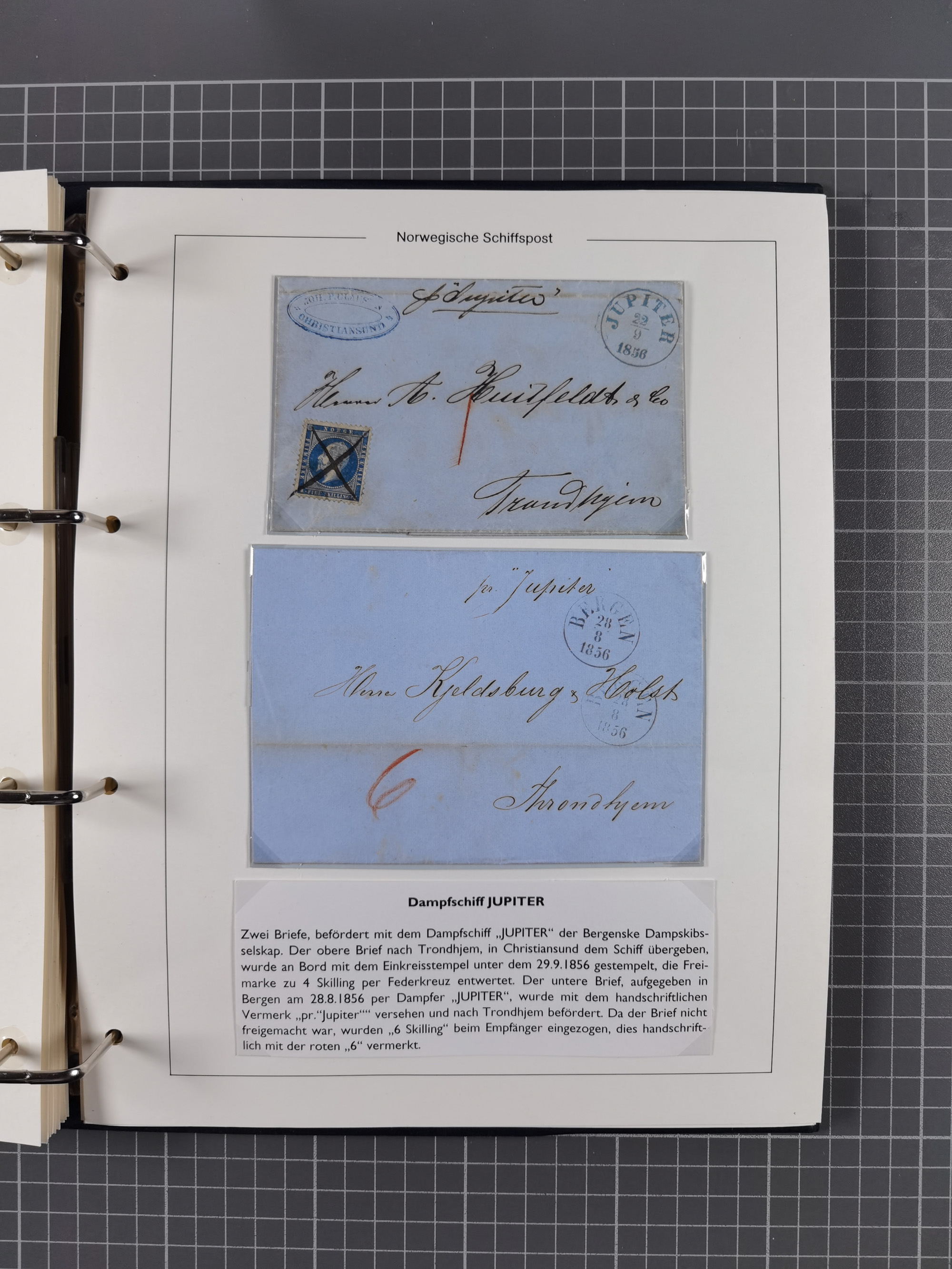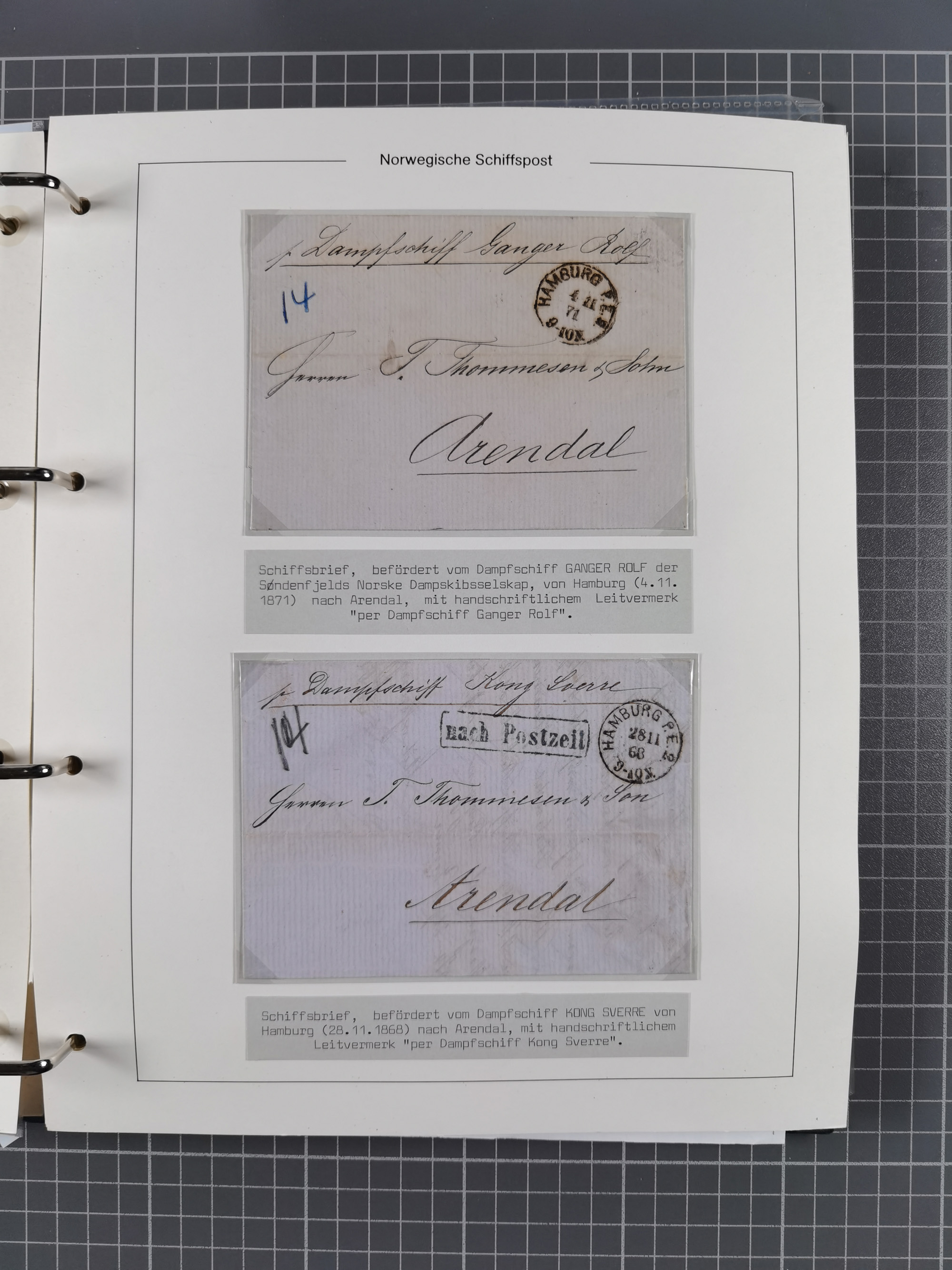 NORWEGEN: 1838/1980 (ca.), umfangreiche Sammlung “Norwegische Schiffspost” mit ca. fast 700 Briefen, Karten und GSK bis ca. 1960 inkl. Incoming Mail und etlichen nicht eingearbeiteten Belegen. Dabei frühe Post mit u.a. kpl. Faltbrief 1838 von Christiania mit ovalem Stempel “ALTONA SCHIFFSBRIEF” nach Schottland, kpl. Faltbrief 1863 mit handschriftlichem Aufgabevermerk “Foldin”, kpl. Faltbrief 1861 mit handschriftlichem Aufgabevermerk “Bjprn Farmand”, blauer EKr. “HALDEN 6.10.1854” auf kpl. Faltbrief und Briefhülle mit schwarzem EKr. “HAKON JARL 29.5.1861”. Danach u.a. zwei Briefe 1861/63 mit EKr. “NORDLAND”, Transitstempel “Norwegen direct” rückseitig auf Faltbrief mit zweimal 8 Sk. mit EKr. “STAVANGER 14.9.1864”, viele Nordlands Posteksp.-Stempel inkl. R-Briefen, Stempel “BÜREAU DE MER DE NORVEGE B 27.X.23” auf frankiertem R-Brief nach Schweden und 12 Briefe “NORSK SKIPSPOST HANDELSFLÄTEN” 1943/45 (6x mit Zensur). Dazu viele lose Marken und Briefstücke mit Schiffspost-Stempeln und zusätzlich viele Briefe nach 1960, alles auf Albenblättern mit Beschriftung in 24 Alben und ein mittlerer Karton mit nicht eingearbeitetem Material. Ein außergewöhnliches und empfehlenswertes Objekt