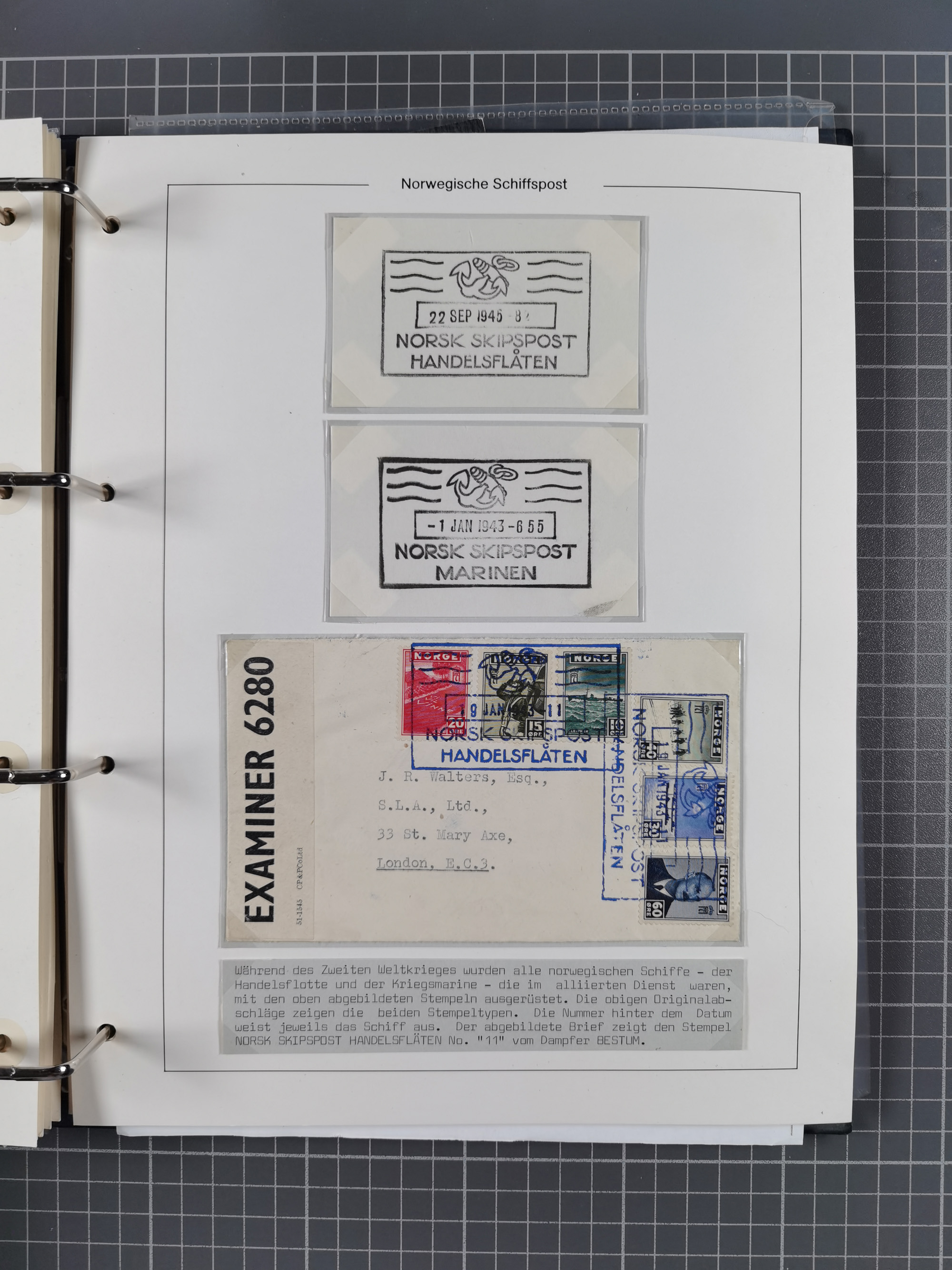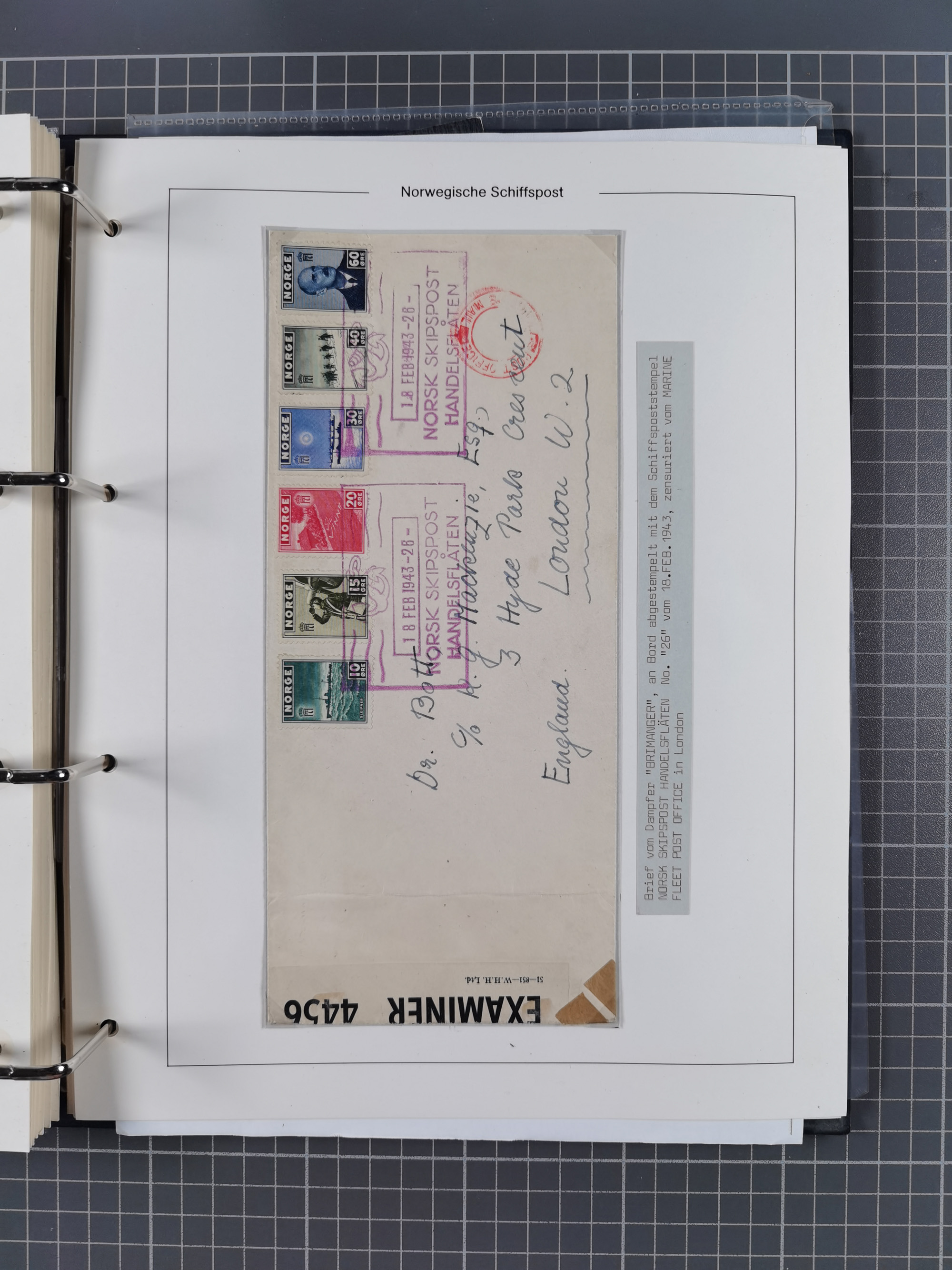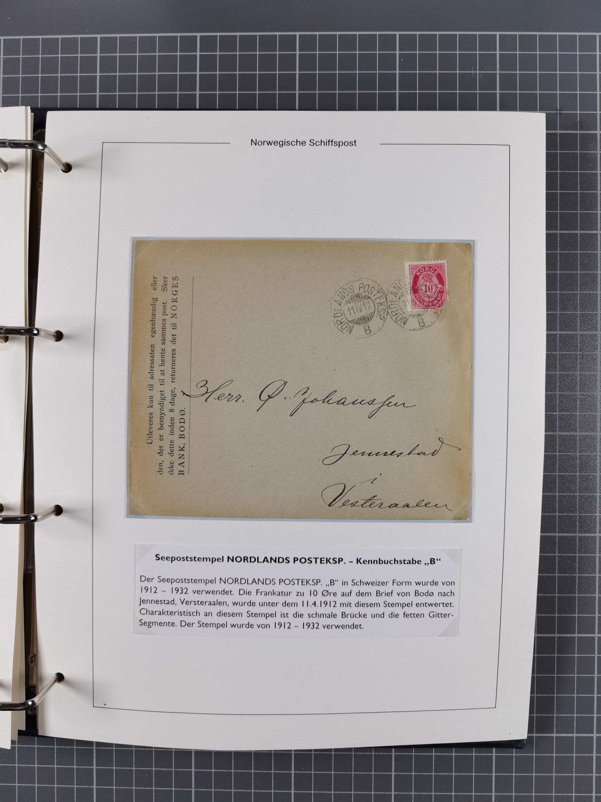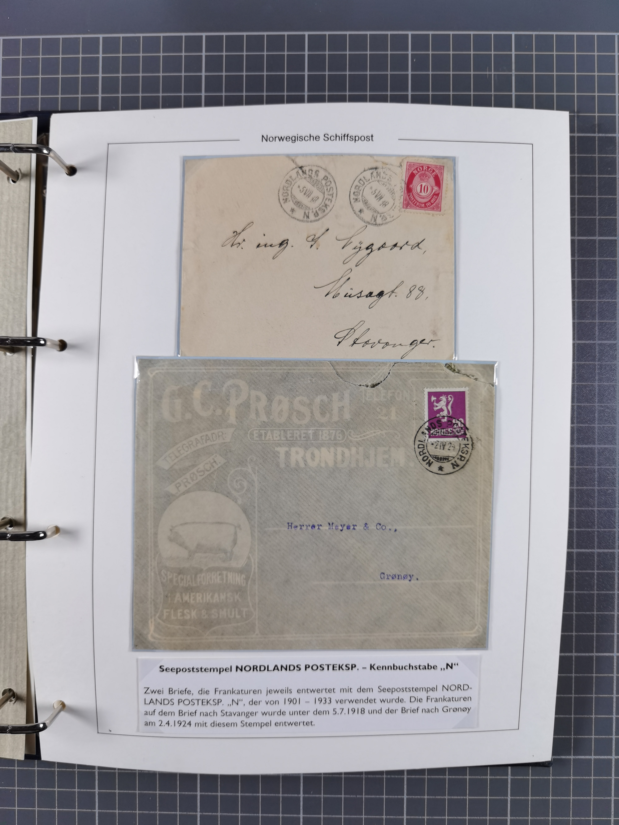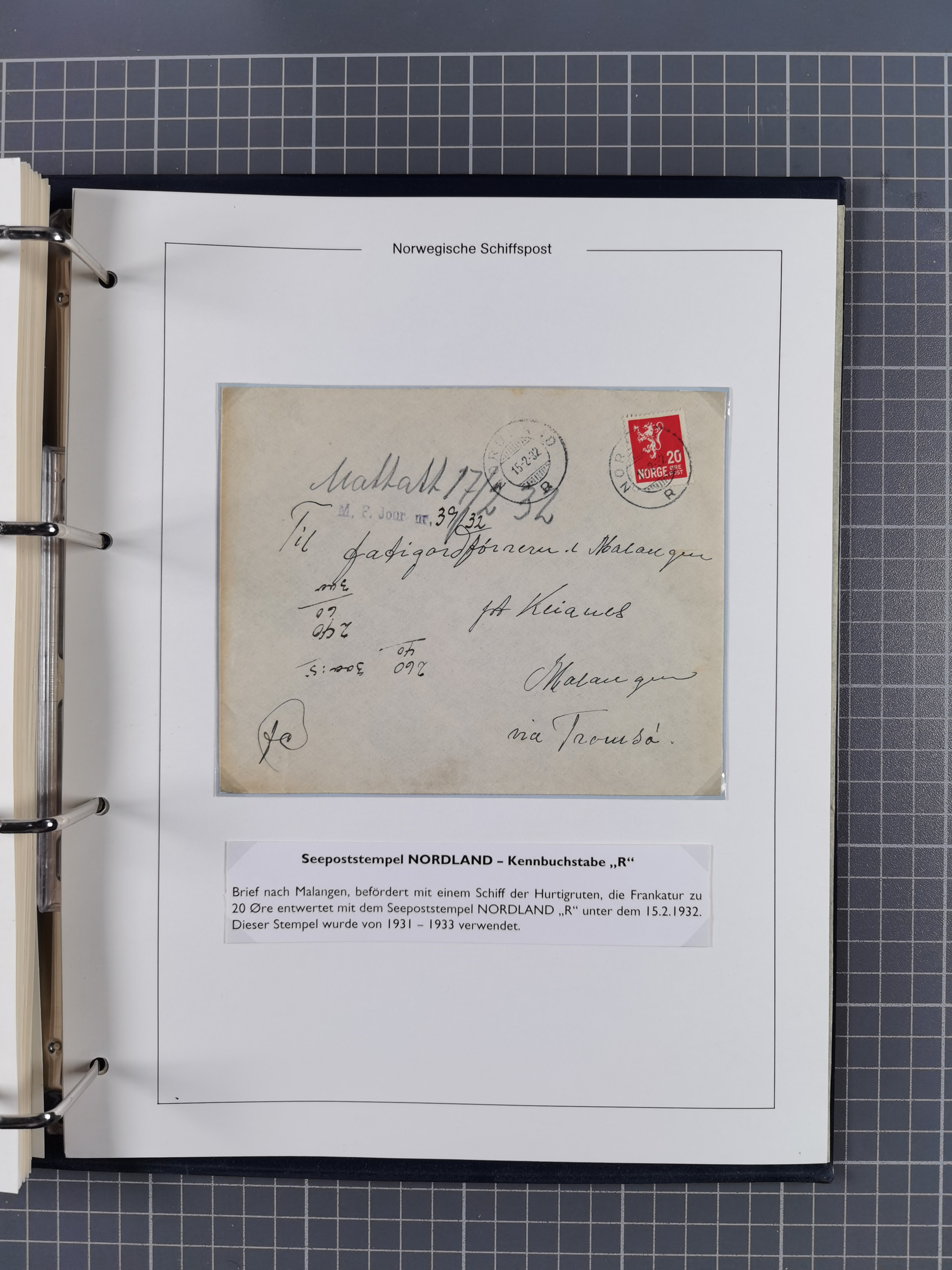 NORWEGEN: 1838/1980 (ca.), umfangreiche Sammlung “Norwegische Schiffspost” mit ca. fast 700 Briefen, Karten und GSK bis ca. 1960 inkl. Incoming Mail und etlichen nicht eingearbeiteten Belegen. Dabei frühe Post mit u.a. kpl. Faltbrief 1838 von Christiania mit ovalem Stempel “ALTONA SCHIFFSBRIEF” nach Schottland, kpl. Faltbrief 1863 mit handschriftlichem Aufgabevermerk “Foldin”, kpl. Faltbrief 1861 mit handschriftlichem Aufgabevermerk “Bjprn Farmand”, blauer EKr. “HALDEN 6.10.1854” auf kpl. Faltbrief und Briefhülle mit schwarzem EKr. “HAKON JARL 29.5.1861”. Danach u.a. zwei Briefe 1861/63 mit EKr. “NORDLAND”, Transitstempel “Norwegen direct” rückseitig auf Faltbrief mit zweimal 8 Sk. mit EKr. “STAVANGER 14.9.1864”, viele Nordlands Posteksp.-Stempel inkl. R-Briefen, Stempel “BÜREAU DE MER DE NORVEGE B 27.X.23” auf frankiertem R-Brief nach Schweden und 12 Briefe “NORSK SKIPSPOST HANDELSFLÄTEN” 1943/45 (6x mit Zensur). Dazu viele lose Marken und Briefstücke mit Schiffspost-Stempeln und zusätzlich viele Briefe nach 1960, alles auf Albenblättern mit Beschriftung in 24 Alben und ein mittlerer Karton mit nicht eingearbeitetem Material. Ein außergewöhnliches und empfehlenswertes Objekt