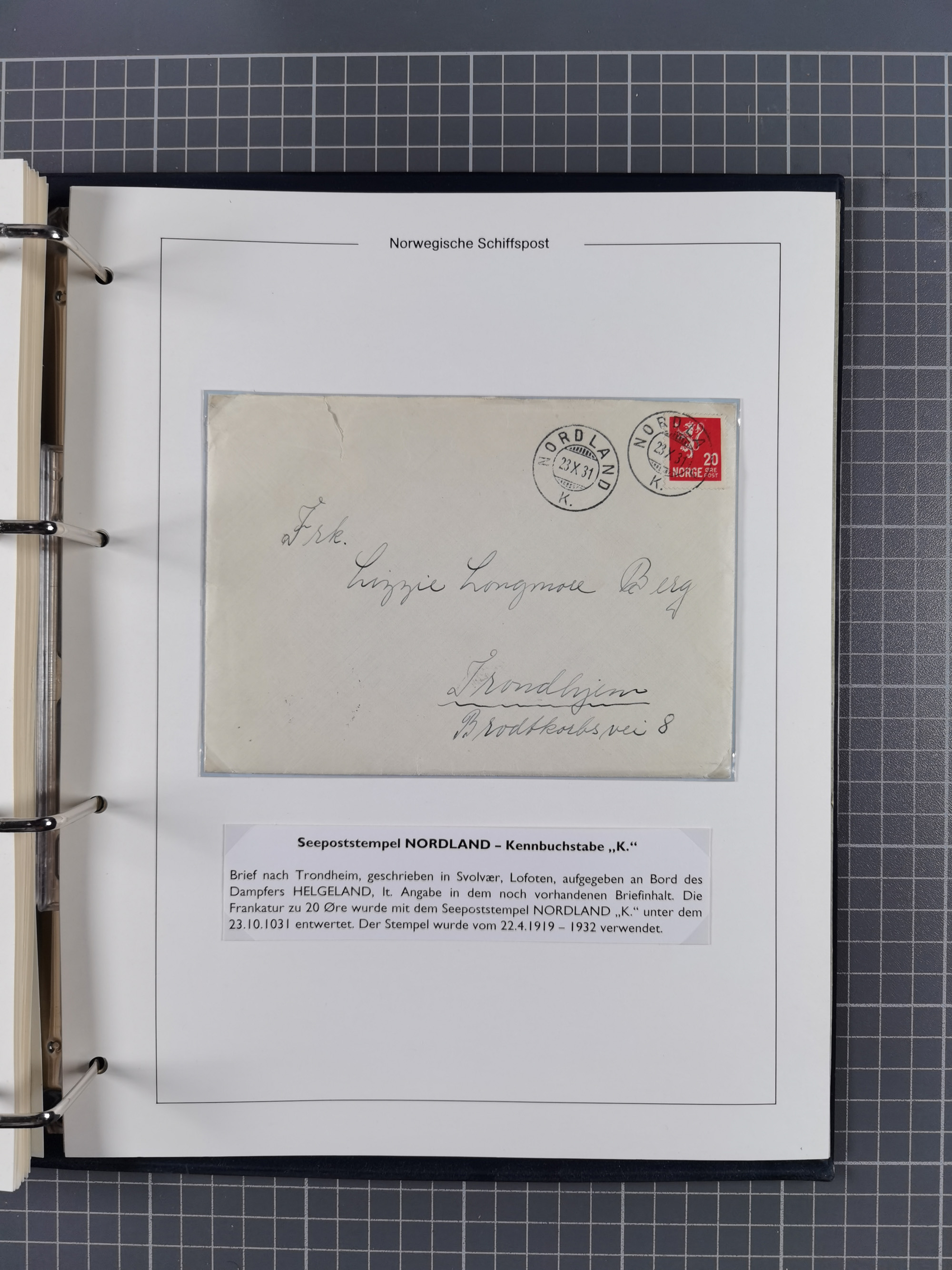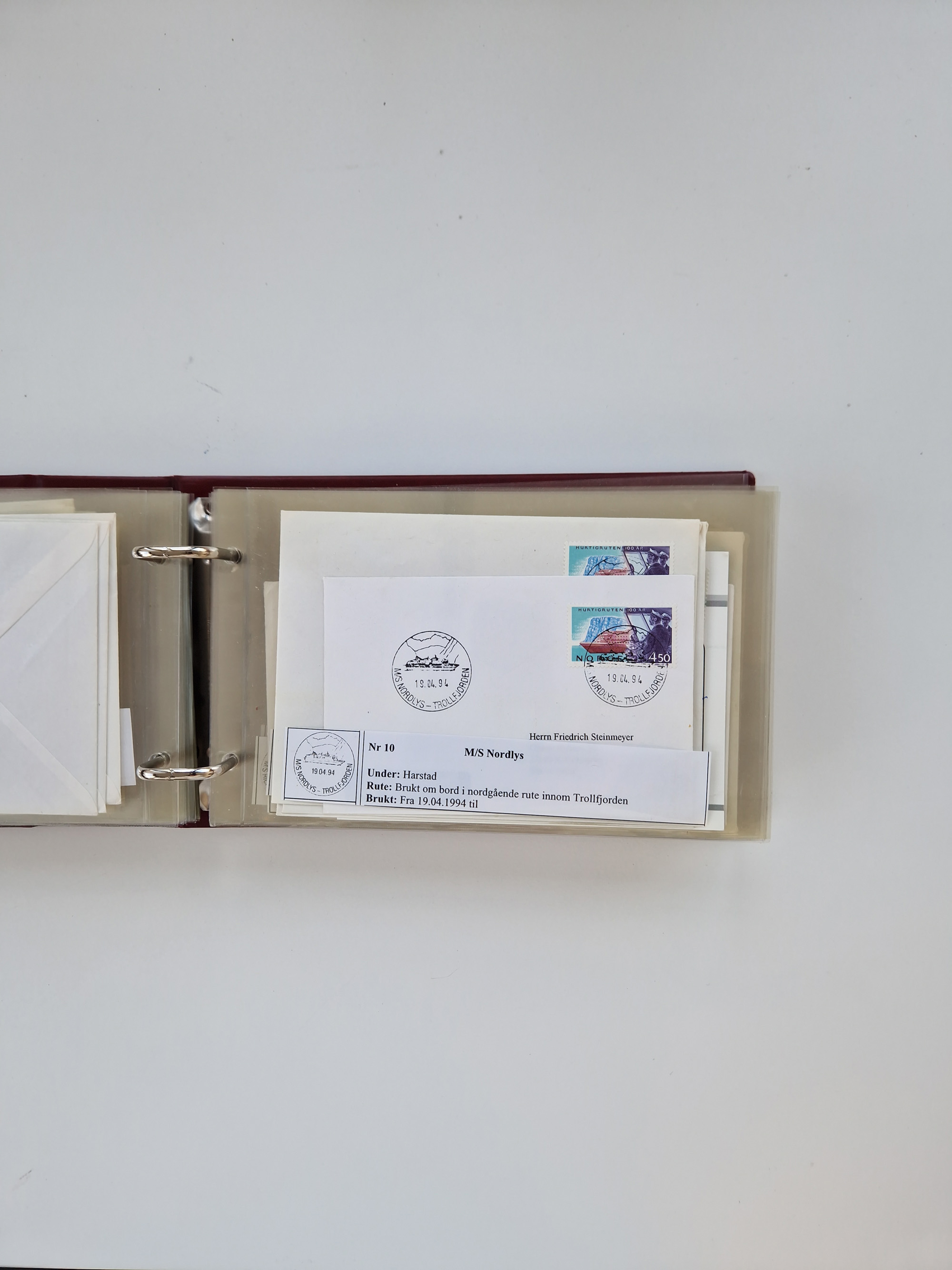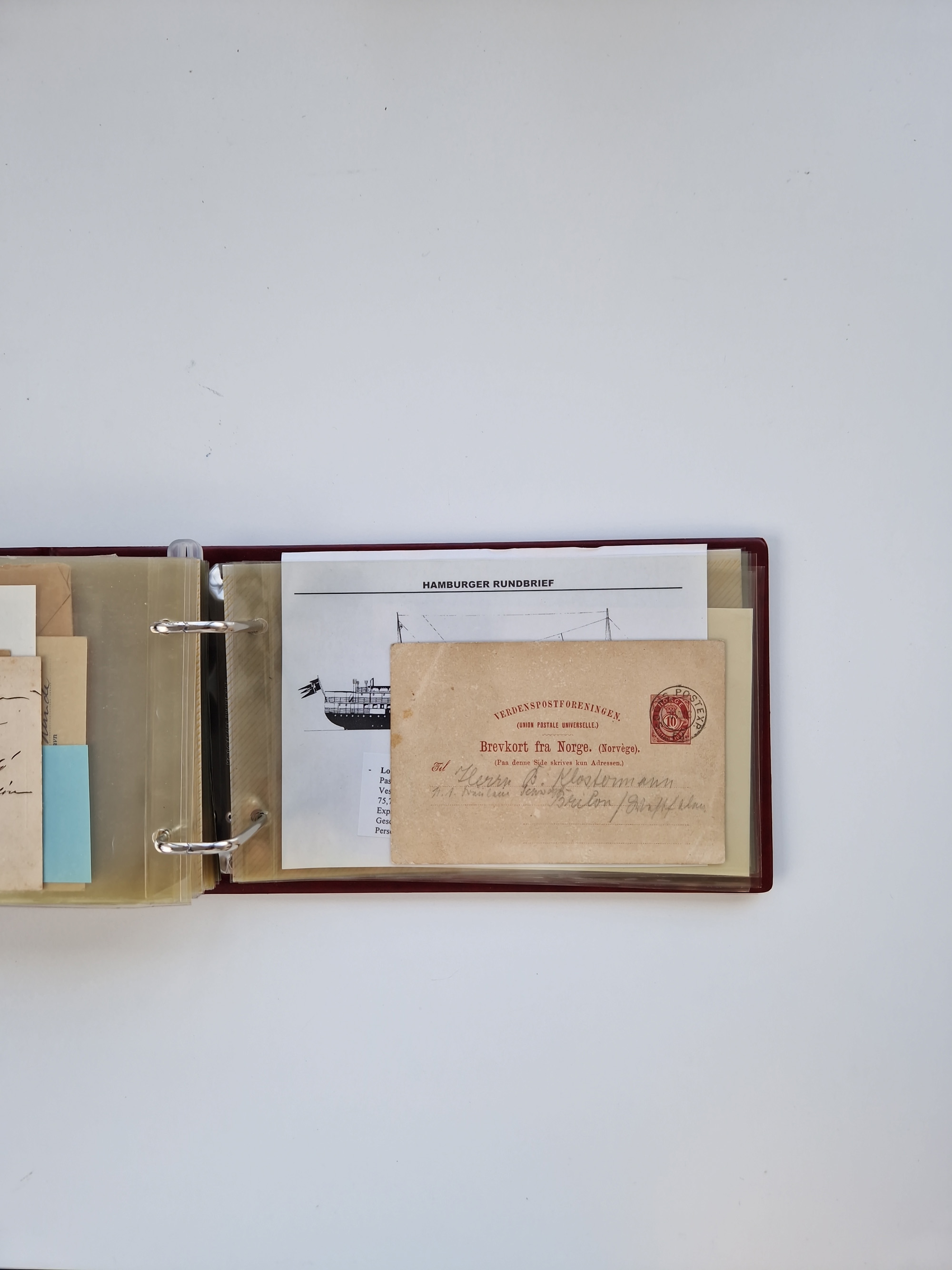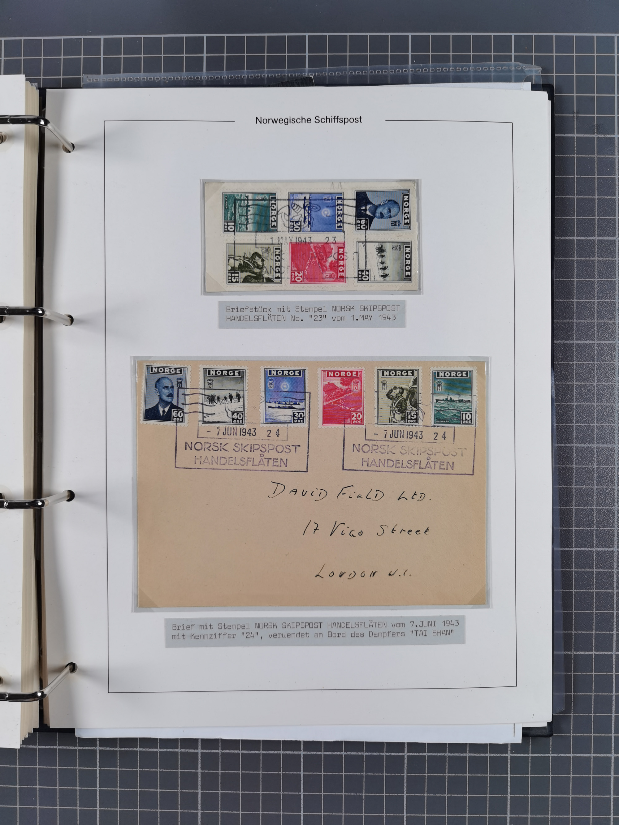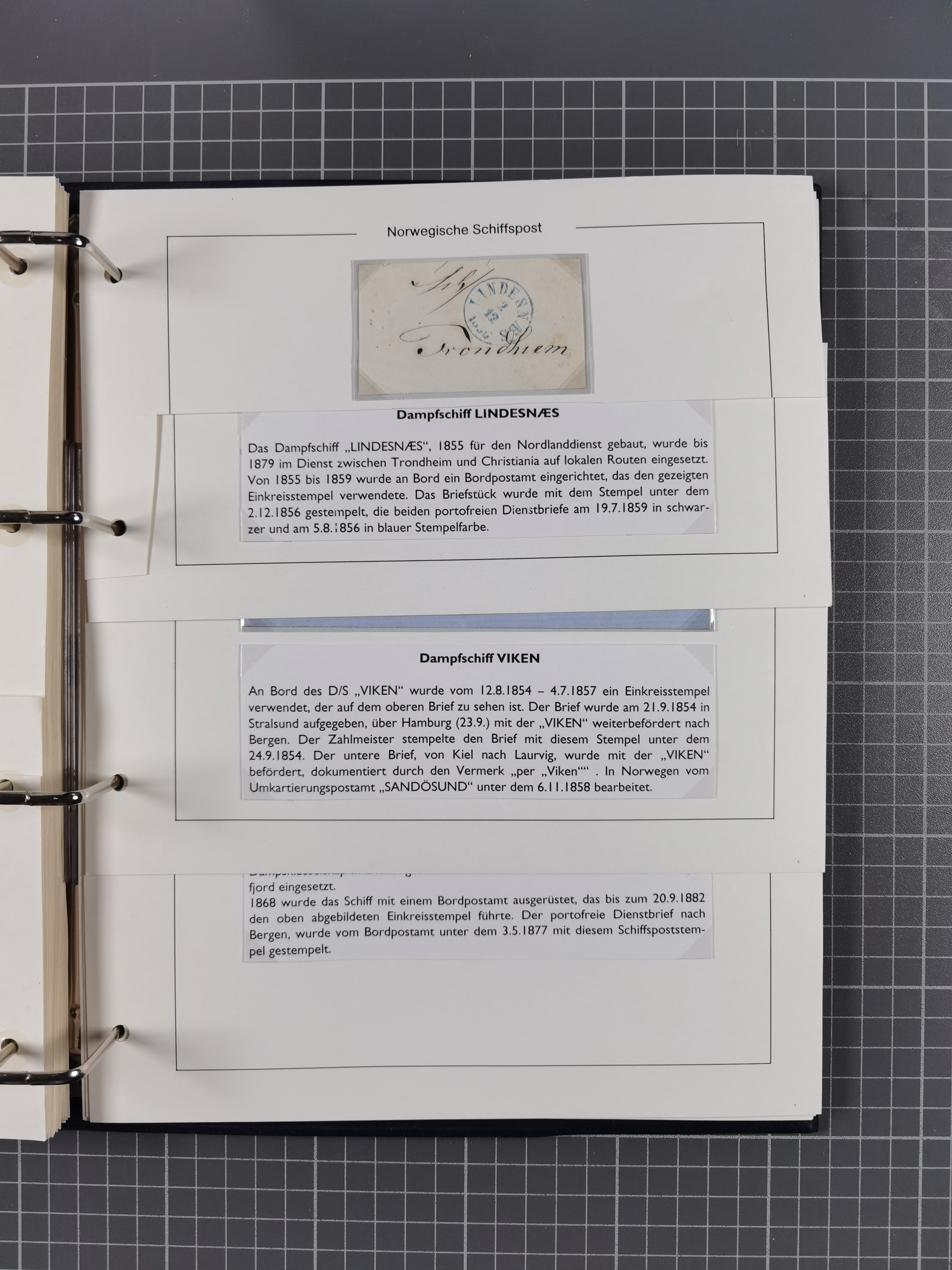 NORWEGEN: 1838/1980 (ca.), umfangreiche Sammlung “Norwegische Schiffspost” mit ca. fast 700 Briefen, Karten und GSK bis ca. 1960 inkl. Incoming Mail und etlichen nicht eingearbeiteten Belegen. Dabei frühe Post mit u.a. kpl. Faltbrief 1838 von Christiania mit ovalem Stempel “ALTONA SCHIFFSBRIEF” nach Schottland, kpl. Faltbrief 1863 mit handschriftlichem Aufgabevermerk “Foldin”, kpl. Faltbrief 1861 mit handschriftlichem Aufgabevermerk “Bjprn Farmand”, blauer EKr. “HALDEN 6.10.1854” auf kpl. Faltbrief und Briefhülle mit schwarzem EKr. “HAKON JARL 29.5.1861”. Danach u.a. zwei Briefe 1861/63 mit EKr. “NORDLAND”, Transitstempel “Norwegen direct” rückseitig auf Faltbrief mit zweimal 8 Sk. mit EKr. “STAVANGER 14.9.1864”, viele Nordlands Posteksp.-Stempel inkl. R-Briefen, Stempel “BÜREAU DE MER DE NORVEGE B 27.X.23” auf frankiertem R-Brief nach Schweden und 12 Briefe “NORSK SKIPSPOST HANDELSFLÄTEN” 1943/45 (6x mit Zensur). Dazu viele lose Marken und Briefstücke mit Schiffspost-Stempeln und zusätzlich viele Briefe nach 1960, alles auf Albenblättern mit Beschriftung in 24 Alben und ein mittlerer Karton mit nicht eingearbeitetem Material. Ein außergewöhnliches und empfehlenswertes Objekt