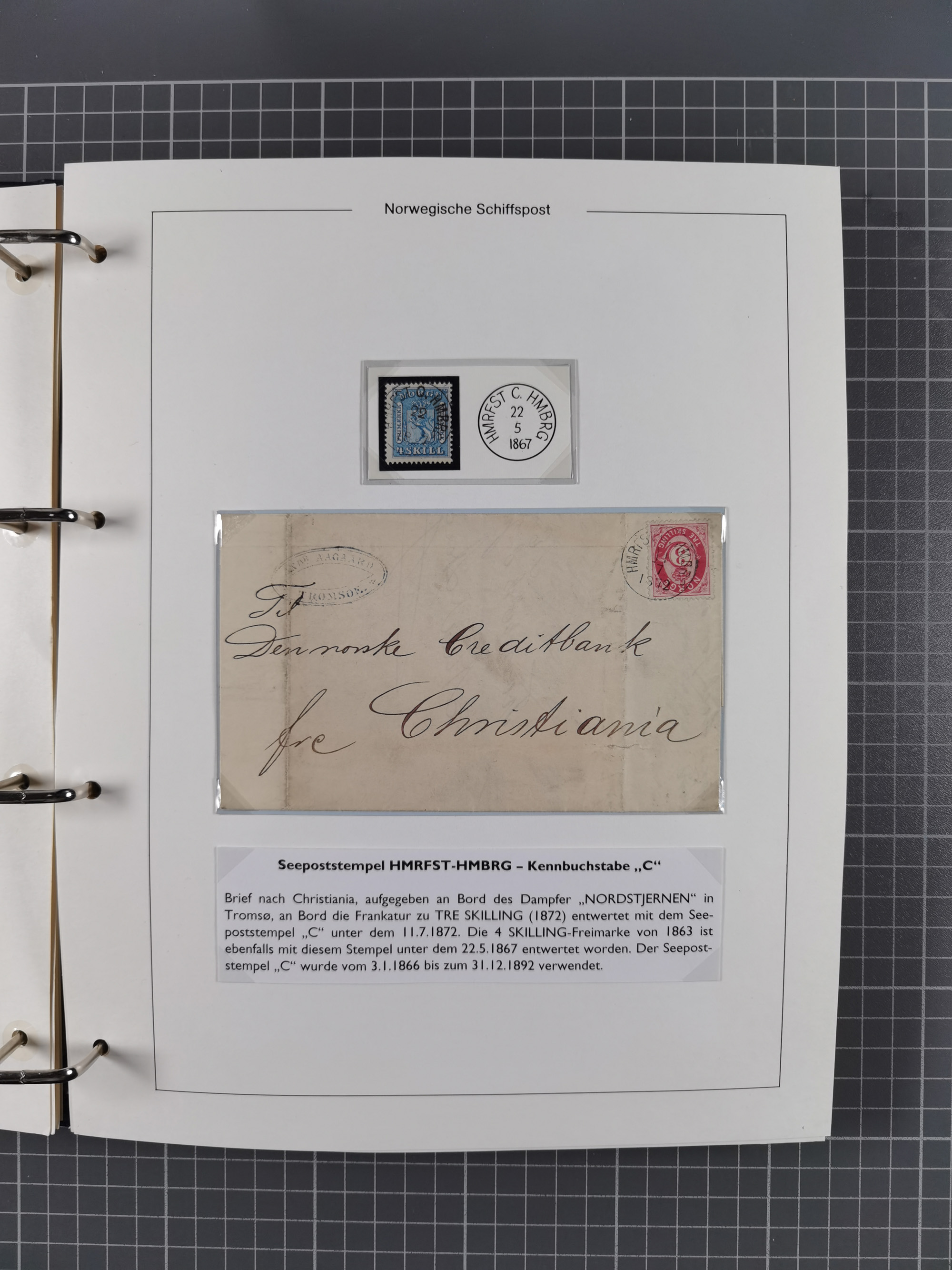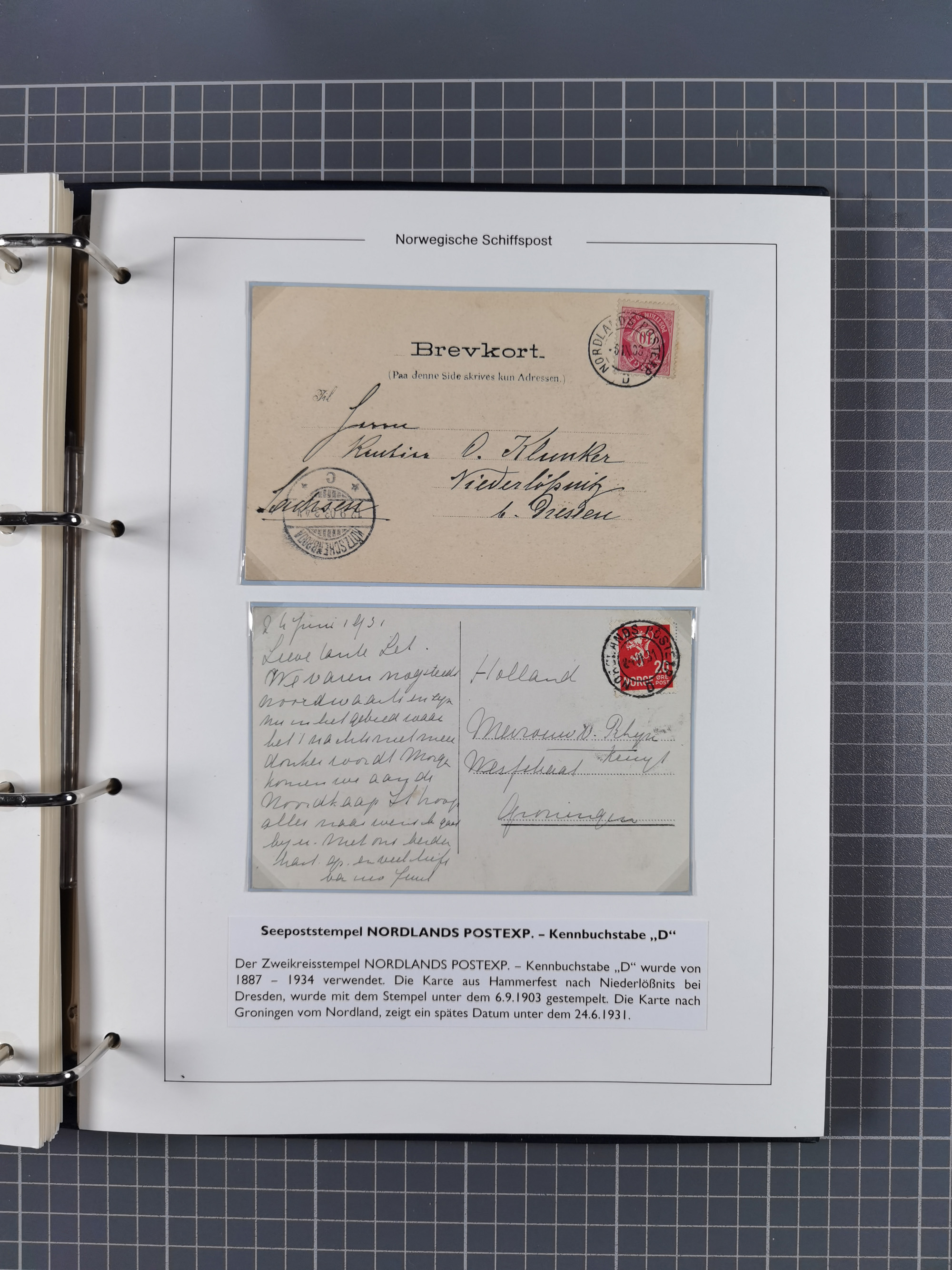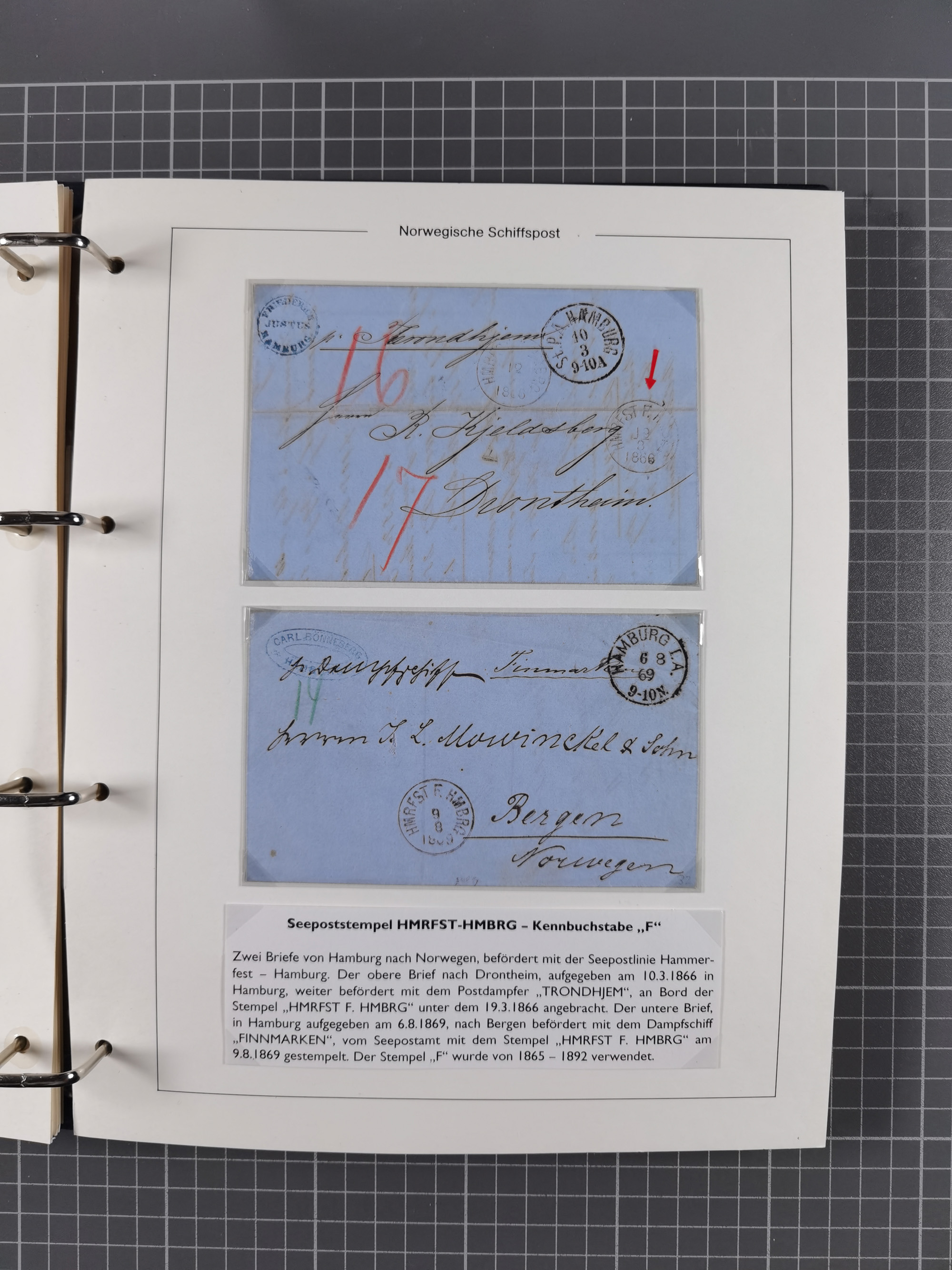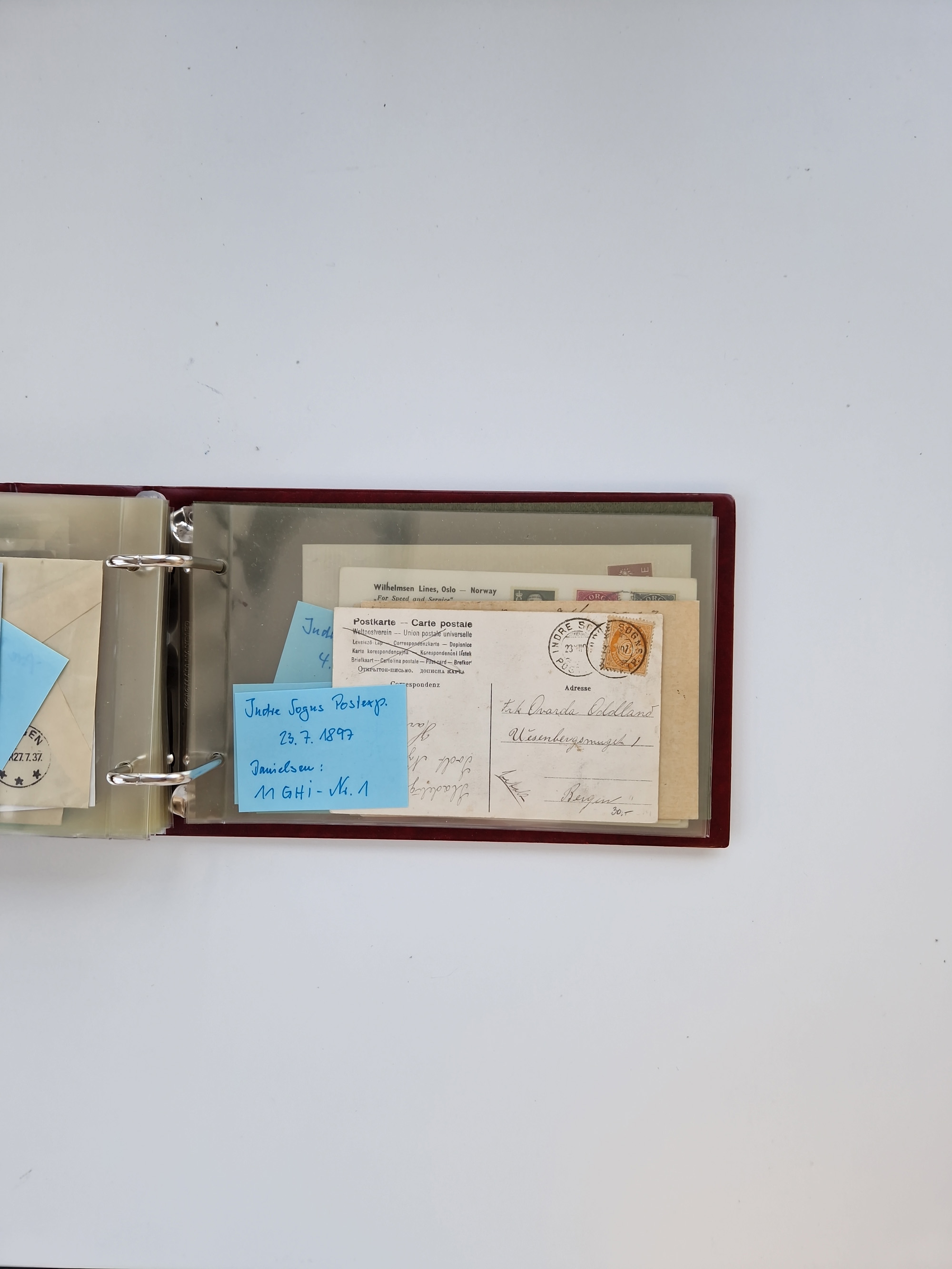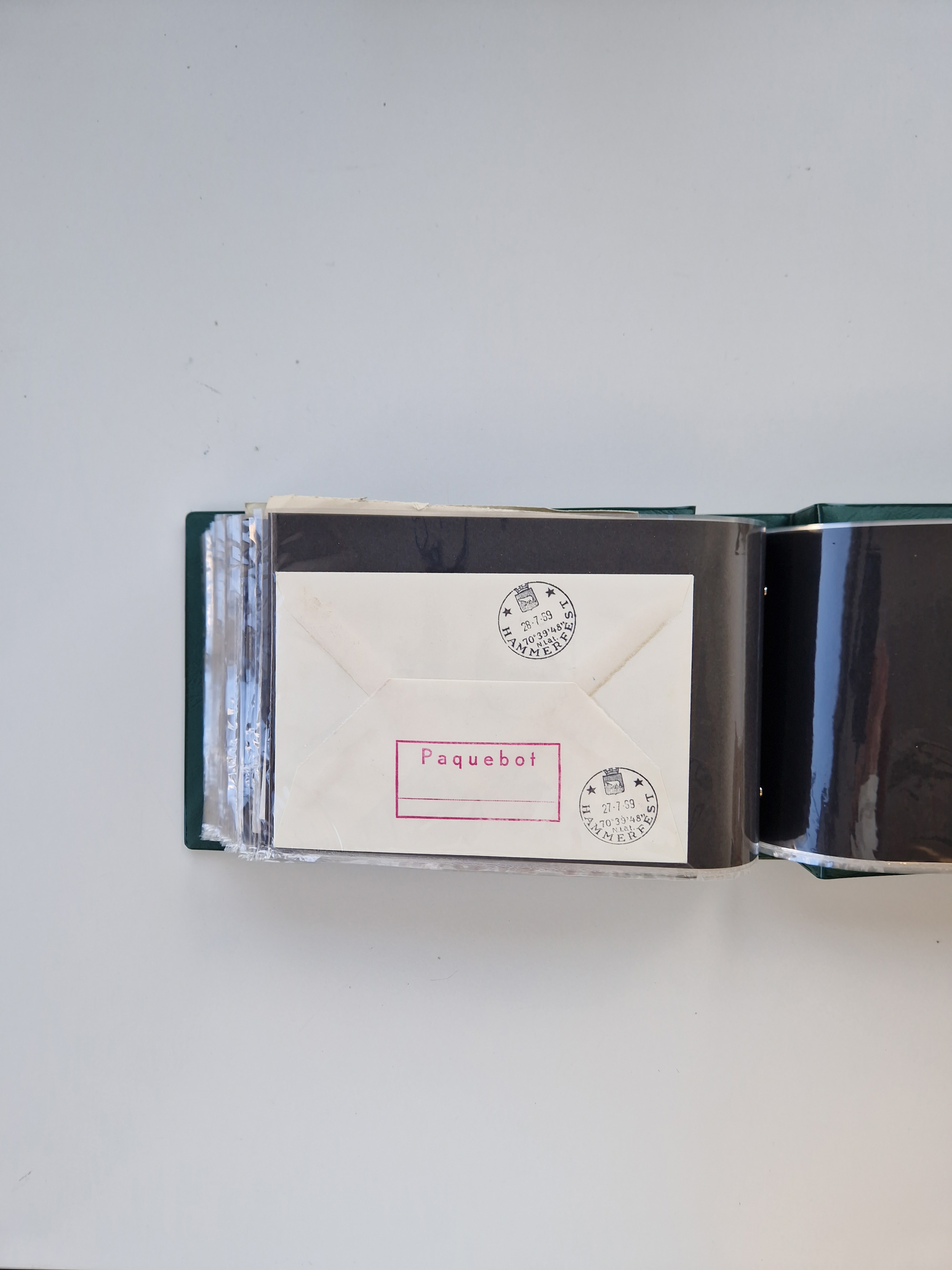 NORWEGEN: 1838/1980 (ca.), umfangreiche Sammlung “Norwegische Schiffspost” mit ca. fast 700 Briefen, Karten und GSK bis ca. 1960 inkl. Incoming Mail und etlichen nicht eingearbeiteten Belegen. Dabei frühe Post mit u.a. kpl. Faltbrief 1838 von Christiania mit ovalem Stempel “ALTONA SCHIFFSBRIEF” nach Schottland, kpl. Faltbrief 1863 mit handschriftlichem Aufgabevermerk “Foldin”, kpl. Faltbrief 1861 mit handschriftlichem Aufgabevermerk “Bjprn Farmand”, blauer EKr. “HALDEN 6.10.1854” auf kpl. Faltbrief und Briefhülle mit schwarzem EKr. “HAKON JARL 29.5.1861”. Danach u.a. zwei Briefe 1861/63 mit EKr. “NORDLAND”, Transitstempel “Norwegen direct” rückseitig auf Faltbrief mit zweimal 8 Sk. mit EKr. “STAVANGER 14.9.1864”, viele Nordlands Posteksp.-Stempel inkl. R-Briefen, Stempel “BÜREAU DE MER DE NORVEGE B 27.X.23” auf frankiertem R-Brief nach Schweden und 12 Briefe “NORSK SKIPSPOST HANDELSFLÄTEN” 1943/45 (6x mit Zensur). Dazu viele lose Marken und Briefstücke mit Schiffspost-Stempeln und zusätzlich viele Briefe nach 1960, alles auf Albenblättern mit Beschriftung in 24 Alben und ein mittlerer Karton mit nicht eingearbeitetem Material. Ein außergewöhnliches und empfehlenswertes Objekt