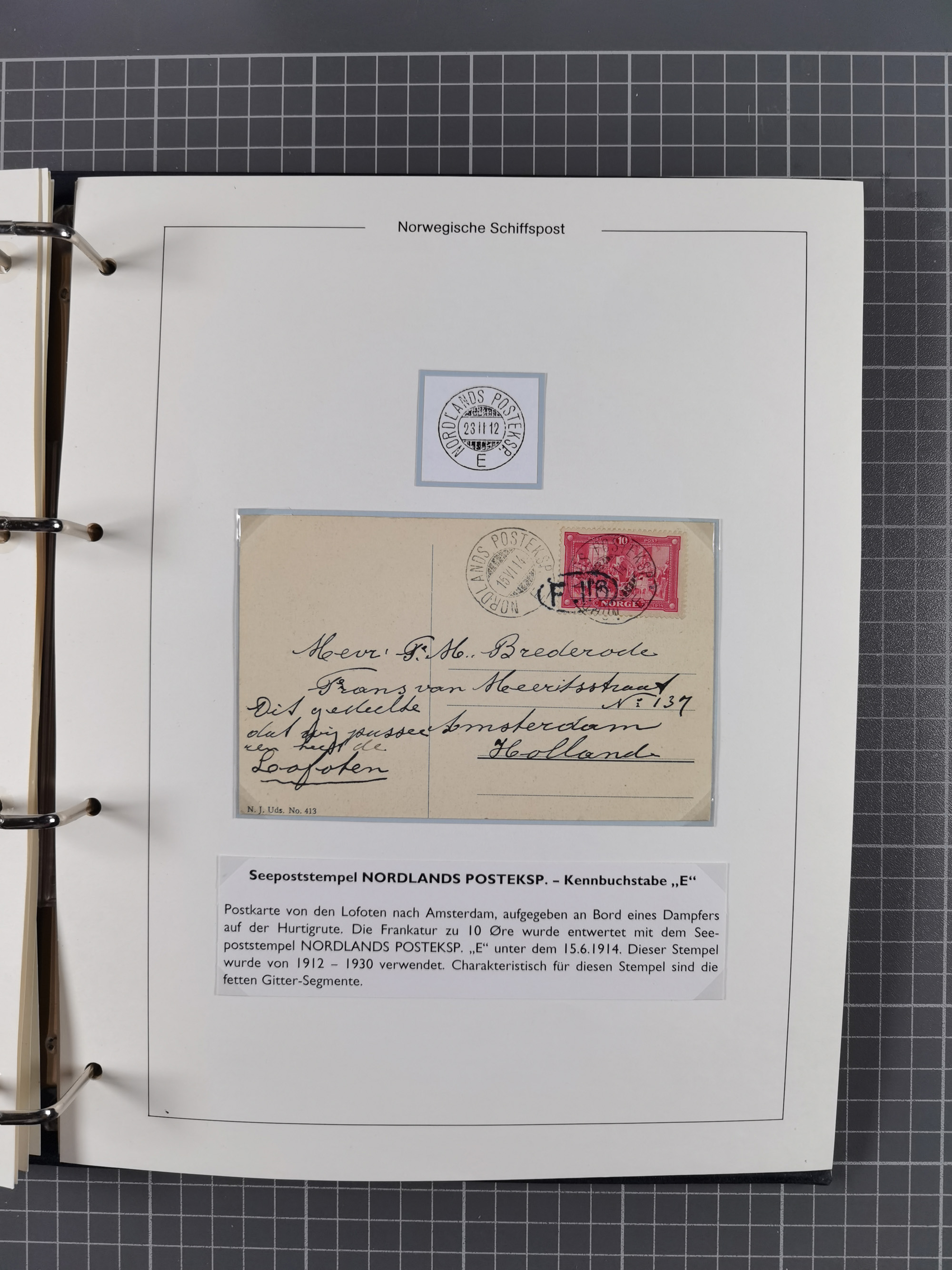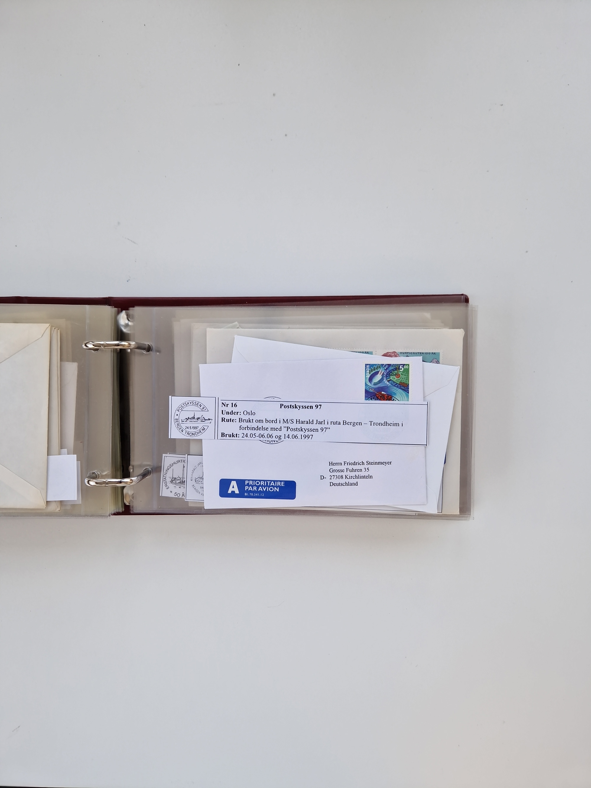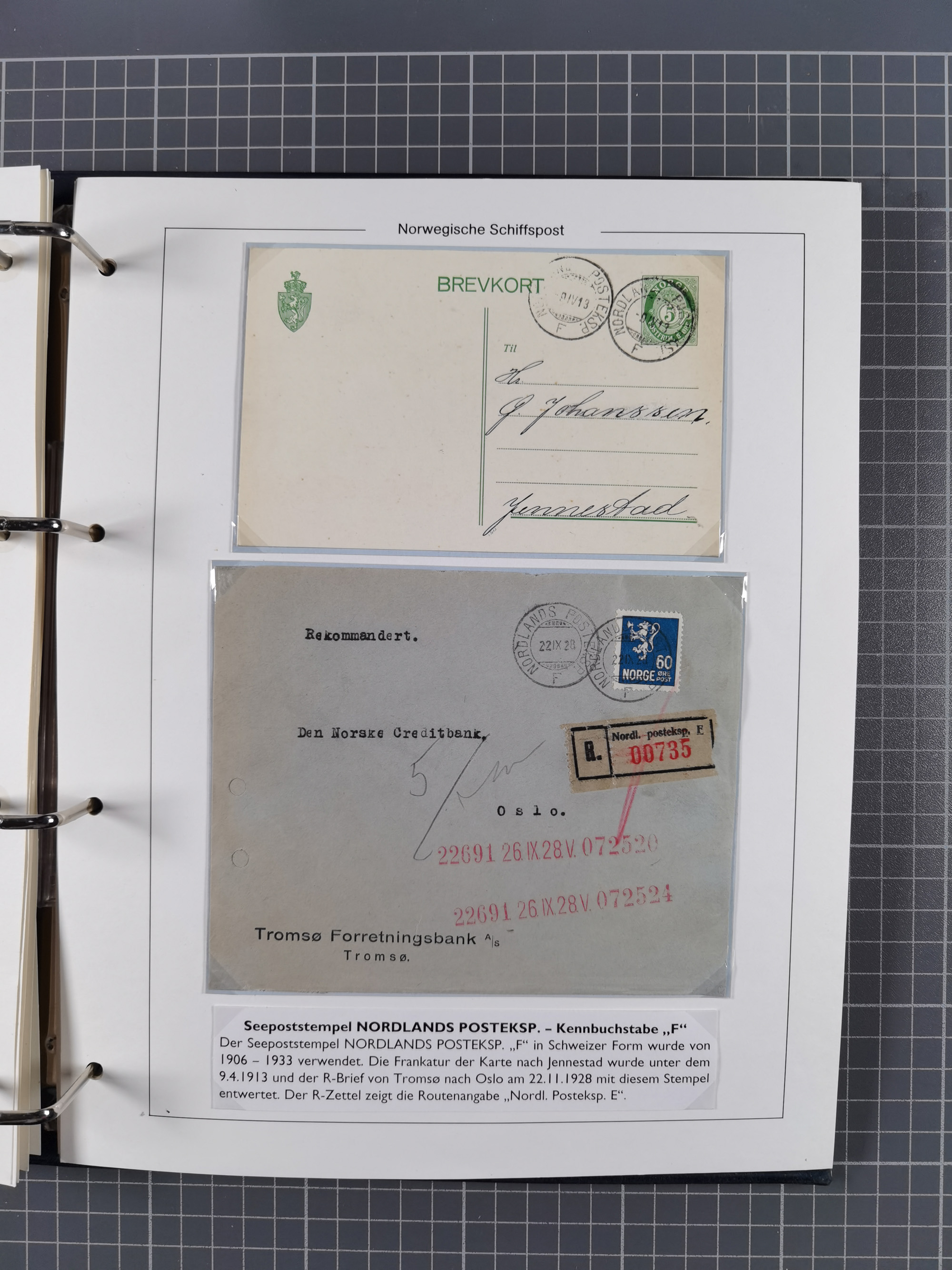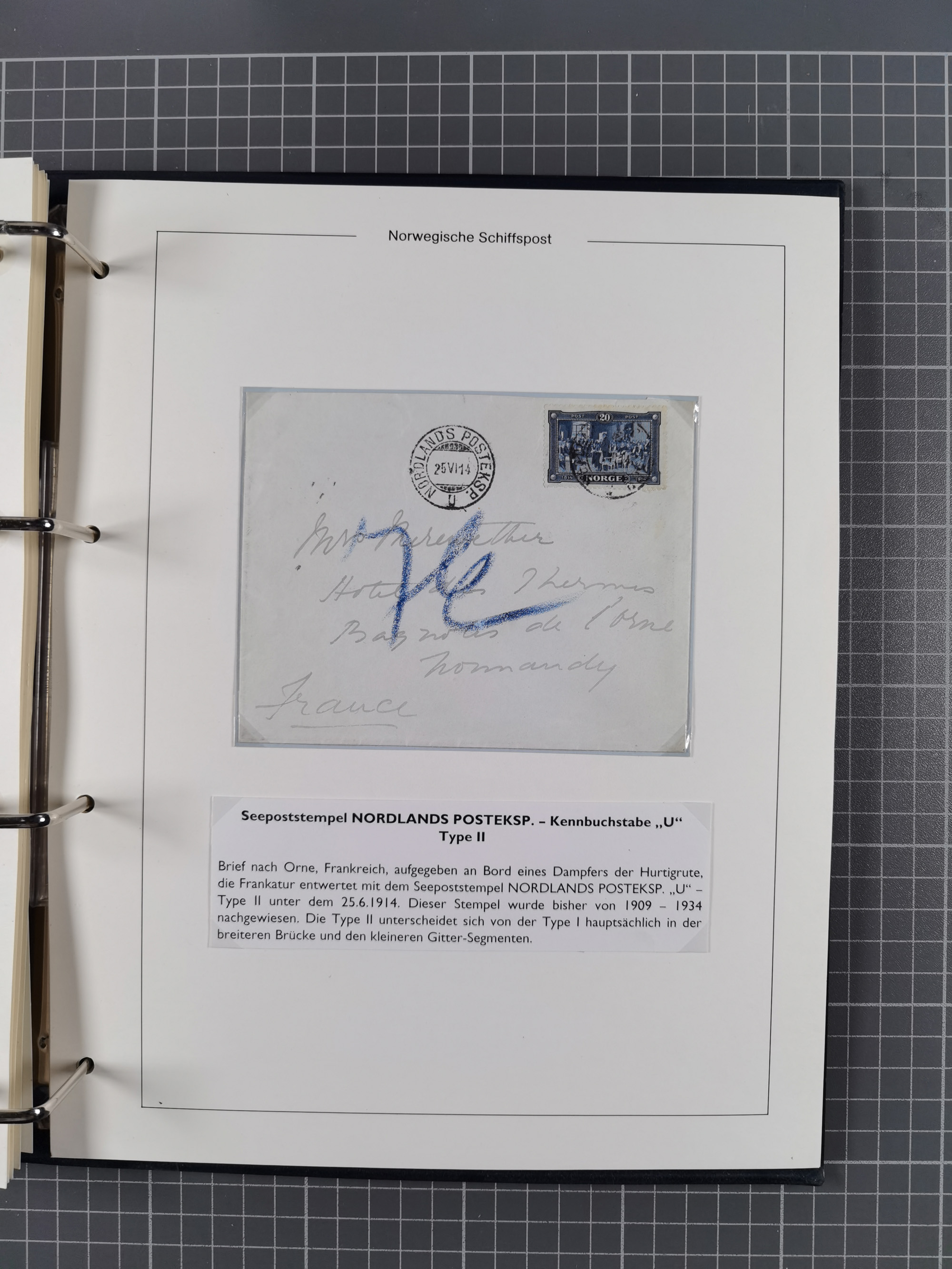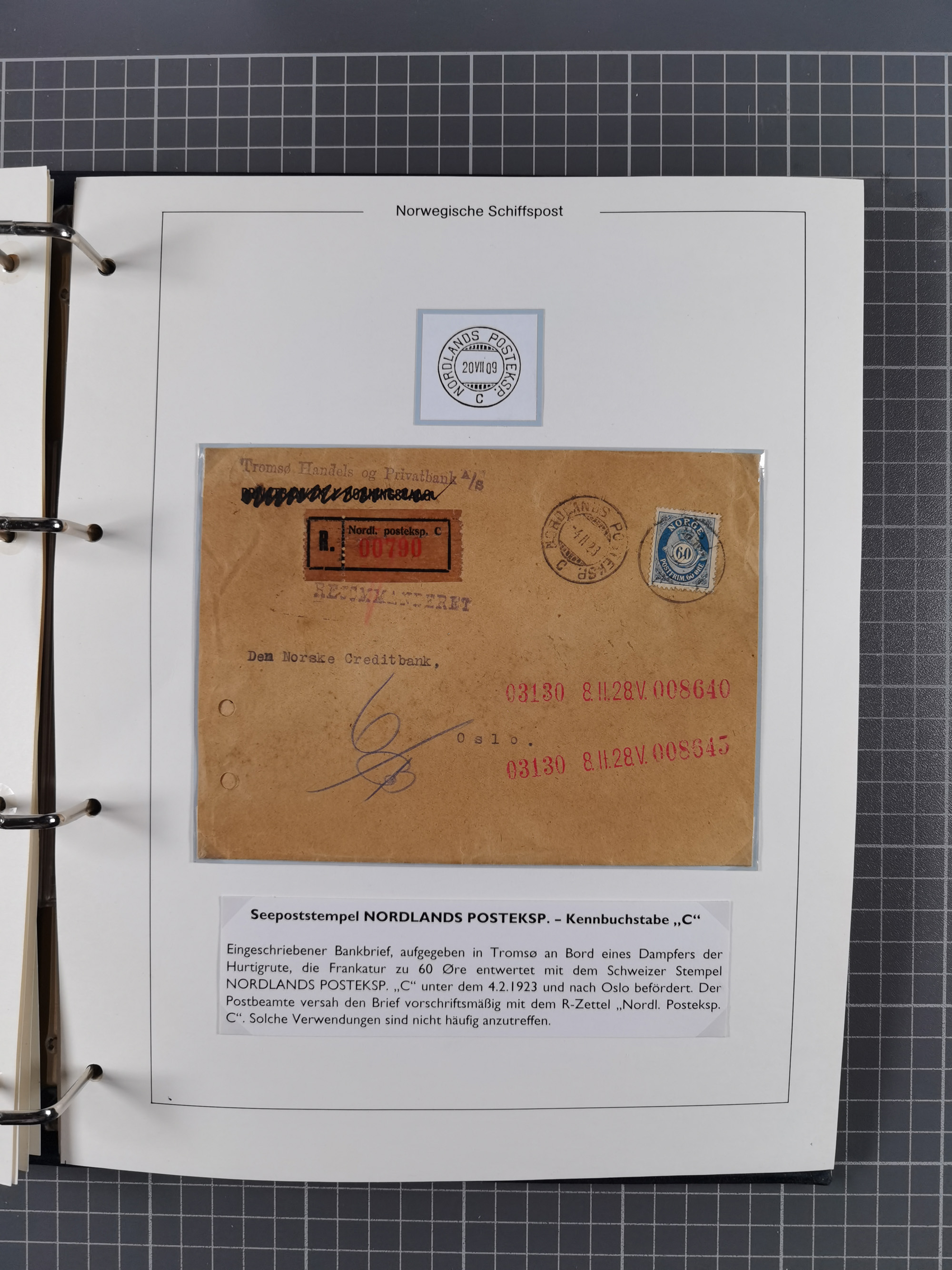NORWEGEN: 1838/1980 (ca.), umfangreiche Sammlung “Norwegische Schiffspost” mit ca. fast 700 Briefen, Karten und GSK bis ca. 1960 inkl. Incoming Mail und etlichen nicht eingearbeiteten Belegen. Dabei frühe Post mit u.a. kpl. Faltbrief 1838 von Christiania mit ovalem Stempel “ALTONA SCHIFFSBRIEF” nach Schottland, kpl. Faltbrief 1863 mit handschriftlichem Aufgabevermerk “Foldin”, kpl. Faltbrief 1861 mit handschriftlichem Aufgabevermerk “Bjprn Farmand”, blauer EKr. “HALDEN 6.10.1854” auf kpl. Faltbrief und Briefhülle mit schwarzem EKr. “HAKON JARL 29.5.1861”. Danach u.a. zwei Briefe 1861/63 mit EKr. “NORDLAND”, Transitstempel “Norwegen direct” rückseitig auf Faltbrief mit zweimal 8 Sk. mit EKr. “STAVANGER 14.9.1864”, viele Nordlands Posteksp.-Stempel inkl. R-Briefen, Stempel “BÜREAU DE MER DE NORVEGE B 27.X.23” auf frankiertem R-Brief nach Schweden und 12 Briefe “NORSK SKIPSPOST HANDELSFLÄTEN” 1943/45 (6x mit Zensur). Dazu viele lose Marken und Briefstücke mit Schiffspost-Stempeln und zusätzlich viele Briefe nach 1960, alles auf Albenblättern mit Beschriftung in 24 Alben und ein mittlerer Karton mit nicht eingearbeitetem Material. Ein außergewöhnliches und empfehlenswertes Objekt