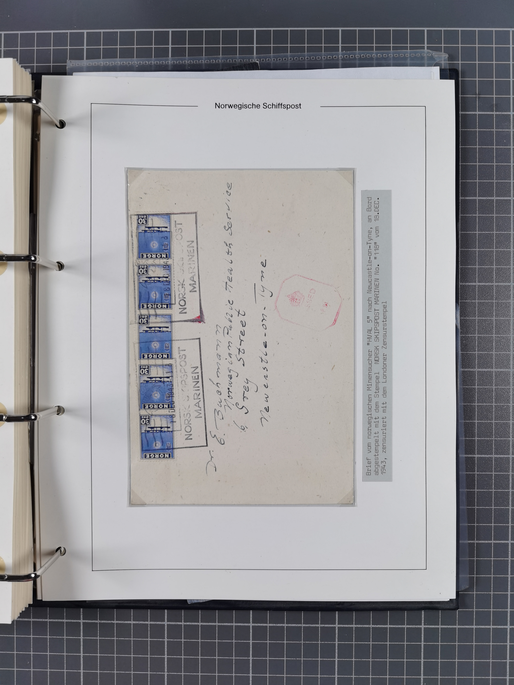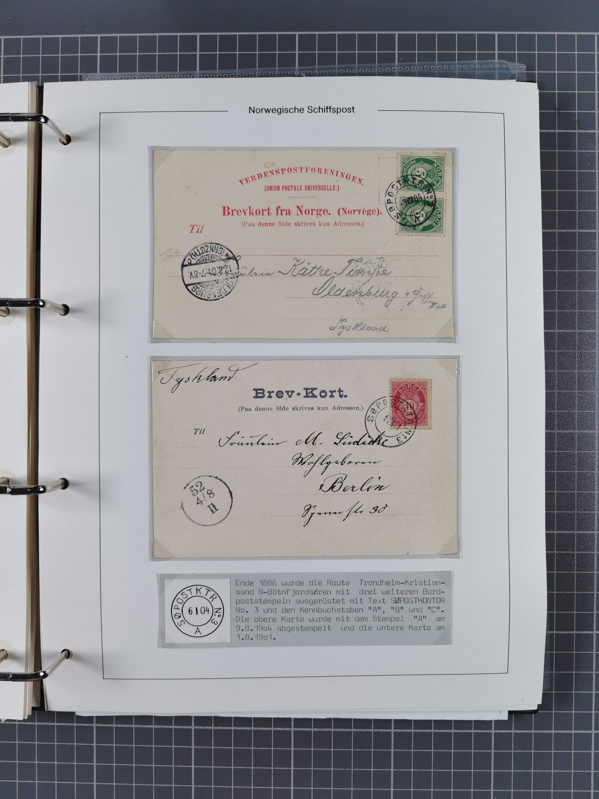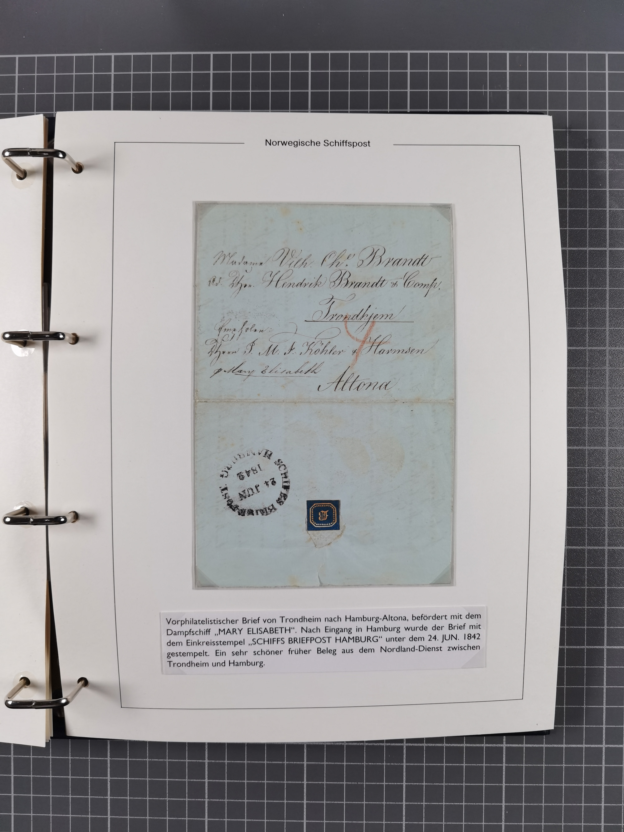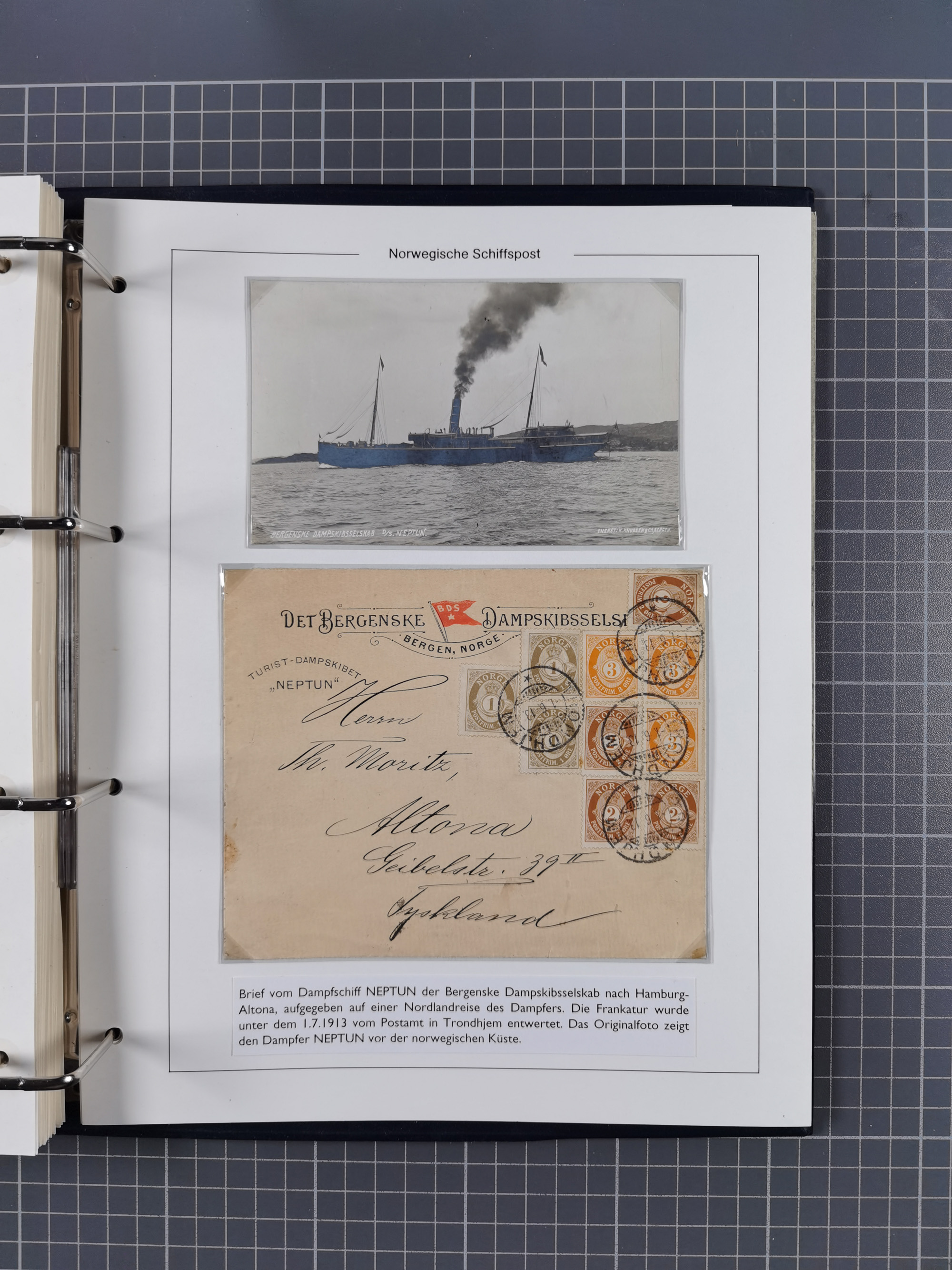 NORWEGEN: 1838/1980 (ca.), umfangreiche Sammlung “Norwegische Schiffspost” mit ca. fast 700 Briefen, Karten und GSK bis ca. 1960 inkl. Incoming Mail und etlichen nicht eingearbeiteten Belegen. Dabei frühe Post mit u.a. kpl. Faltbrief 1838 von Christiania mit ovalem Stempel “ALTONA SCHIFFSBRIEF” nach Schottland, kpl. Faltbrief 1863 mit handschriftlichem Aufgabevermerk “Foldin”, kpl. Faltbrief 1861 mit handschriftlichem Aufgabevermerk “Bjprn Farmand”, blauer EKr. “HALDEN 6.10.1854” auf kpl. Faltbrief und Briefhülle mit schwarzem EKr. “HAKON JARL 29.5.1861”. Danach u.a. zwei Briefe 1861/63 mit EKr. “NORDLAND”, Transitstempel “Norwegen direct” rückseitig auf Faltbrief mit zweimal 8 Sk. mit EKr. “STAVANGER 14.9.1864”, viele Nordlands Posteksp.-Stempel inkl. R-Briefen, Stempel “BÜREAU DE MER DE NORVEGE B 27.X.23” auf frankiertem R-Brief nach Schweden und 12 Briefe “NORSK SKIPSPOST HANDELSFLÄTEN” 1943/45 (6x mit Zensur). Dazu viele lose Marken und Briefstücke mit Schiffspost-Stempeln und zusätzlich viele Briefe nach 1960, alles auf Albenblättern mit Beschriftung in 24 Alben und ein mittlerer Karton mit nicht eingearbeitetem Material. Ein außergewöhnliches und empfehlenswertes Objekt