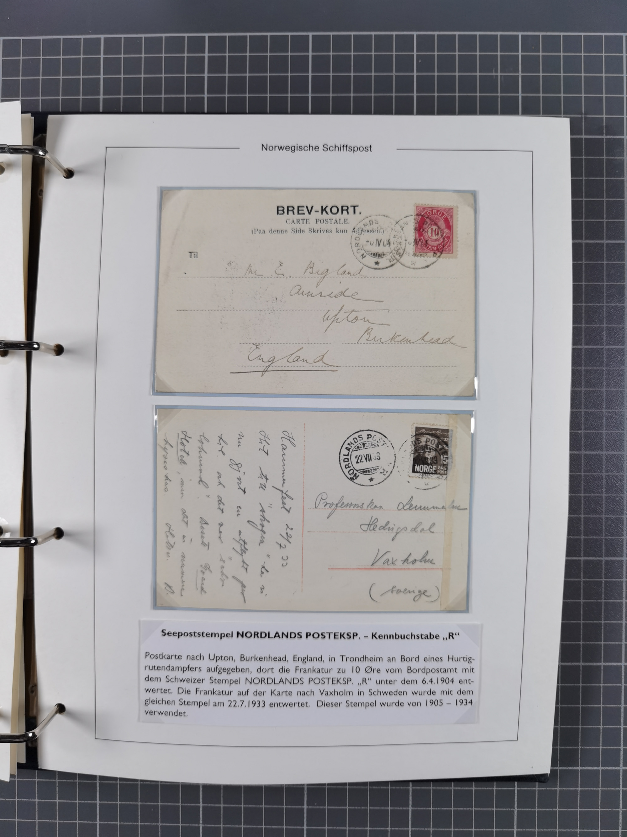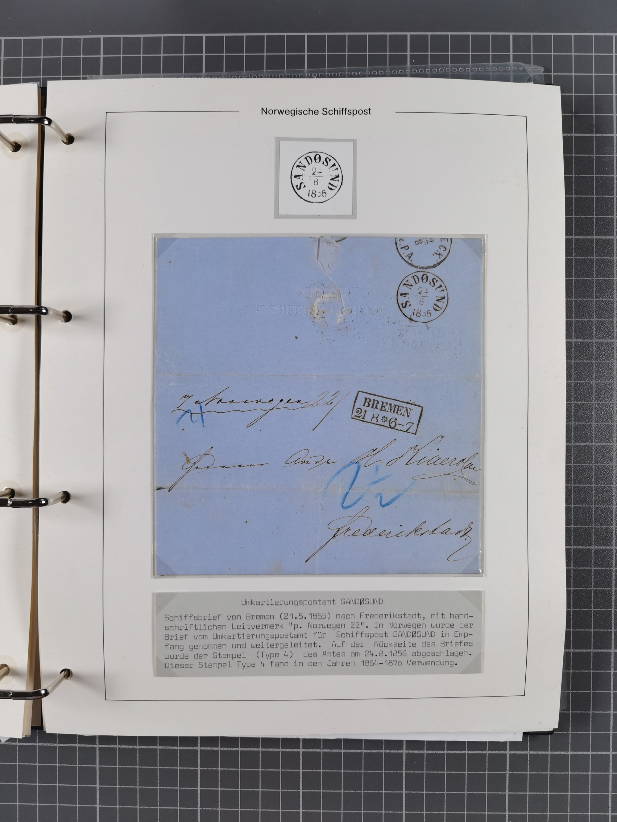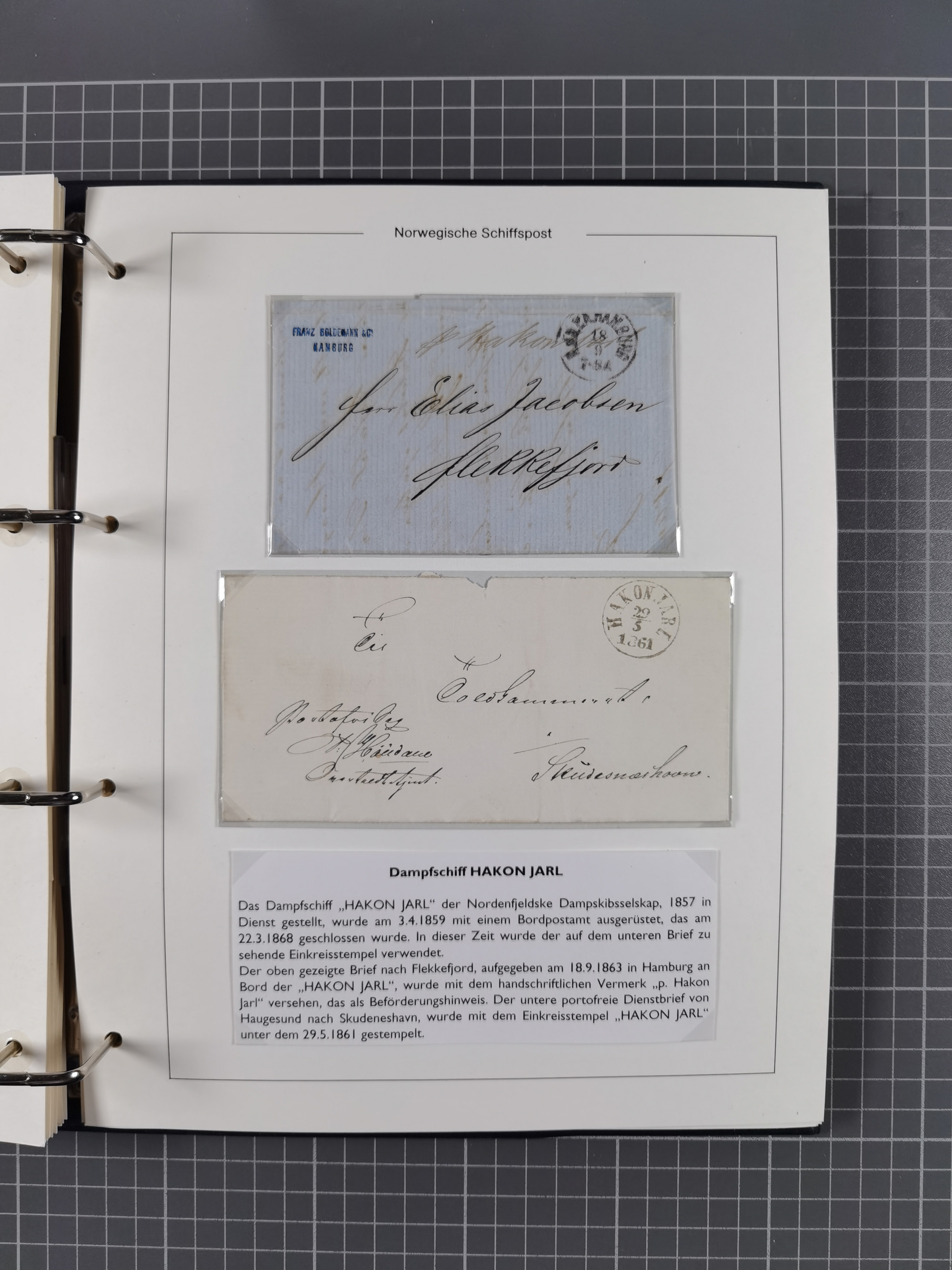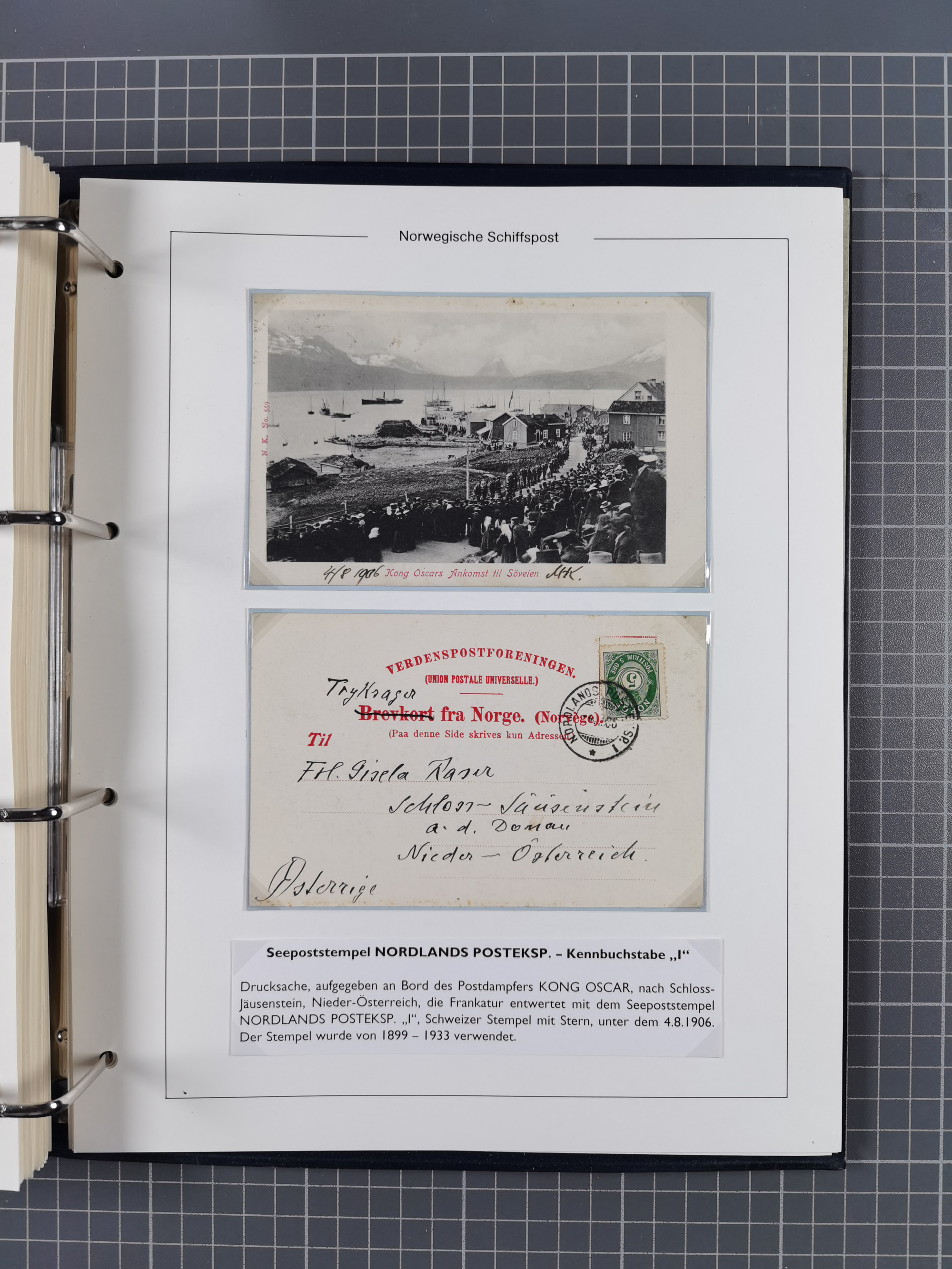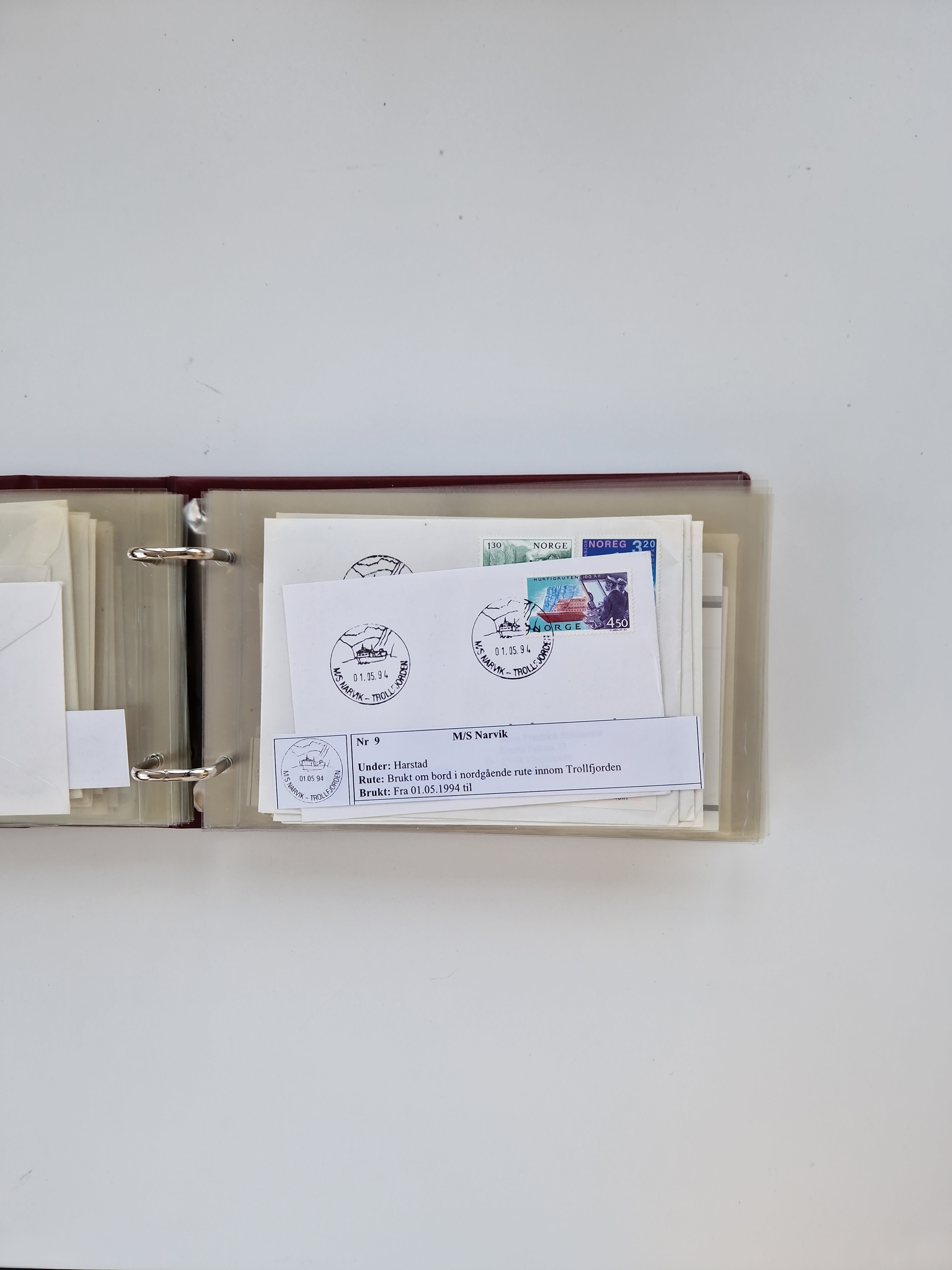 NORWEGEN: 1838/1980 (ca.), umfangreiche Sammlung “Norwegische Schiffspost” mit ca. fast 700 Briefen, Karten und GSK bis ca. 1960 inkl. Incoming Mail und etlichen nicht eingearbeiteten Belegen. Dabei frühe Post mit u.a. kpl. Faltbrief 1838 von Christiania mit ovalem Stempel “ALTONA SCHIFFSBRIEF” nach Schottland, kpl. Faltbrief 1863 mit handschriftlichem Aufgabevermerk “Foldin”, kpl. Faltbrief 1861 mit handschriftlichem Aufgabevermerk “Bjprn Farmand”, blauer EKr. “HALDEN 6.10.1854” auf kpl. Faltbrief und Briefhülle mit schwarzem EKr. “HAKON JARL 29.5.1861”. Danach u.a. zwei Briefe 1861/63 mit EKr. “NORDLAND”, Transitstempel “Norwegen direct” rückseitig auf Faltbrief mit zweimal 8 Sk. mit EKr. “STAVANGER 14.9.1864”, viele Nordlands Posteksp.-Stempel inkl. R-Briefen, Stempel “BÜREAU DE MER DE NORVEGE B 27.X.23” auf frankiertem R-Brief nach Schweden und 12 Briefe “NORSK SKIPSPOST HANDELSFLÄTEN” 1943/45 (6x mit Zensur). Dazu viele lose Marken und Briefstücke mit Schiffspost-Stempeln und zusätzlich viele Briefe nach 1960, alles auf Albenblättern mit Beschriftung in 24 Alben und ein mittlerer Karton mit nicht eingearbeitetem Material. Ein außergewöhnliches und empfehlenswertes Objekt