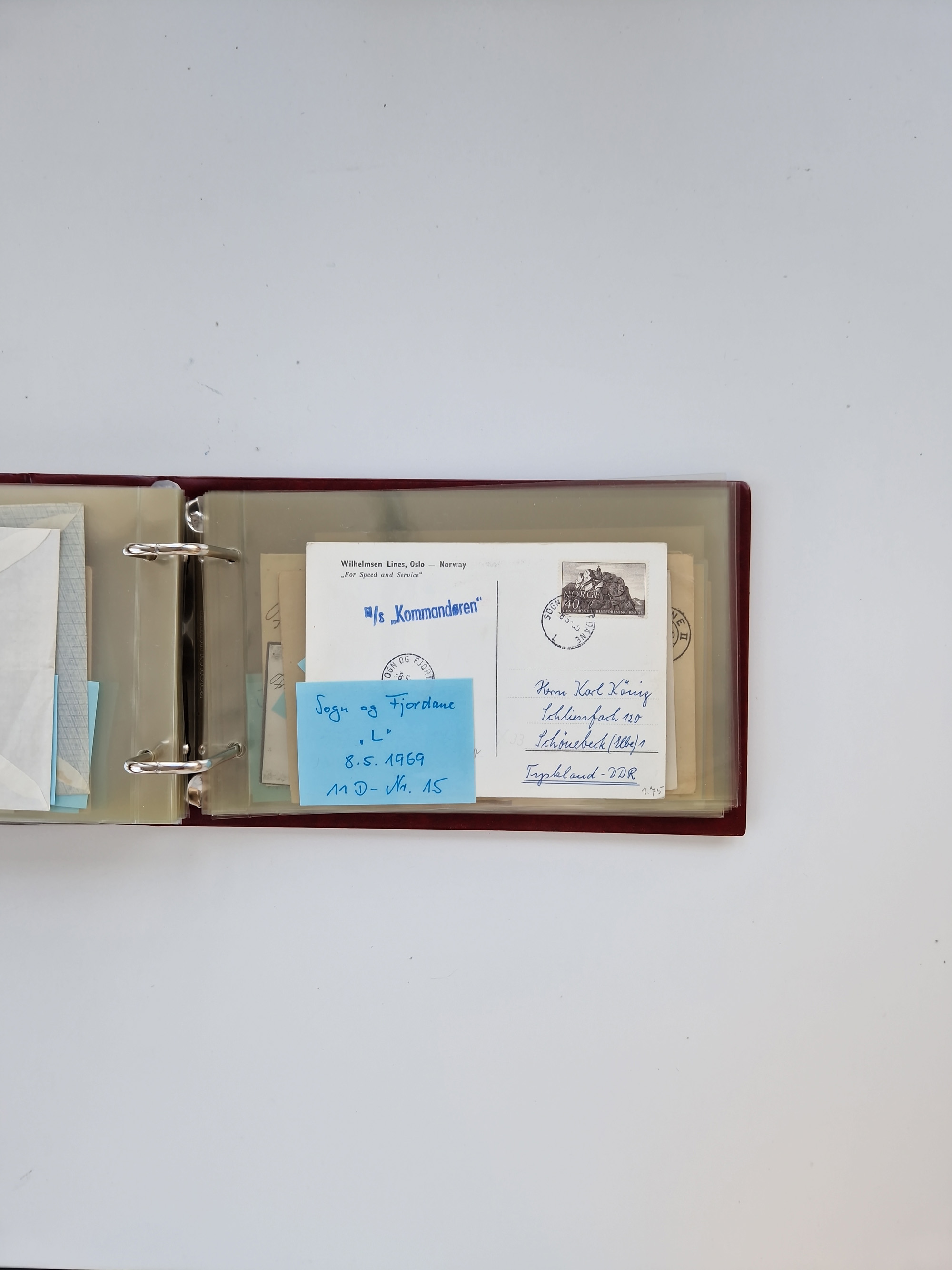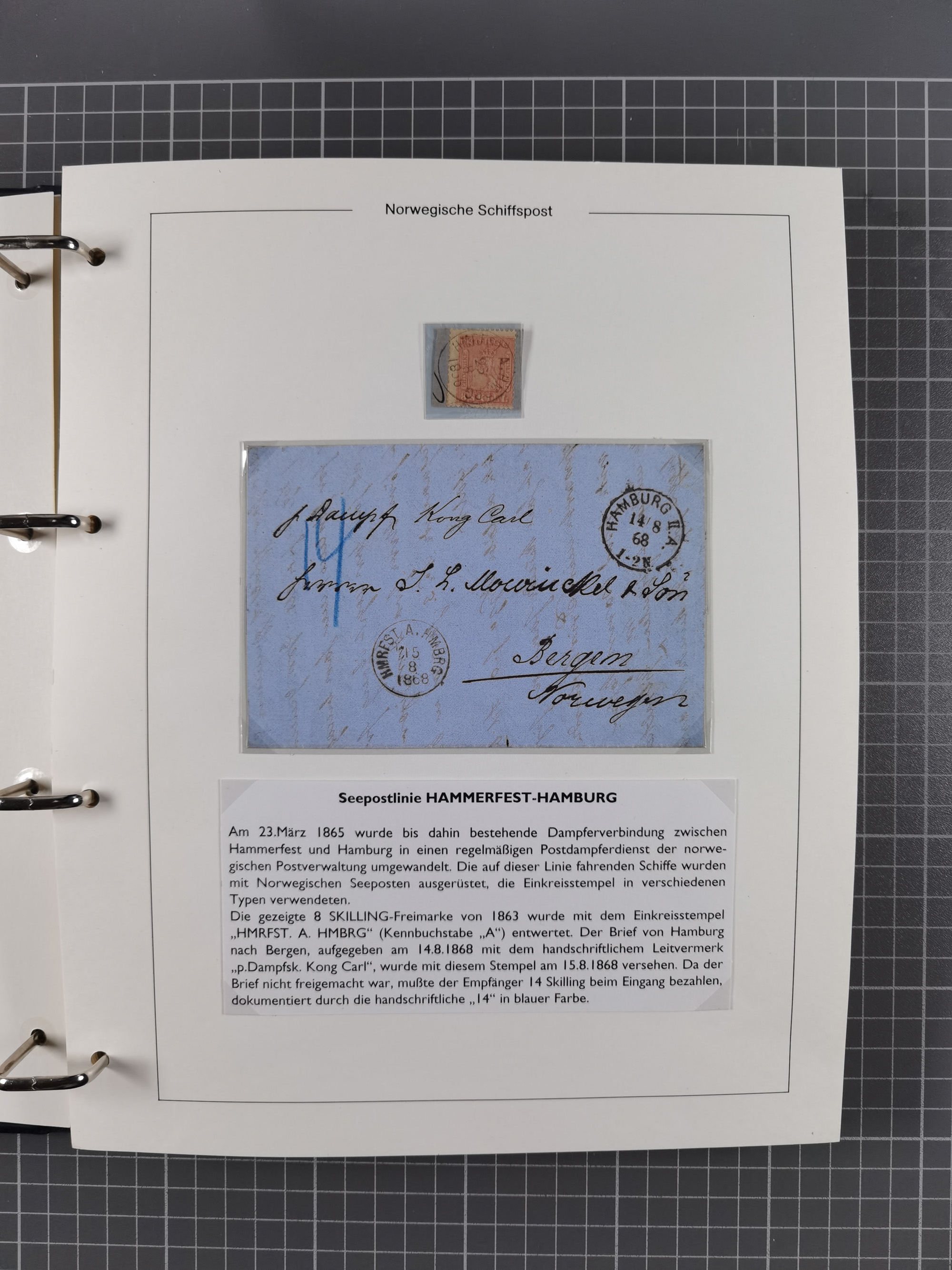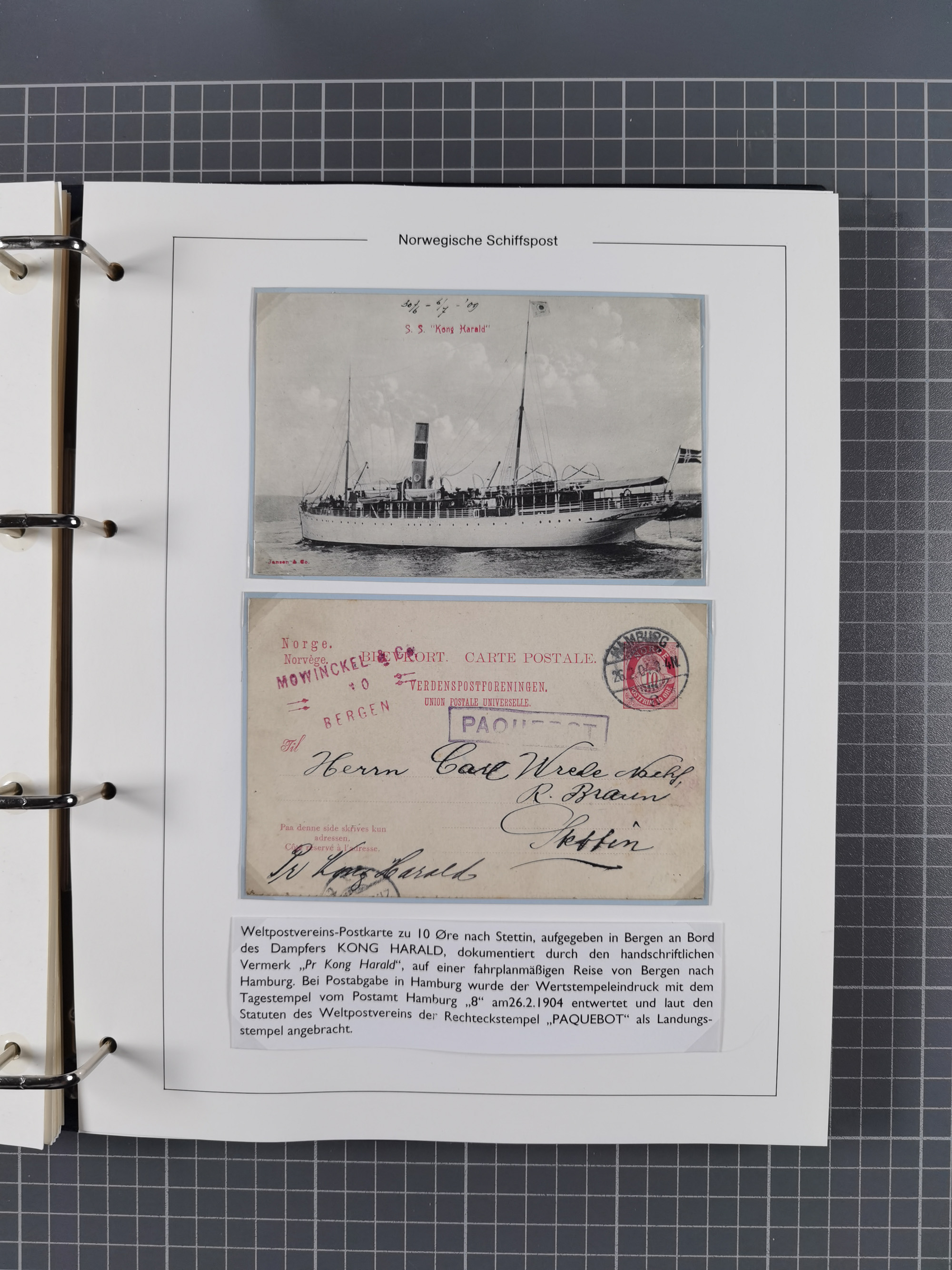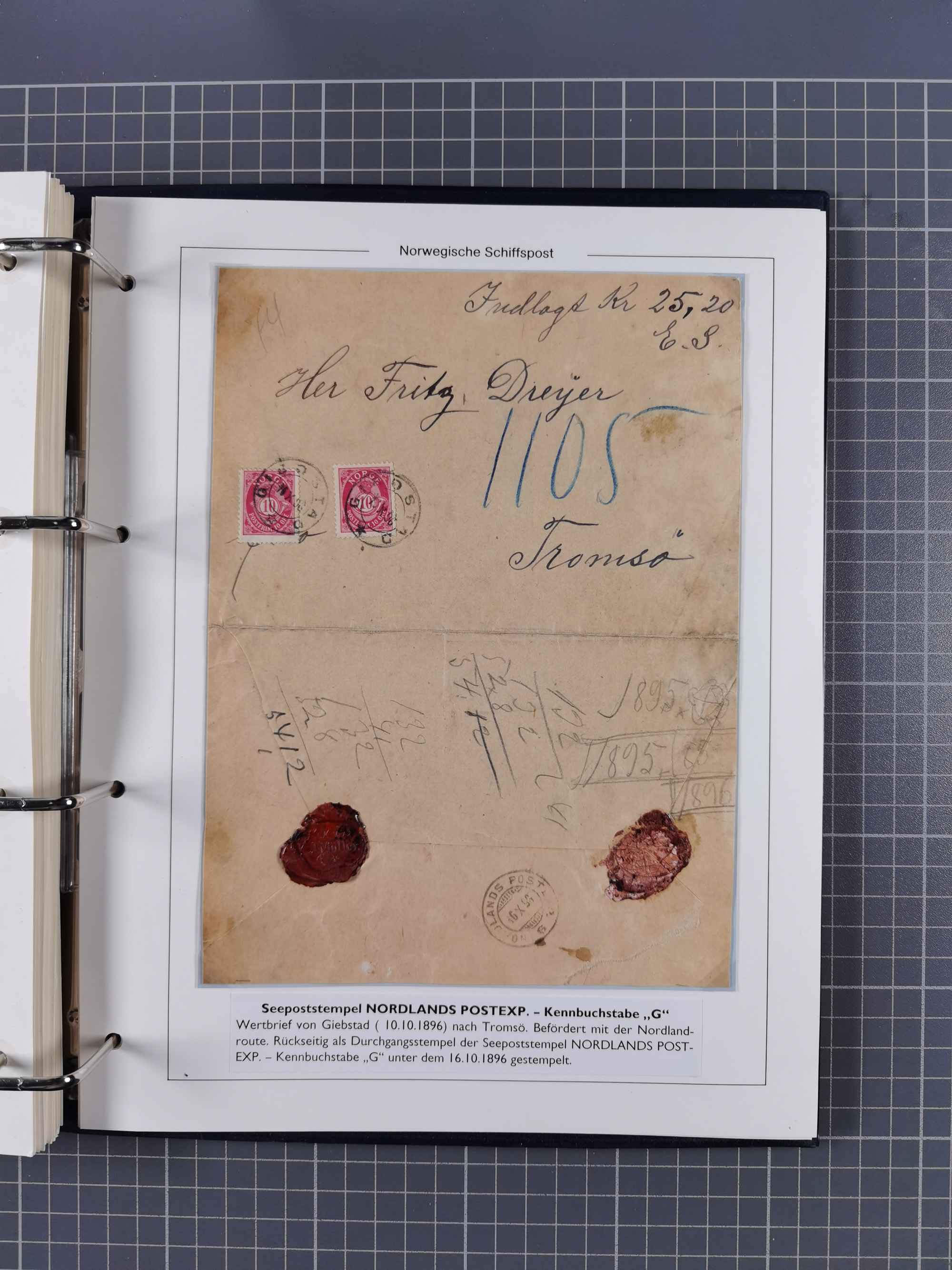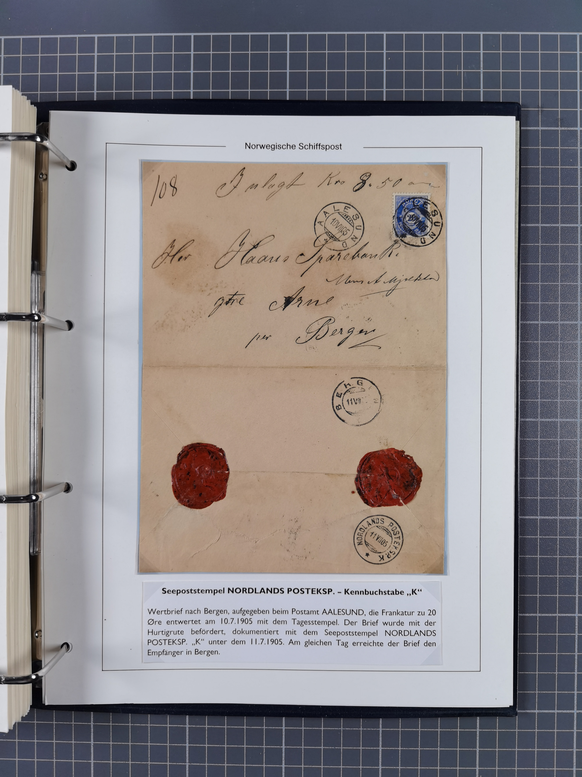 NORWEGEN: 1838/1980 (ca.), umfangreiche Sammlung “Norwegische Schiffspost” mit ca. fast 700 Briefen, Karten und GSK bis ca. 1960 inkl. Incoming Mail und etlichen nicht eingearbeiteten Belegen. Dabei frühe Post mit u.a. kpl. Faltbrief 1838 von Christiania mit ovalem Stempel “ALTONA SCHIFFSBRIEF” nach Schottland, kpl. Faltbrief 1863 mit handschriftlichem Aufgabevermerk “Foldin”, kpl. Faltbrief 1861 mit handschriftlichem Aufgabevermerk “Bjprn Farmand”, blauer EKr. “HALDEN 6.10.1854” auf kpl. Faltbrief und Briefhülle mit schwarzem EKr. “HAKON JARL 29.5.1861”. Danach u.a. zwei Briefe 1861/63 mit EKr. “NORDLAND”, Transitstempel “Norwegen direct” rückseitig auf Faltbrief mit zweimal 8 Sk. mit EKr. “STAVANGER 14.9.1864”, viele Nordlands Posteksp.-Stempel inkl. R-Briefen, Stempel “BÜREAU DE MER DE NORVEGE B 27.X.23” auf frankiertem R-Brief nach Schweden und 12 Briefe “NORSK SKIPSPOST HANDELSFLÄTEN” 1943/45 (6x mit Zensur). Dazu viele lose Marken und Briefstücke mit Schiffspost-Stempeln und zusätzlich viele Briefe nach 1960, alles auf Albenblättern mit Beschriftung in 24 Alben und ein mittlerer Karton mit nicht eingearbeitetem Material. Ein außergewöhnliches und empfehlenswertes Objekt