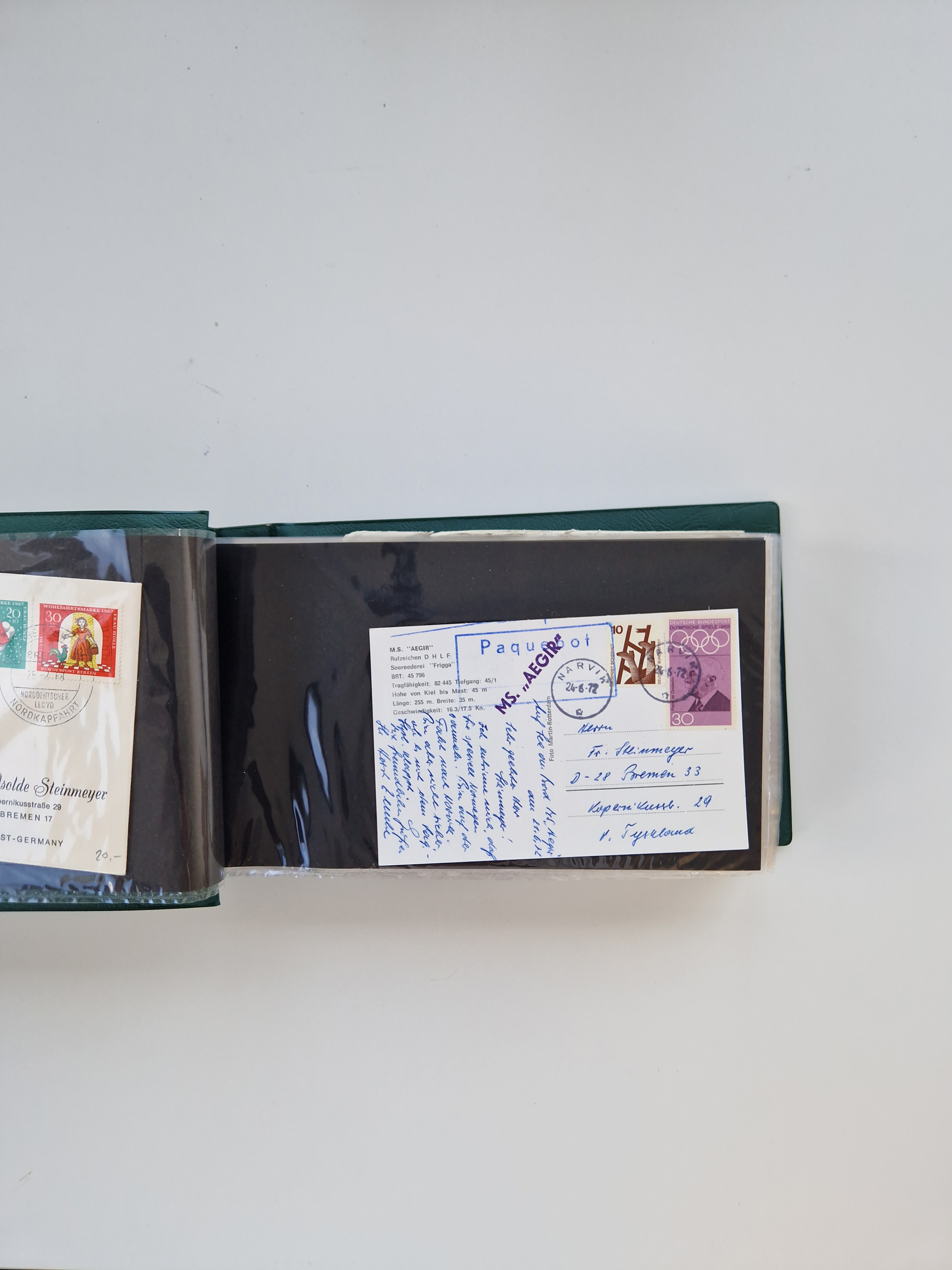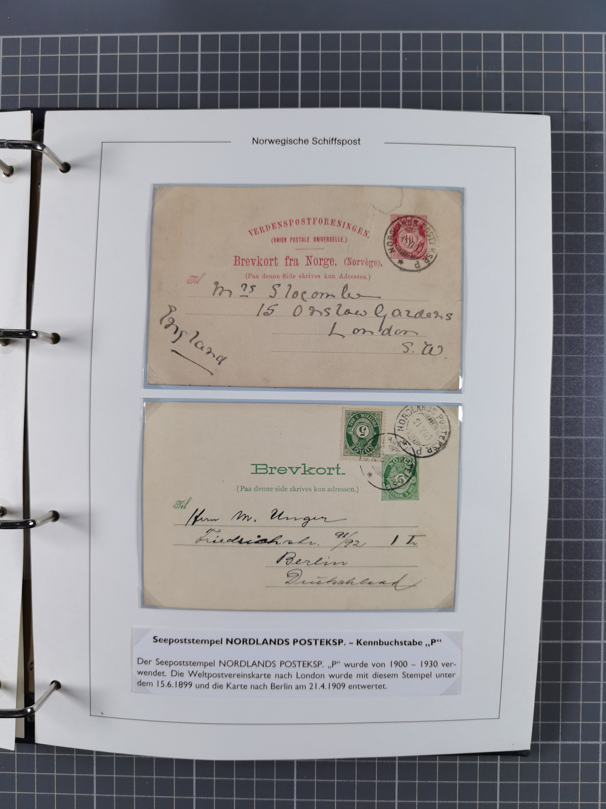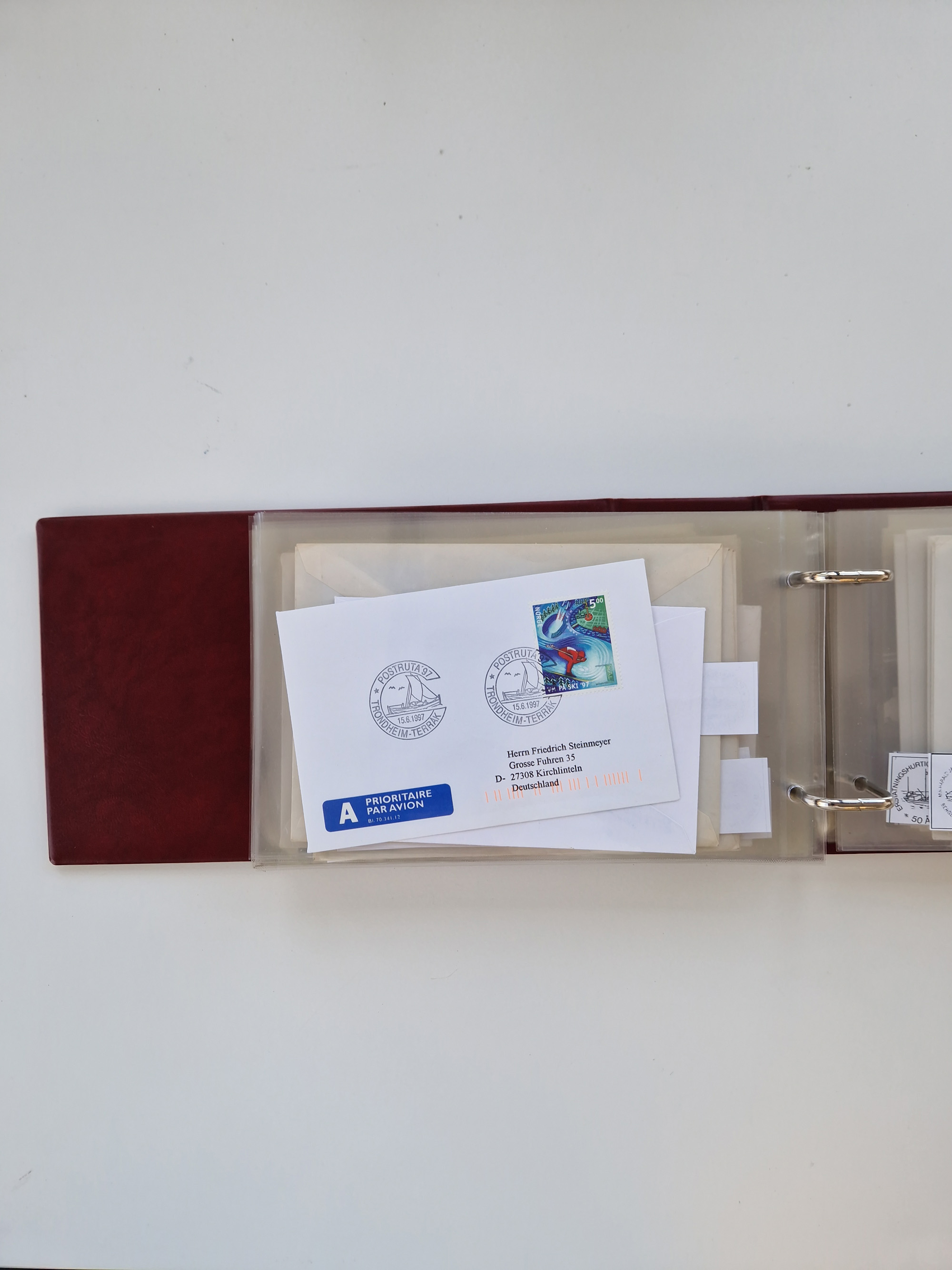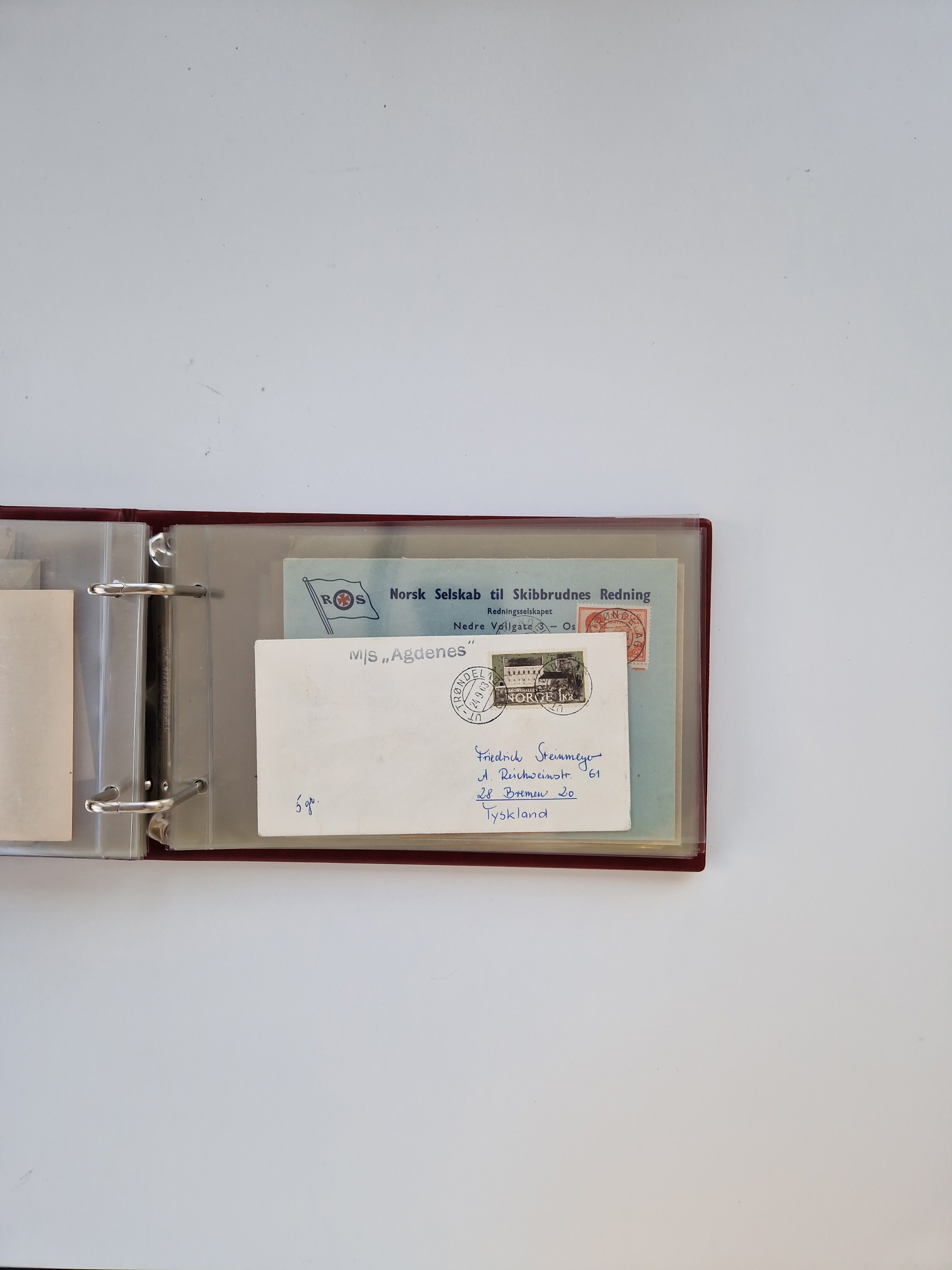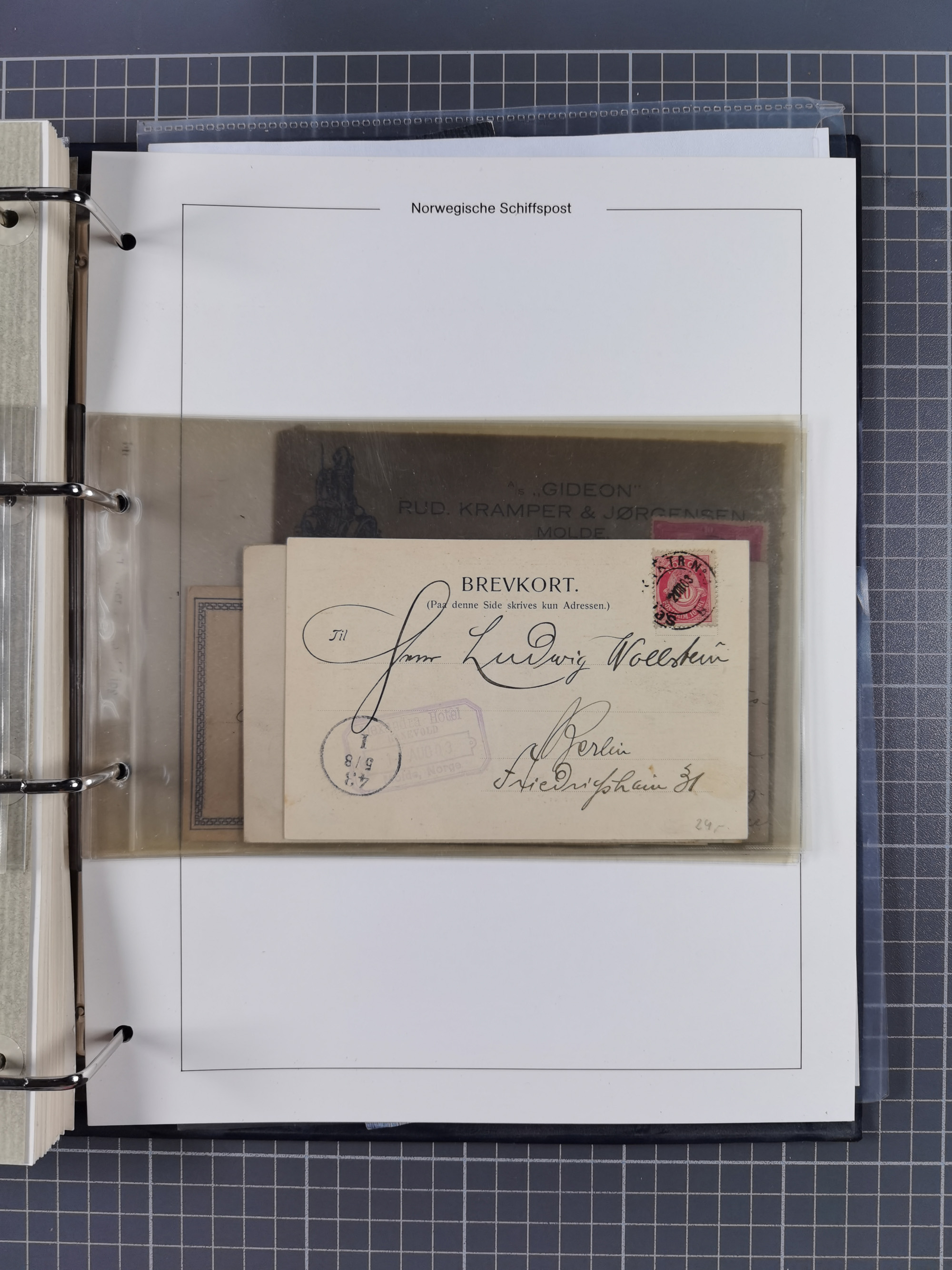 NORWEGEN: 1838/1980 (ca.), umfangreiche Sammlung “Norwegische Schiffspost” mit ca. fast 700 Briefen, Karten und GSK bis ca. 1960 inkl. Incoming Mail und etlichen nicht eingearbeiteten Belegen. Dabei frühe Post mit u.a. kpl. Faltbrief 1838 von Christiania mit ovalem Stempel “ALTONA SCHIFFSBRIEF” nach Schottland, kpl. Faltbrief 1863 mit handschriftlichem Aufgabevermerk “Foldin”, kpl. Faltbrief 1861 mit handschriftlichem Aufgabevermerk “Bjprn Farmand”, blauer EKr. “HALDEN 6.10.1854” auf kpl. Faltbrief und Briefhülle mit schwarzem EKr. “HAKON JARL 29.5.1861”. Danach u.a. zwei Briefe 1861/63 mit EKr. “NORDLAND”, Transitstempel “Norwegen direct” rückseitig auf Faltbrief mit zweimal 8 Sk. mit EKr. “STAVANGER 14.9.1864”, viele Nordlands Posteksp.-Stempel inkl. R-Briefen, Stempel “BÜREAU DE MER DE NORVEGE B 27.X.23” auf frankiertem R-Brief nach Schweden und 12 Briefe “NORSK SKIPSPOST HANDELSFLÄTEN” 1943/45 (6x mit Zensur). Dazu viele lose Marken und Briefstücke mit Schiffspost-Stempeln und zusätzlich viele Briefe nach 1960, alles auf Albenblättern mit Beschriftung in 24 Alben und ein mittlerer Karton mit nicht eingearbeitetem Material. Ein außergewöhnliches und empfehlenswertes Objekt