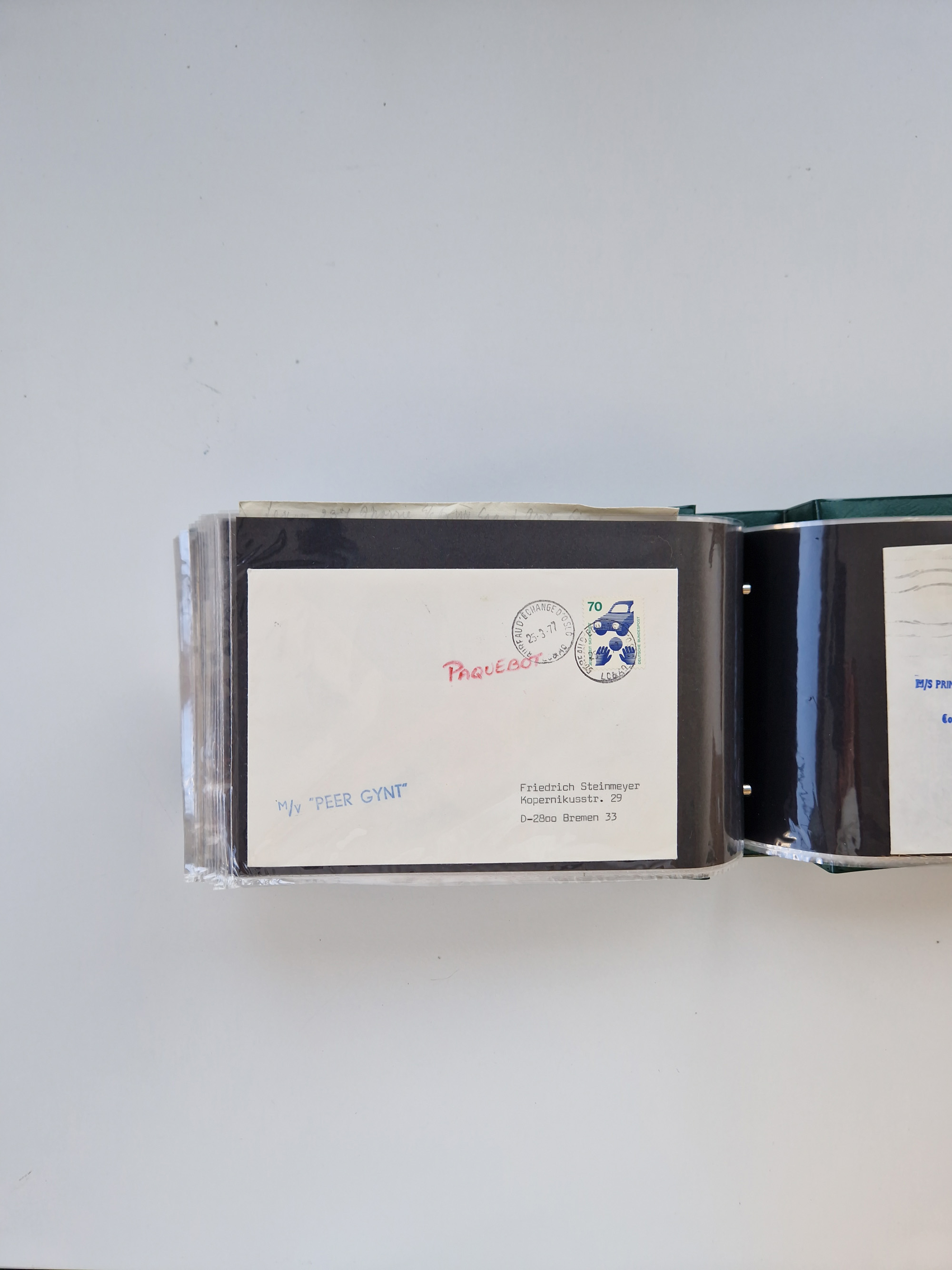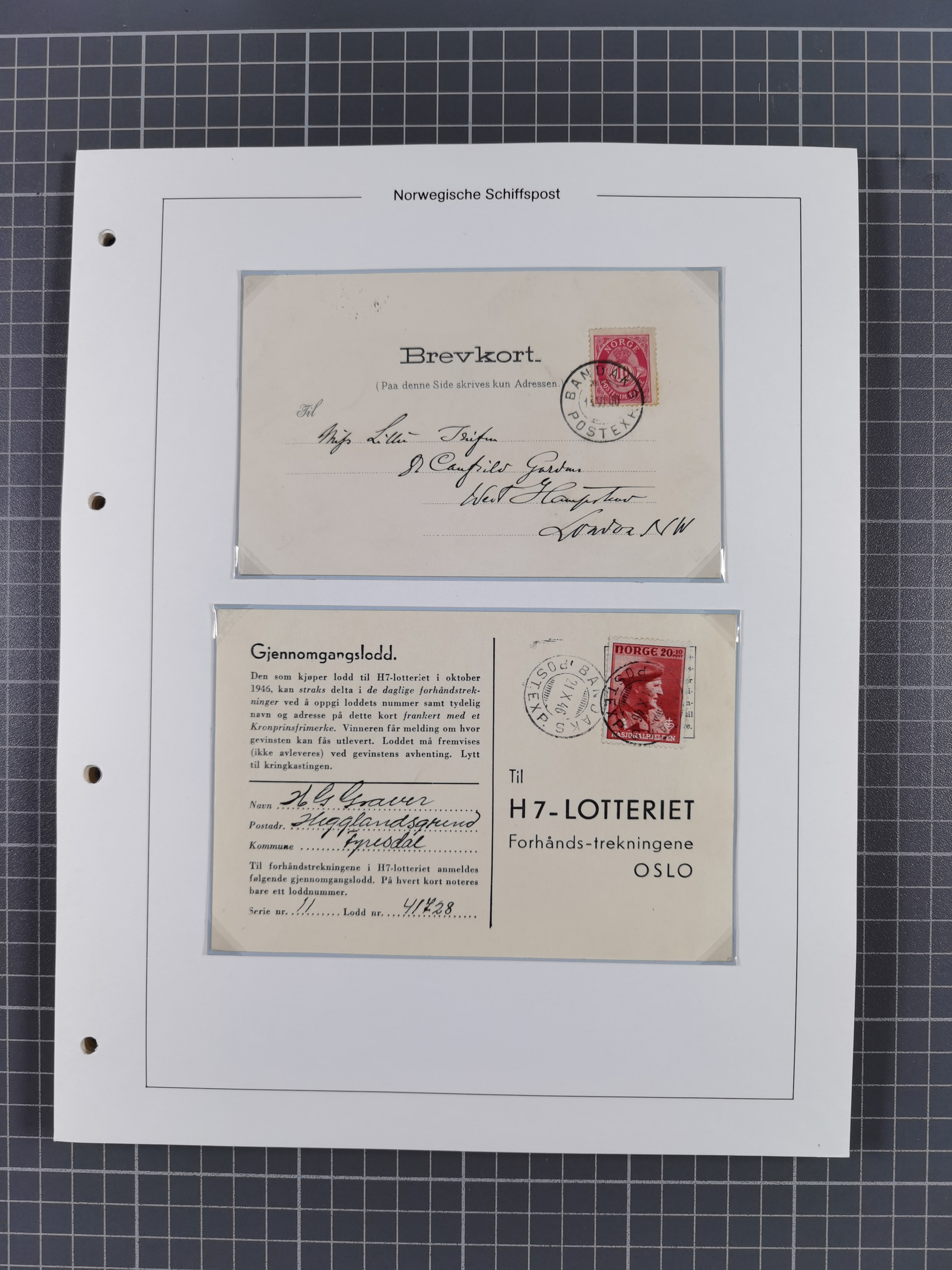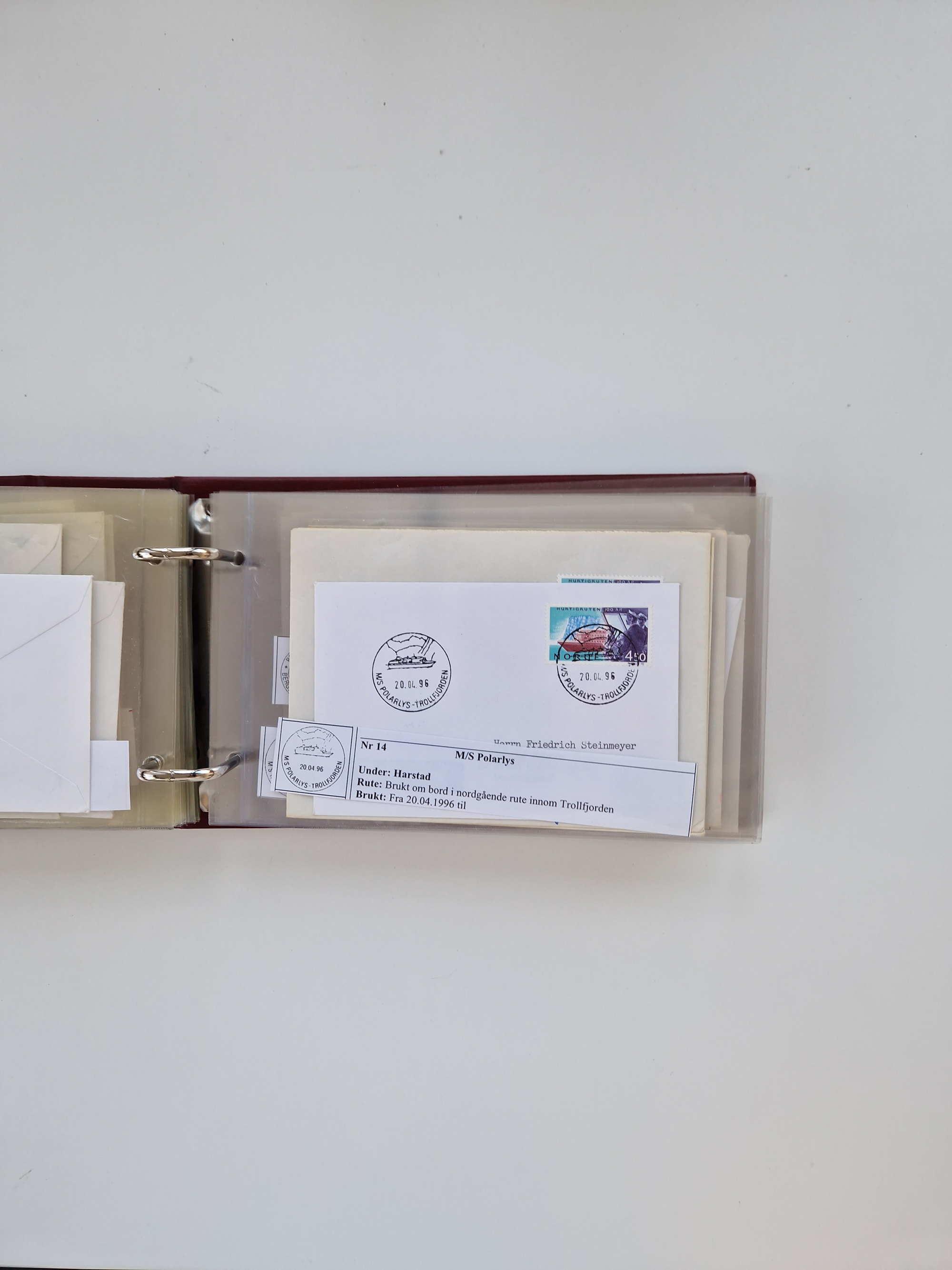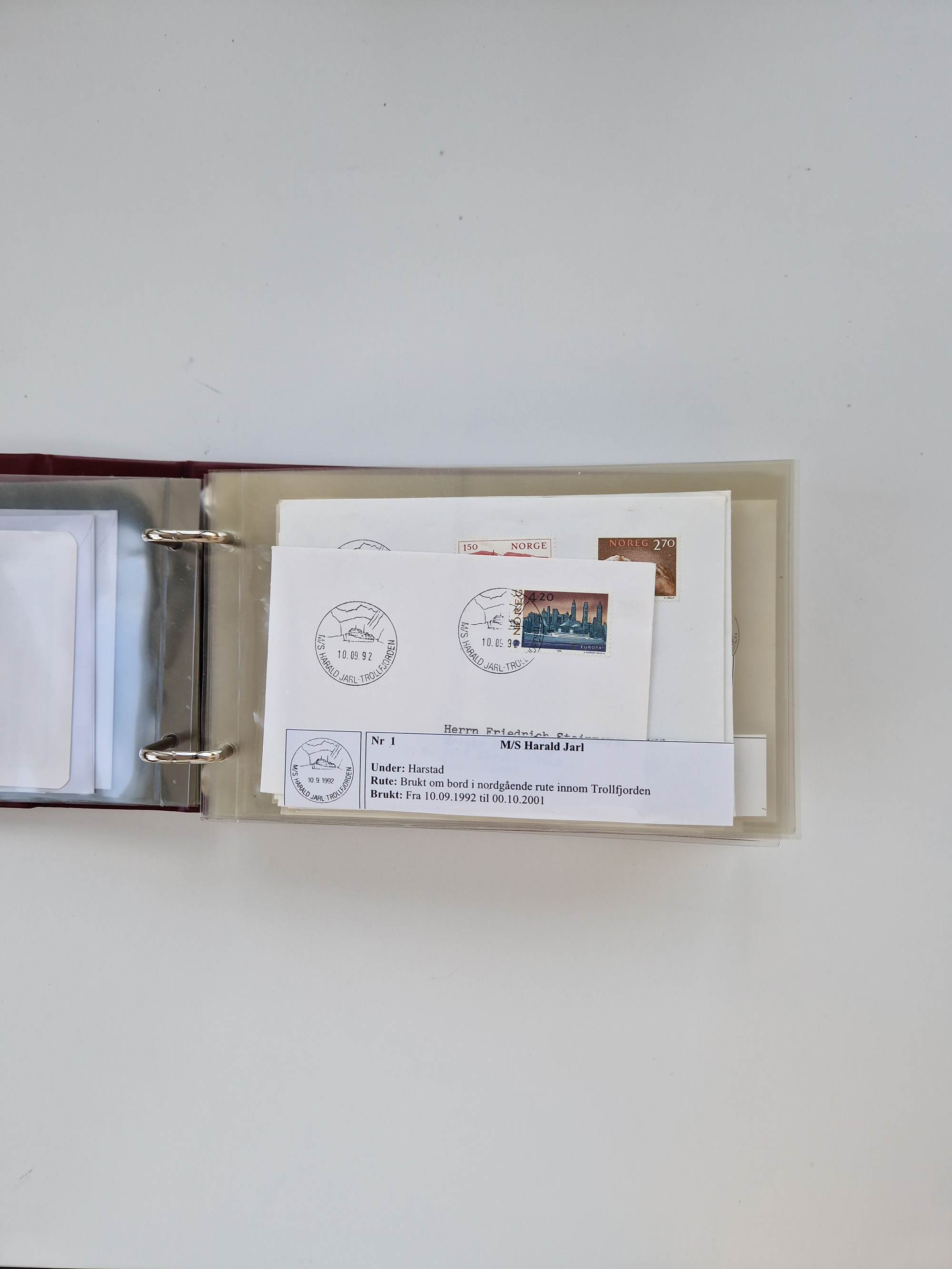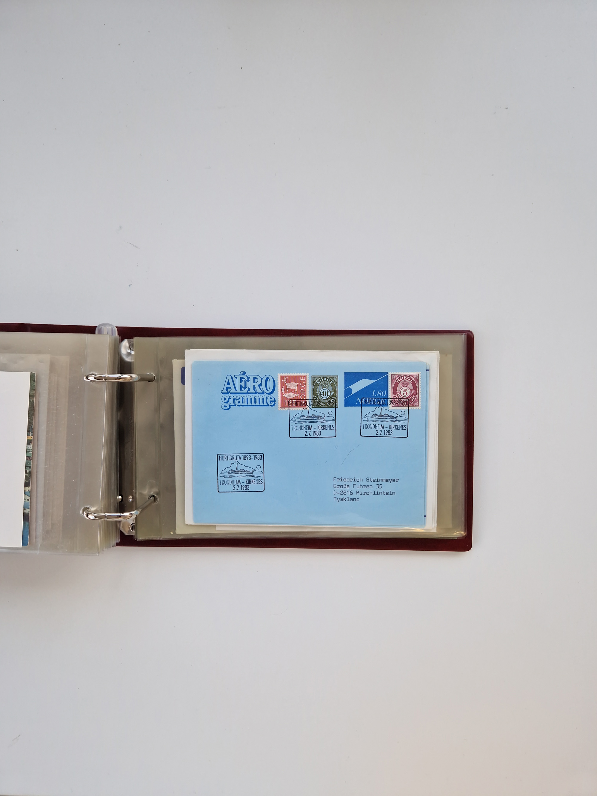 NORWEGEN: 1838/1980 (ca.), umfangreiche Sammlung “Norwegische Schiffspost” mit ca. fast 700 Briefen, Karten und GSK bis ca. 1960 inkl. Incoming Mail und etlichen nicht eingearbeiteten Belegen. Dabei frühe Post mit u.a. kpl. Faltbrief 1838 von Christiania mit ovalem Stempel “ALTONA SCHIFFSBRIEF” nach Schottland, kpl. Faltbrief 1863 mit handschriftlichem Aufgabevermerk “Foldin”, kpl. Faltbrief 1861 mit handschriftlichem Aufgabevermerk “Bjprn Farmand”, blauer EKr. “HALDEN 6.10.1854” auf kpl. Faltbrief und Briefhülle mit schwarzem EKr. “HAKON JARL 29.5.1861”. Danach u.a. zwei Briefe 1861/63 mit EKr. “NORDLAND”, Transitstempel “Norwegen direct” rückseitig auf Faltbrief mit zweimal 8 Sk. mit EKr. “STAVANGER 14.9.1864”, viele Nordlands Posteksp.-Stempel inkl. R-Briefen, Stempel “BÜREAU DE MER DE NORVEGE B 27.X.23” auf frankiertem R-Brief nach Schweden und 12 Briefe “NORSK SKIPSPOST HANDELSFLÄTEN” 1943/45 (6x mit Zensur). Dazu viele lose Marken und Briefstücke mit Schiffspost-Stempeln und zusätzlich viele Briefe nach 1960, alles auf Albenblättern mit Beschriftung in 24 Alben und ein mittlerer Karton mit nicht eingearbeitetem Material. Ein außergewöhnliches und empfehlenswertes Objekt
