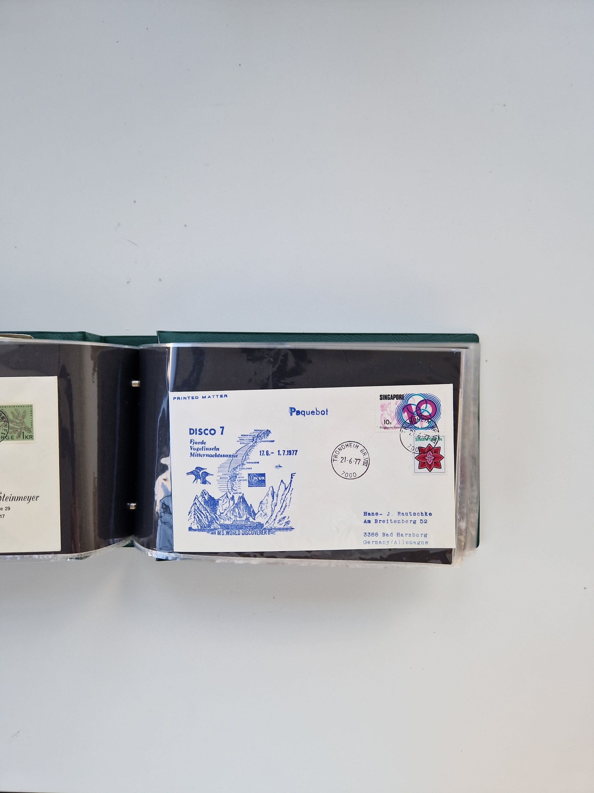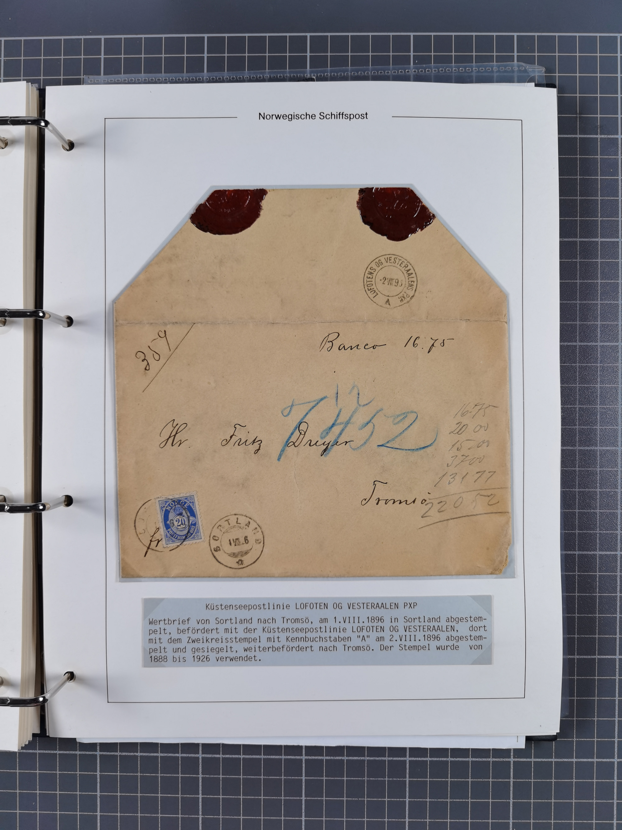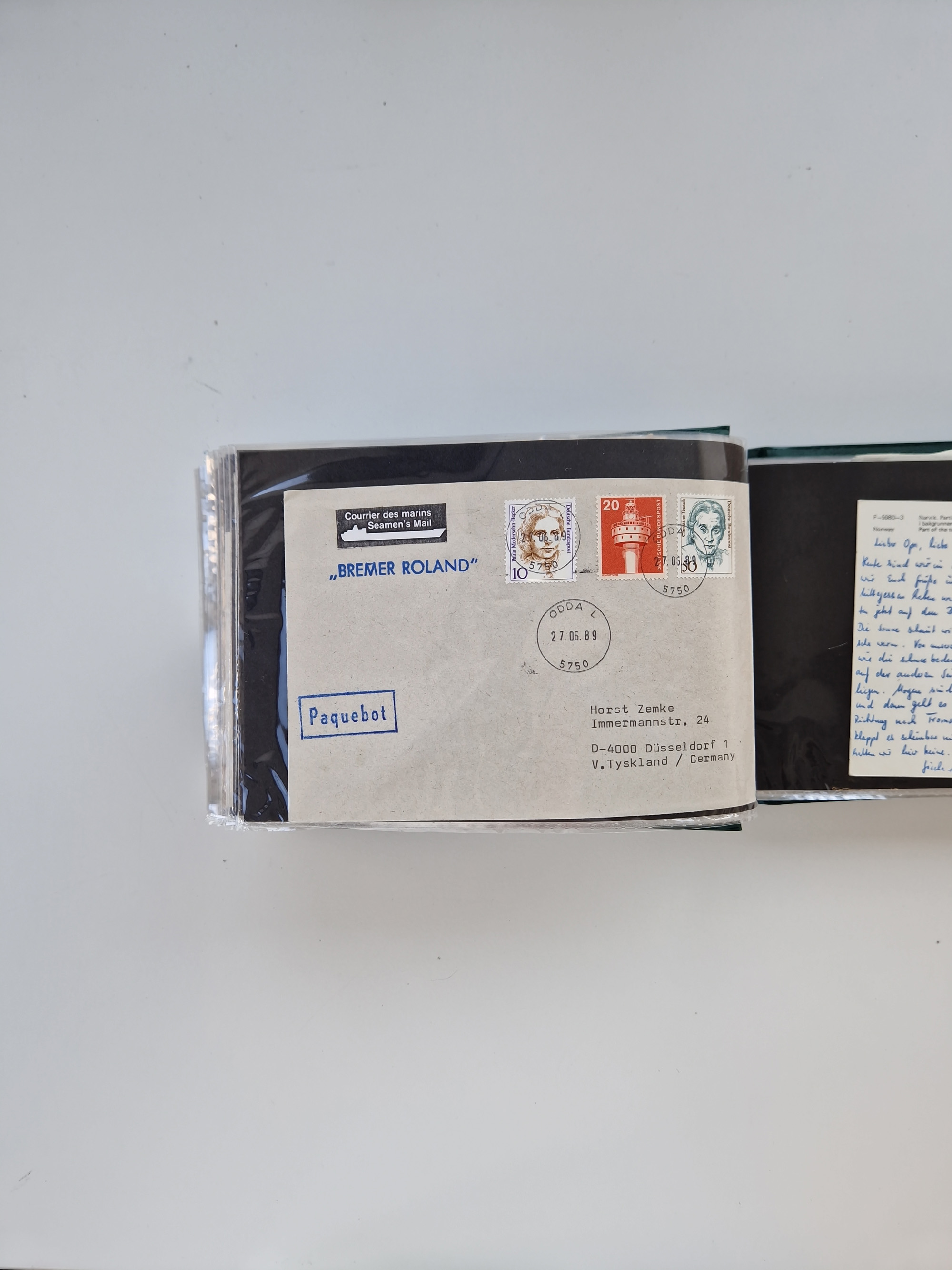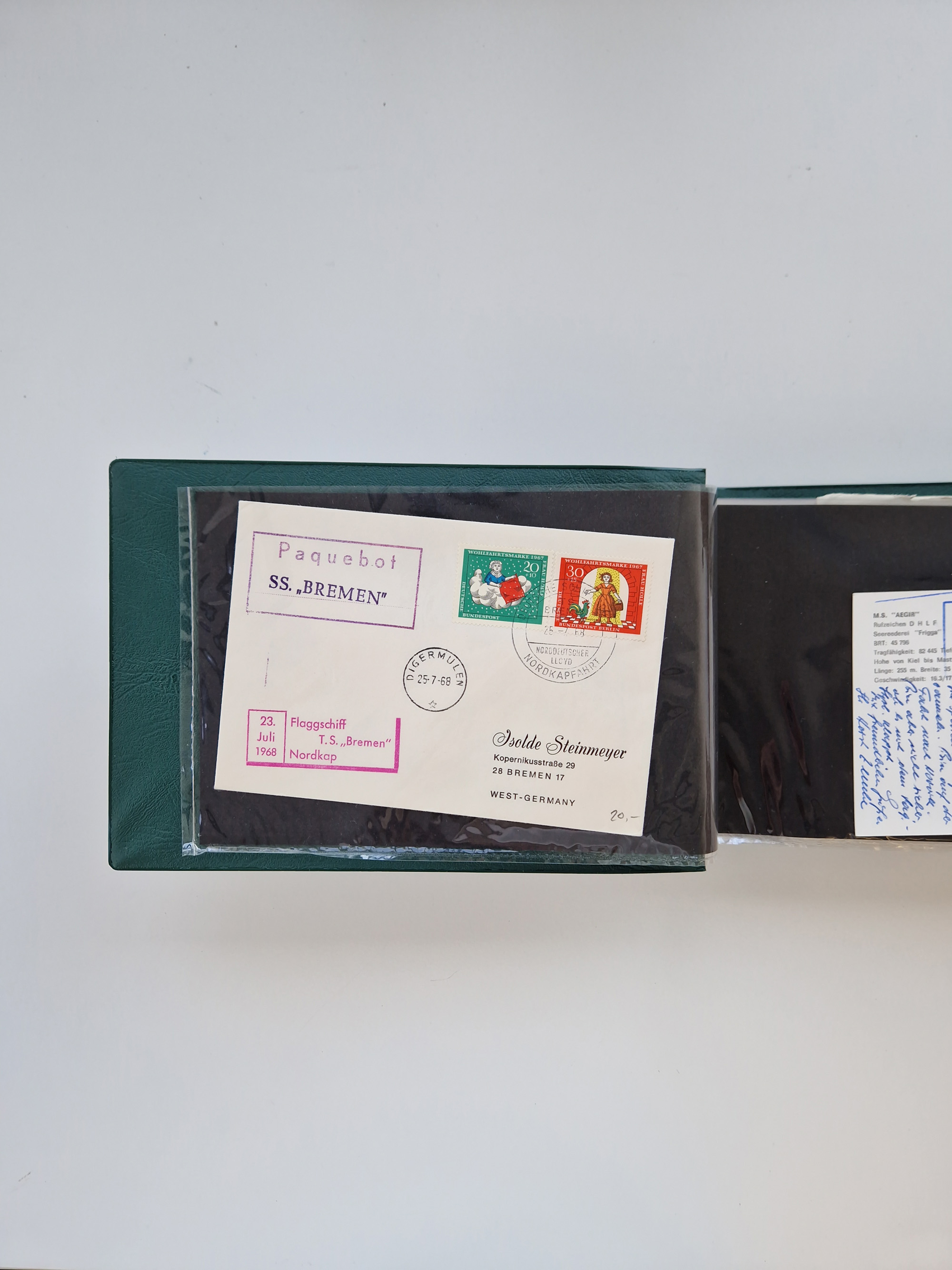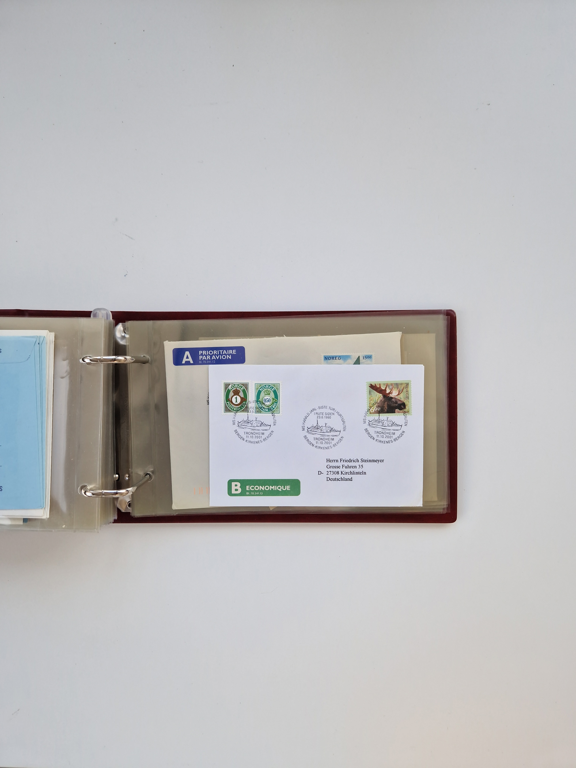 NORWEGEN: 1838/1980 (ca.), umfangreiche Sammlung “Norwegische Schiffspost” mit ca. fast 700 Briefen, Karten und GSK bis ca. 1960 inkl. Incoming Mail und etlichen nicht eingearbeiteten Belegen. Dabei frühe Post mit u.a. kpl. Faltbrief 1838 von Christiania mit ovalem Stempel “ALTONA SCHIFFSBRIEF” nach Schottland, kpl. Faltbrief 1863 mit handschriftlichem Aufgabevermerk “Foldin”, kpl. Faltbrief 1861 mit handschriftlichem Aufgabevermerk “Bjprn Farmand”, blauer EKr. “HALDEN 6.10.1854” auf kpl. Faltbrief und Briefhülle mit schwarzem EKr. “HAKON JARL 29.5.1861”. Danach u.a. zwei Briefe 1861/63 mit EKr. “NORDLAND”, Transitstempel “Norwegen direct” rückseitig auf Faltbrief mit zweimal 8 Sk. mit EKr. “STAVANGER 14.9.1864”, viele Nordlands Posteksp.-Stempel inkl. R-Briefen, Stempel “BÜREAU DE MER DE NORVEGE B 27.X.23” auf frankiertem R-Brief nach Schweden und 12 Briefe “NORSK SKIPSPOST HANDELSFLÄTEN” 1943/45 (6x mit Zensur). Dazu viele lose Marken und Briefstücke mit Schiffspost-Stempeln und zusätzlich viele Briefe nach 1960, alles auf Albenblättern mit Beschriftung in 24 Alben und ein mittlerer Karton mit nicht eingearbeitetem Material. Ein außergewöhnliches und empfehlenswertes Objekt