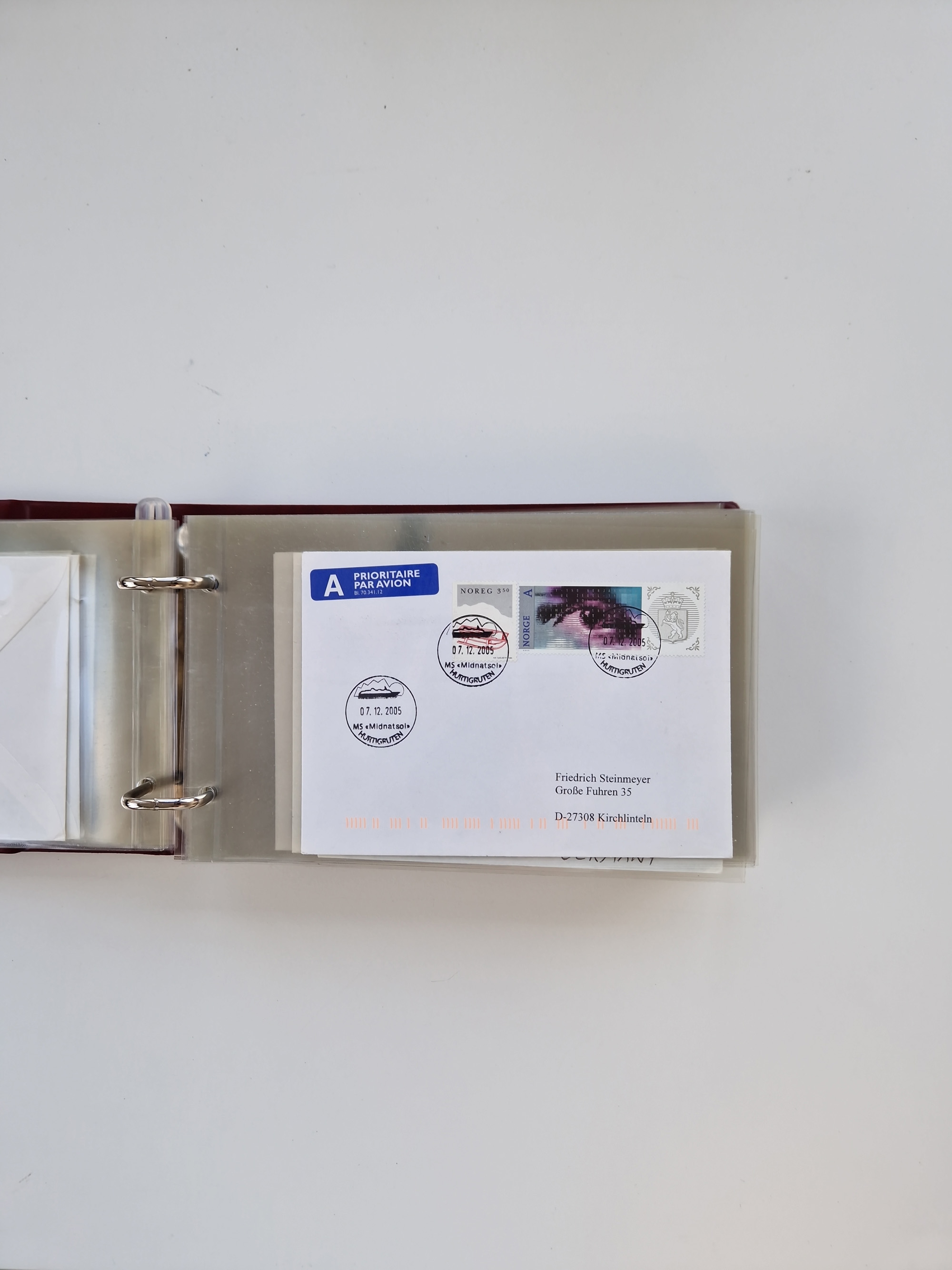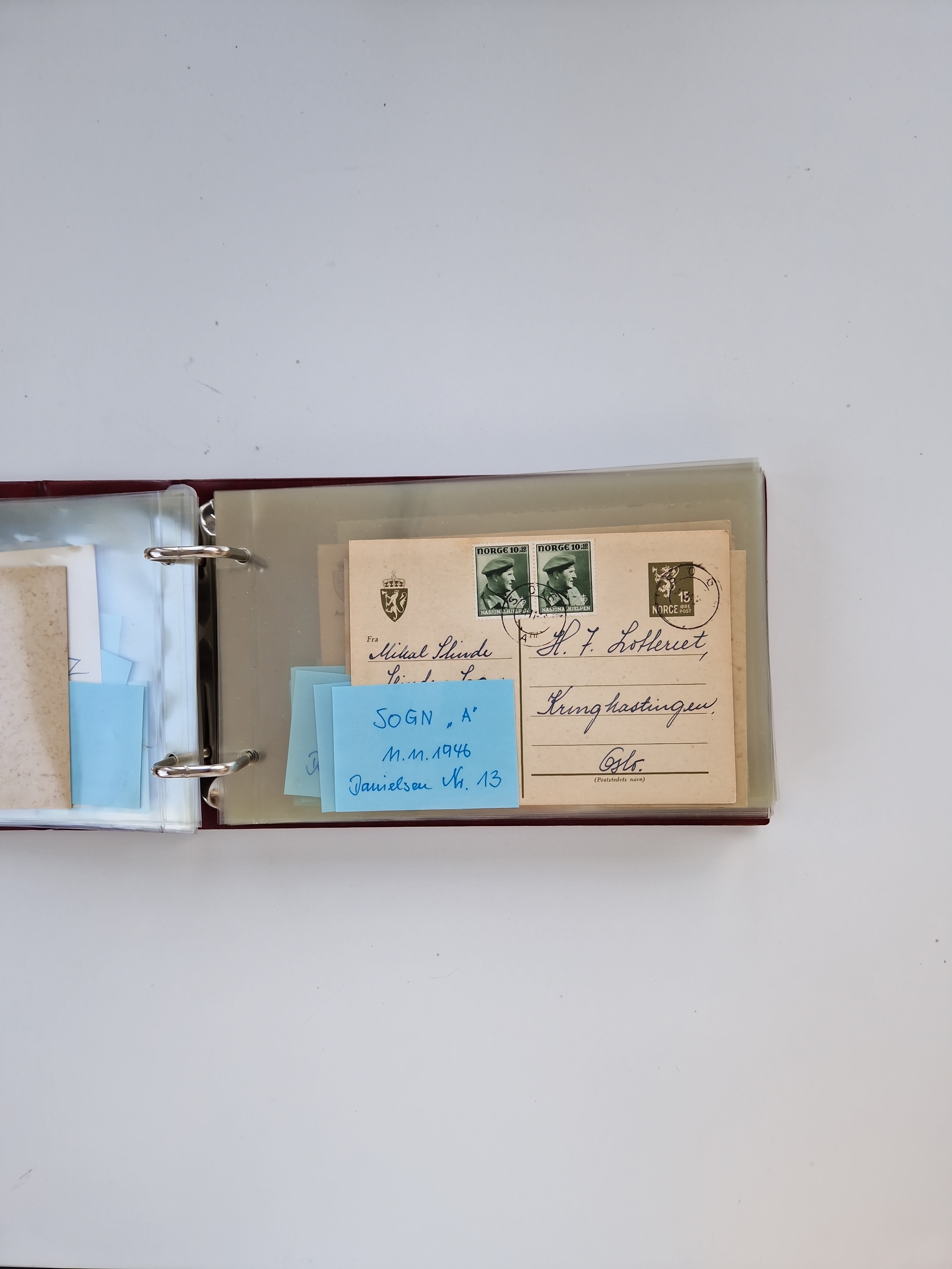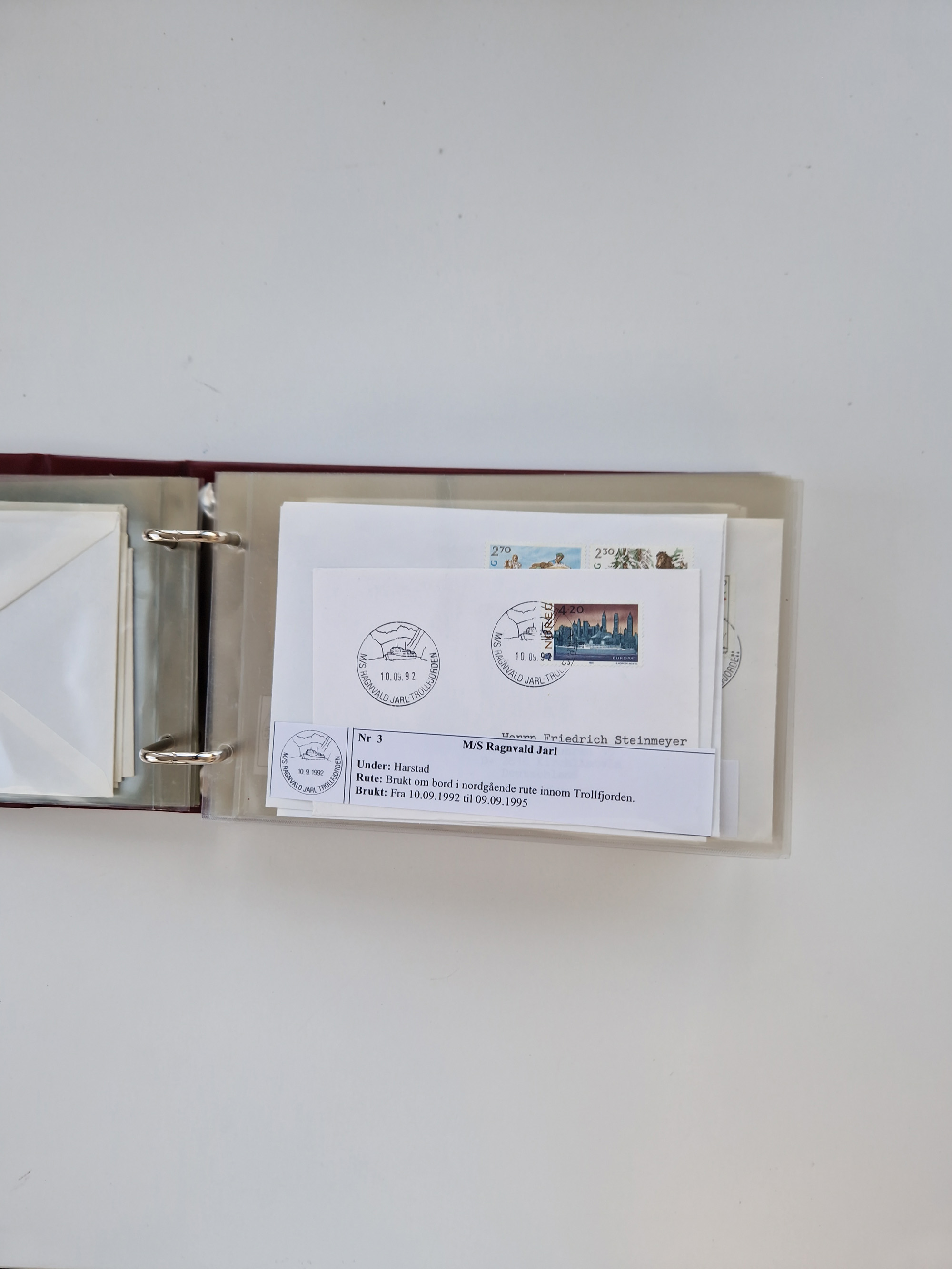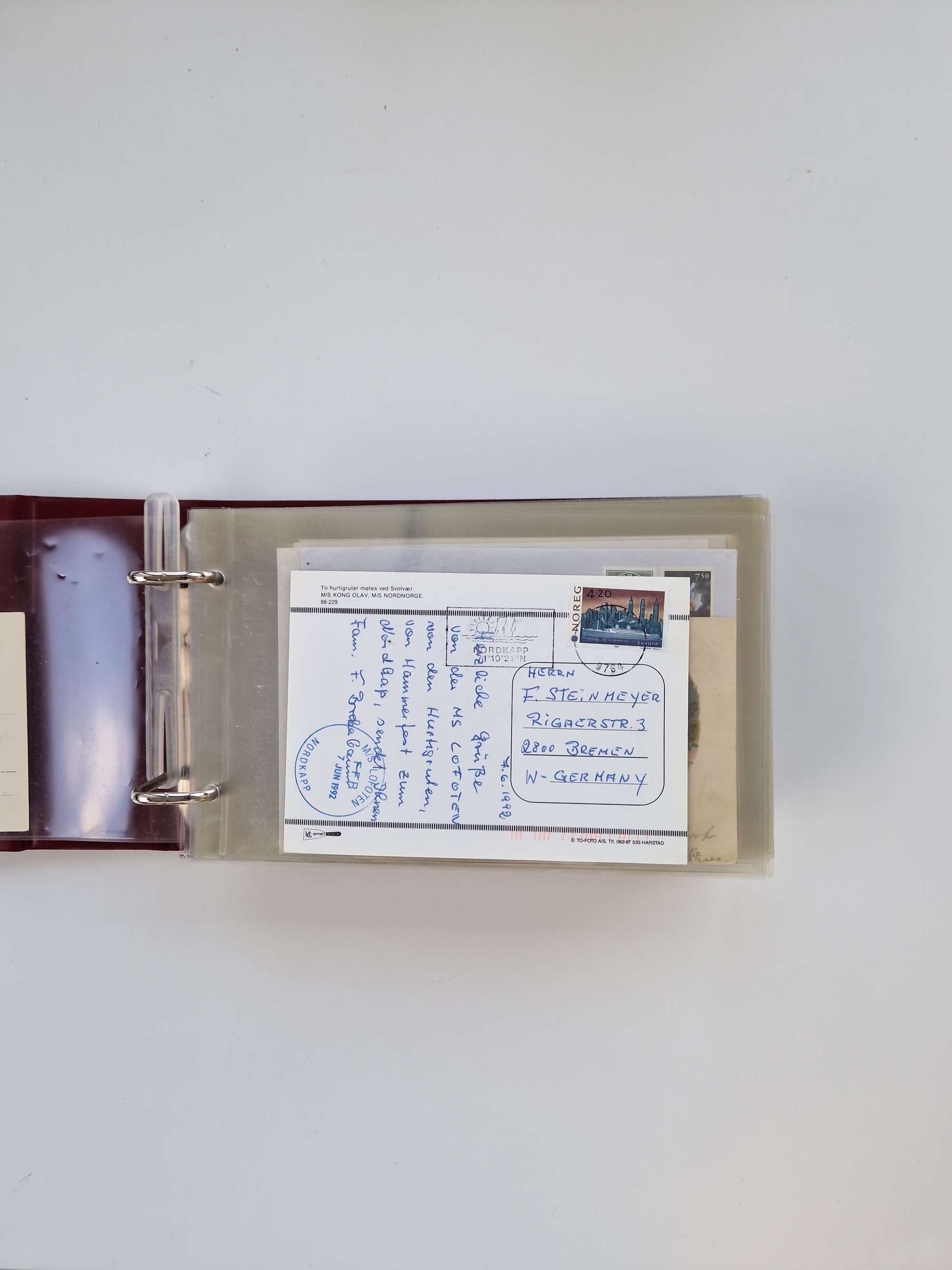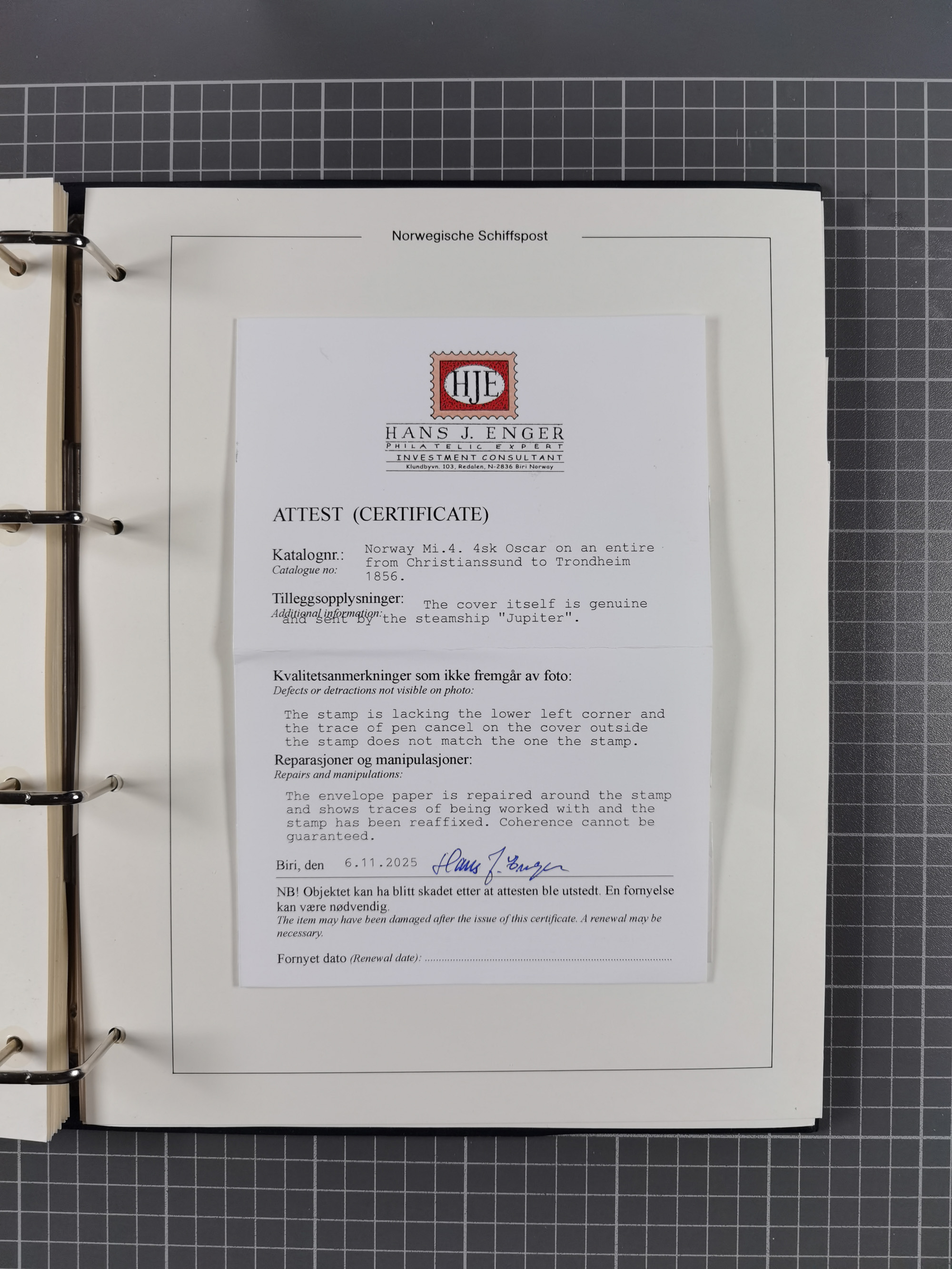 NORWEGEN: 1838/1980 (ca.), umfangreiche Sammlung “Norwegische Schiffspost” mit ca. fast 700 Briefen, Karten und GSK bis ca. 1960 inkl. Incoming Mail und etlichen nicht eingearbeiteten Belegen. Dabei frühe Post mit u.a. kpl. Faltbrief 1838 von Christiania mit ovalem Stempel “ALTONA SCHIFFSBRIEF” nach Schottland, kpl. Faltbrief 1863 mit handschriftlichem Aufgabevermerk “Foldin”, kpl. Faltbrief 1861 mit handschriftlichem Aufgabevermerk “Bjprn Farmand”, blauer EKr. “HALDEN 6.10.1854” auf kpl. Faltbrief und Briefhülle mit schwarzem EKr. “HAKON JARL 29.5.1861”. Danach u.a. zwei Briefe 1861/63 mit EKr. “NORDLAND”, Transitstempel “Norwegen direct” rückseitig auf Faltbrief mit zweimal 8 Sk. mit EKr. “STAVANGER 14.9.1864”, viele Nordlands Posteksp.-Stempel inkl. R-Briefen, Stempel “BÜREAU DE MER DE NORVEGE B 27.X.23” auf frankiertem R-Brief nach Schweden und 12 Briefe “NORSK SKIPSPOST HANDELSFLÄTEN” 1943/45 (6x mit Zensur). Dazu viele lose Marken und Briefstücke mit Schiffspost-Stempeln und zusätzlich viele Briefe nach 1960, alles auf Albenblättern mit Beschriftung in 24 Alben und ein mittlerer Karton mit nicht eingearbeitetem Material. Ein außergewöhnliches und empfehlenswertes Objekt