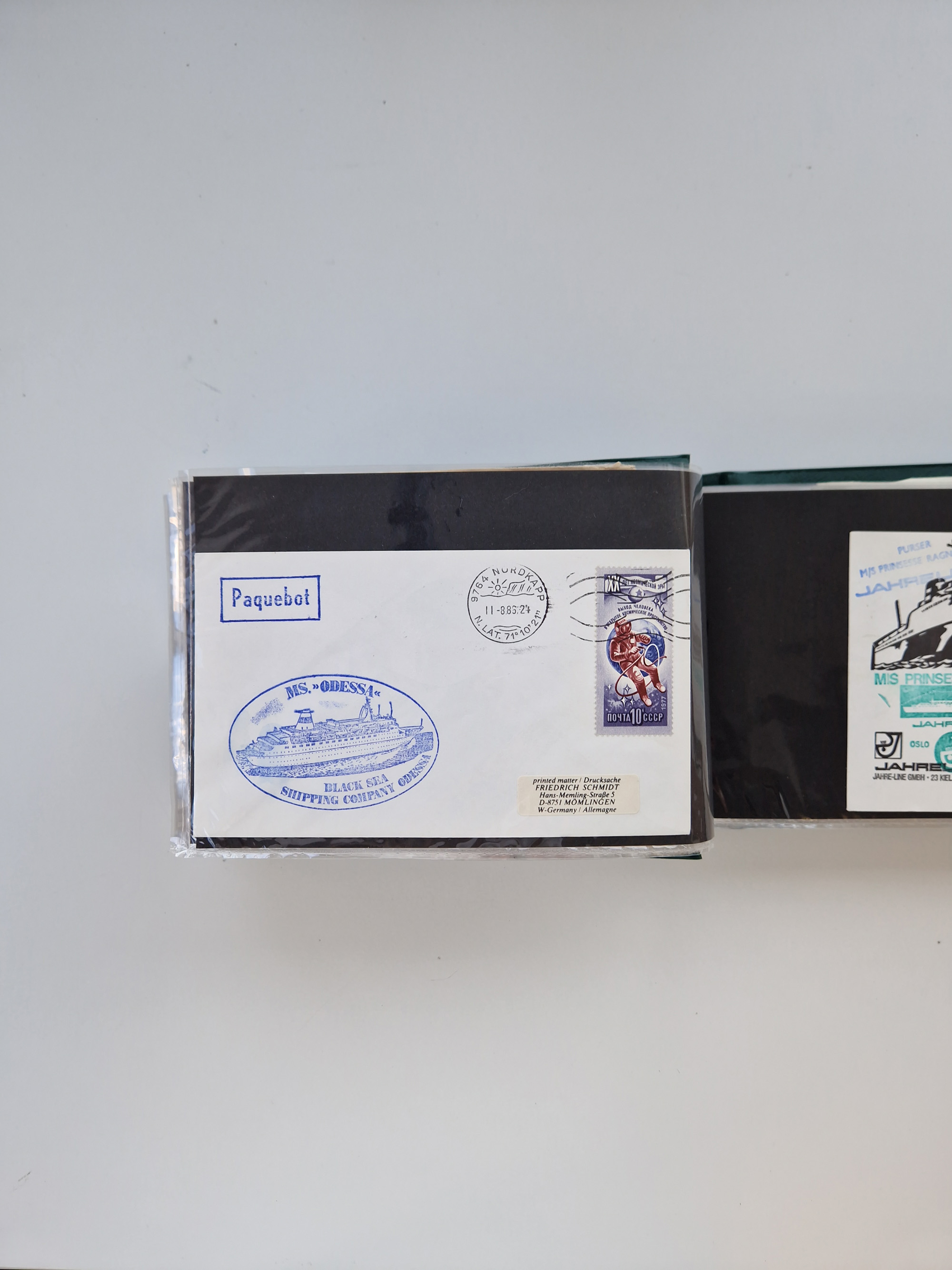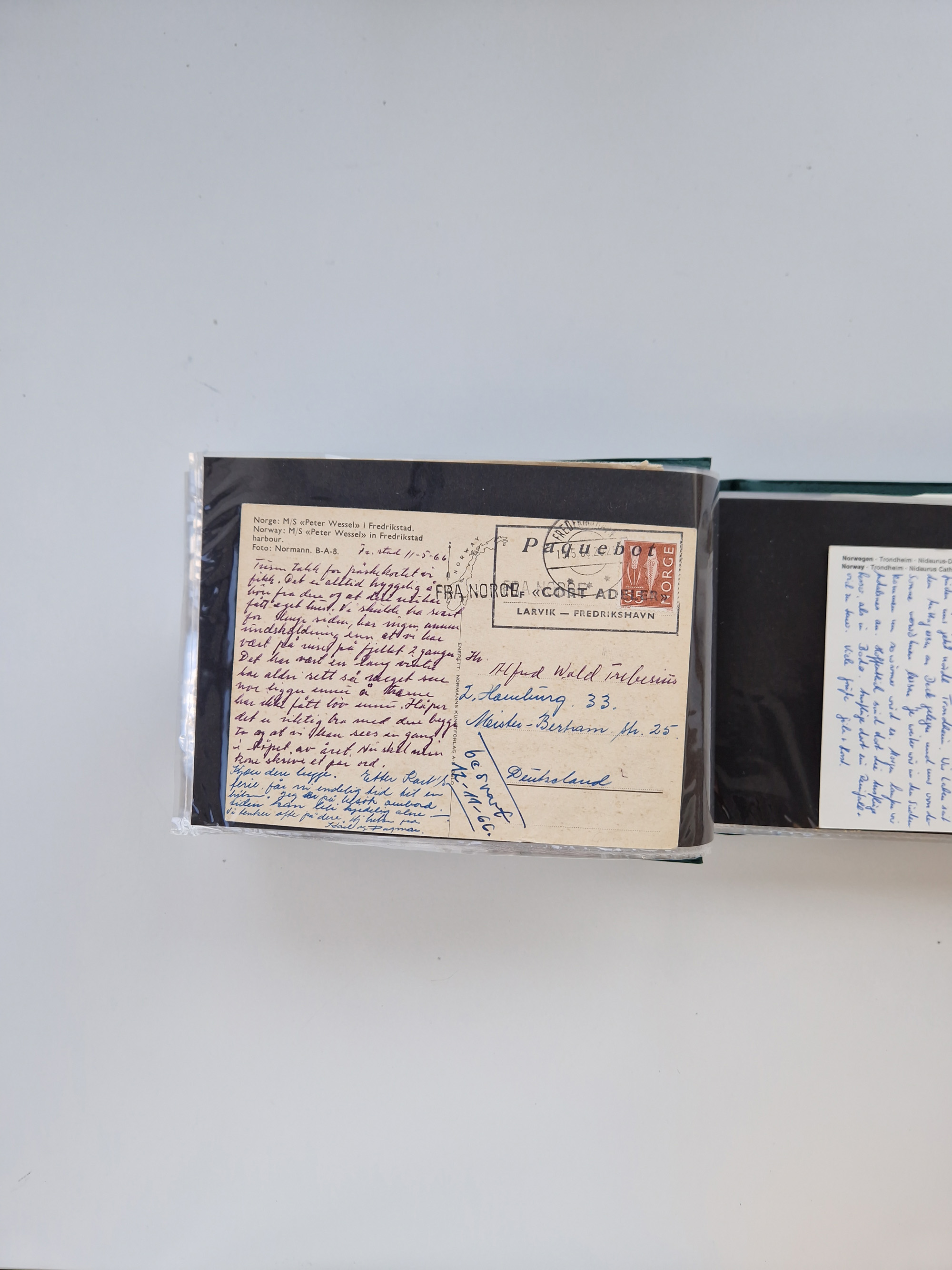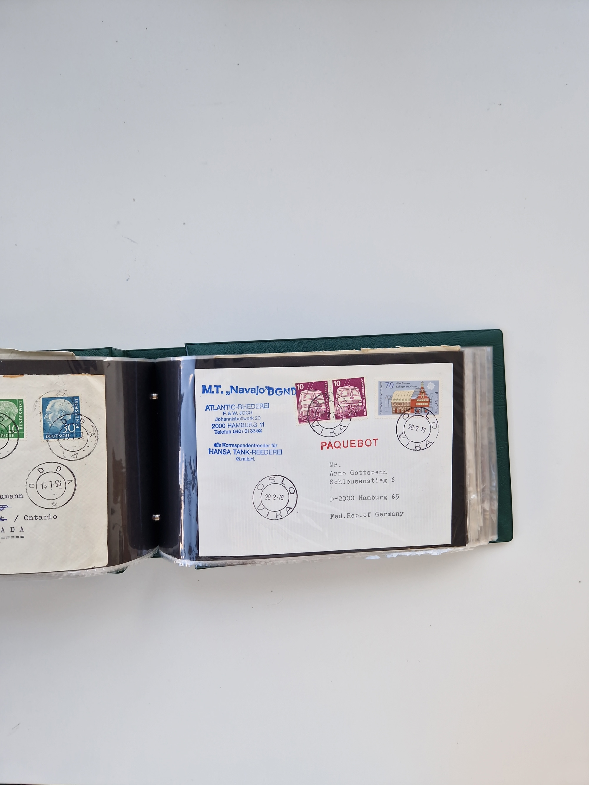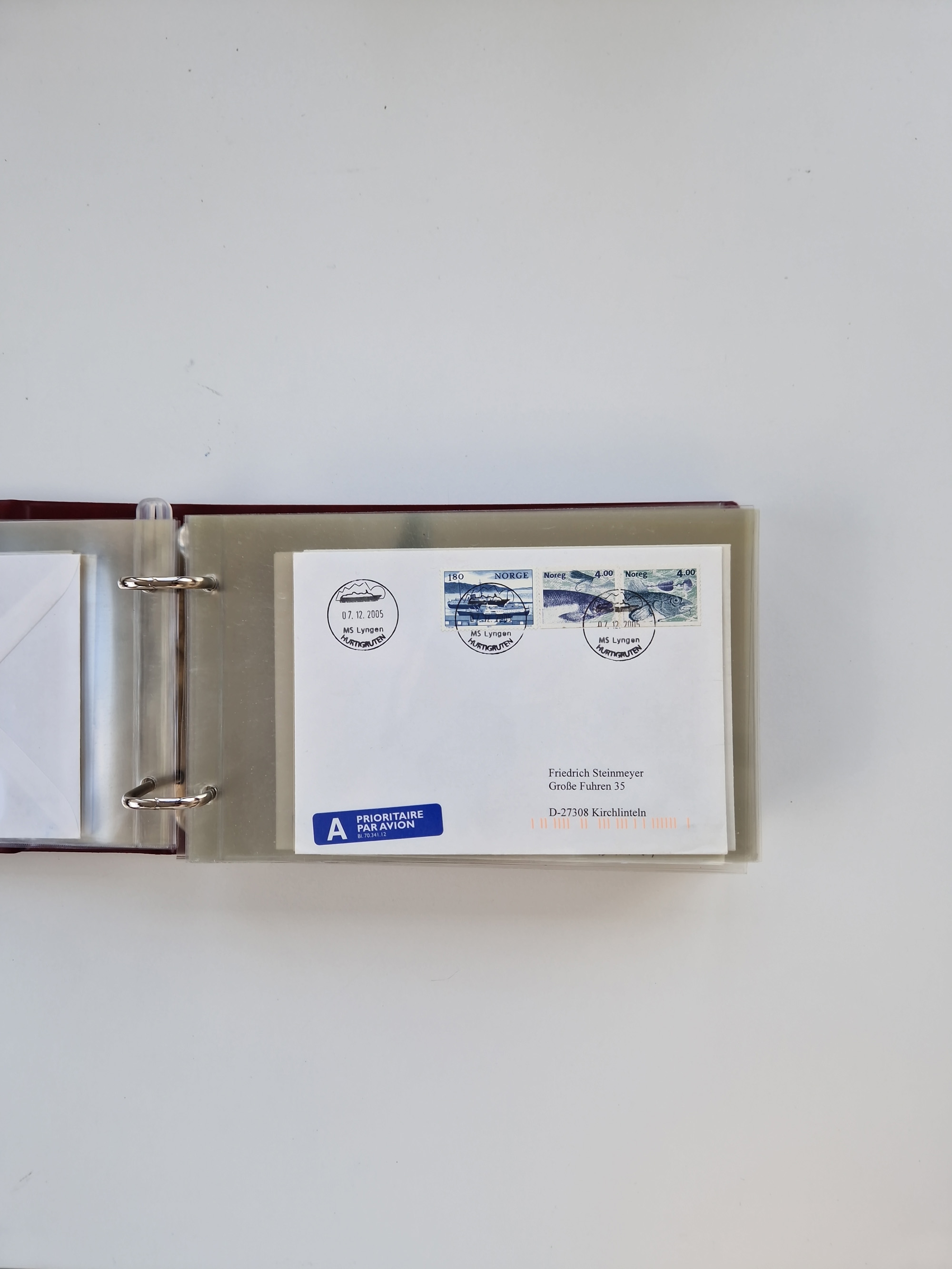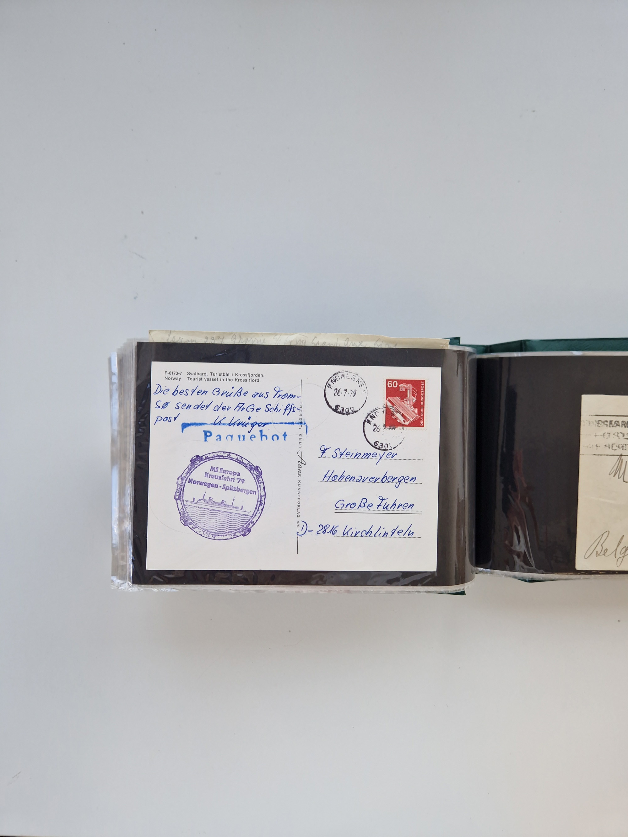 NORWEGEN: 1838/1980 (ca.), umfangreiche Sammlung “Norwegische Schiffspost” mit ca. fast 700 Briefen, Karten und GSK bis ca. 1960 inkl. Incoming Mail und etlichen nicht eingearbeiteten Belegen. Dabei frühe Post mit u.a. kpl. Faltbrief 1838 von Christiania mit ovalem Stempel “ALTONA SCHIFFSBRIEF” nach Schottland, kpl. Faltbrief 1863 mit handschriftlichem Aufgabevermerk “Foldin”, kpl. Faltbrief 1861 mit handschriftlichem Aufgabevermerk “Bjprn Farmand”, blauer EKr. “HALDEN 6.10.1854” auf kpl. Faltbrief und Briefhülle mit schwarzem EKr. “HAKON JARL 29.5.1861”. Danach u.a. zwei Briefe 1861/63 mit EKr. “NORDLAND”, Transitstempel “Norwegen direct” rückseitig auf Faltbrief mit zweimal 8 Sk. mit EKr. “STAVANGER 14.9.1864”, viele Nordlands Posteksp.-Stempel inkl. R-Briefen, Stempel “BÜREAU DE MER DE NORVEGE B 27.X.23” auf frankiertem R-Brief nach Schweden und 12 Briefe “NORSK SKIPSPOST HANDELSFLÄTEN” 1943/45 (6x mit Zensur). Dazu viele lose Marken und Briefstücke mit Schiffspost-Stempeln und zusätzlich viele Briefe nach 1960, alles auf Albenblättern mit Beschriftung in 24 Alben und ein mittlerer Karton mit nicht eingearbeitetem Material. Ein außergewöhnliches und empfehlenswertes Objekt