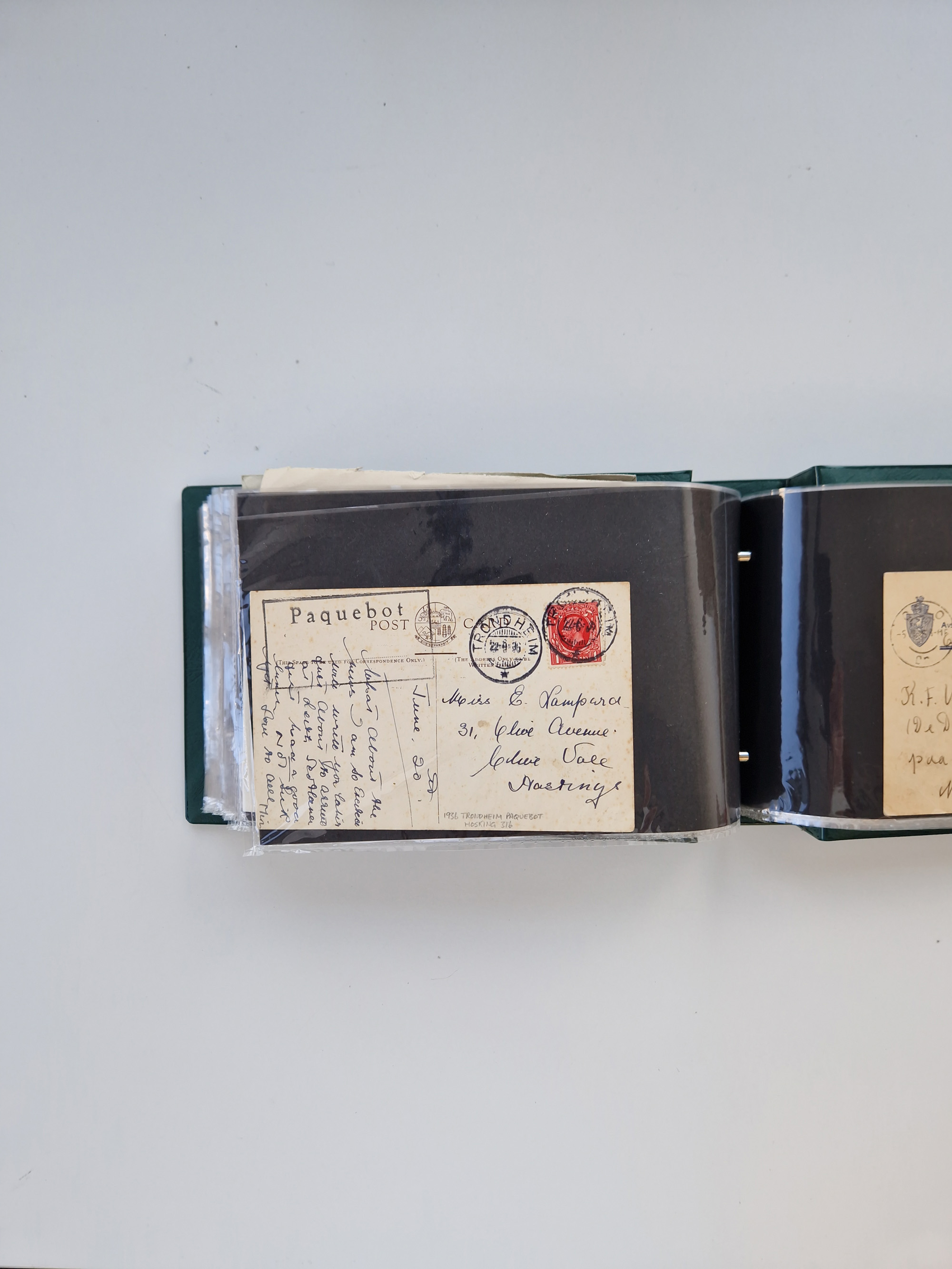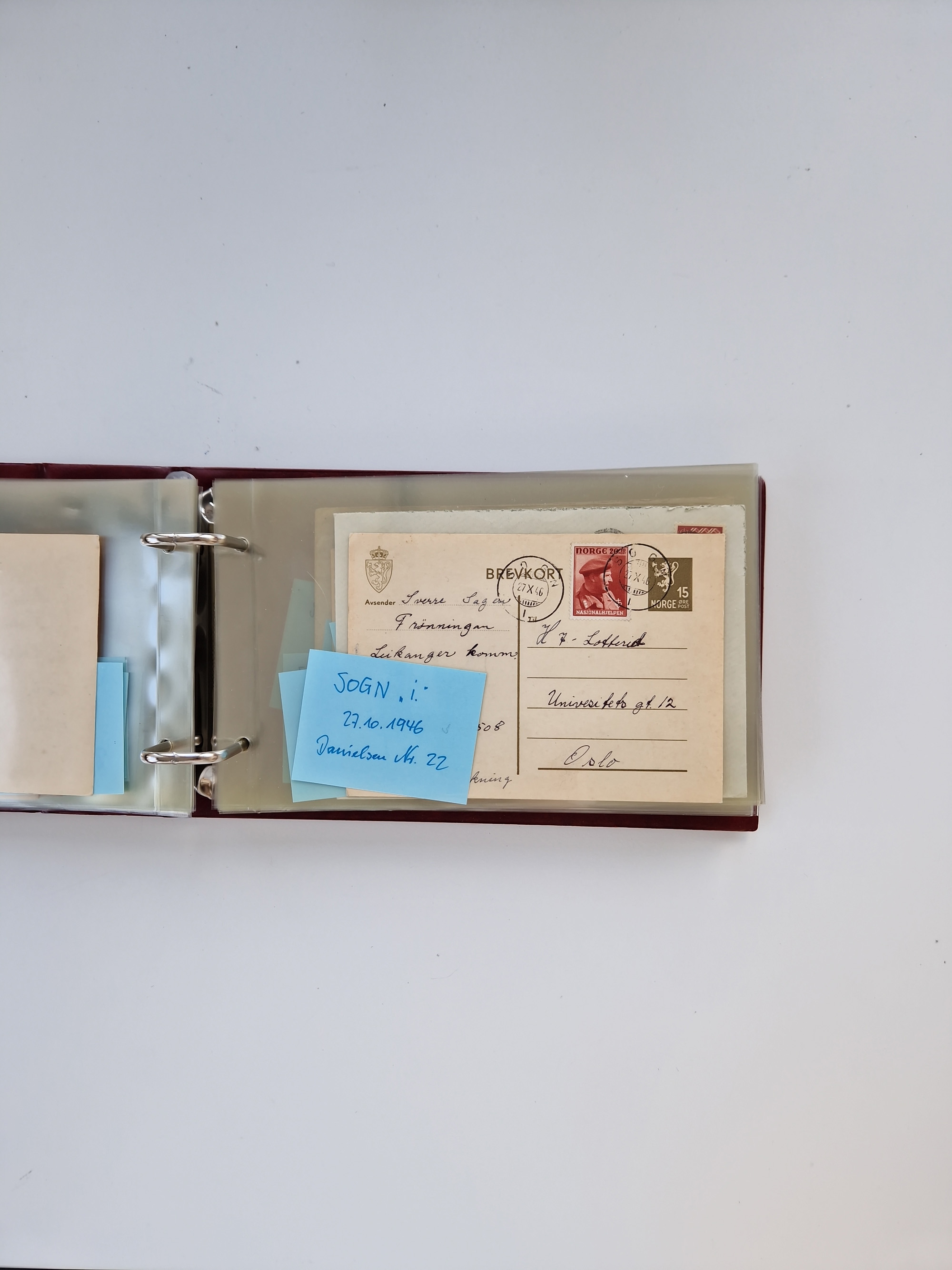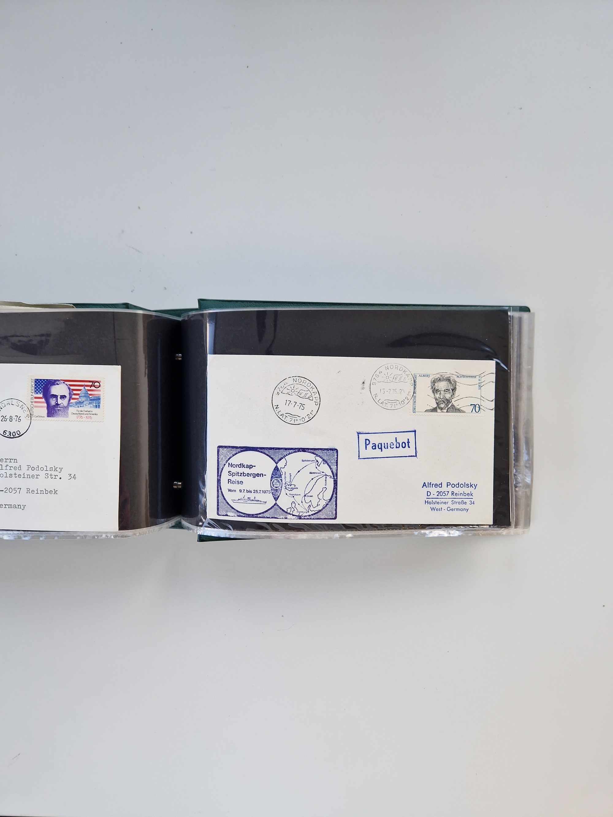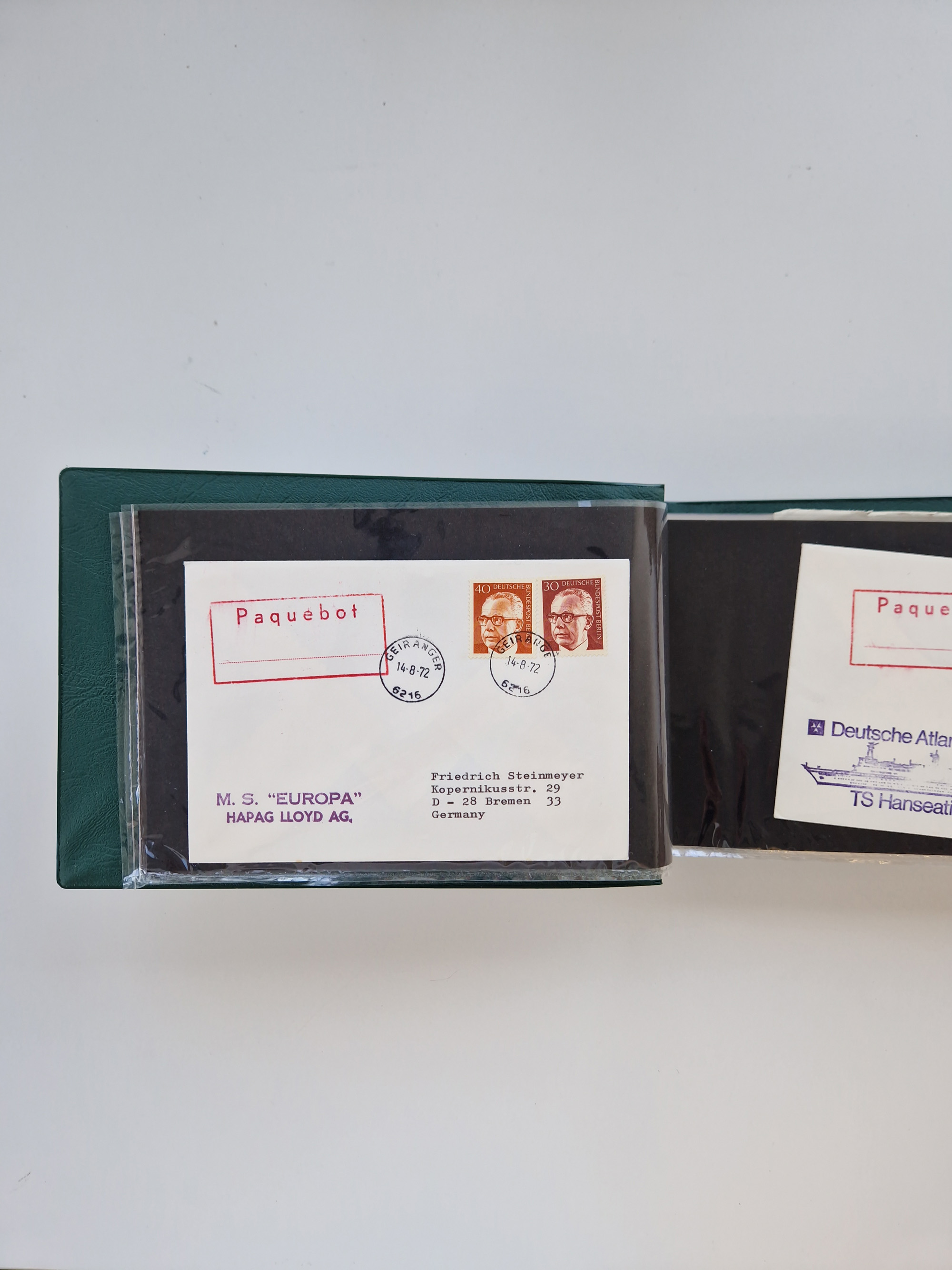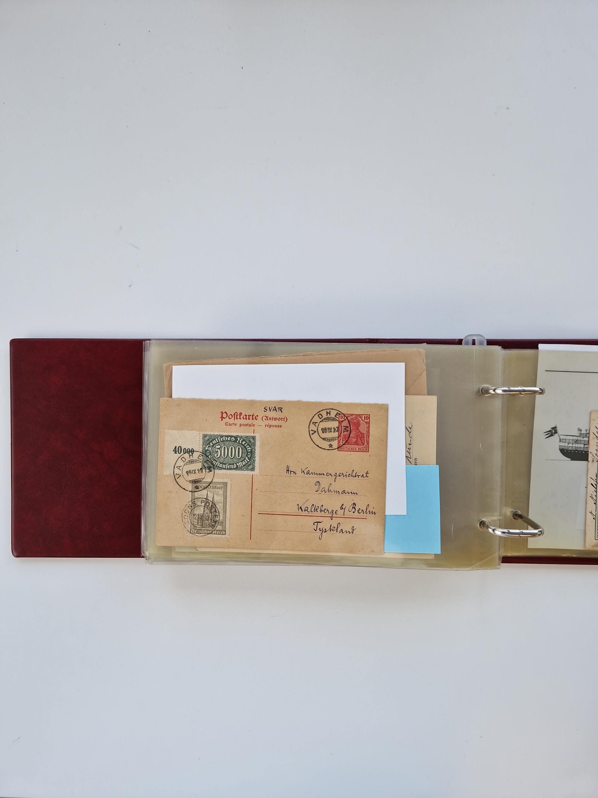 NORWEGEN: 1838/1980 (ca.), umfangreiche Sammlung “Norwegische Schiffspost” mit ca. fast 700 Briefen, Karten und GSK bis ca. 1960 inkl. Incoming Mail und etlichen nicht eingearbeiteten Belegen. Dabei frühe Post mit u.a. kpl. Faltbrief 1838 von Christiania mit ovalem Stempel “ALTONA SCHIFFSBRIEF” nach Schottland, kpl. Faltbrief 1863 mit handschriftlichem Aufgabevermerk “Foldin”, kpl. Faltbrief 1861 mit handschriftlichem Aufgabevermerk “Bjprn Farmand”, blauer EKr. “HALDEN 6.10.1854” auf kpl. Faltbrief und Briefhülle mit schwarzem EKr. “HAKON JARL 29.5.1861”. Danach u.a. zwei Briefe 1861/63 mit EKr. “NORDLAND”, Transitstempel “Norwegen direct” rückseitig auf Faltbrief mit zweimal 8 Sk. mit EKr. “STAVANGER 14.9.1864”, viele Nordlands Posteksp.-Stempel inkl. R-Briefen, Stempel “BÜREAU DE MER DE NORVEGE B 27.X.23” auf frankiertem R-Brief nach Schweden und 12 Briefe “NORSK SKIPSPOST HANDELSFLÄTEN” 1943/45 (6x mit Zensur). Dazu viele lose Marken und Briefstücke mit Schiffspost-Stempeln und zusätzlich viele Briefe nach 1960, alles auf Albenblättern mit Beschriftung in 24 Alben und ein mittlerer Karton mit nicht eingearbeitetem Material. Ein außergewöhnliches und empfehlenswertes Objekt