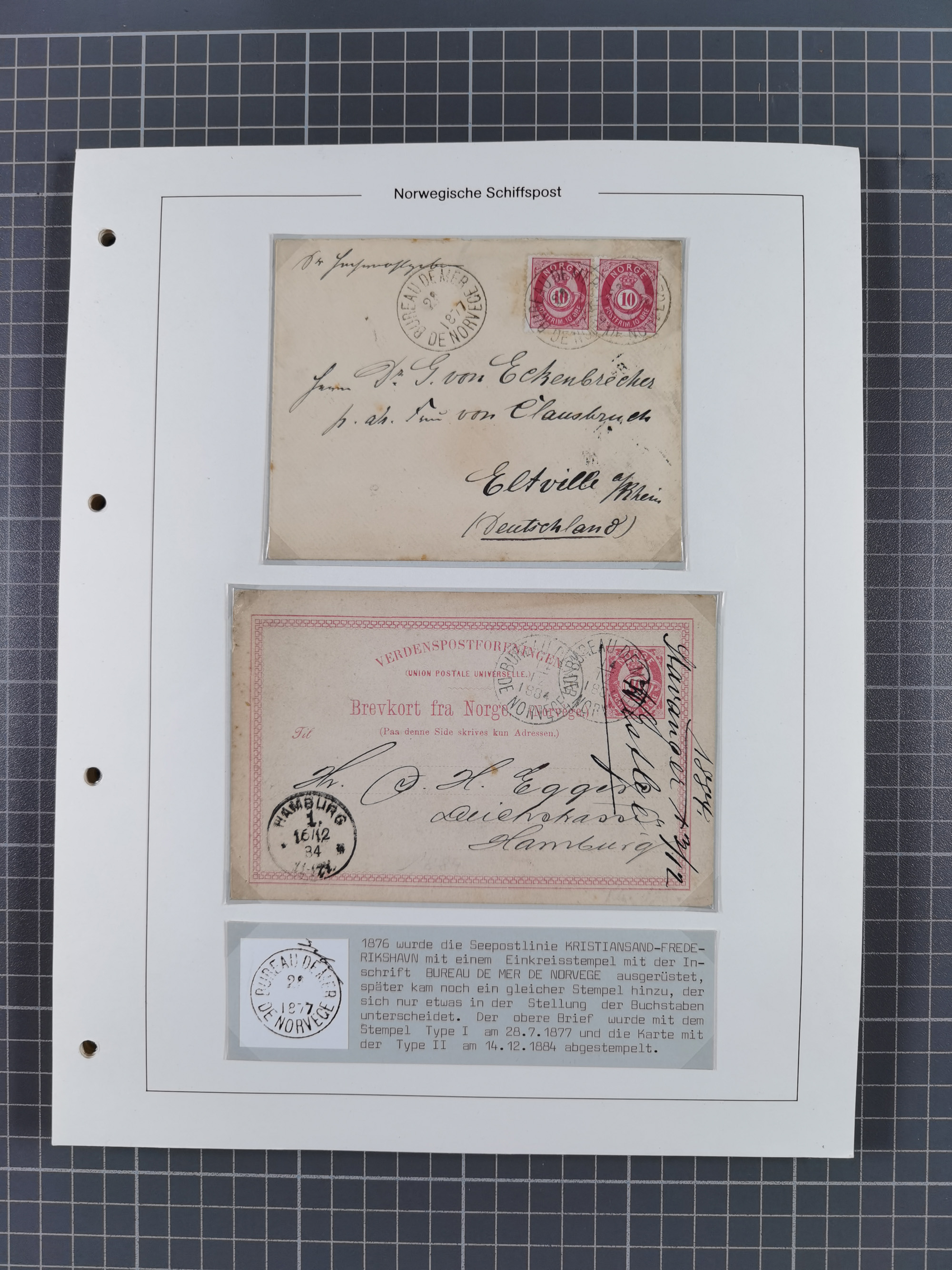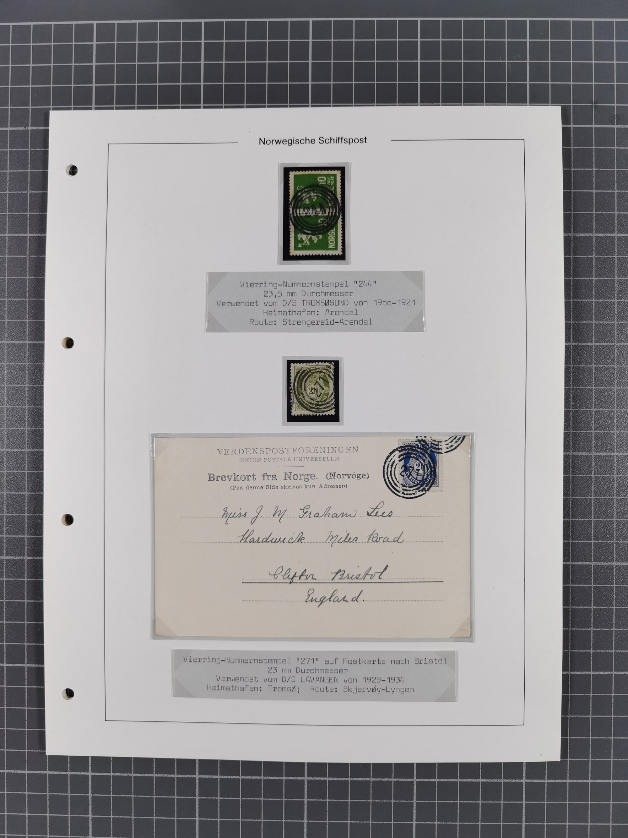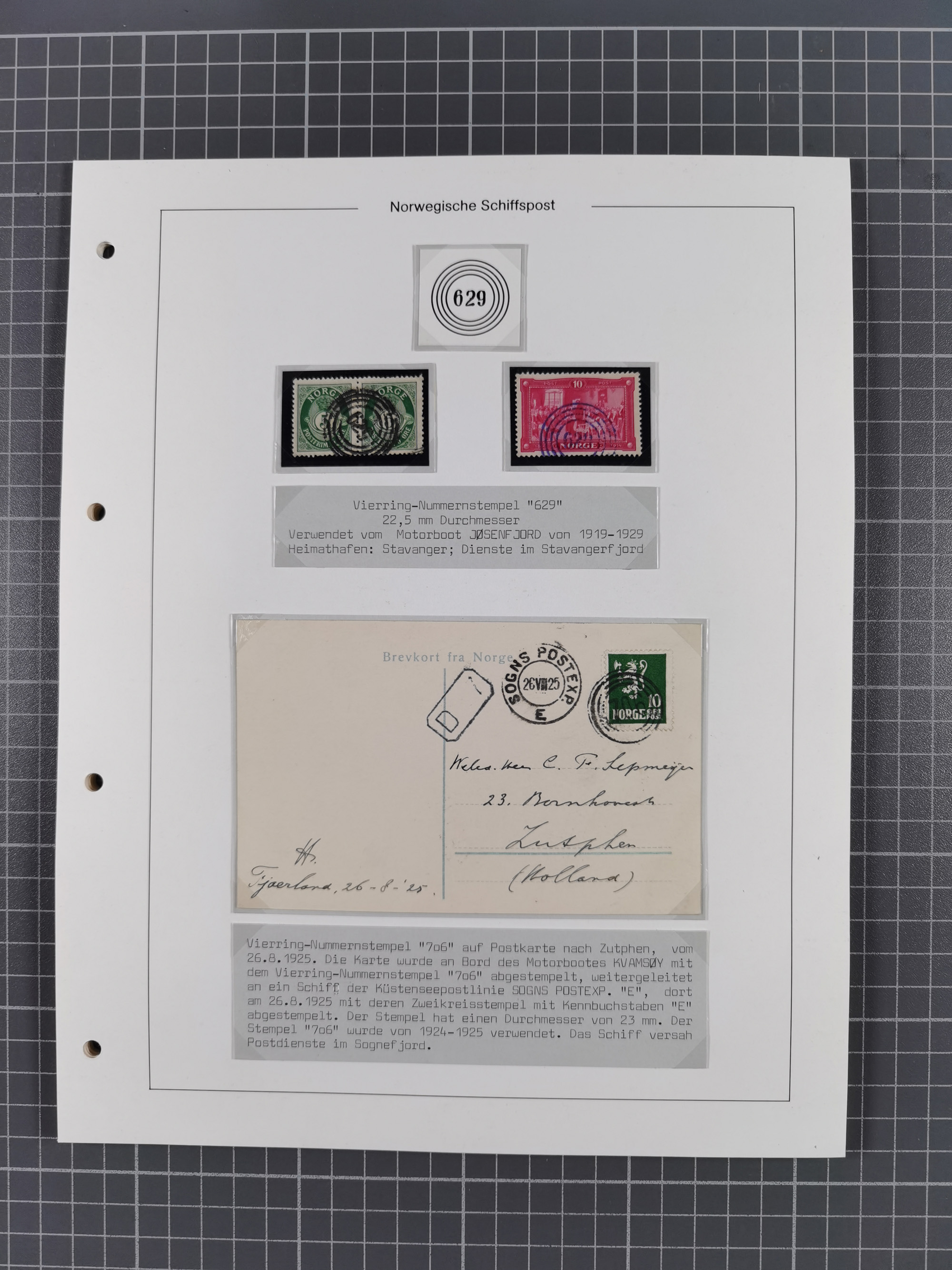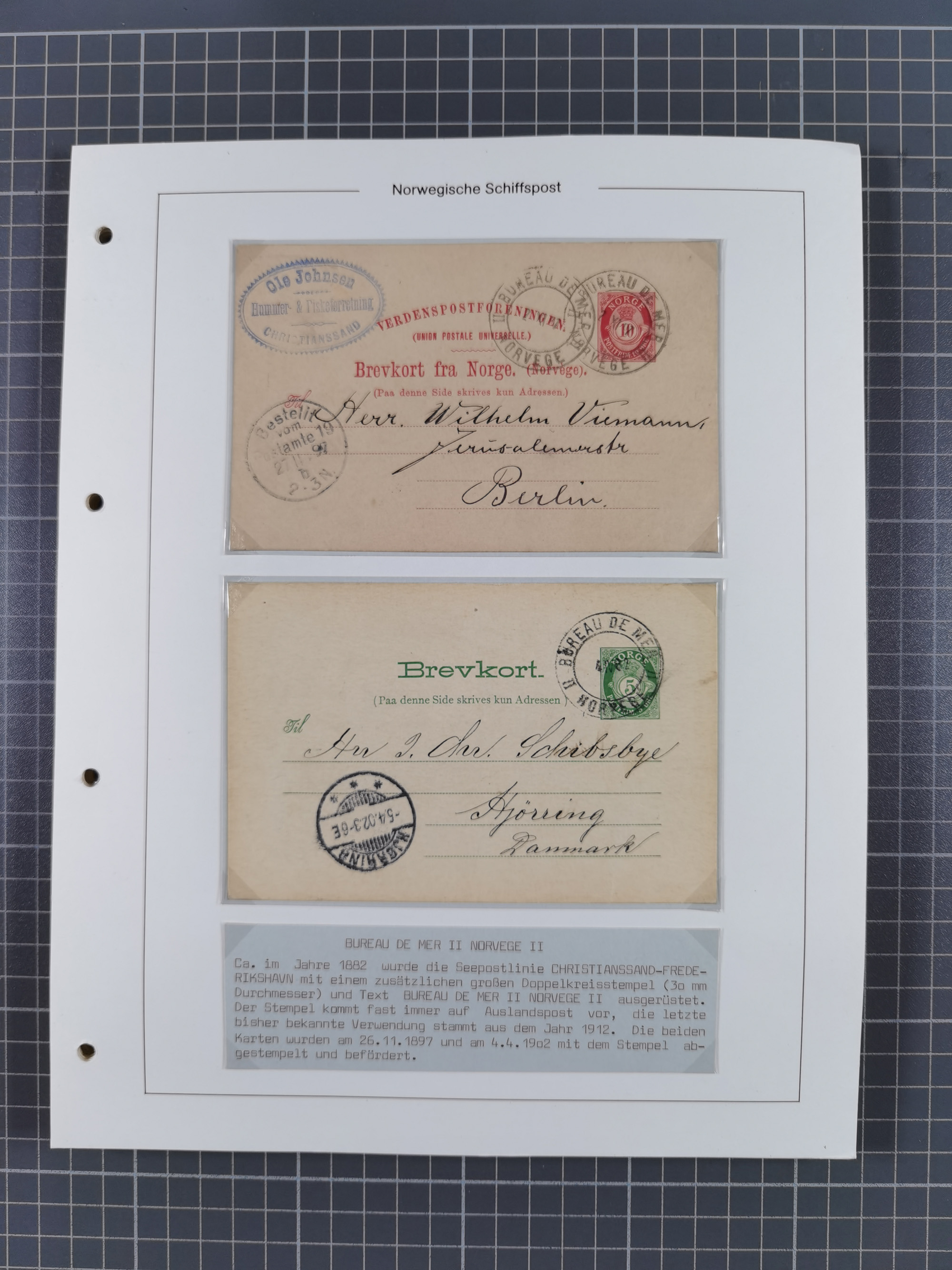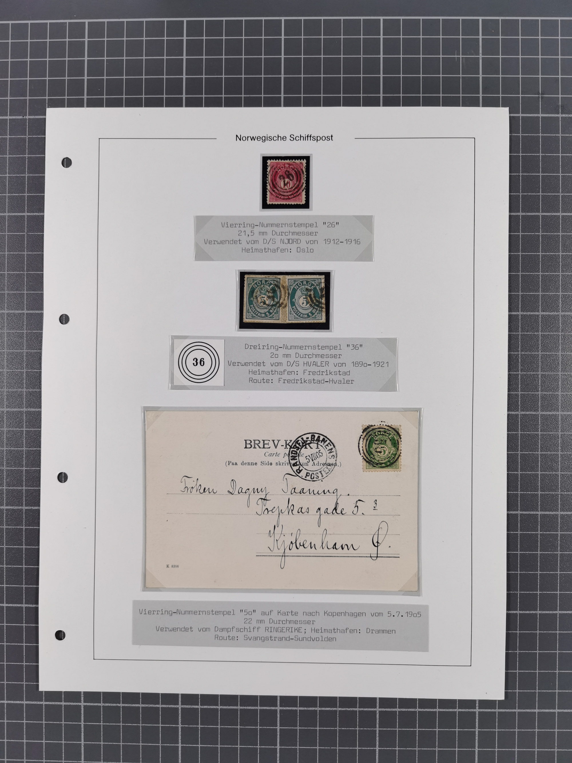 Norwegen: 1885/1934, Sammlung “Nummern-Stempel der Schiffspost ex 17/837” mit über 40 Briefen, Karten und GSK sowie einigen losenMarken dabei u.a. Brief 1885 mit violetter Nr. “31” als Entwerter, Ansichtskarte 1907 mit Nr. “229” als Entwerter, Faltbrief 1886 mit Nr. “249” als Entwerter und Ansichtskarte 1914 mit Nr. “525” als Entwerter, meist in guter Erhaltung, ex Steinmeyer