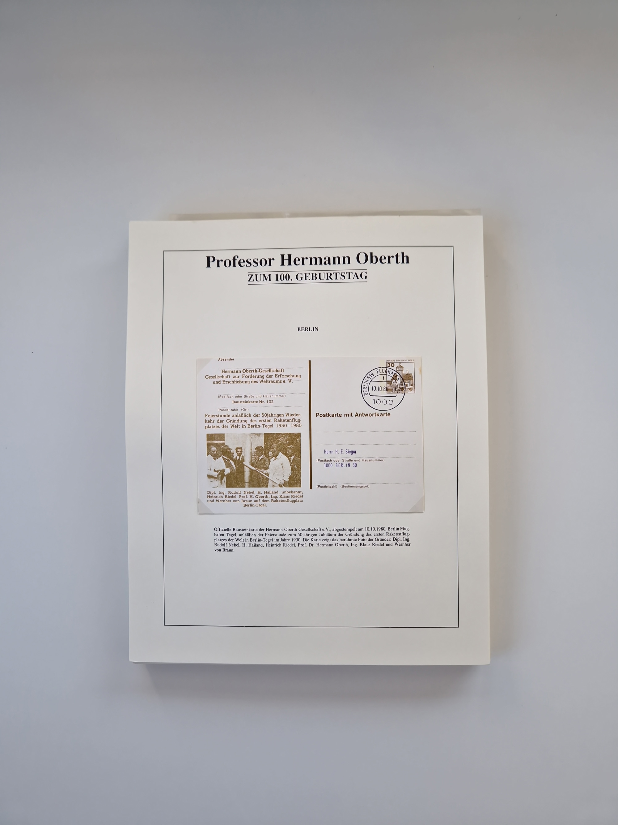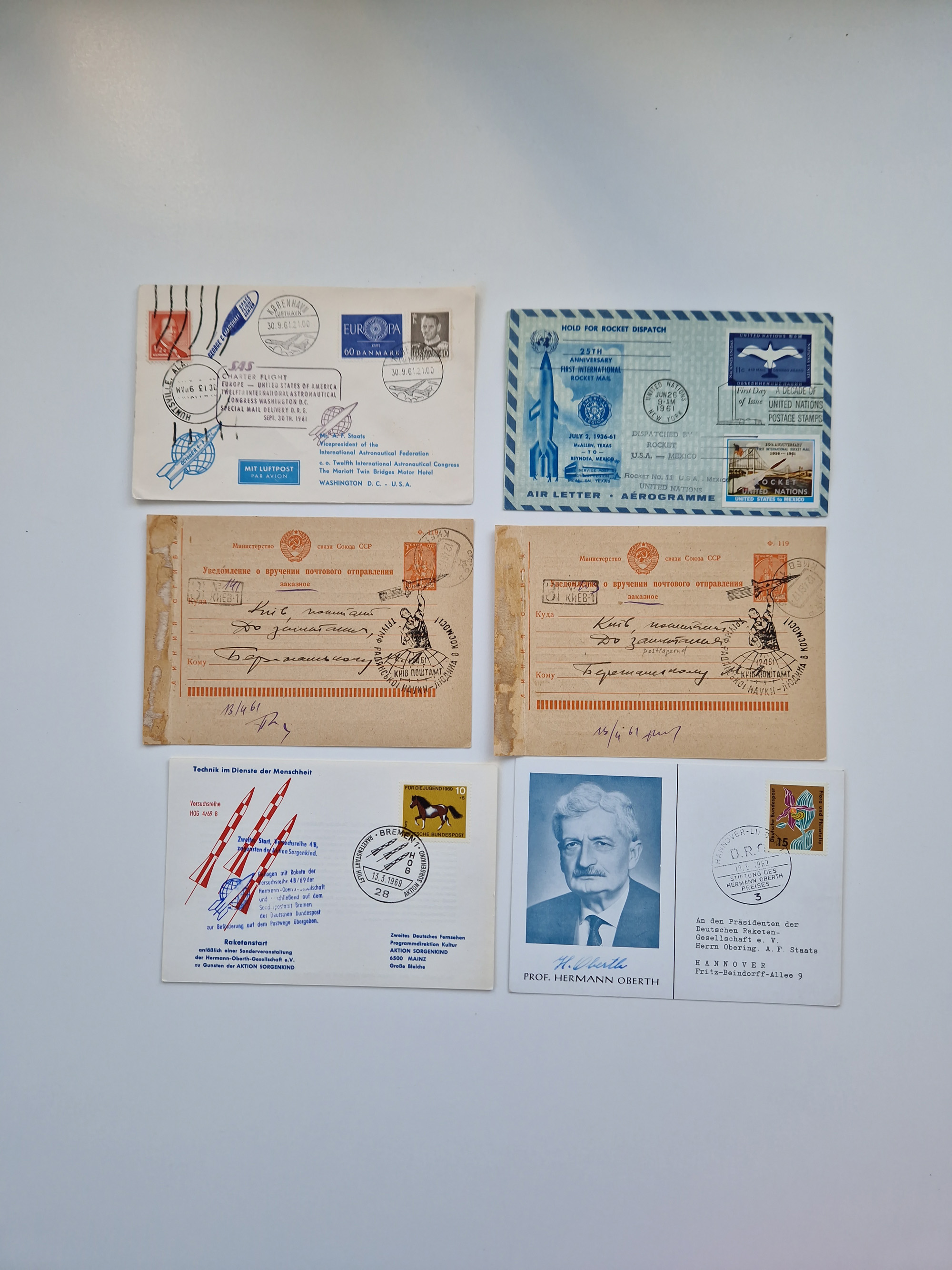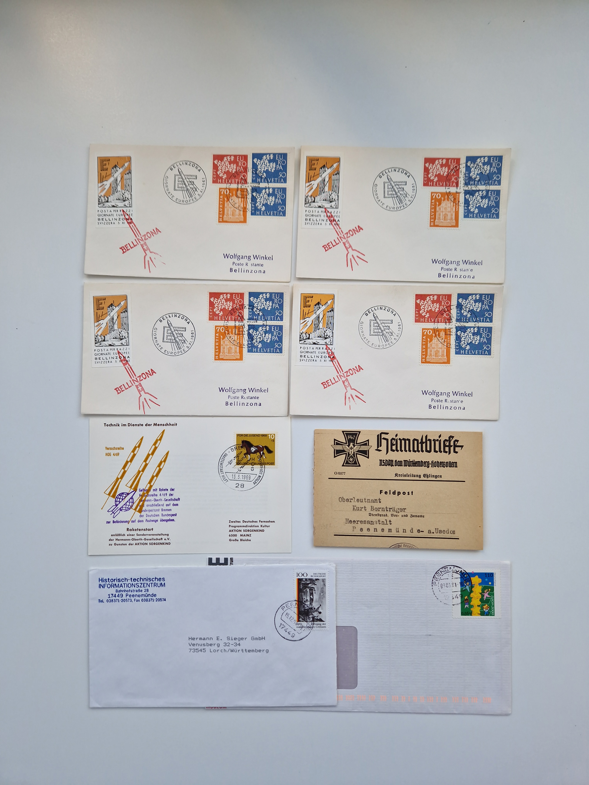 1931/2000 (ca.), interessanter Sammlungsbestand mit u.a. Postkarte “Tilling Raketenflugzeug” (Eckfehler), Österreich-Briefe mit Hopferwieser FS-08h, FS-10b und FS-28, Belege und Dokumente zu V1 und V2 mit u.a. “Heimatbriefe”-Vordruckfaltbrief 1943 an einen Oberleutnant bei der Heeresanstalt in Peenemünde, moderne Raketenpost-Sonderbelege und Weltraum-Post (zum Teil mit Original-Unterschriften
