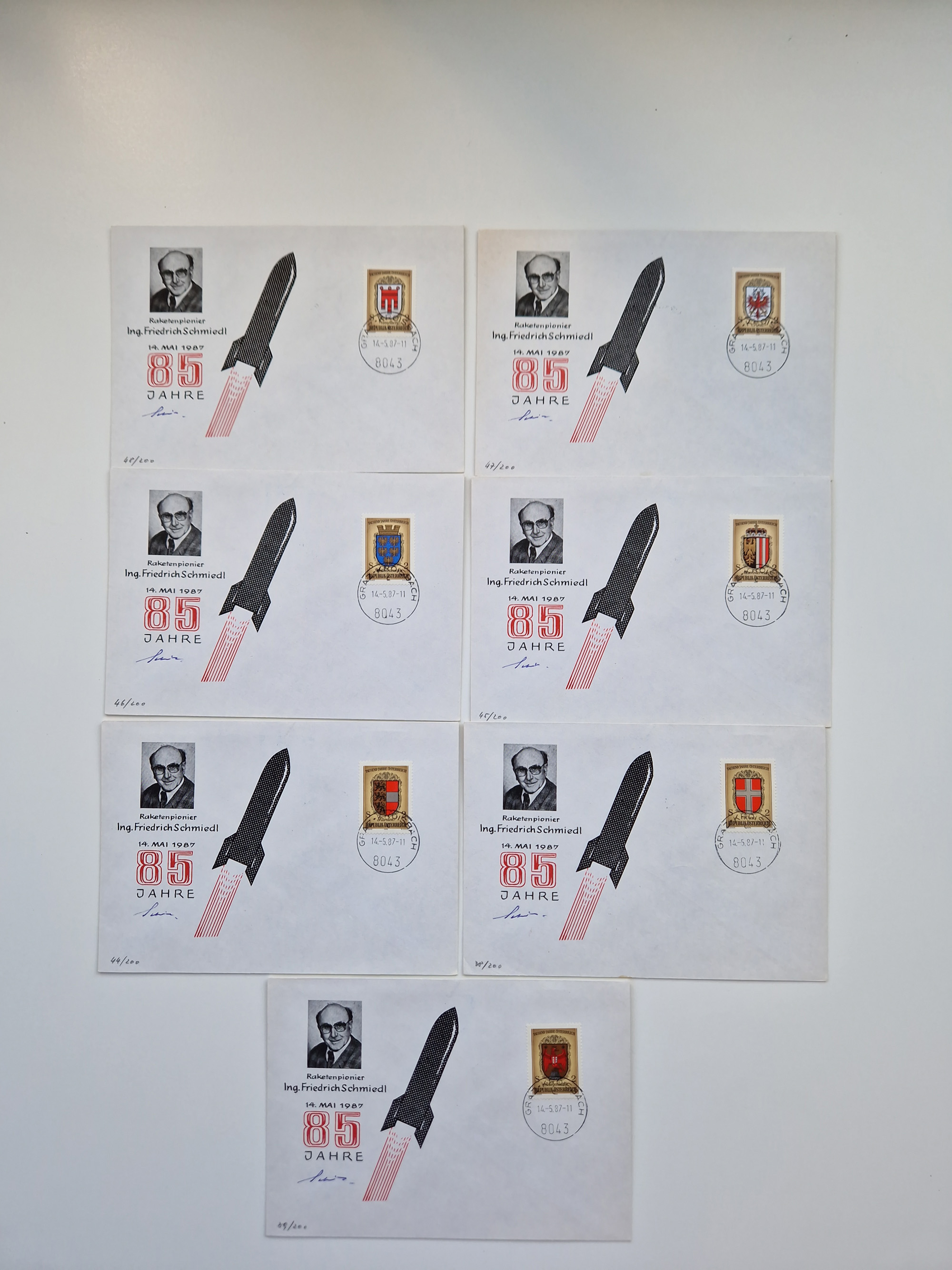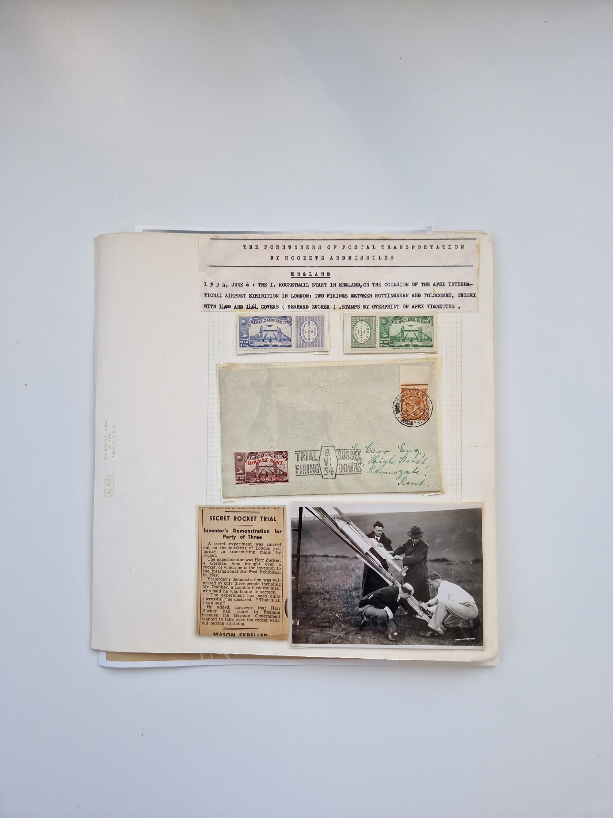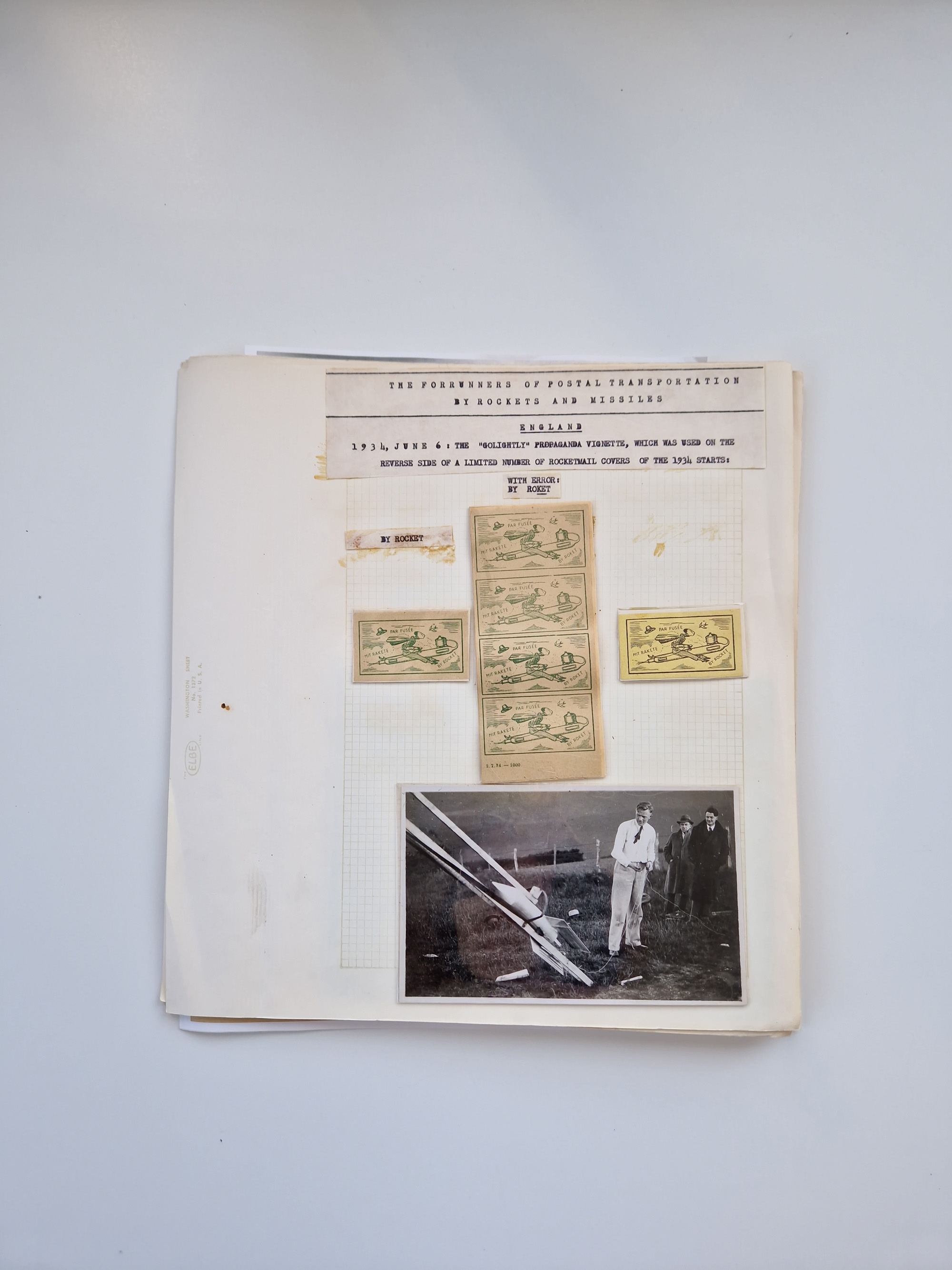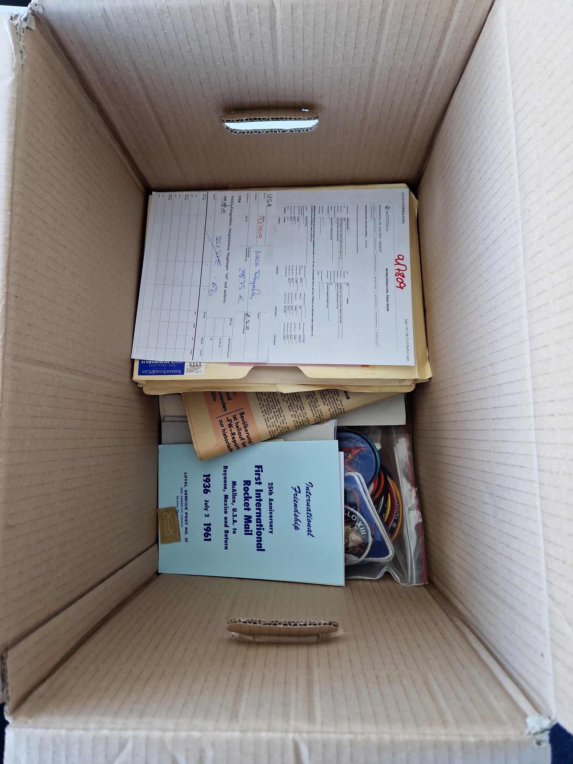 1931/2000 (ca.), interessanter Sammlungsbestand mit u.a. Postkarte “Tilling Raketenflugzeug” (Eckfehler), Österreich-Briefe mit Hopferwieser FS-08h, FS-10b und FS-28, Belege und Dokumente zu V1 und V2 mit u.a. “Heimatbriefe”-Vordruckfaltbrief 1943 an einen Oberleutnant bei der Heeresanstalt in Peenemünde, moderne Raketenpost-Sonderbelege und Weltraum-Post (zum Teil mit Original-Unterschriften