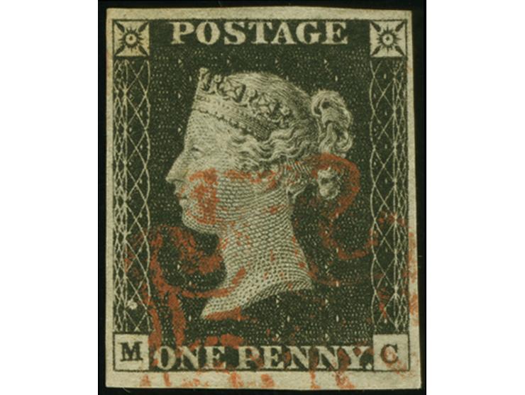 1840, Victoria One Penny black MC with good to large margins, clear strike of the Maltese cross in red, fine
