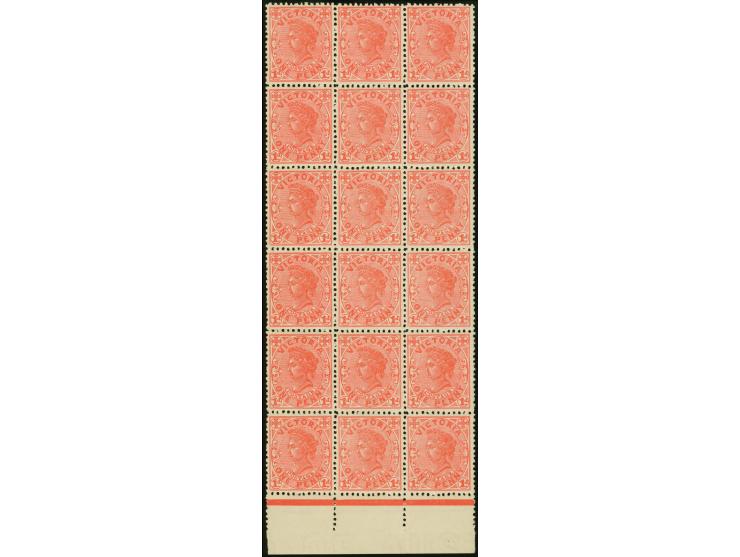 1901/10: 1 d. rose, State III, perf 12 x 12½, a lower margin block of 18, mint never hinged og. Very fine