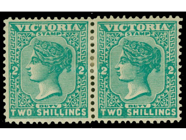 1899-1901, 1 s. brown-red, 1 s. 6 d. orange and 2 s. blue green, three pairs each watermark V over Crown, perf 12½, mint hinged. Fine trio SG £ 284