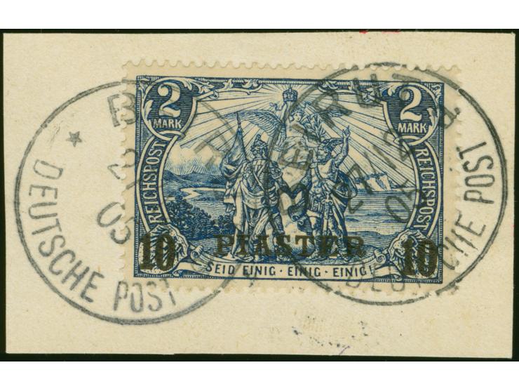 1902/04, Aufdruck in Type II: 2 M. in Type II, sauber gestempelt "BEIRUT 27/12 05", auf Briefstück. Einwandfrei. Signiert Steuer und Freyse, Fotoattest Wiegand BPP (2025)