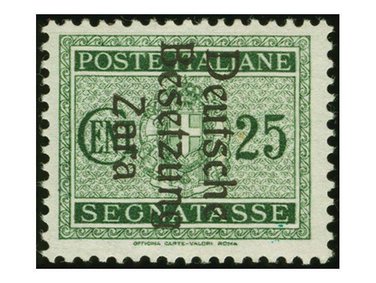 1943, 25C., von Aufdruckfeld 68 mit Aufdruckfehler “senkrechter Balken des D in Deutsche gebrochen”, postfrisch, sehr selten mit einer Auflage von lediglich 10 Stück, kleiner Farbspitzer rückseitig, sonst tadellos, u.a. sign. ELudin