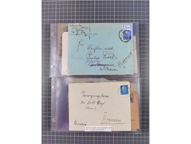 1891/1938, Sammlungspbestand “DASP BREMEN-NEW YORK” mit ca. 85 Briefen, Karten und GSK, Schwerpunkt bis ca. 1920 mit Unterscheidungsziffern “I” bis “X”. Dabei zwei Belege aus der Inflationszeit und meist klare Abschläge, ex Steinmeyer
