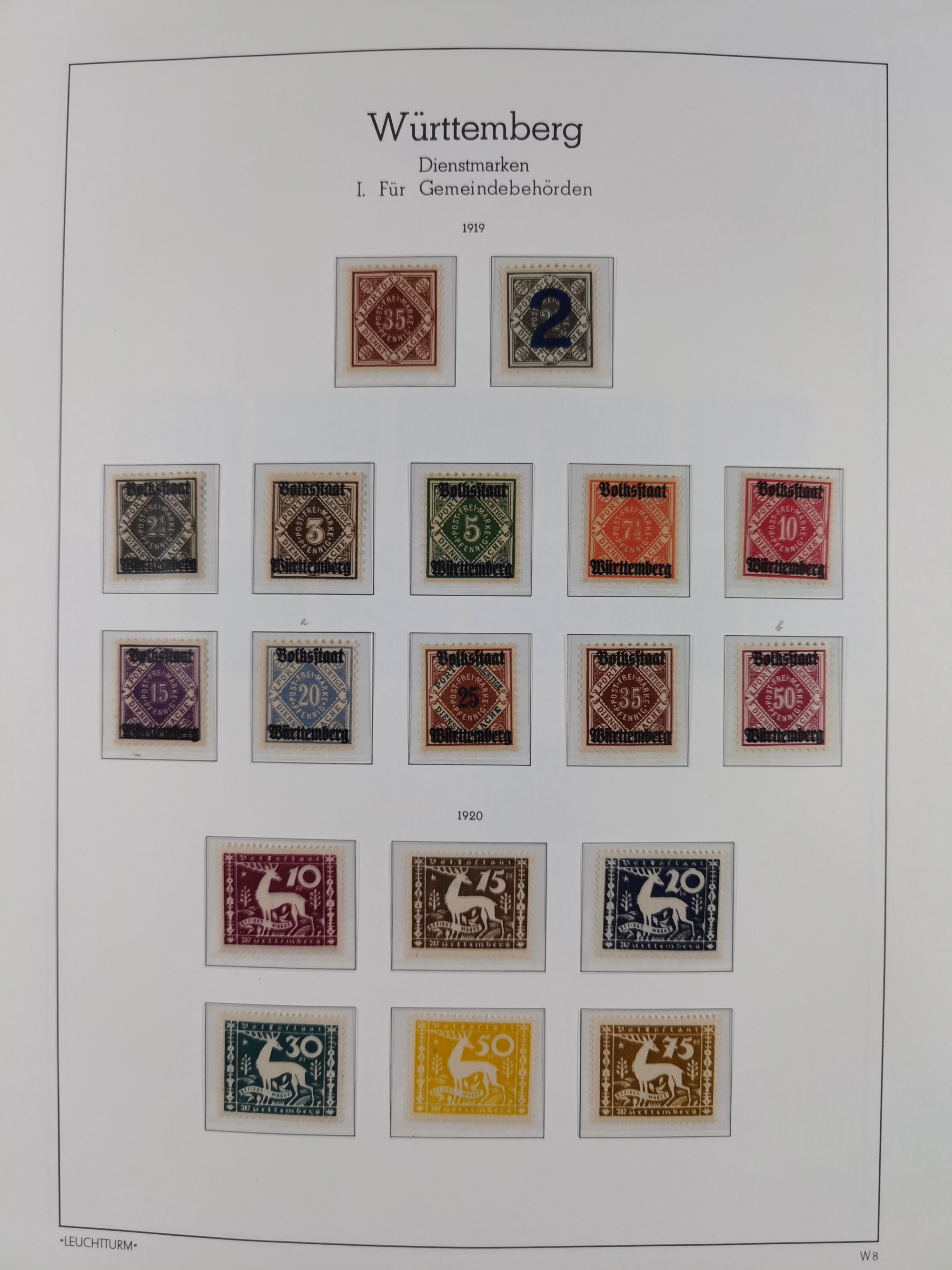 1849/1934 (ca.), meist postfrische Sammlung ab Altdeutschland mit einigen besseren Ausgaben, dabei u.a. Bayern mit Plattennummern, Mi.-Nr. 149-51 HAN, Dienst inkl. Mi.-Nr. I-II sign., sowie Helgoland, Würtemberg und ferner Deutsche Abstimmungsgebiete mit Belgien, Rumänien mit Porto 1-7, Etappengebiet 1-4II, Allenstein mit Siegesmarke, Marienwerder, Oberschlesien mit u.a. Mi.-Nr. 12aIa sign. Gruber BPP, Östl. 17-20, sowie Saargebiet mit u.a. Mi.-Nr. 135-41, gute Erhaltung, in vier Alben