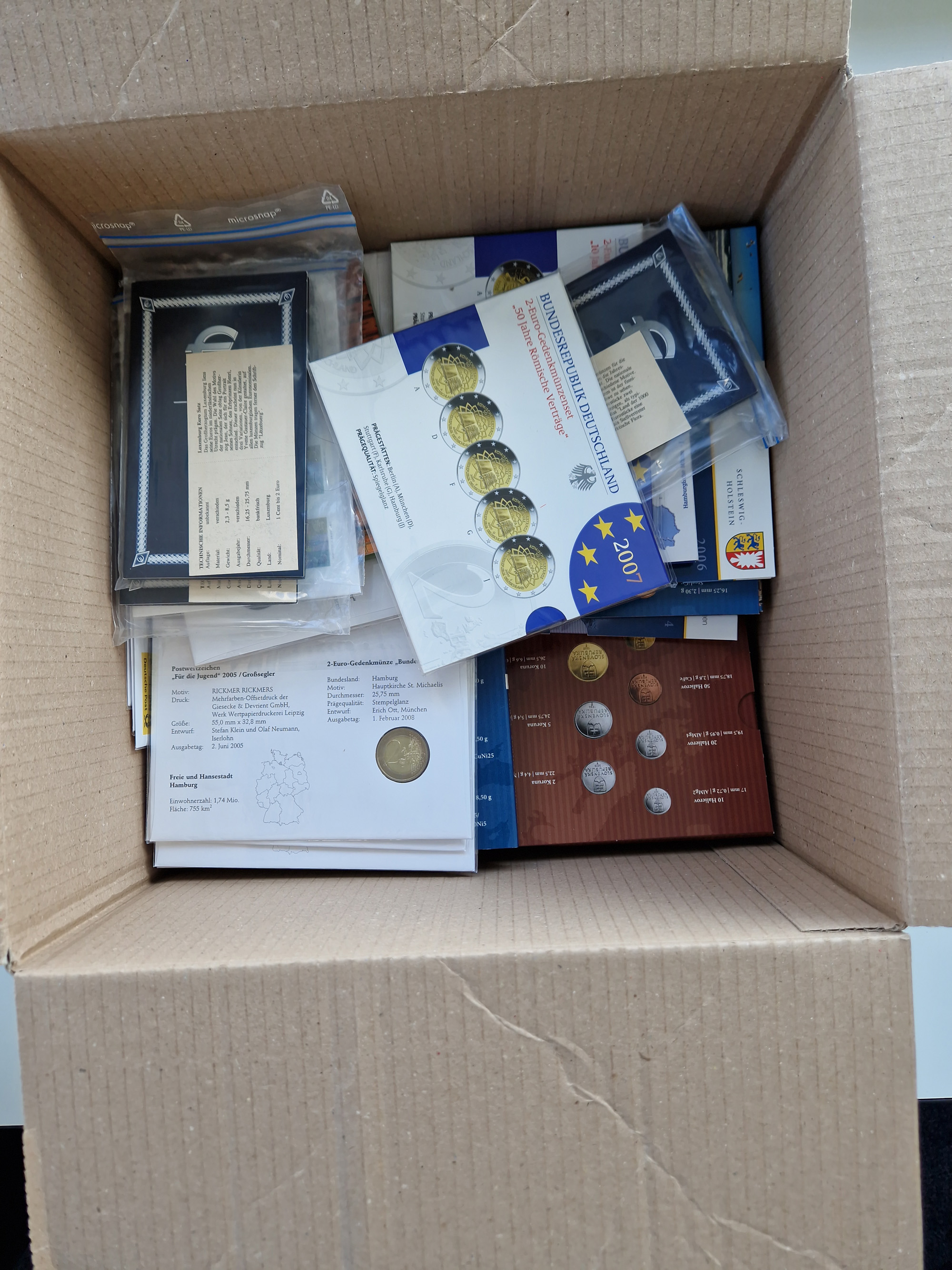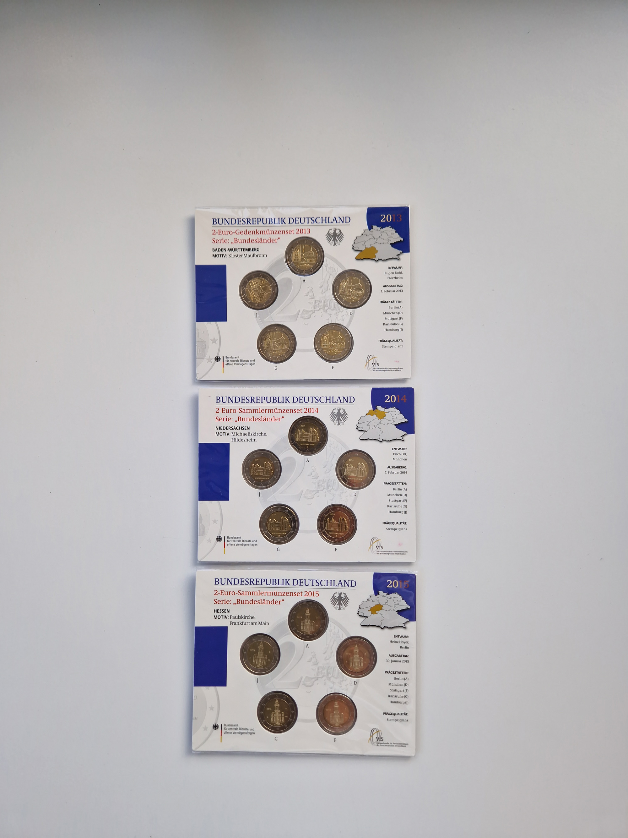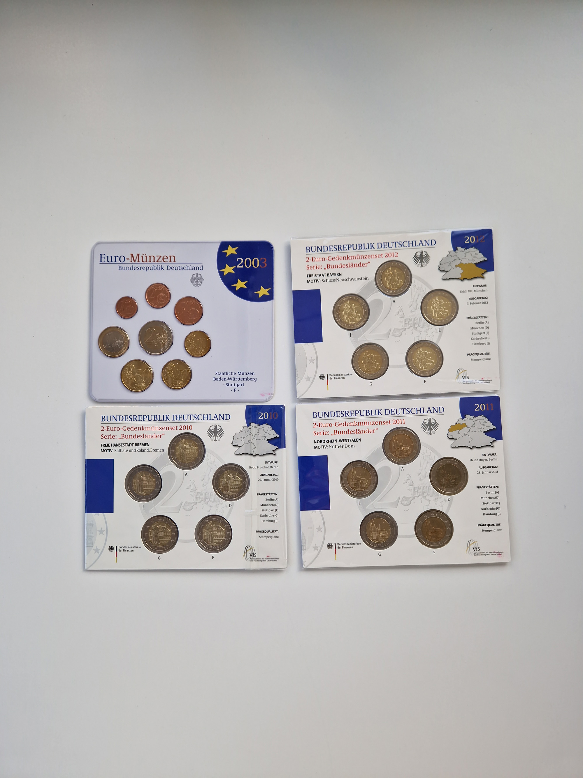 BRD: 2002/15, Lot mit 2 Euro Kurs- und Gedenkmünzensätzen, dabei u.a. 2x Bundesländerserie bis 2015 in allen Prägestätten, zudem Kursmünzensätze anderer Euro-Länder, Stempelglanz