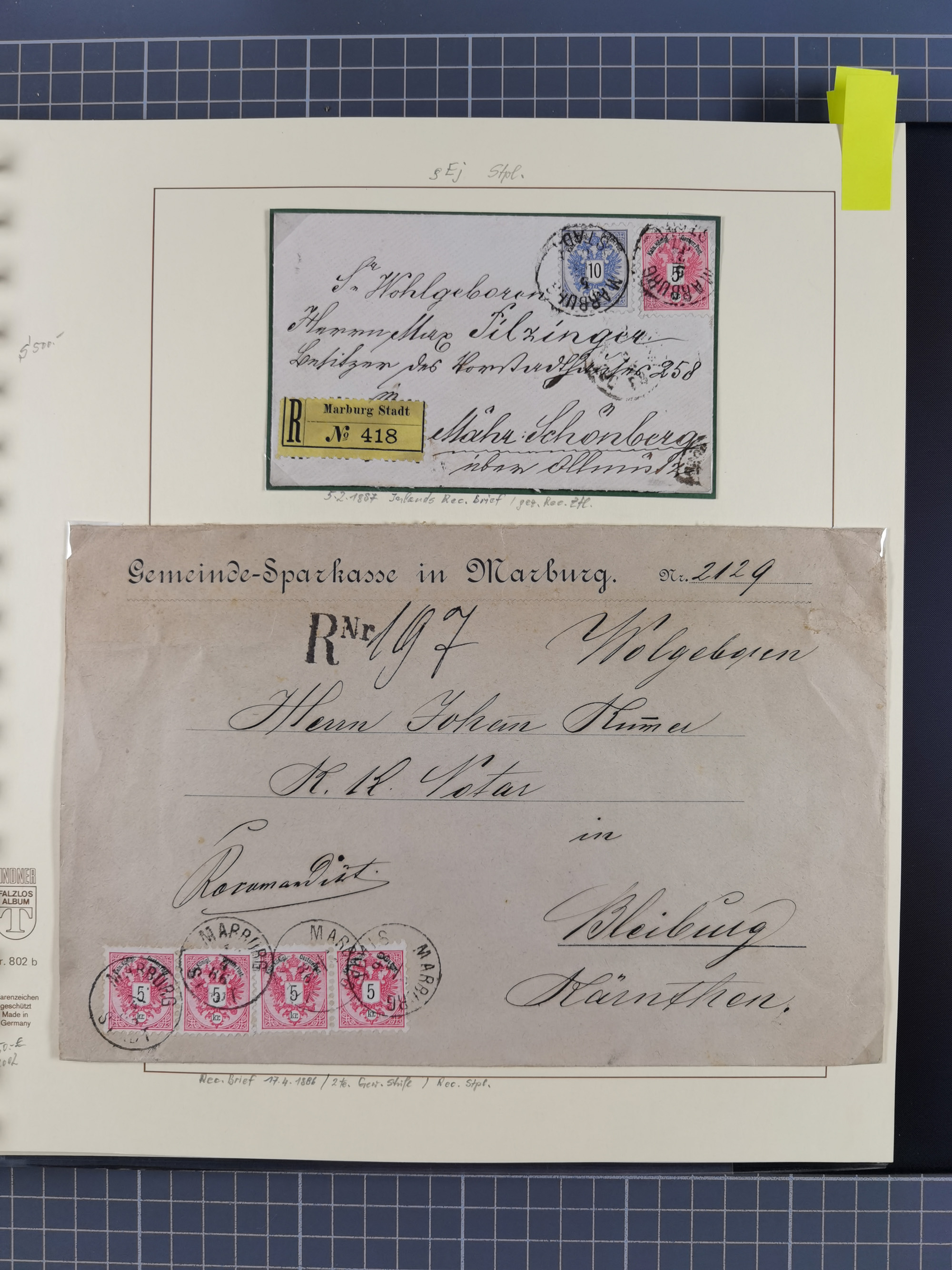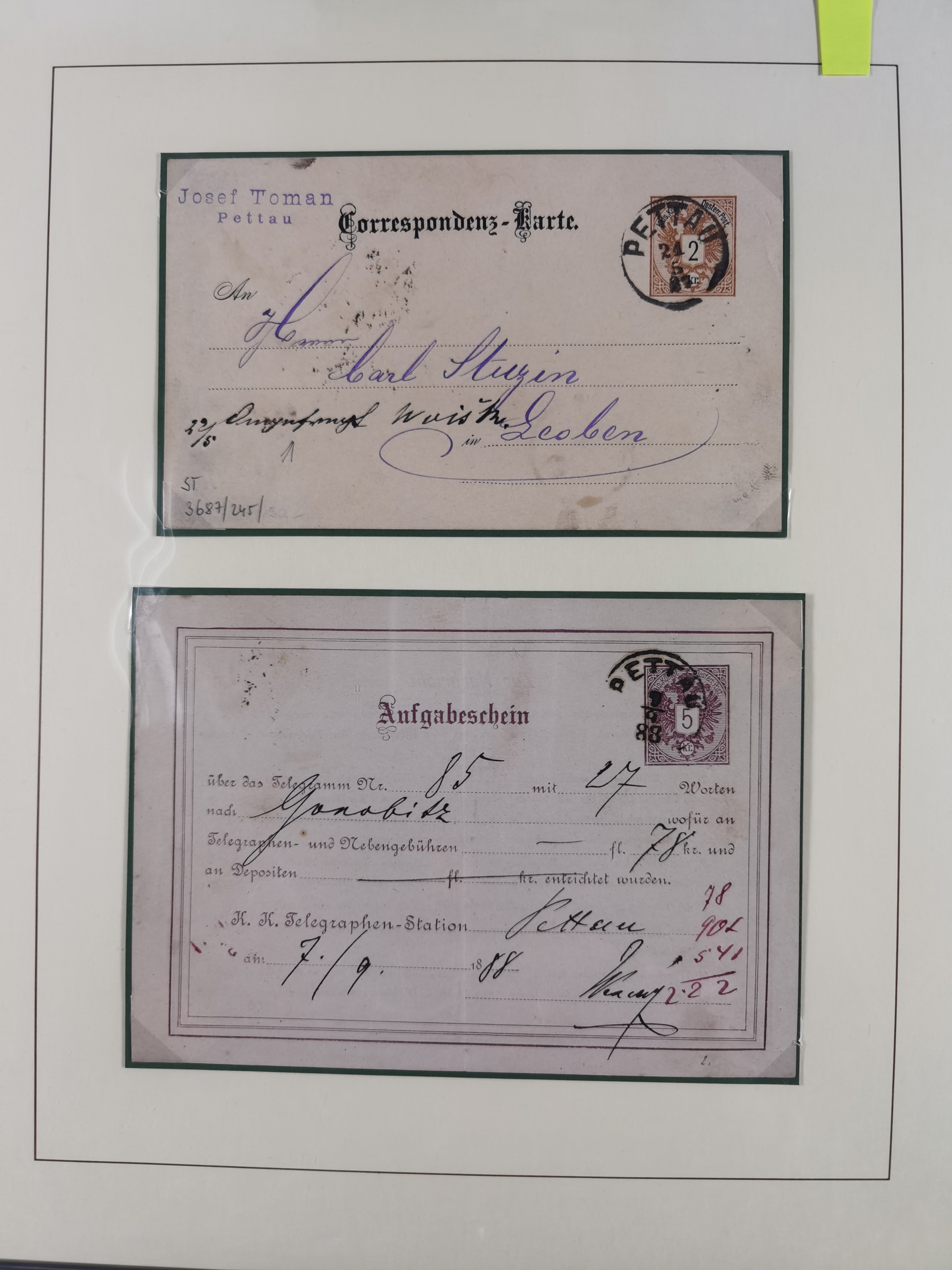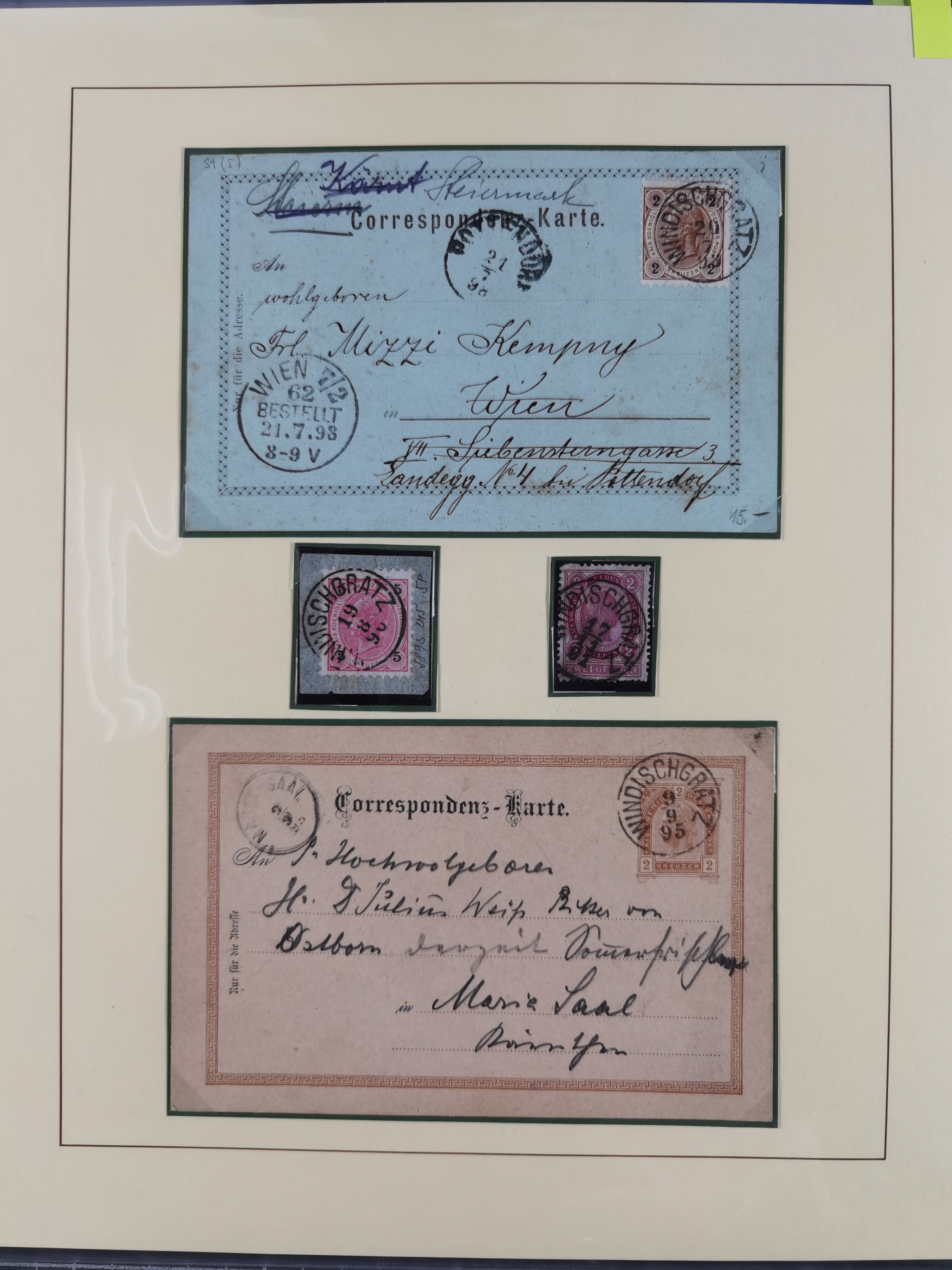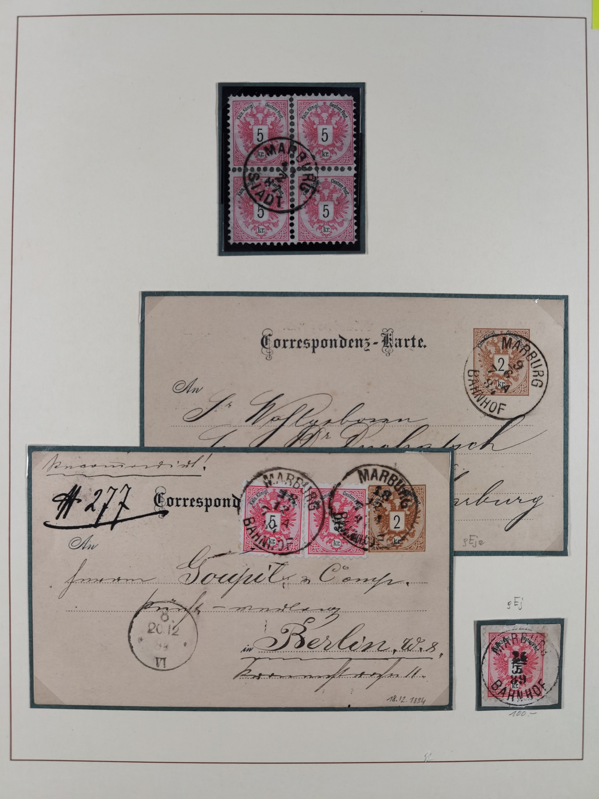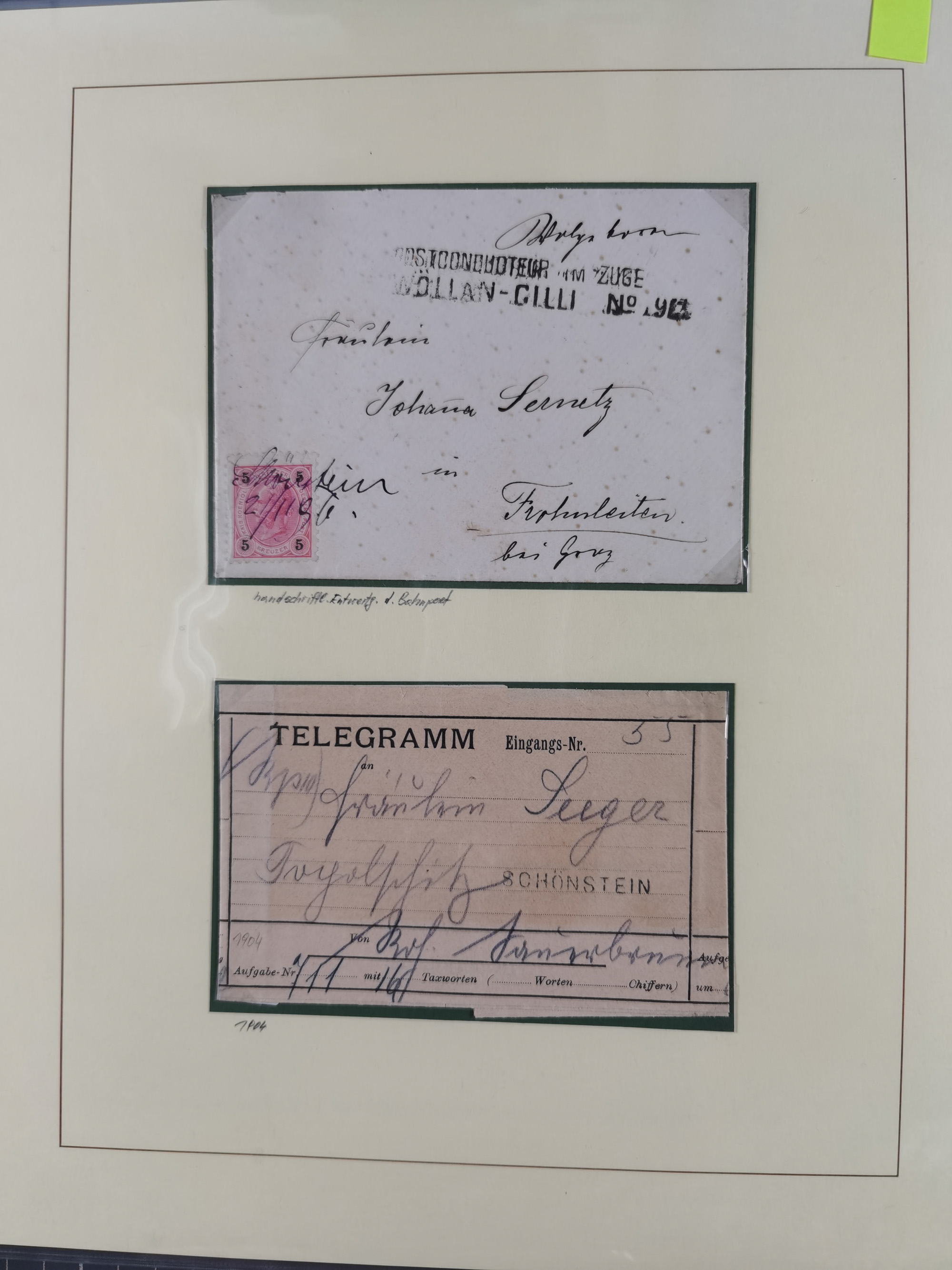 1870/1913 (ca.), umfangreiche aufgezogene Heimat-Sammlung “Herzogtum Steiermark (Styria)”, Bruck bis Windischgraz, mit über 1400 Briefen und Karten, bessere Frankaturen, Ansichtkarten und Illustriertenkarten mit Lithos, Paketkarten und Postscheine, R-Briefe, Ortsbriefe, Ganzsachenkarten- und Umschläge, etc., Schwerpunkt bei den Ausgaben 1883 bis 1899, schöne Auswahl an Poststempeln inkl. Fingerhutstempeln und handschriftlicher Entwertungen, dabei u.a. Express-Ganzsachekarte mit Zufrankatur aus “IRDNING 7 2 97” nach Wörschach, etc., sowie zahlreiche lose Marken und Briefstücke mit meist klaren Stempel-Abschlägen. Ein außerordentlich reichaltiges und interessantes Objekt, zusammen in 22 Alben